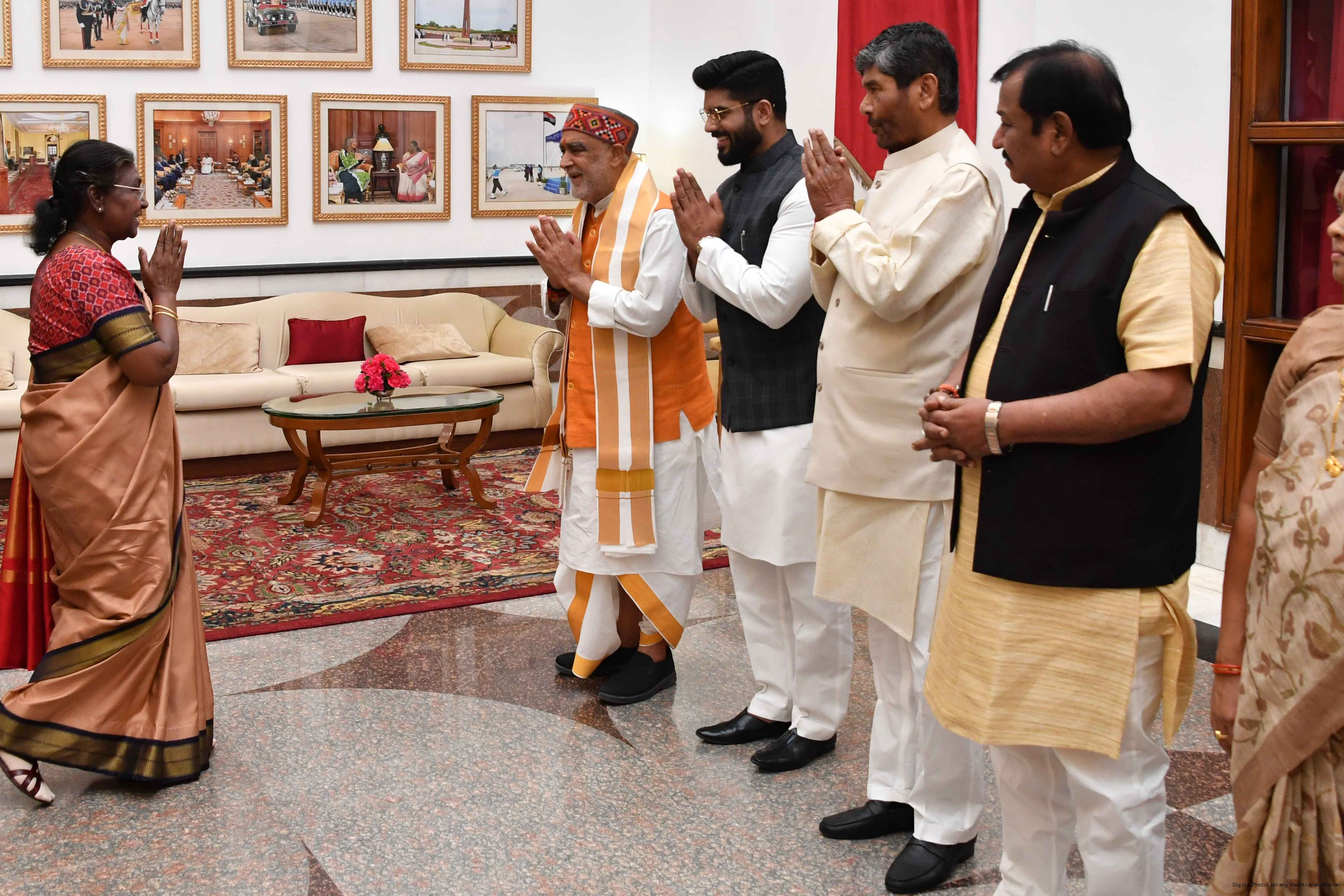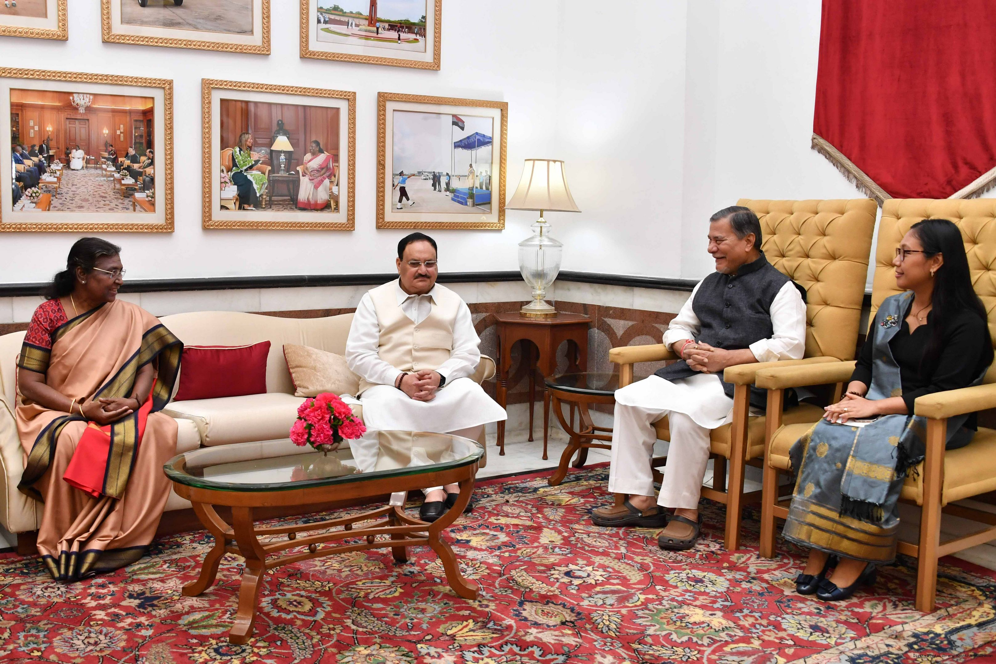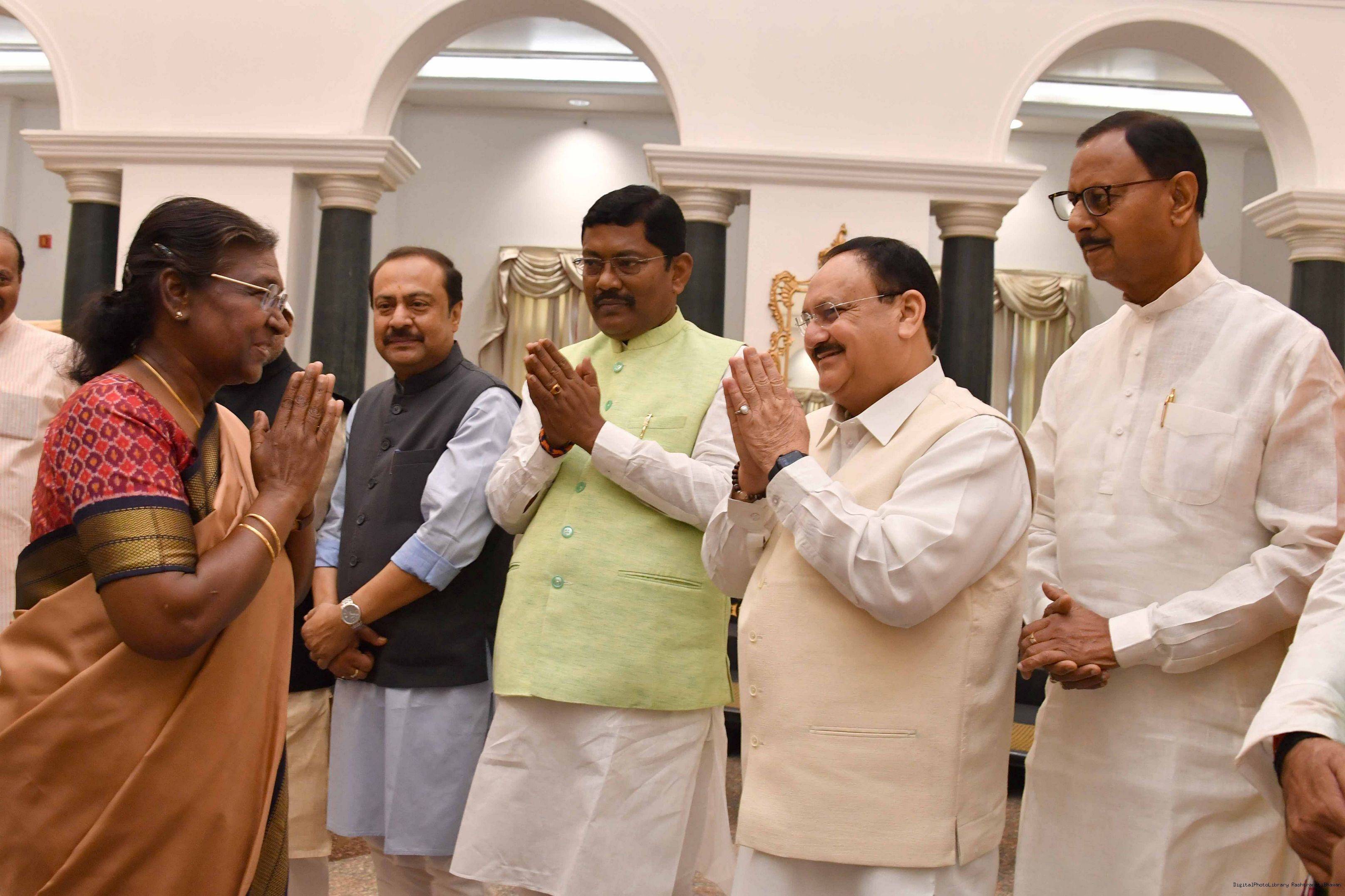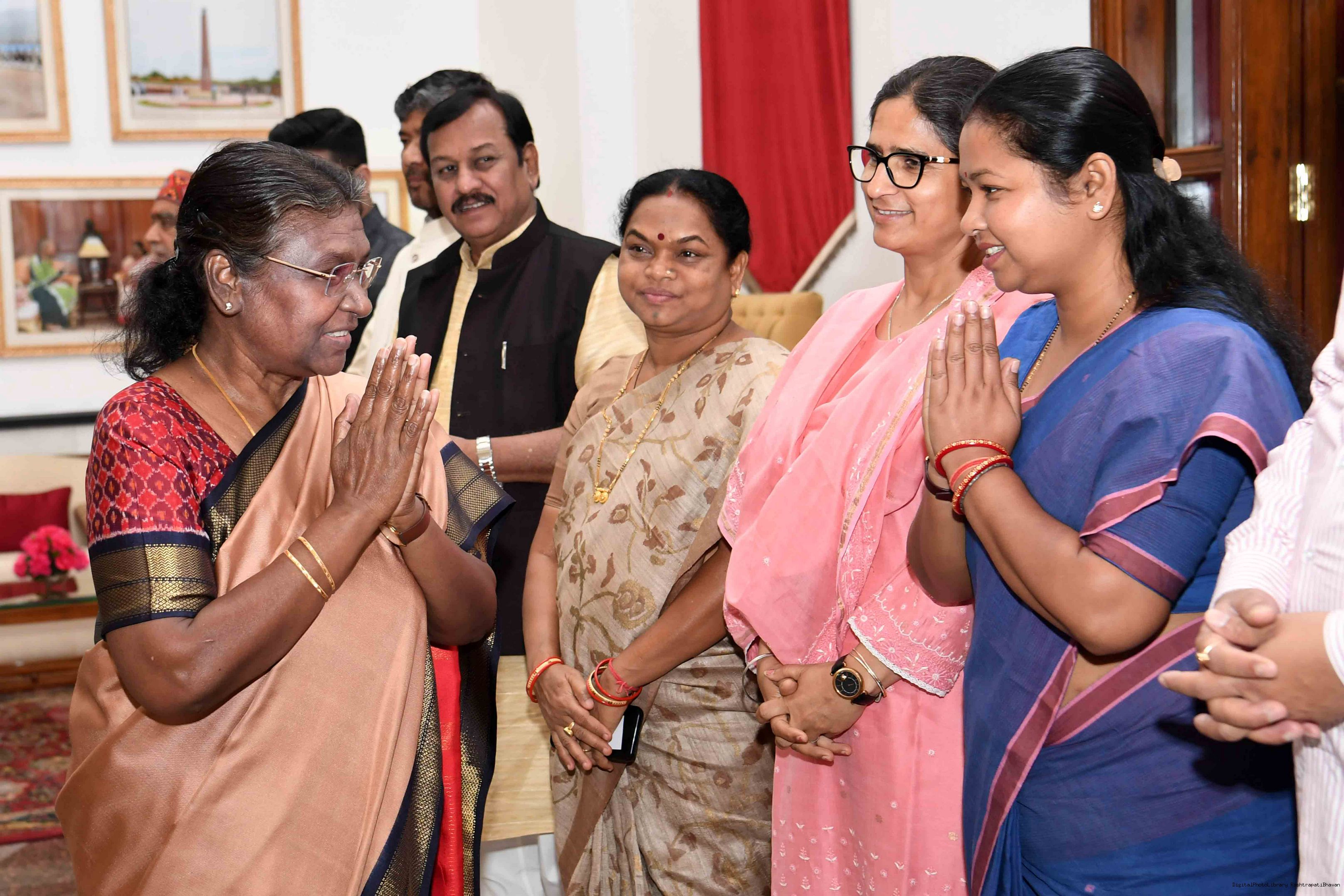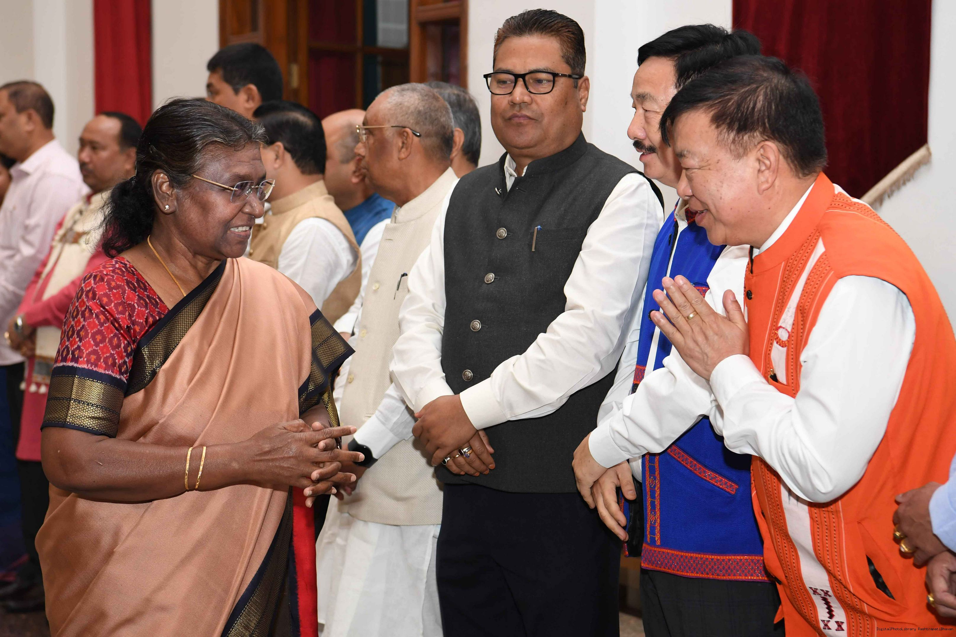 | Caption: | The President of India Smt. Droupadi Murmu breakfast meeting with the Members of Parliament (LS RS) at Rashtrapati Bhavan on April 03, 2023. |