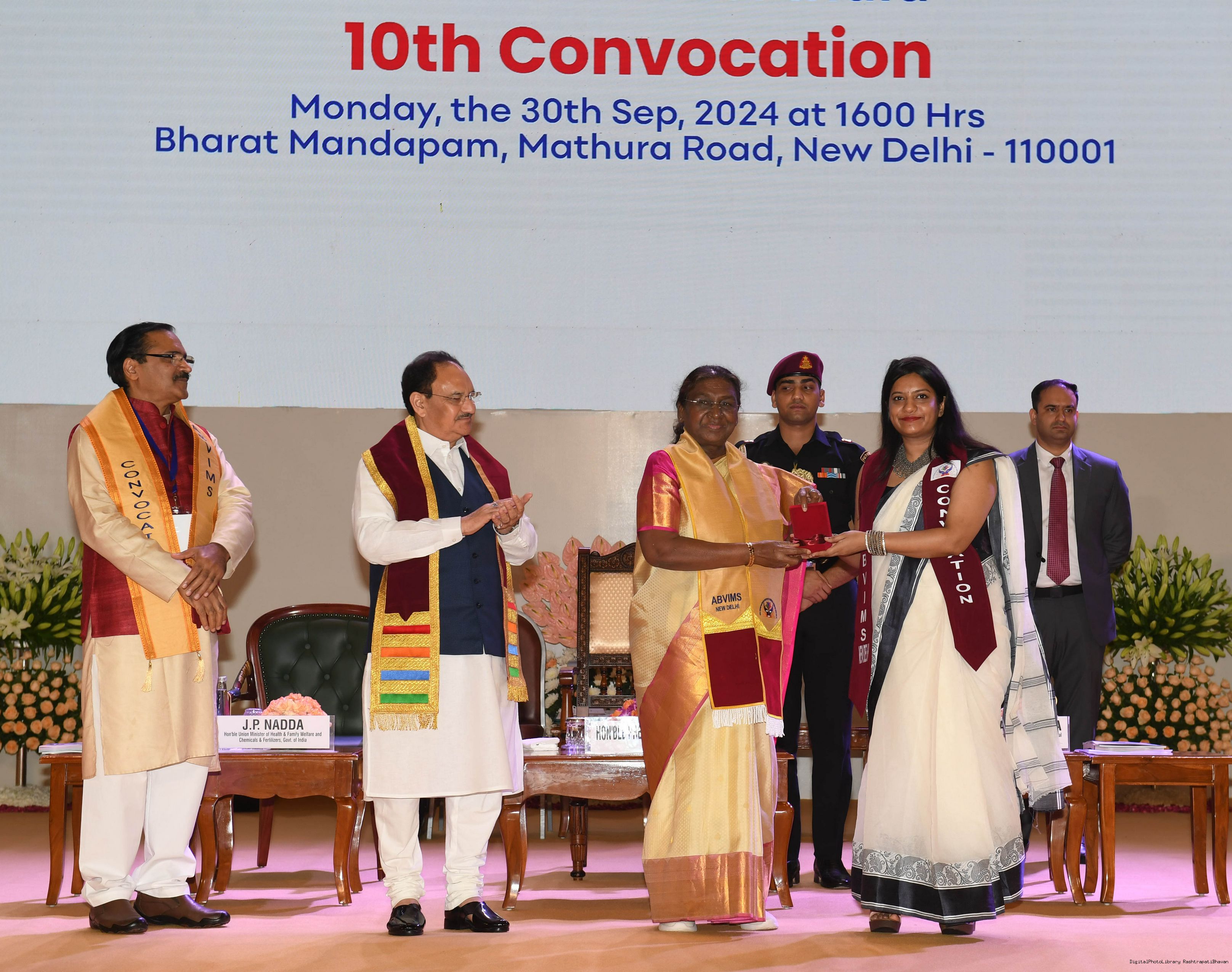 | Caption: | The President graced the 10th convocation of Atal Bihari Vajpayee Institute of Medical Sciences and Dr Ram Manohar Lohia Hospital 30-09-2024. |