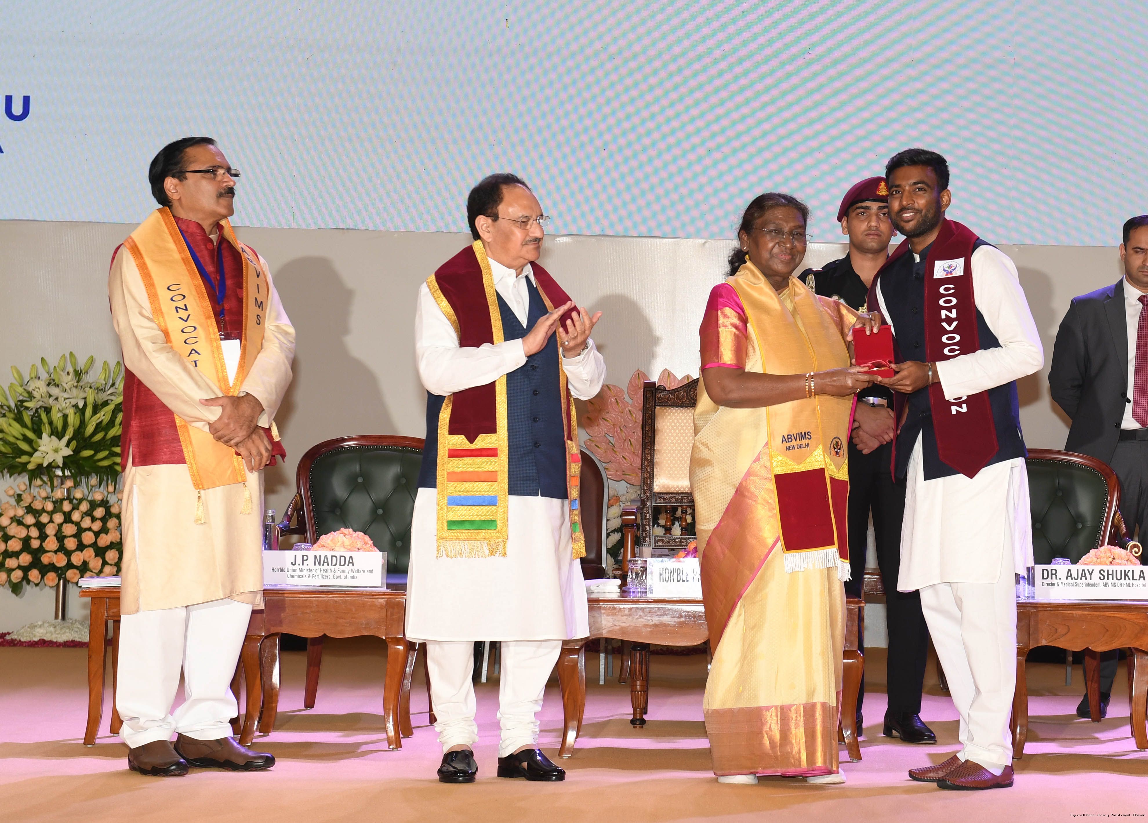 | Category: | The President graced the 10th convocation of Atal Bihari Vajpayee Institute of Medical Sciences and Dr Ram Manohar Lohia Hospital 30-09-2024. |