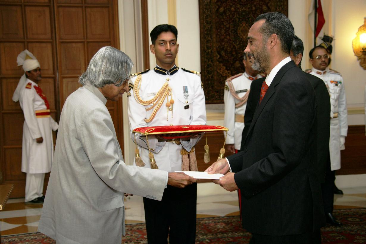 | Caption: | The High Commissioner-Designate of Jamaica to India, HE Mr Paul Anthony Robotham presenting his credentials to the President of India, Dr A P J Abdul Kalam at the Yellow Drawing Room of Rashtrapati Bhavan in New Delhi on March 13, 2007 |