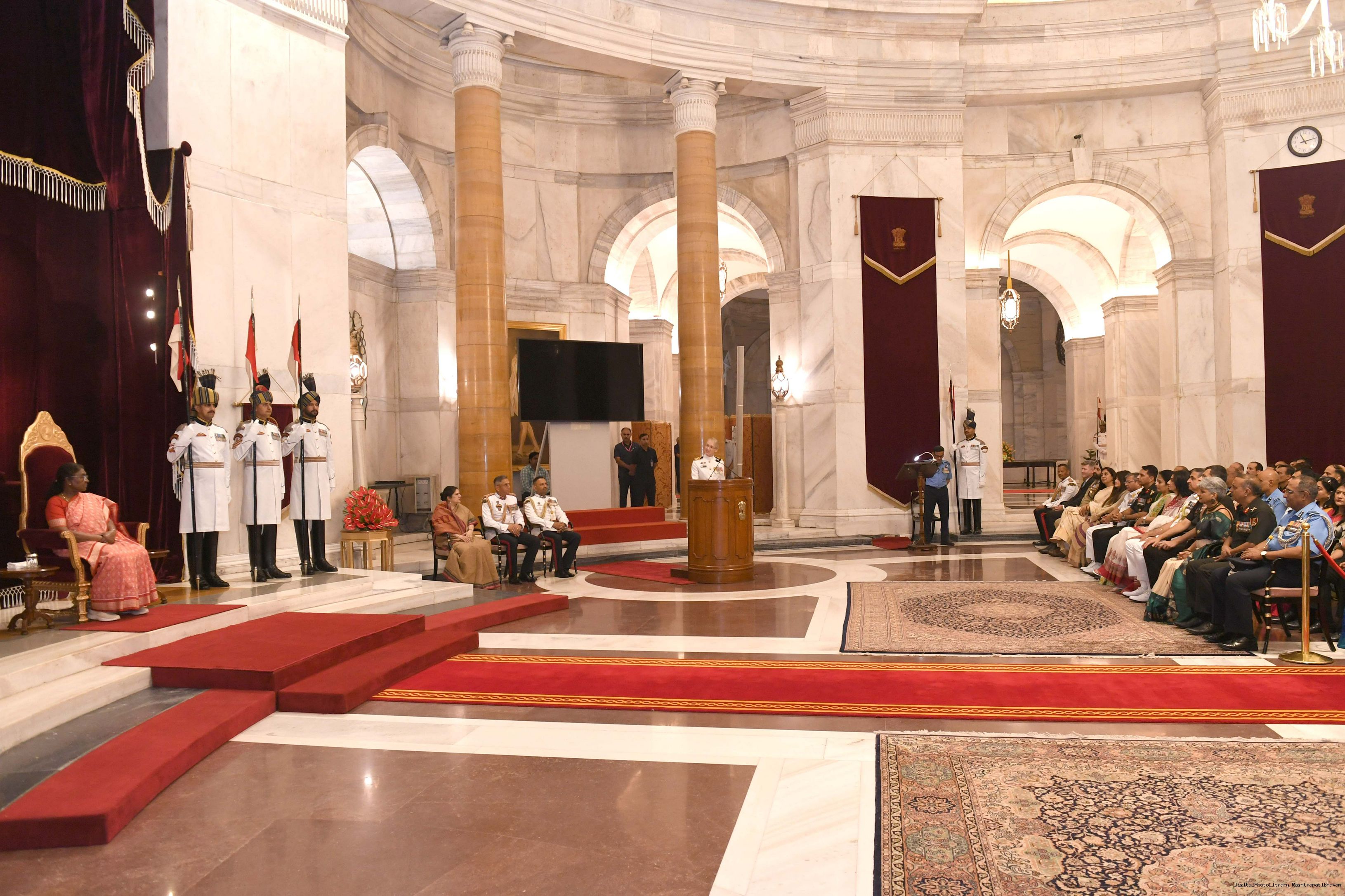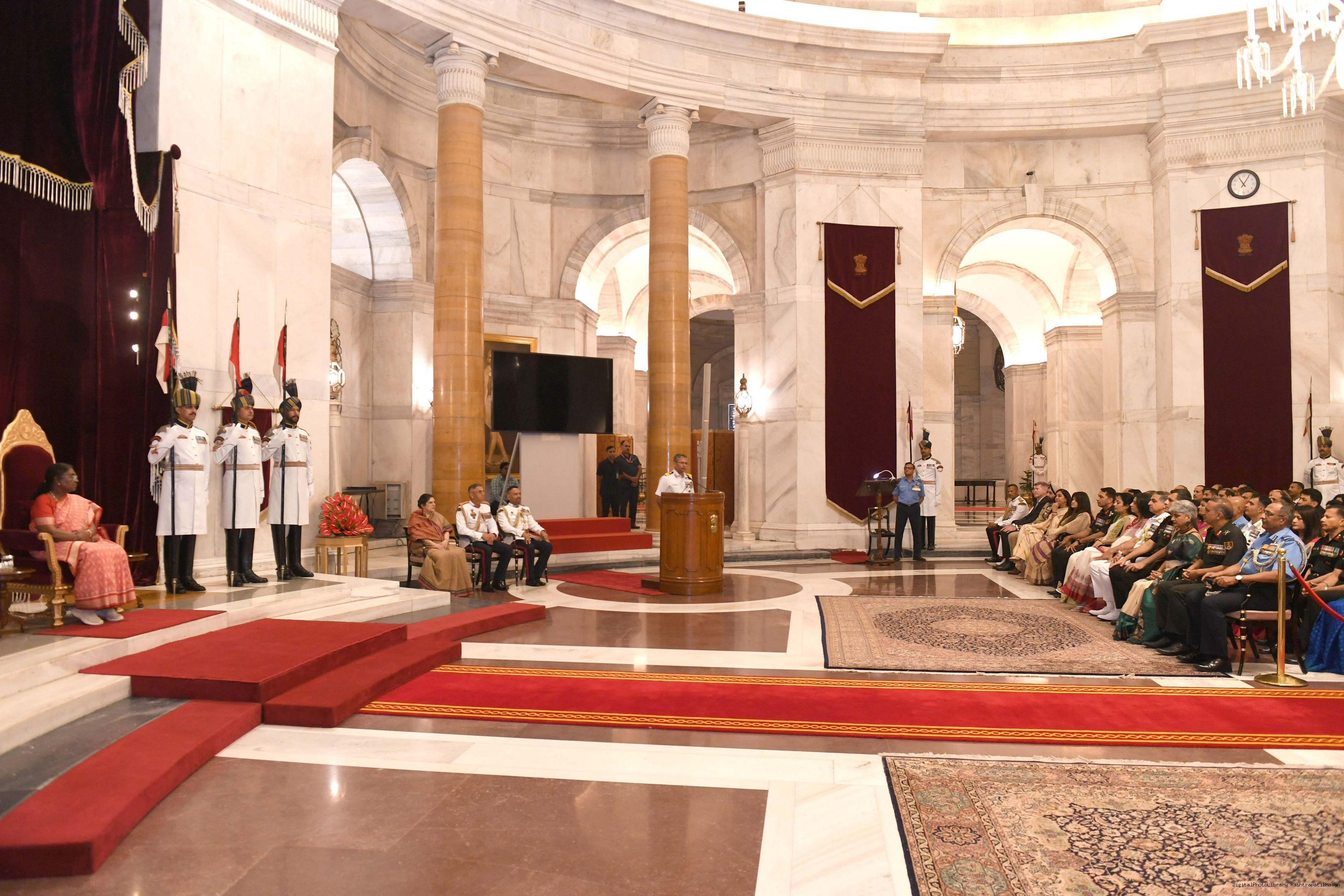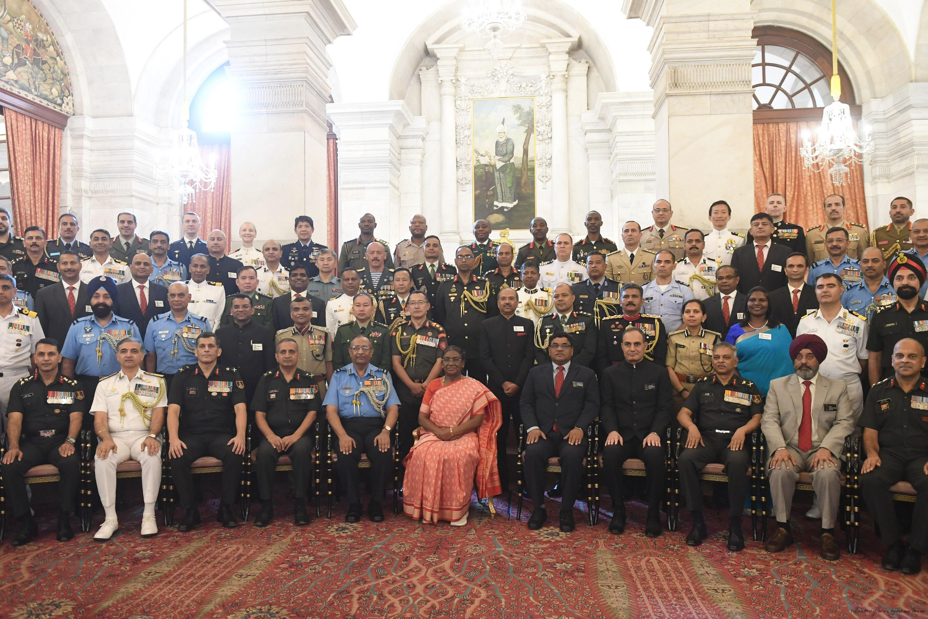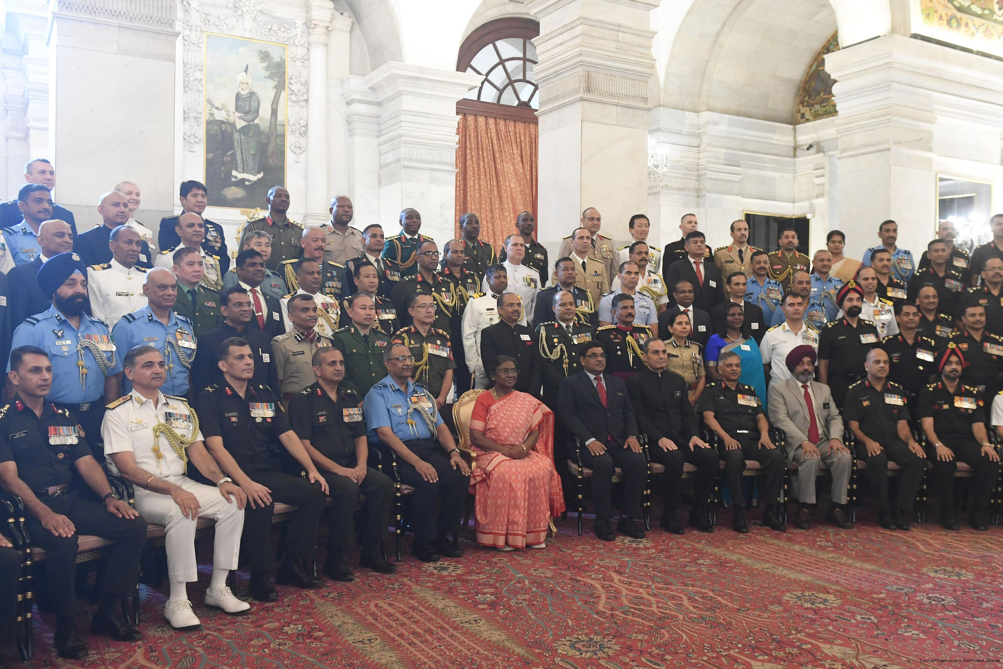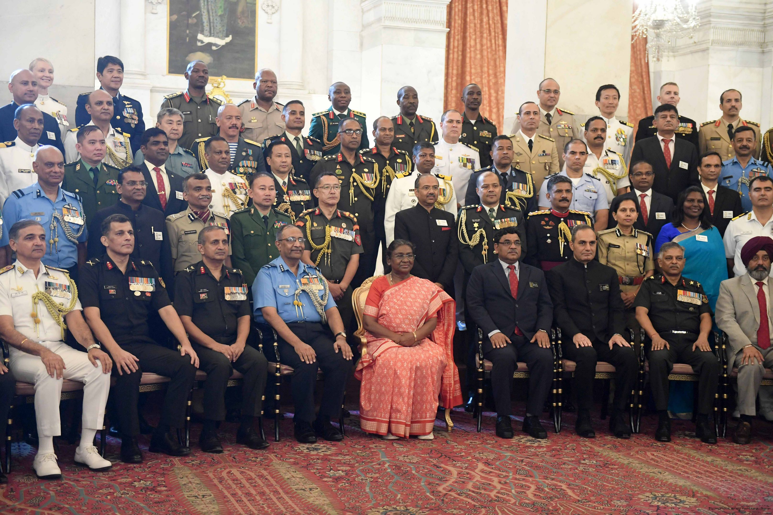 | Caption: | The President of India Smt. Droupadi Murmu met the faculty and course members of the 64th NDC Course at Rashtrapati Bhavan on October 01, 2024. |