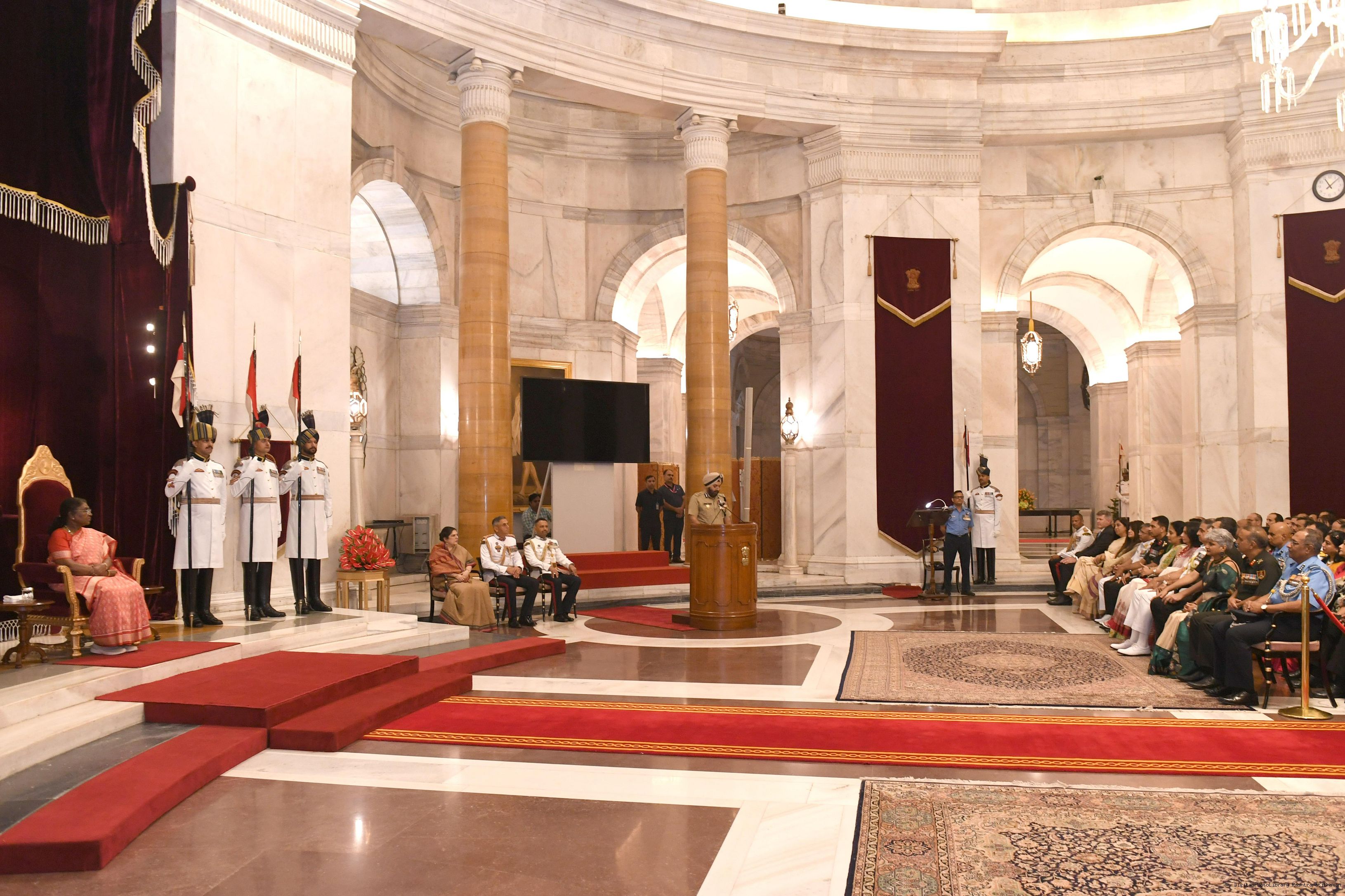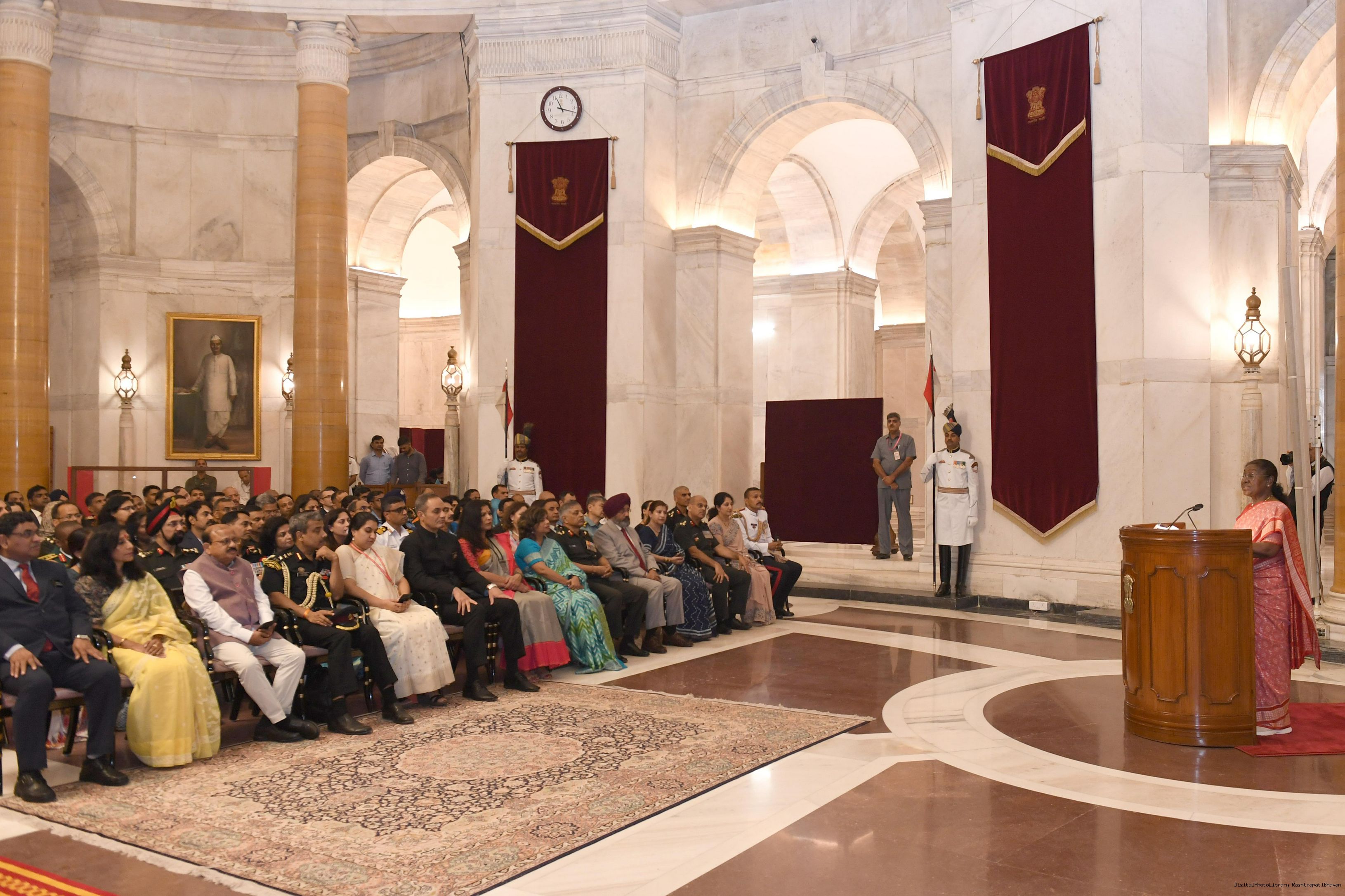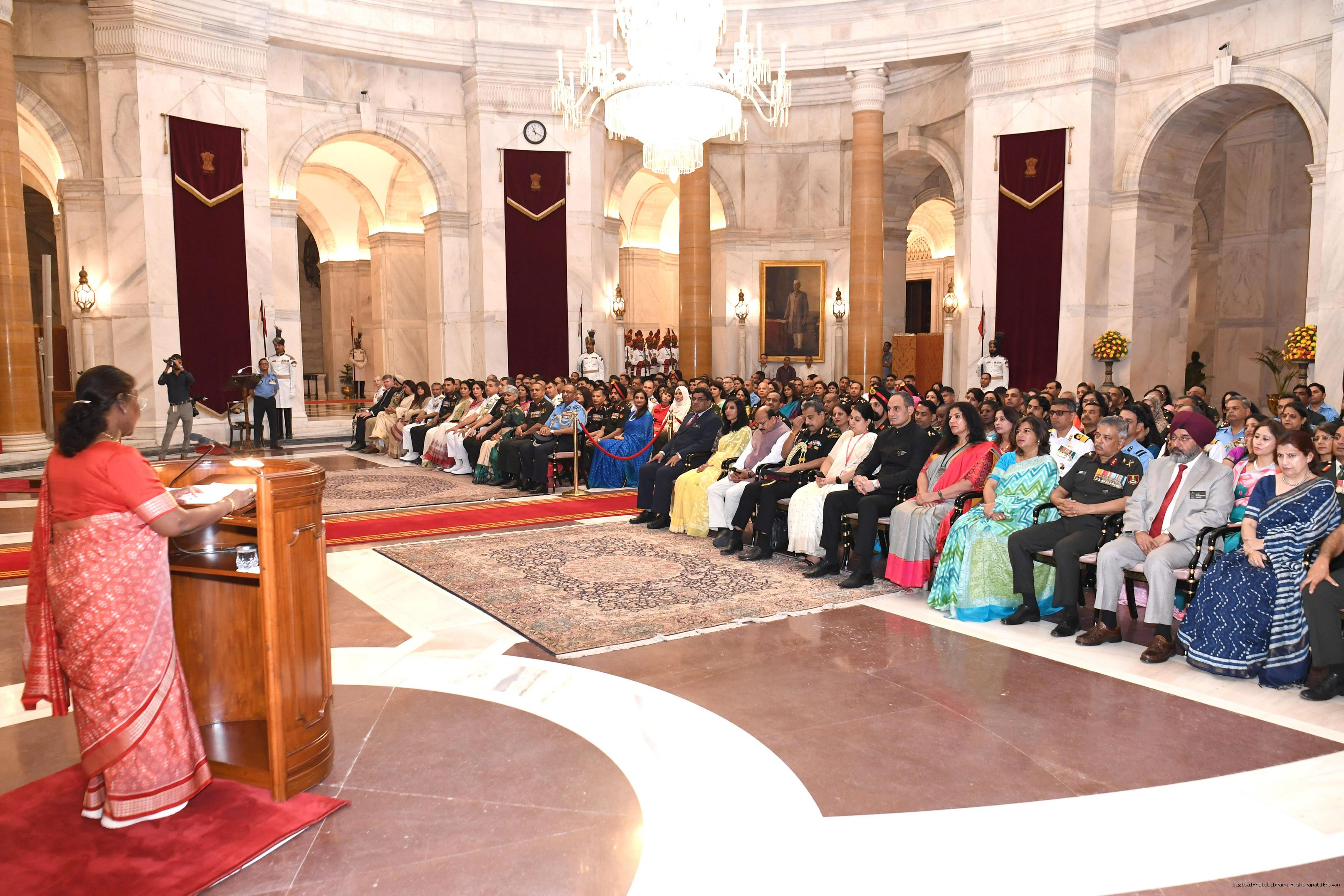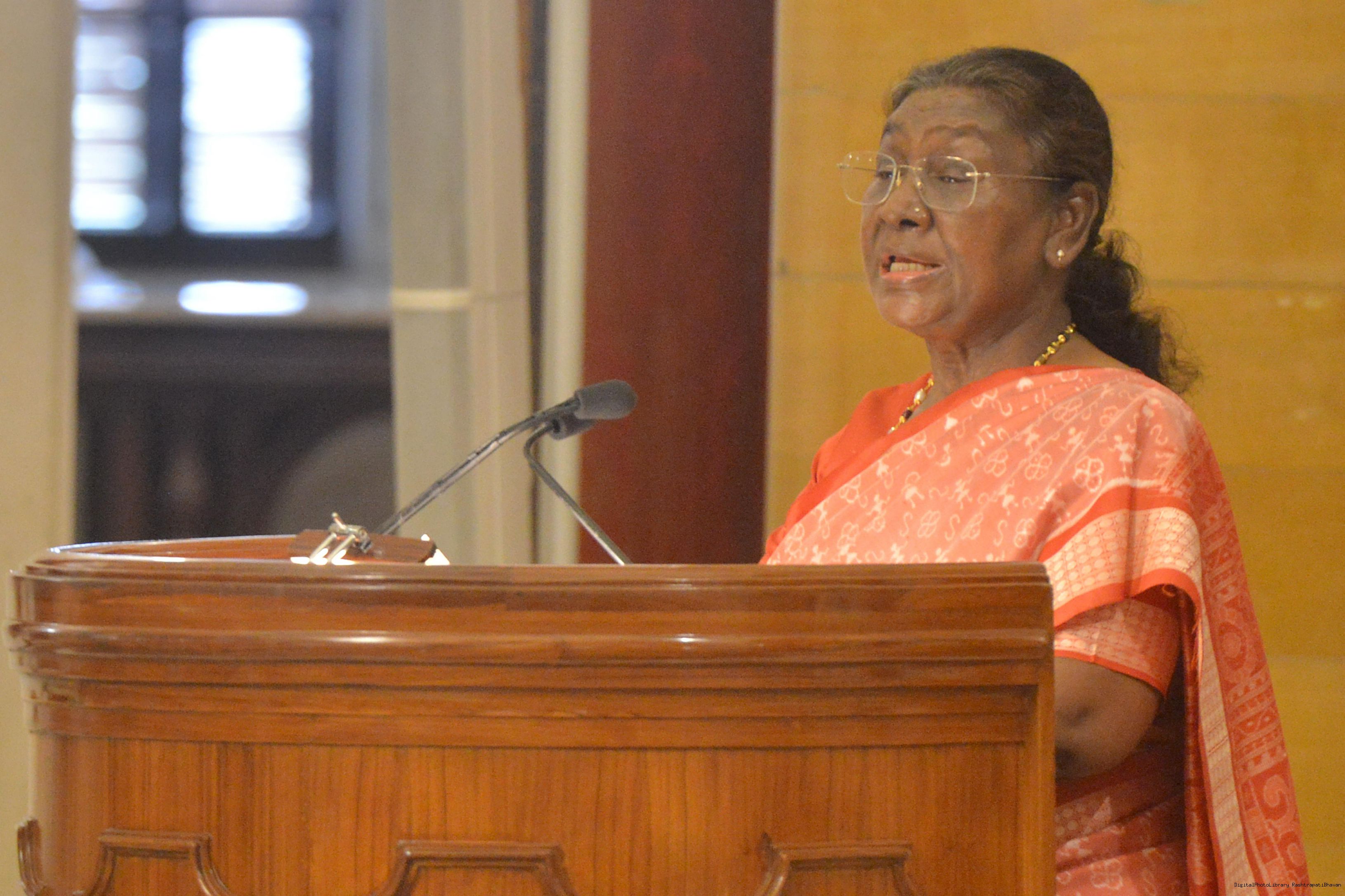 | Caption: | The President of India Smt. Droupadi Murmu met the faculty and course members of the 64th NDC Course at Rashtrapati Bhavan on October 01, 2024. |
