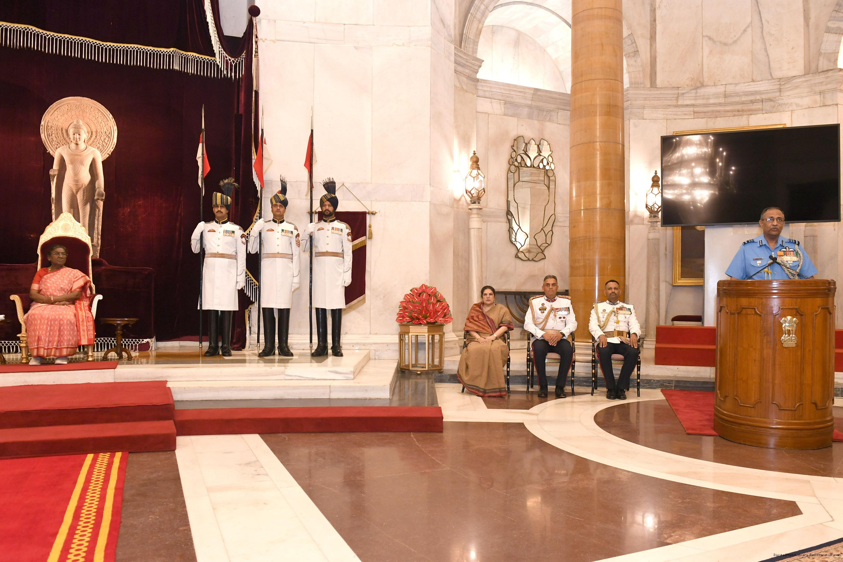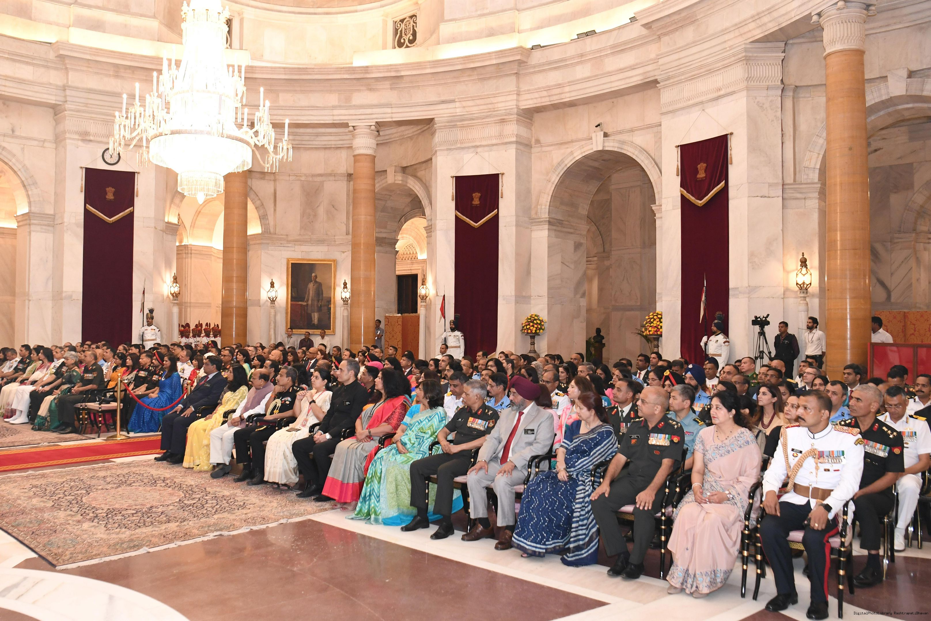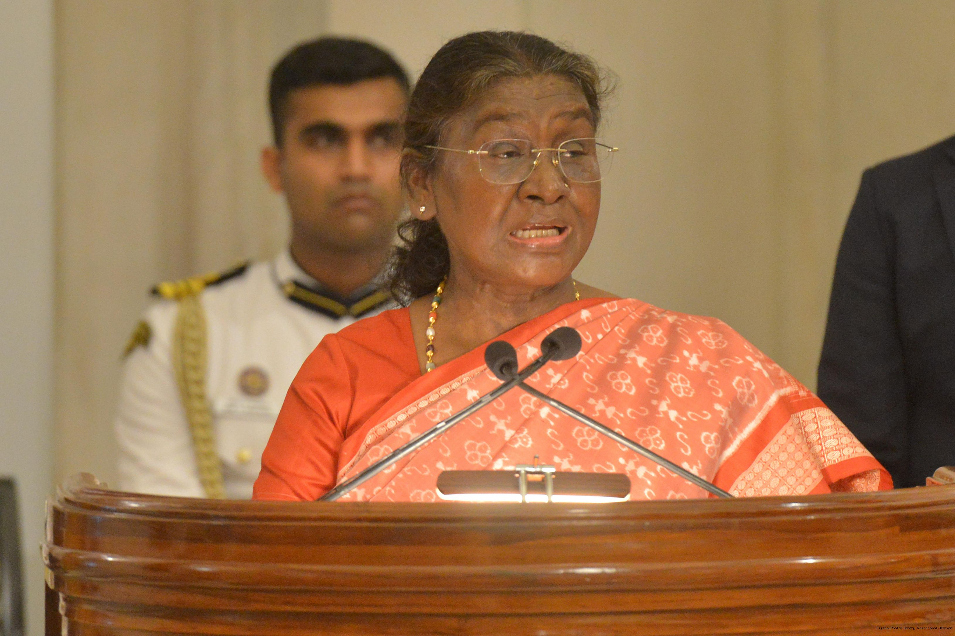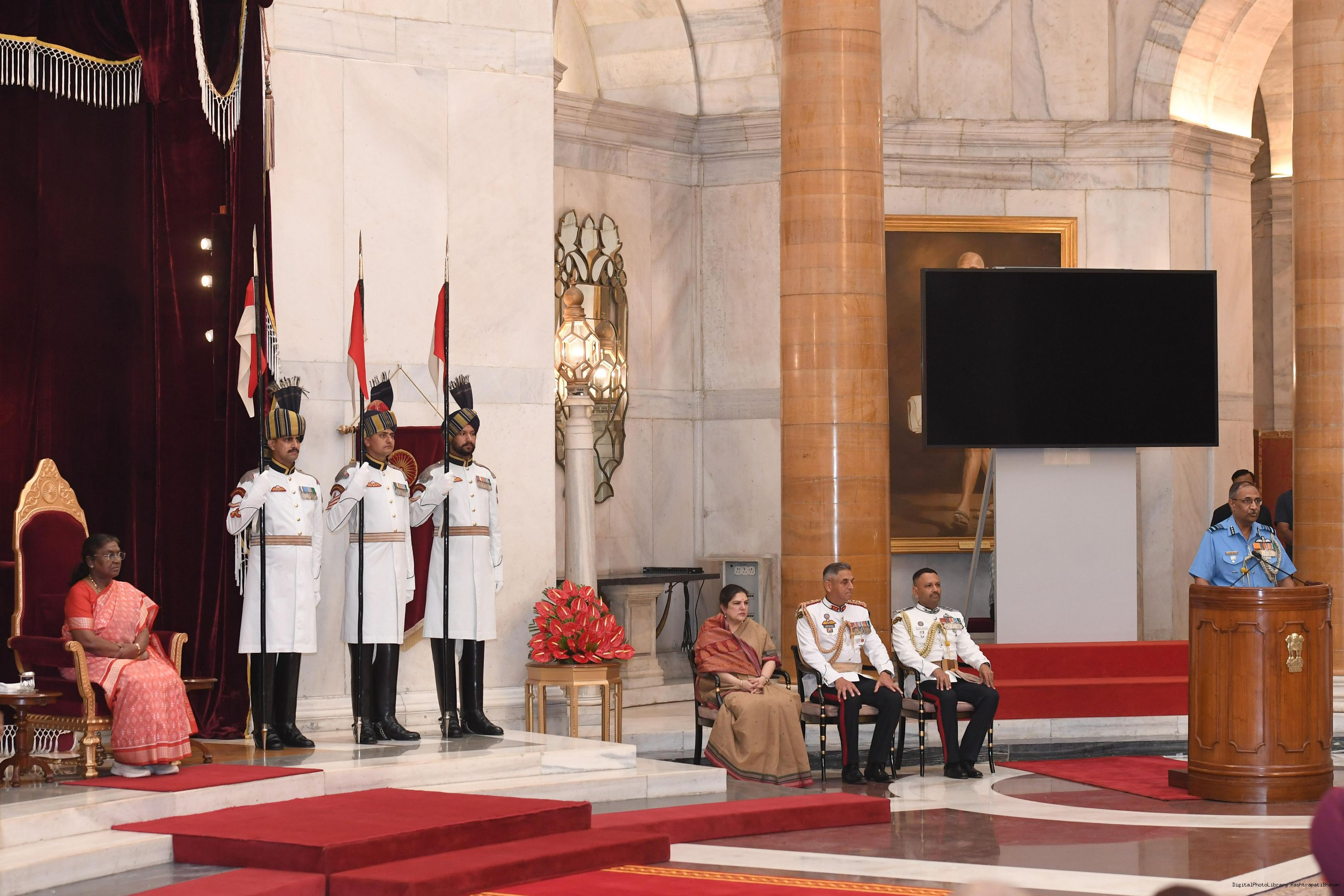 | Caption: | The President of India Smt. Droupadi Murmu met the faculty and course members of the 64th NDC Course at Rashtrapati Bhavan on October 01, 2024. |