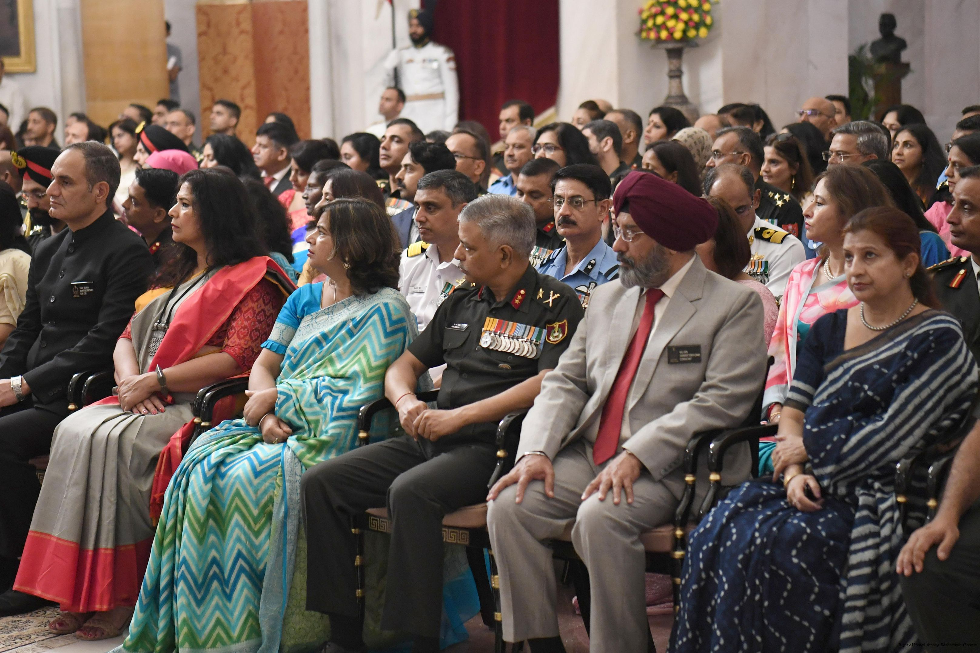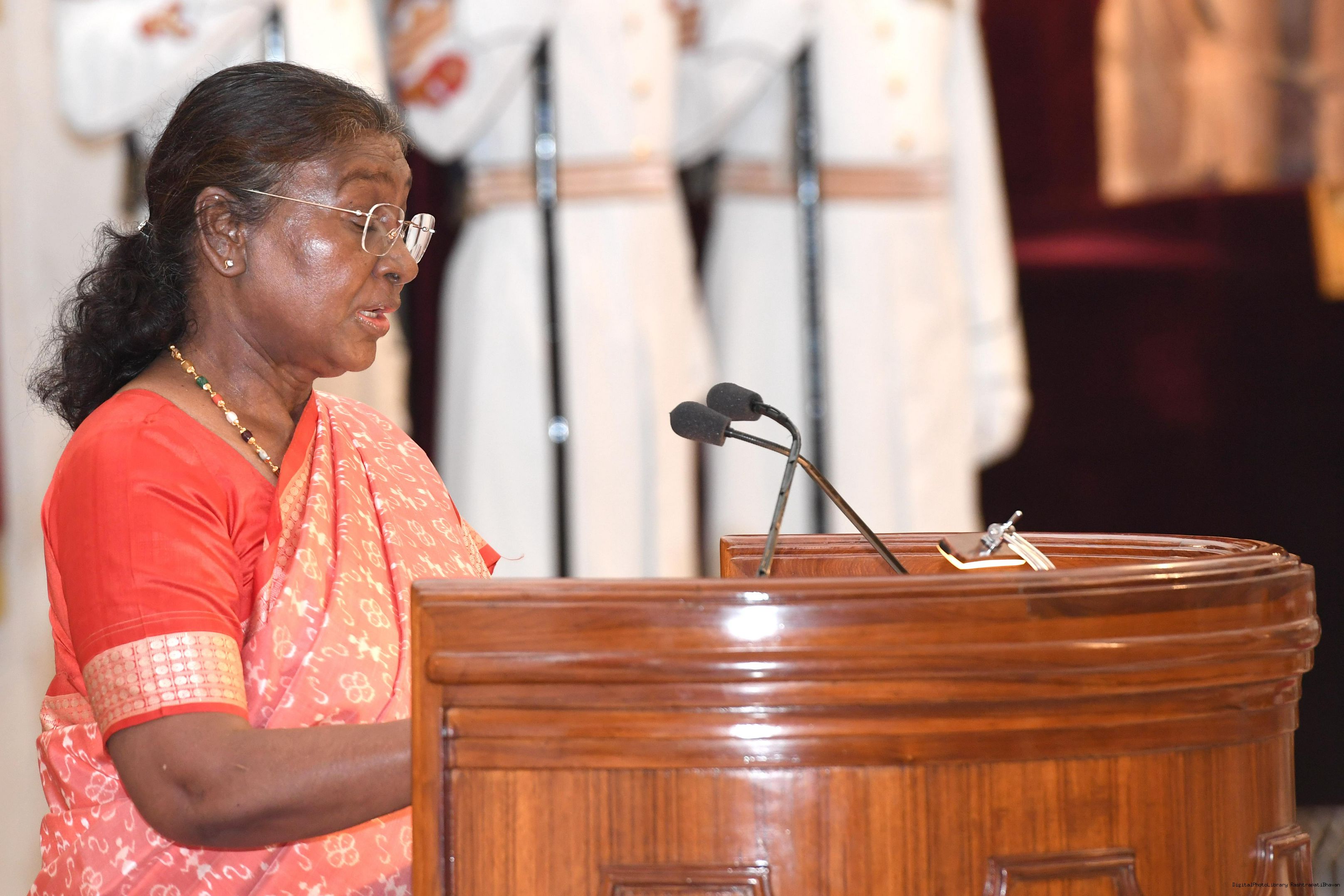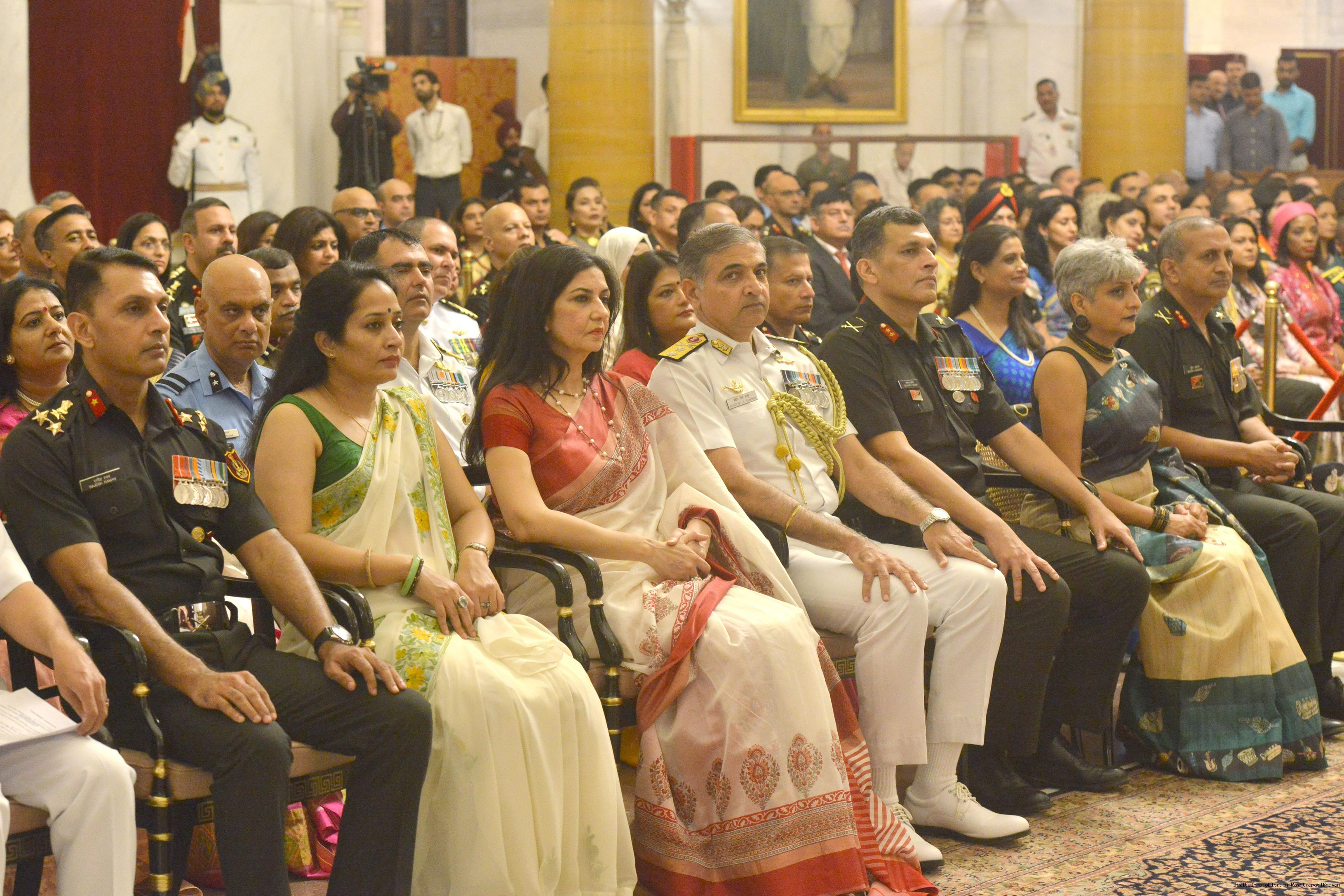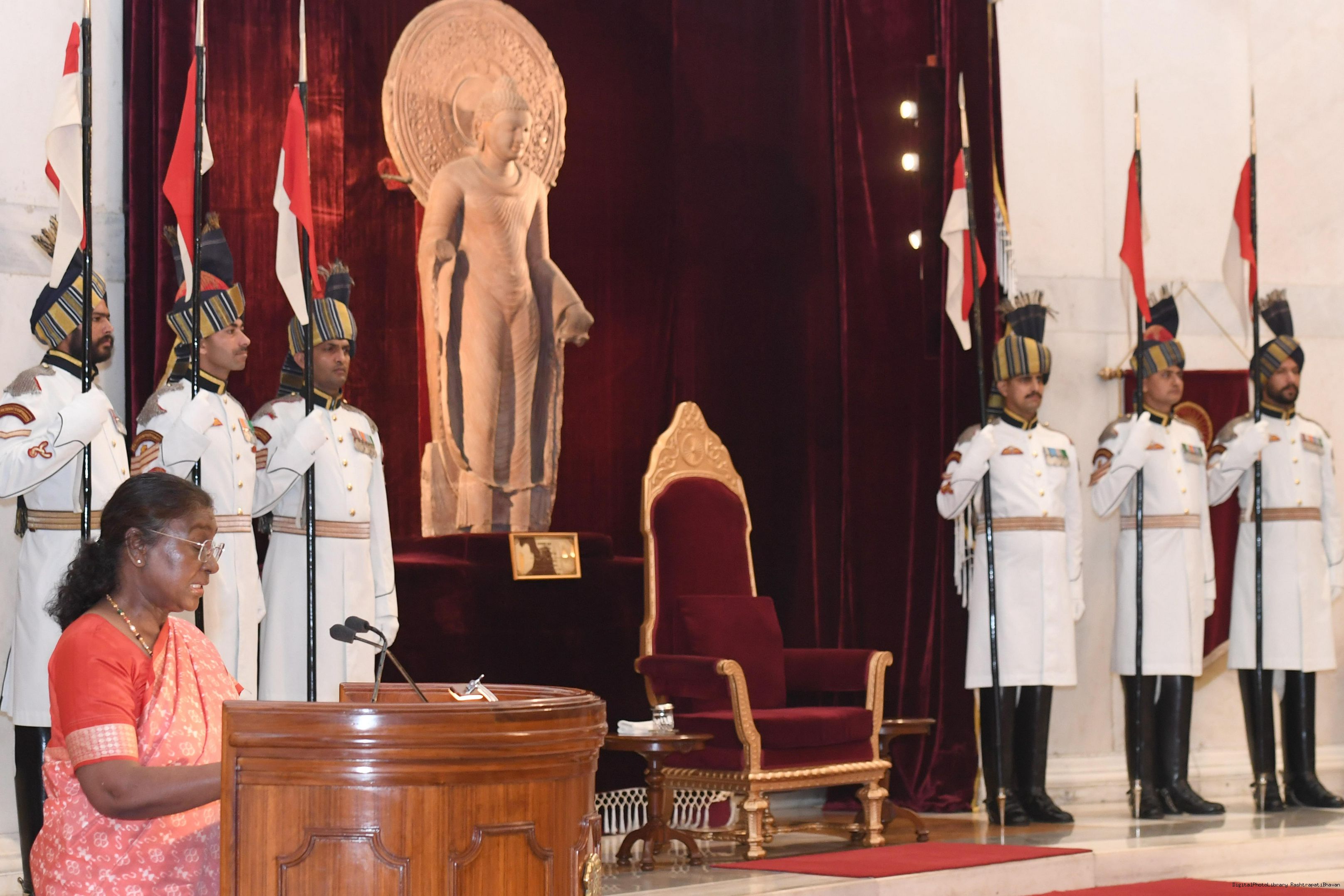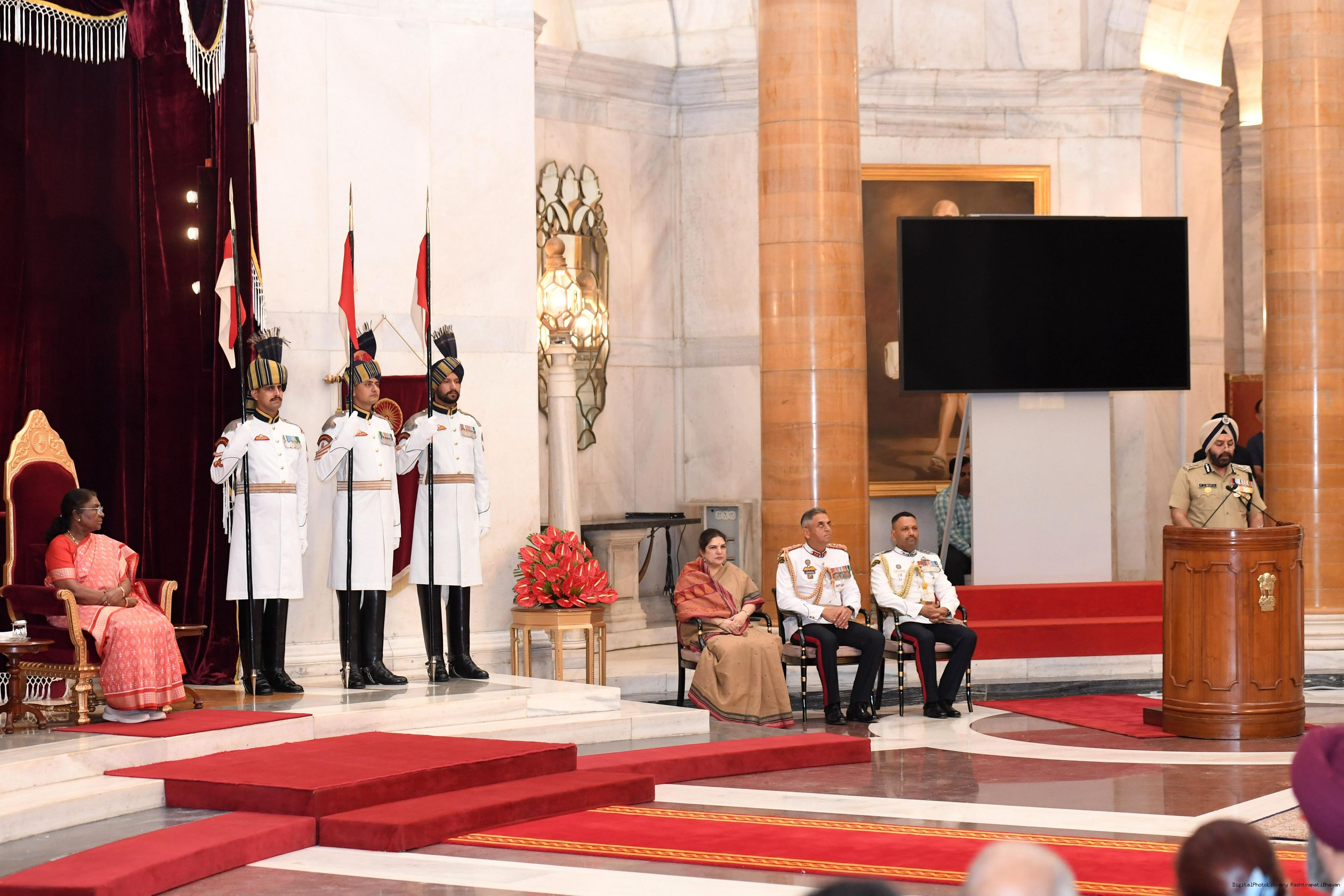| Caption: | The President of India Smt. Droupadi Murmu met the faculty and course members of the 64th NDC Course at Rashtrapati Bhavan on October 01, 2024. |