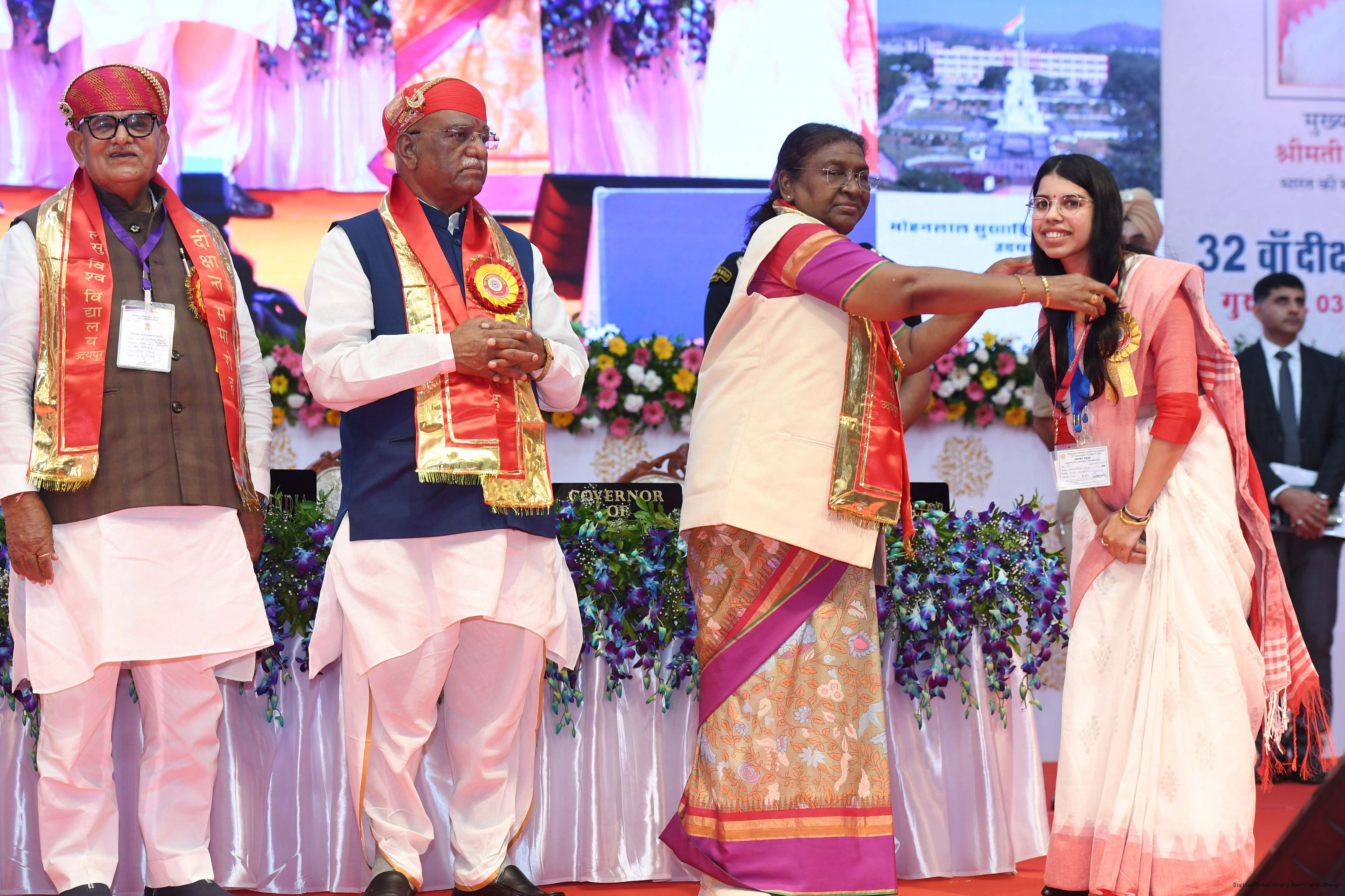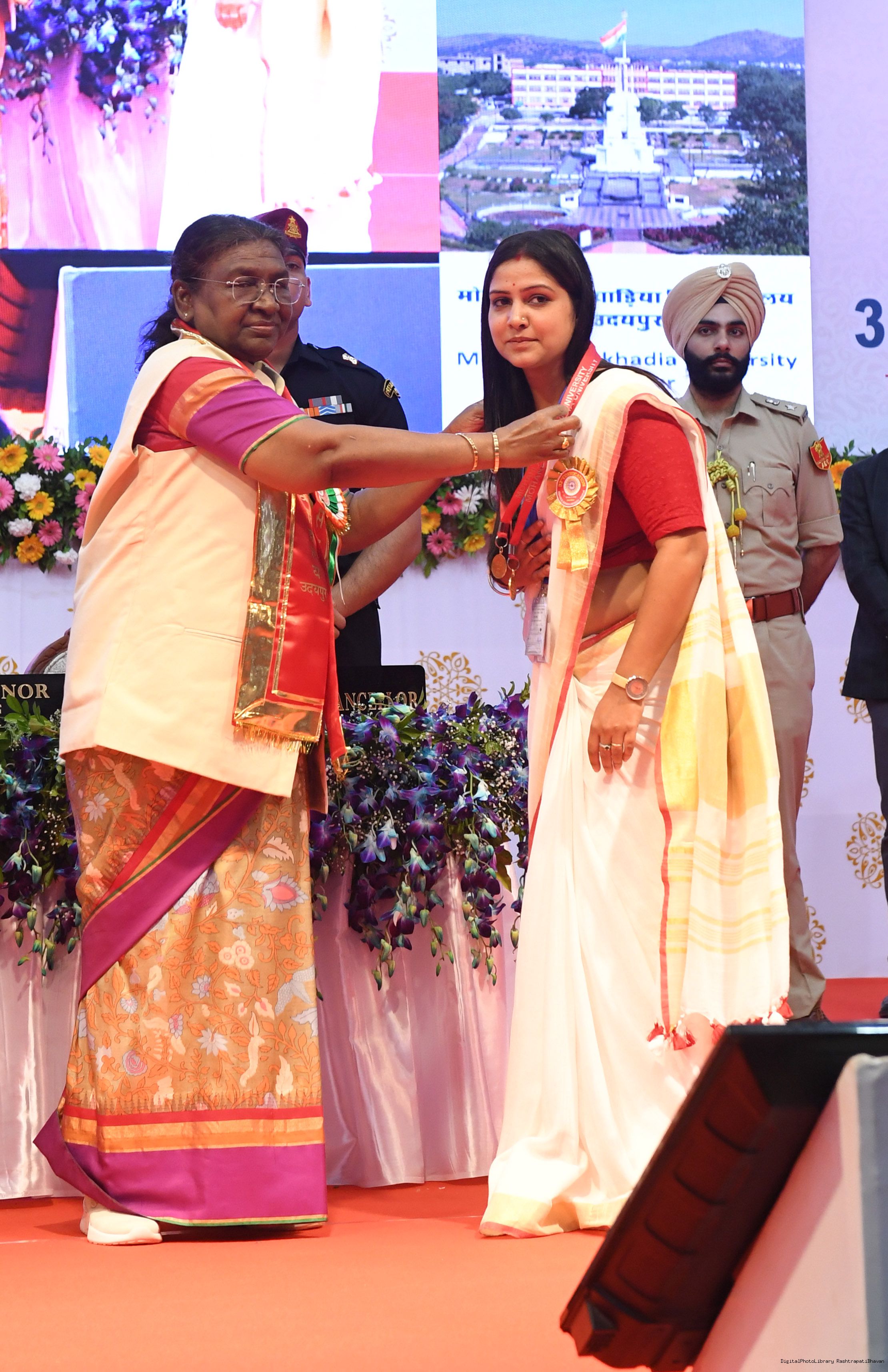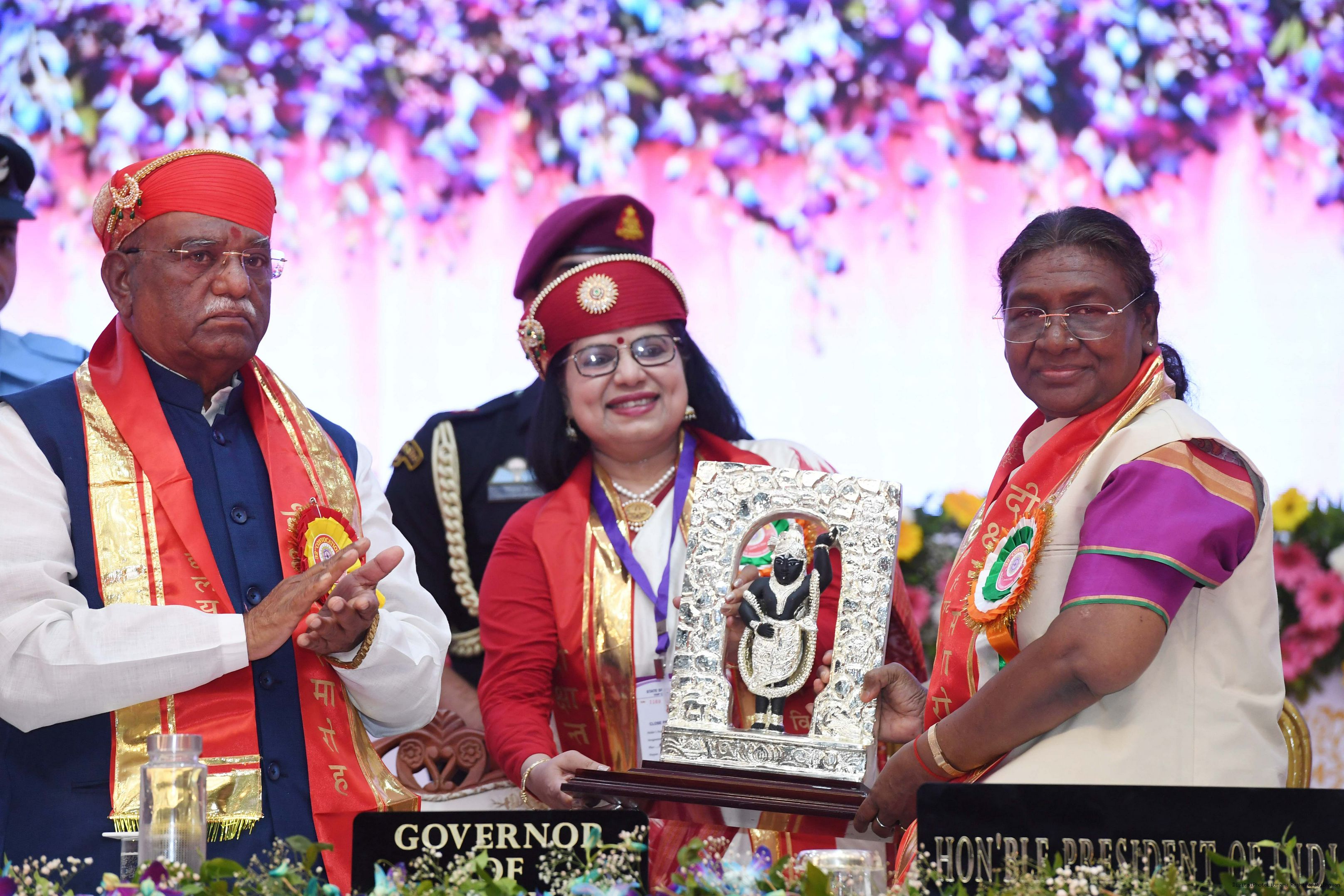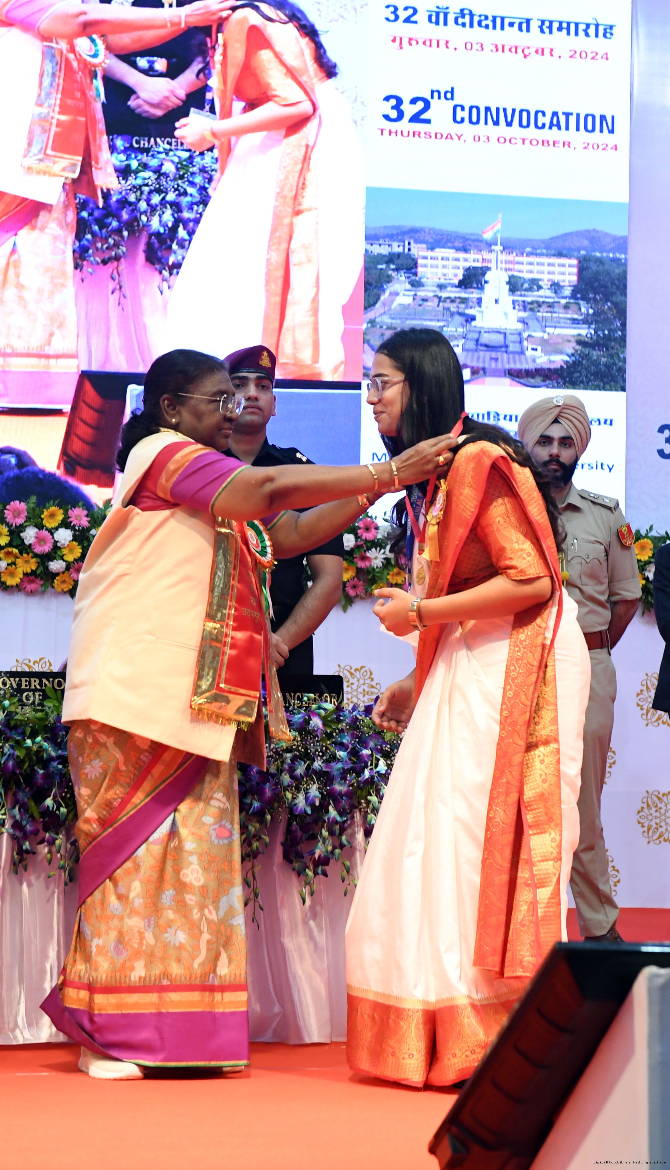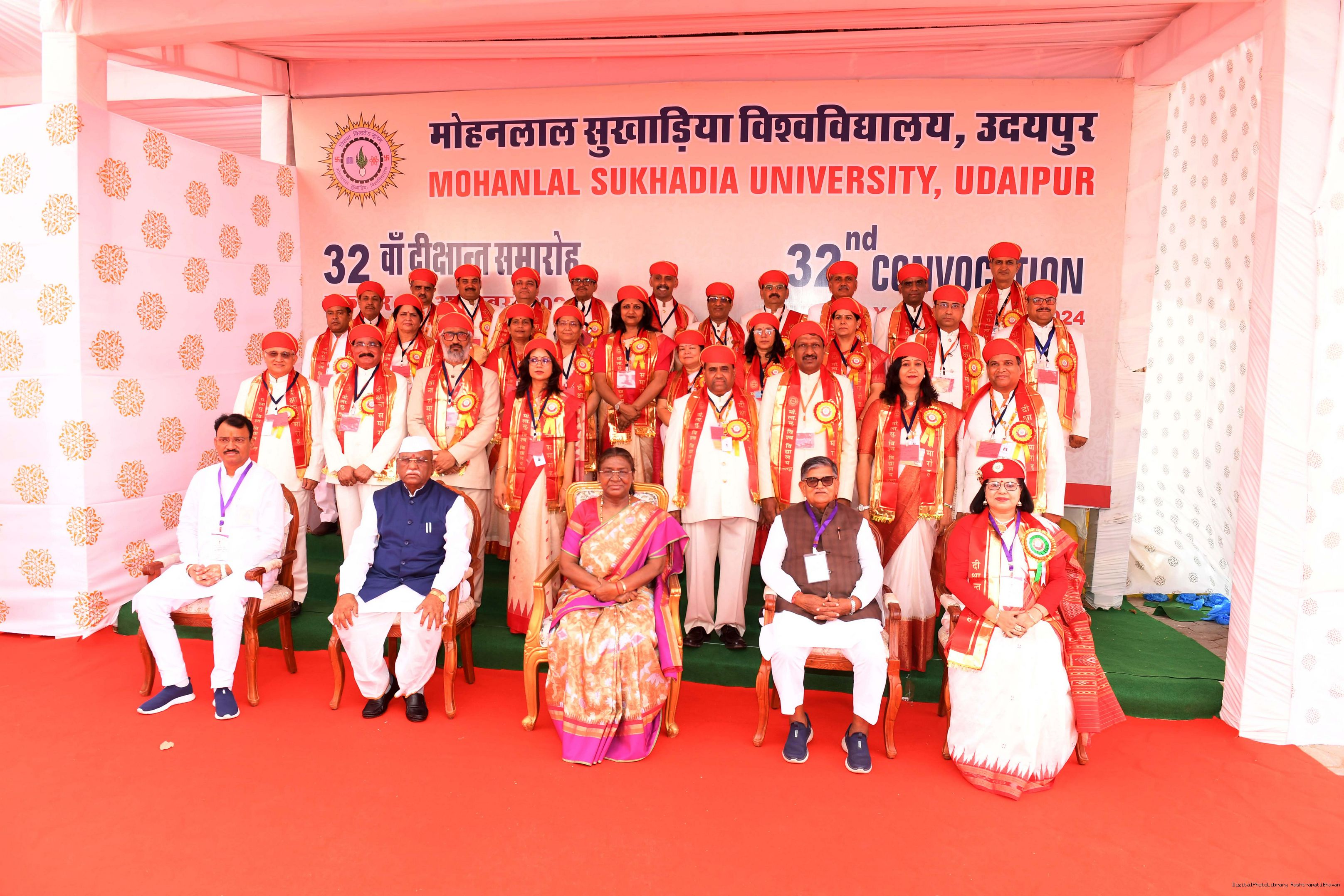 | Caption: | The President of India, Smt. Droupadi Murmu graced the 32nd convocation of Mohanlal Sukhadia University at Udaipur, Rajasthan on October 3, 2024. |