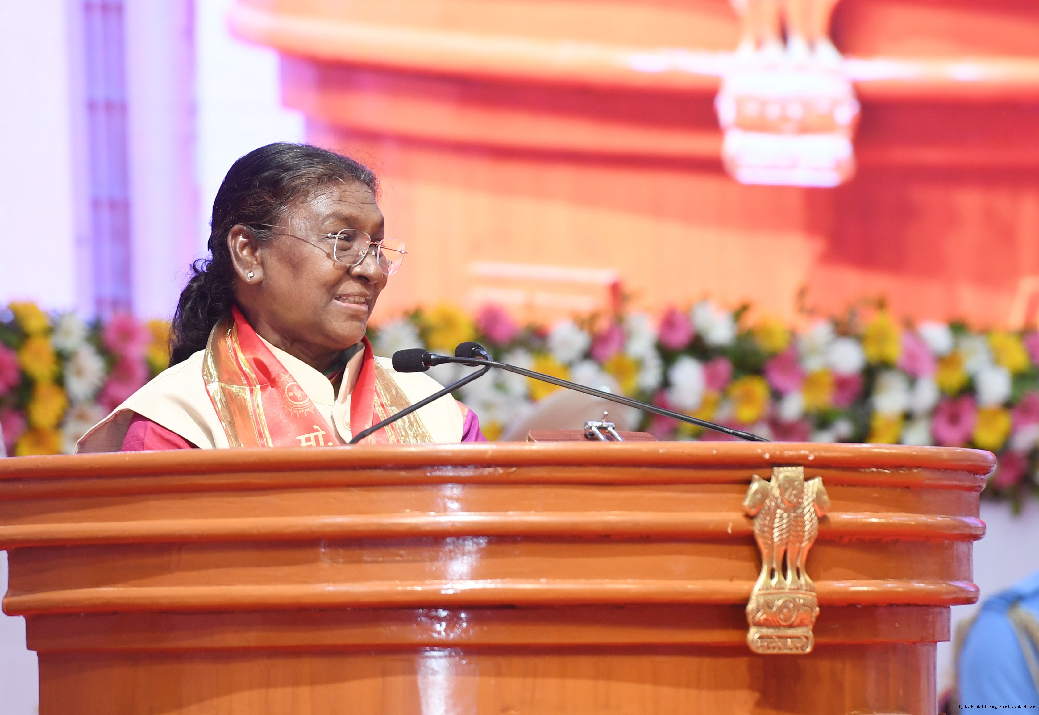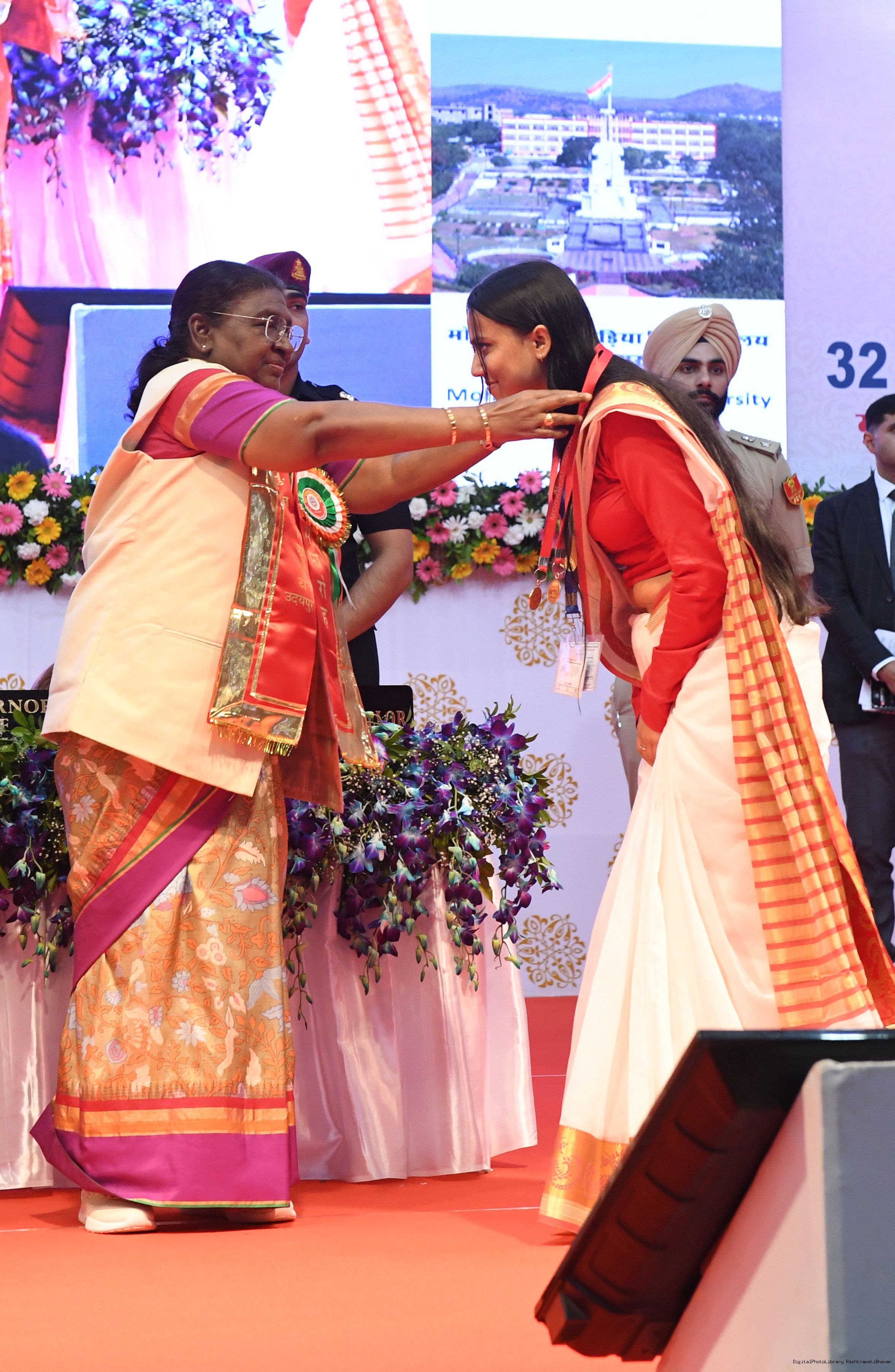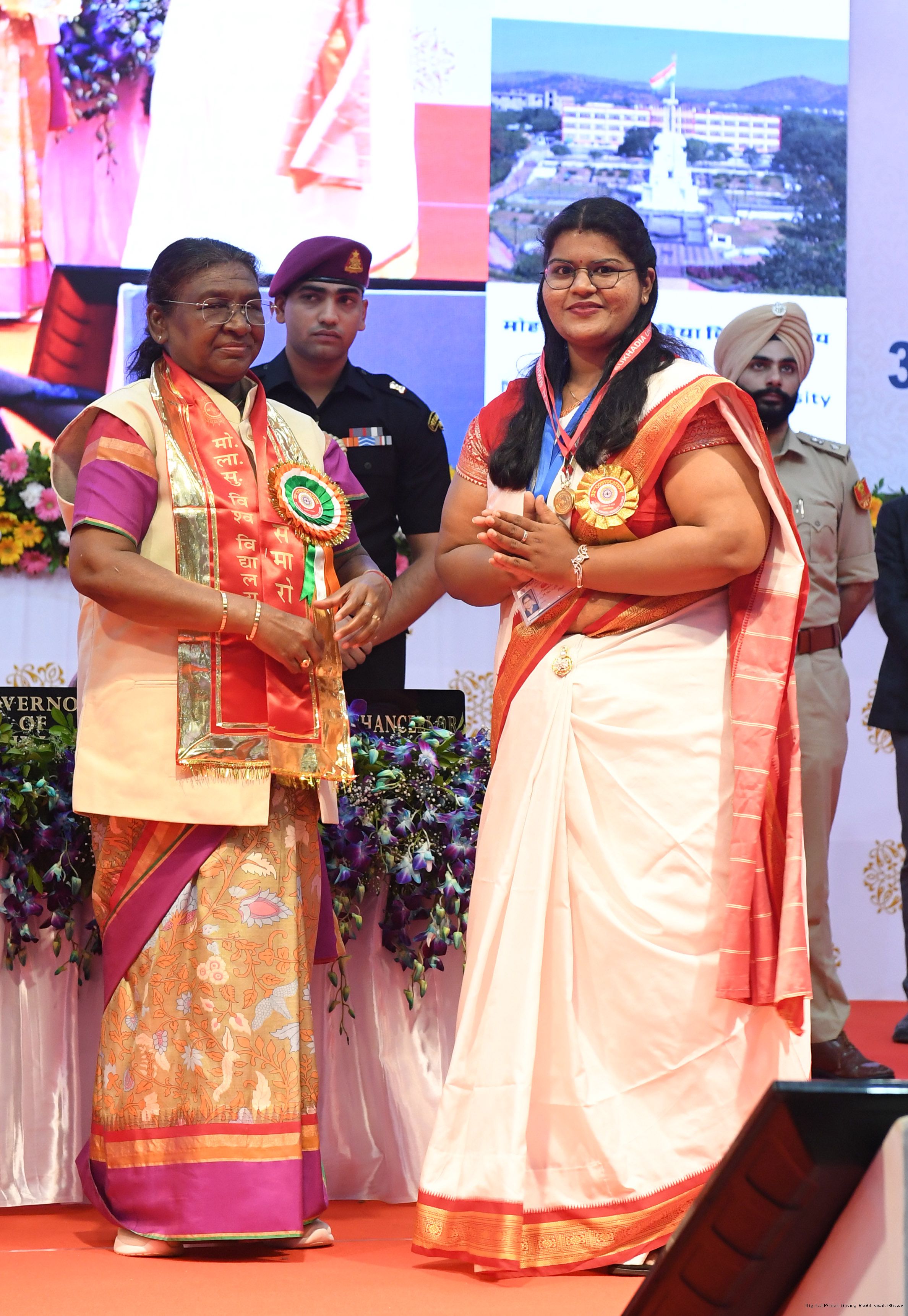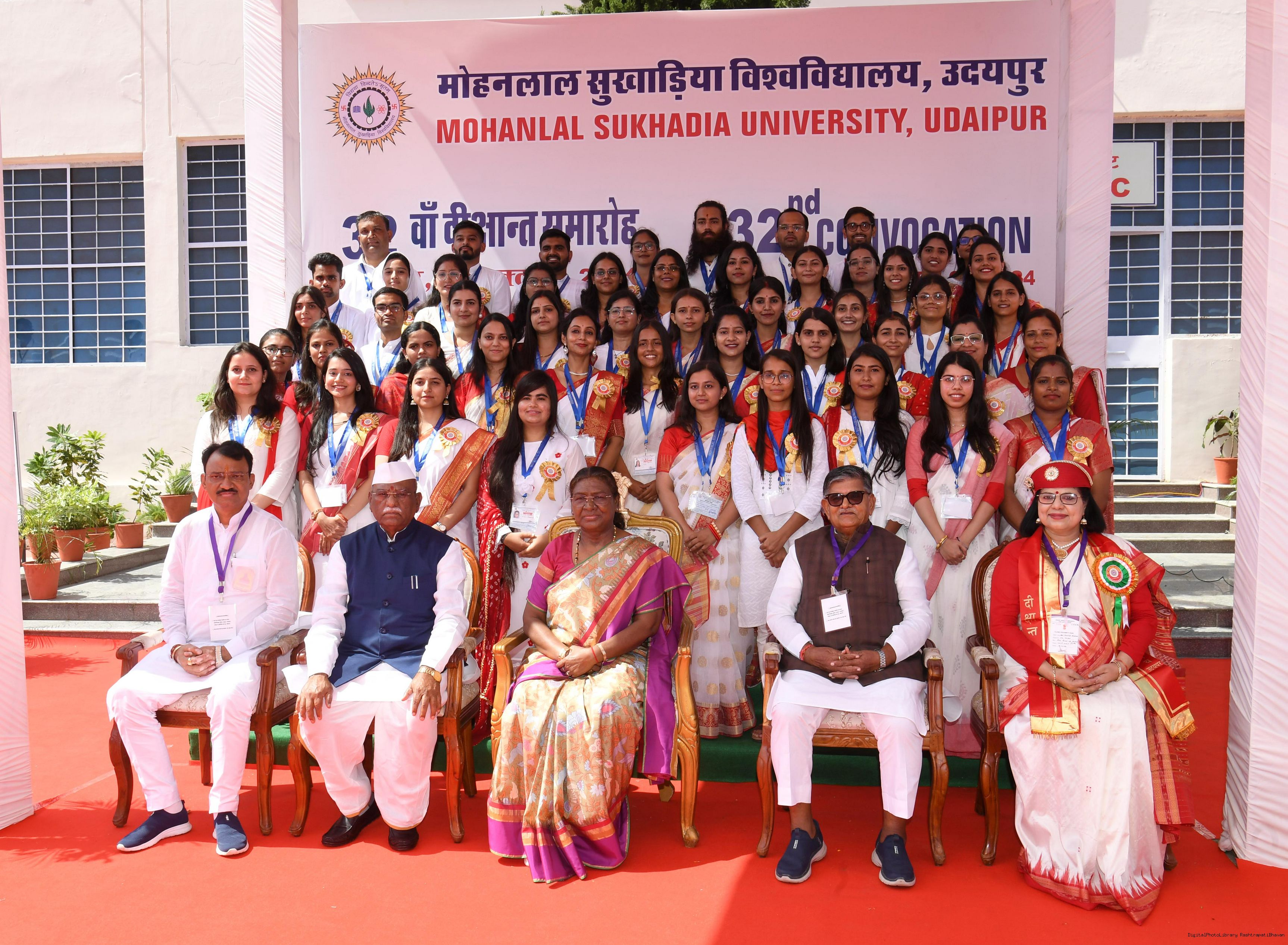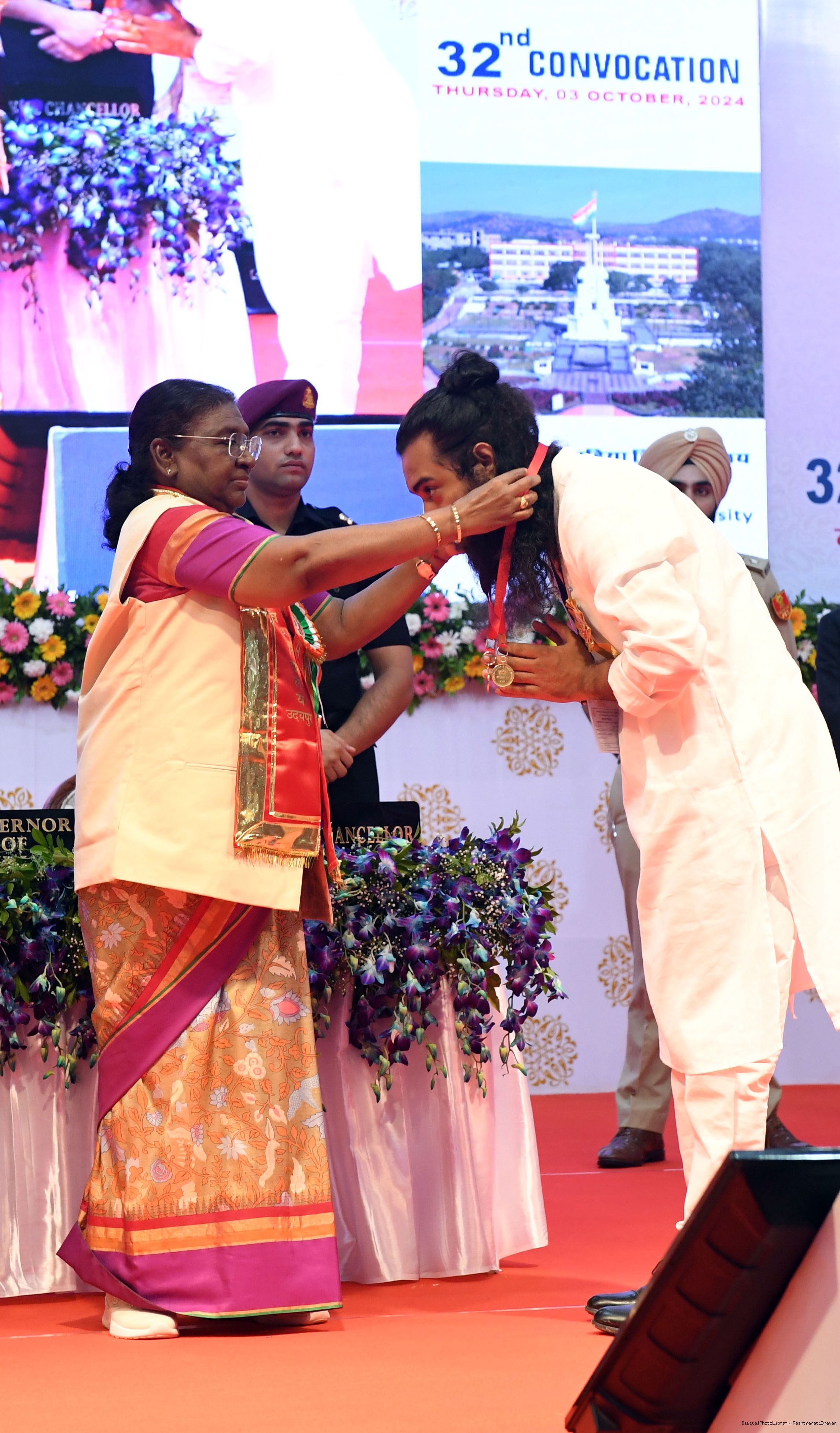 | Caption: | The President of India, Smt. Droupadi Murmu graced the 32nd convocation of Mohanlal Sukhadia University at Udaipur, Rajasthan on October 3, 2024. |