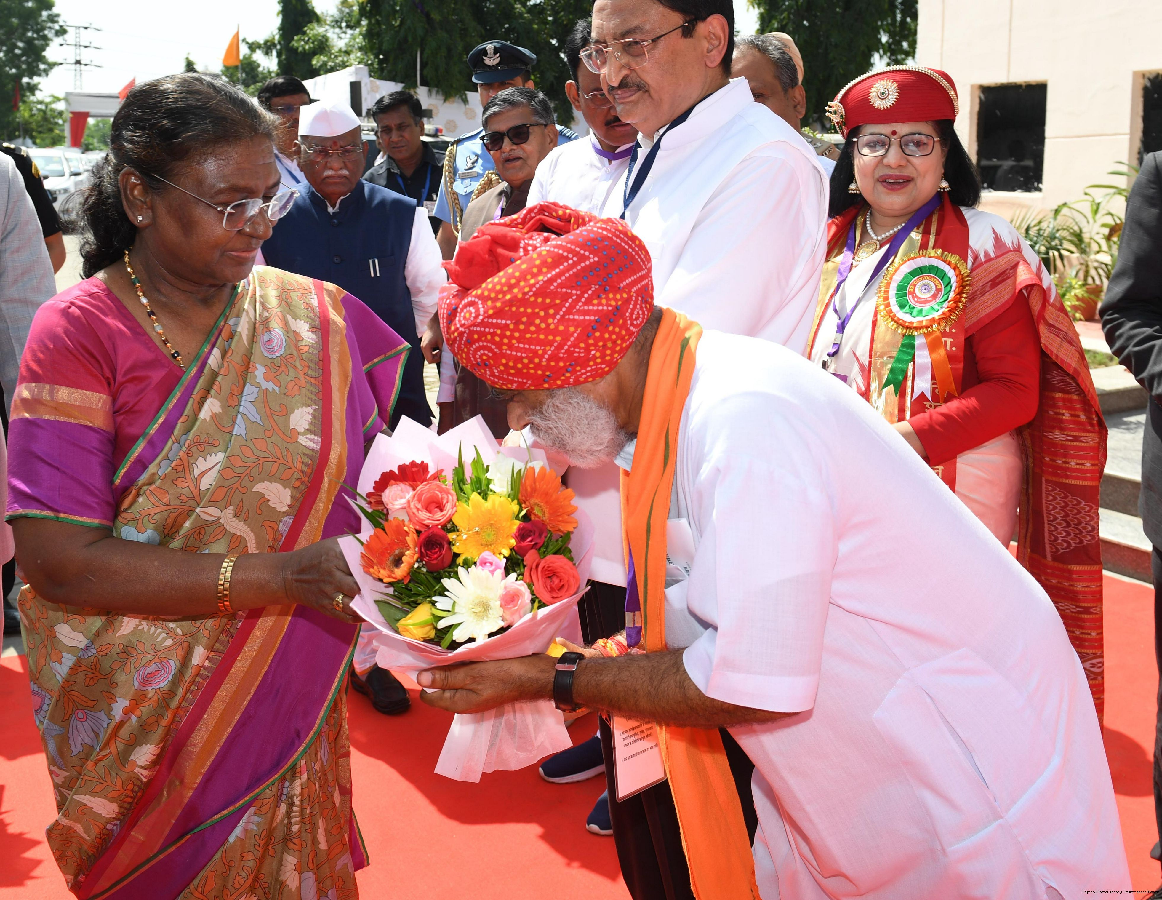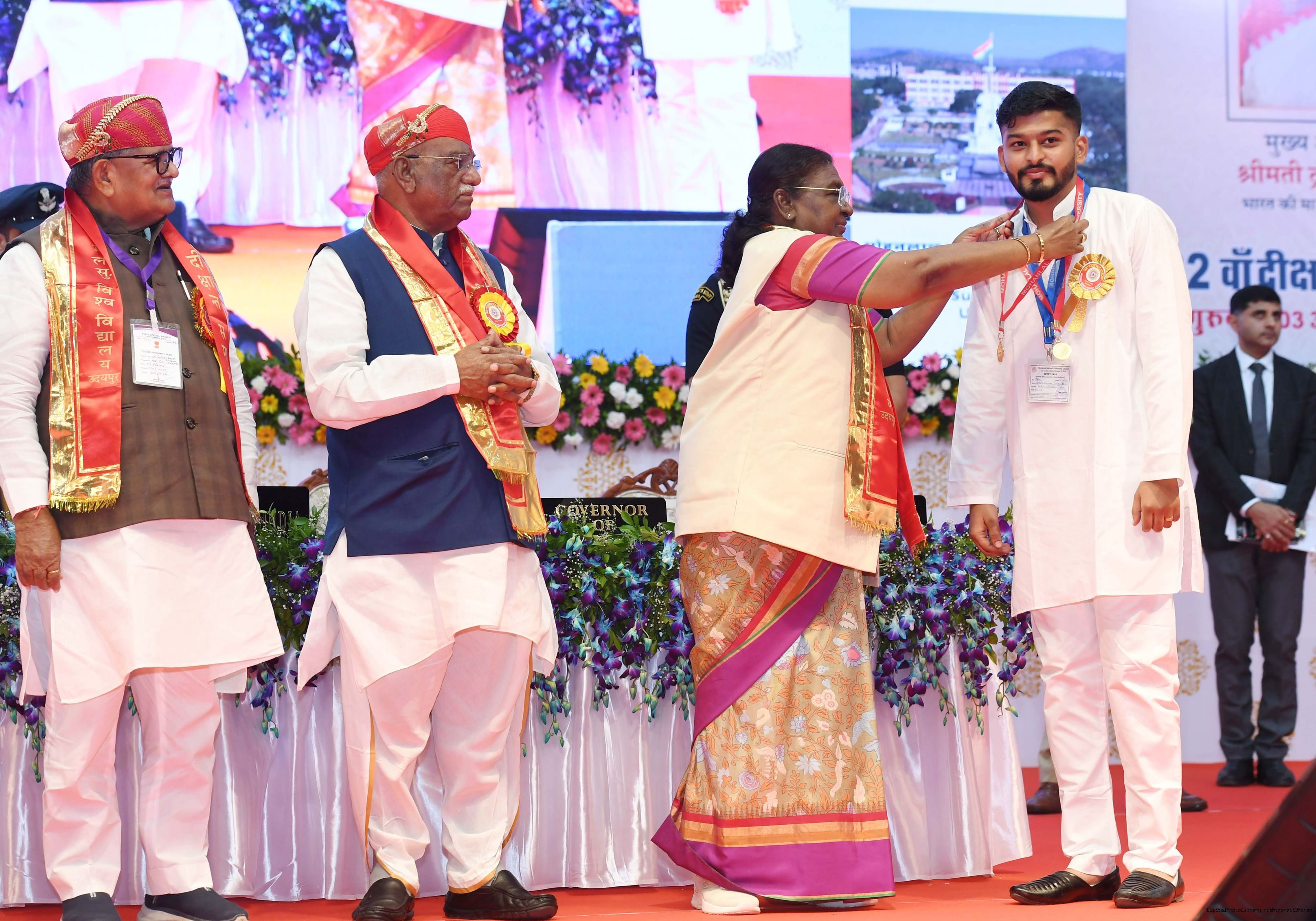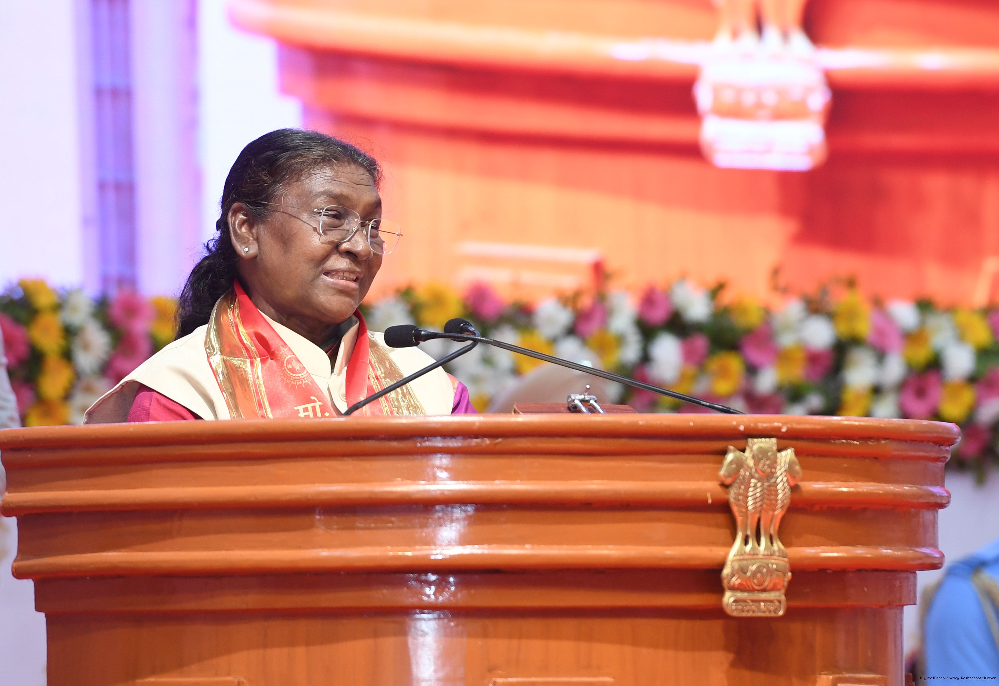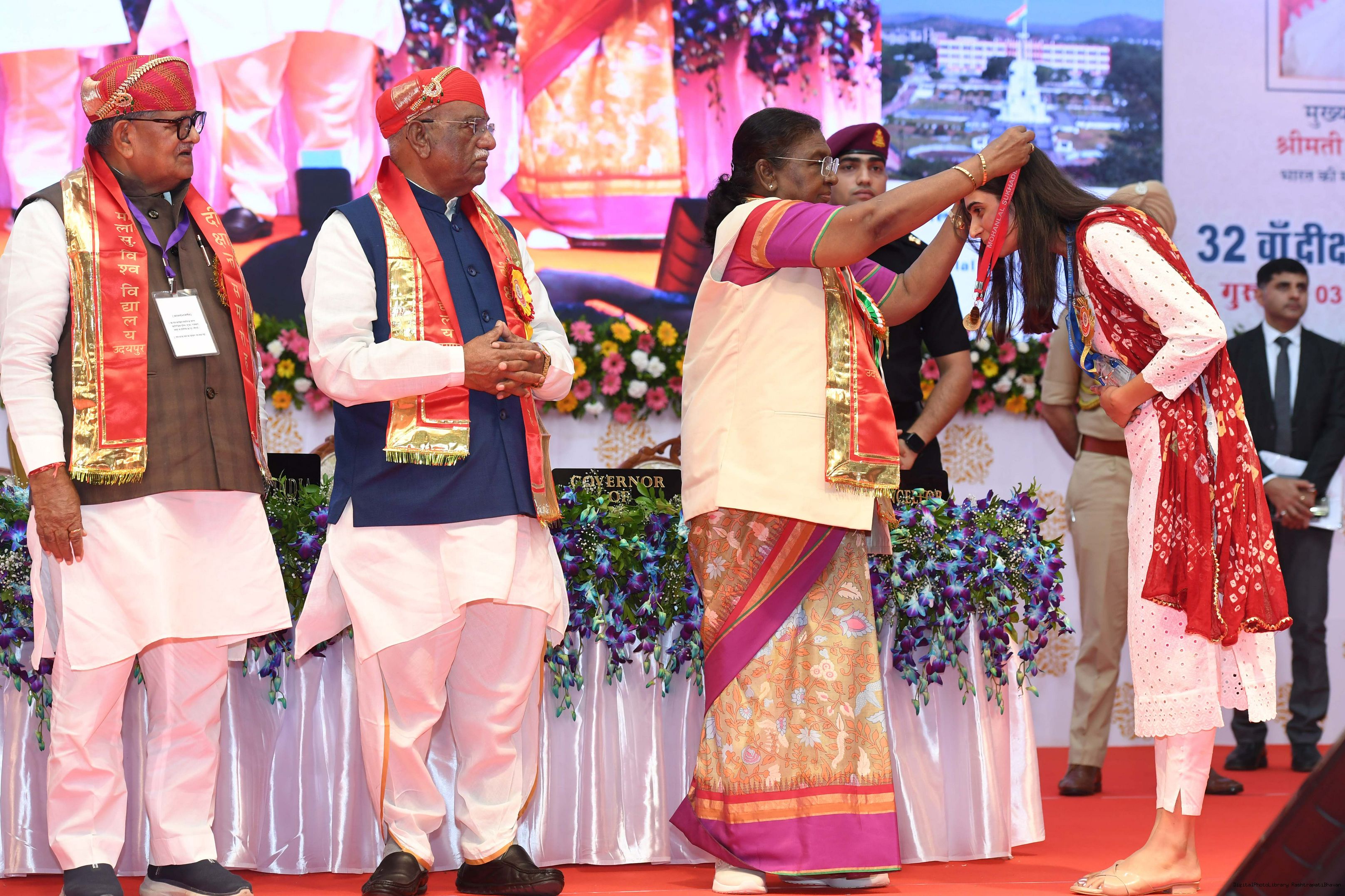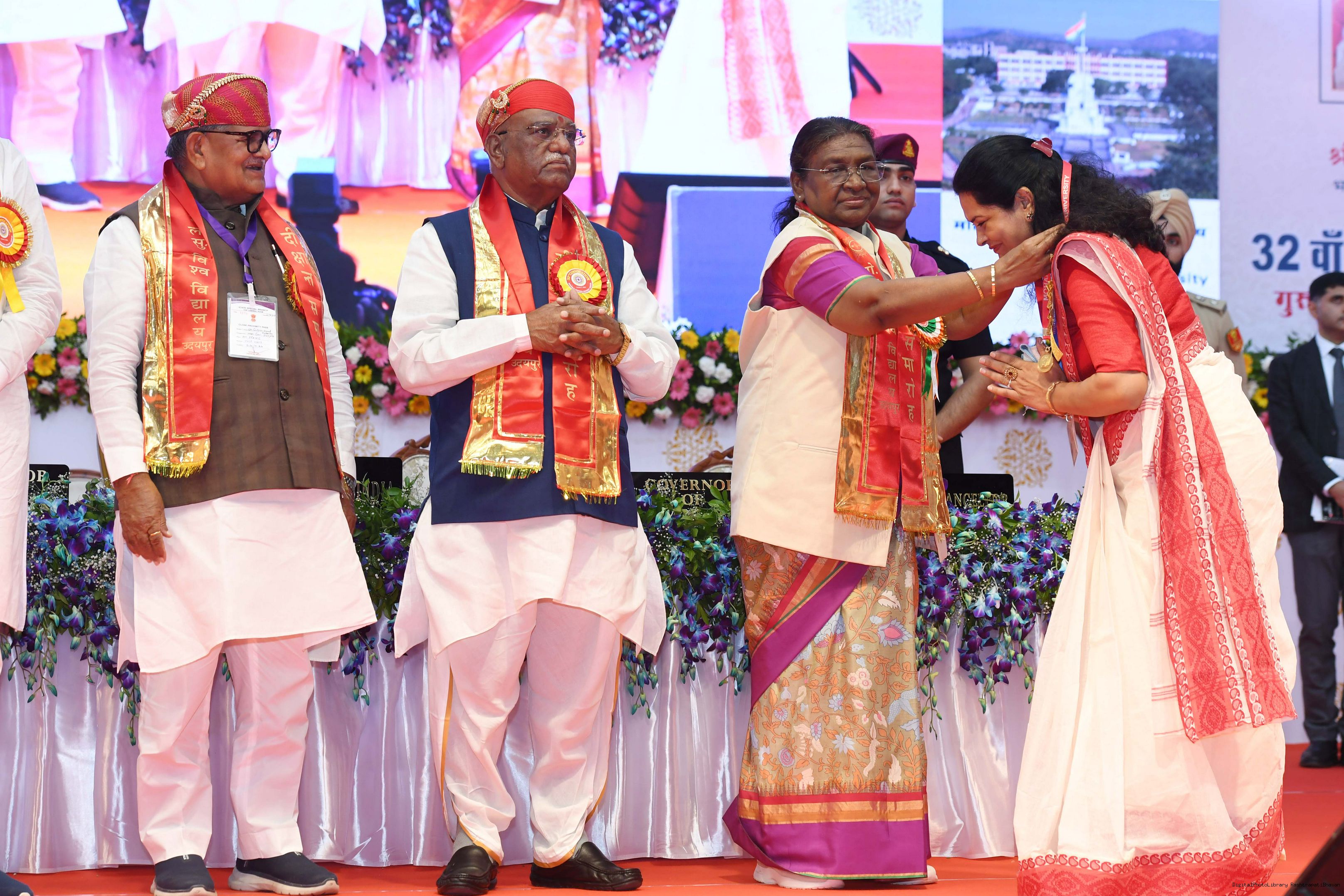 | Caption: | The President of India, Smt. Droupadi Murmu graced the 32nd convocation of Mohanlal Sukhadia University at Udaipur, Rajasthan on October 3, 2024. |
