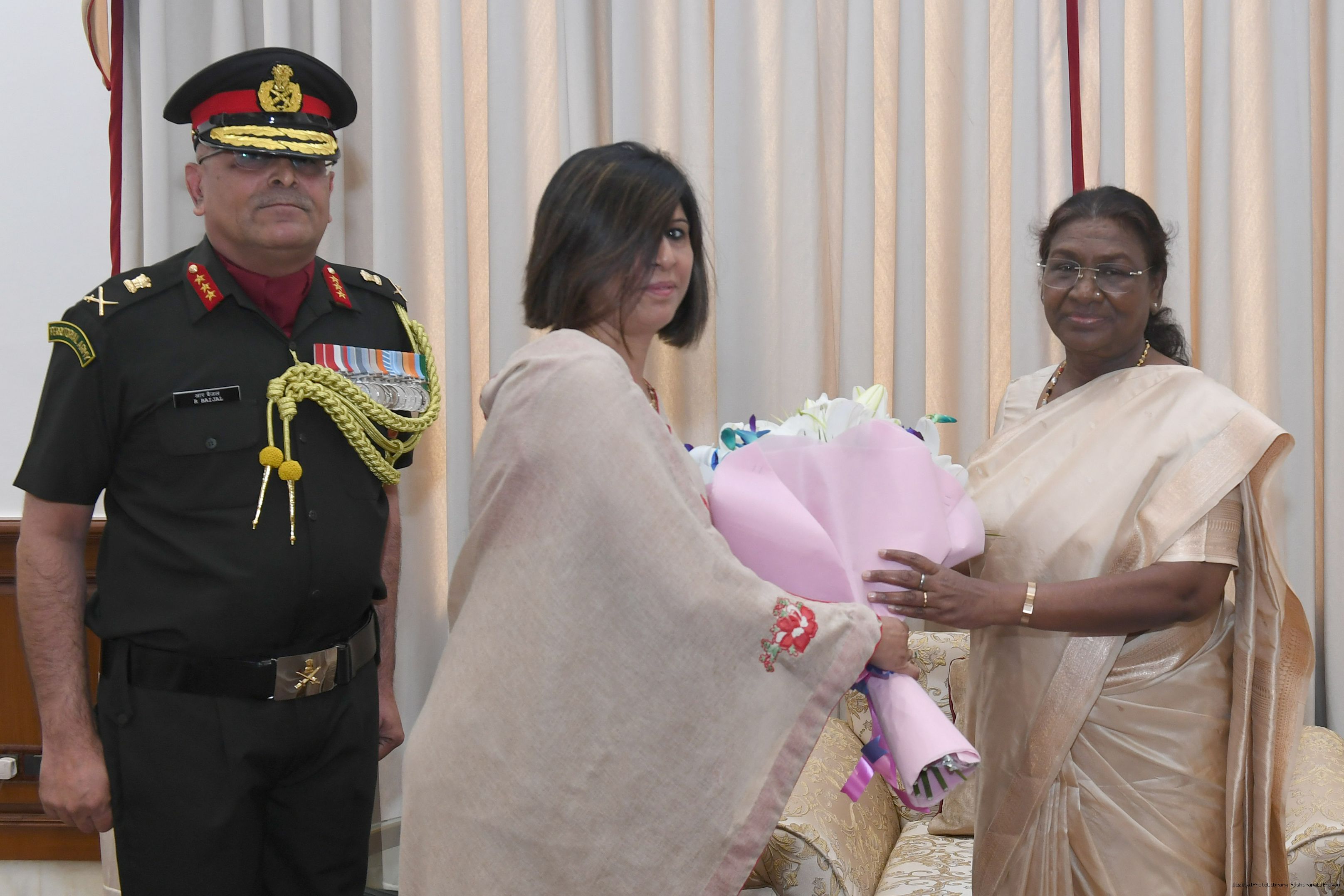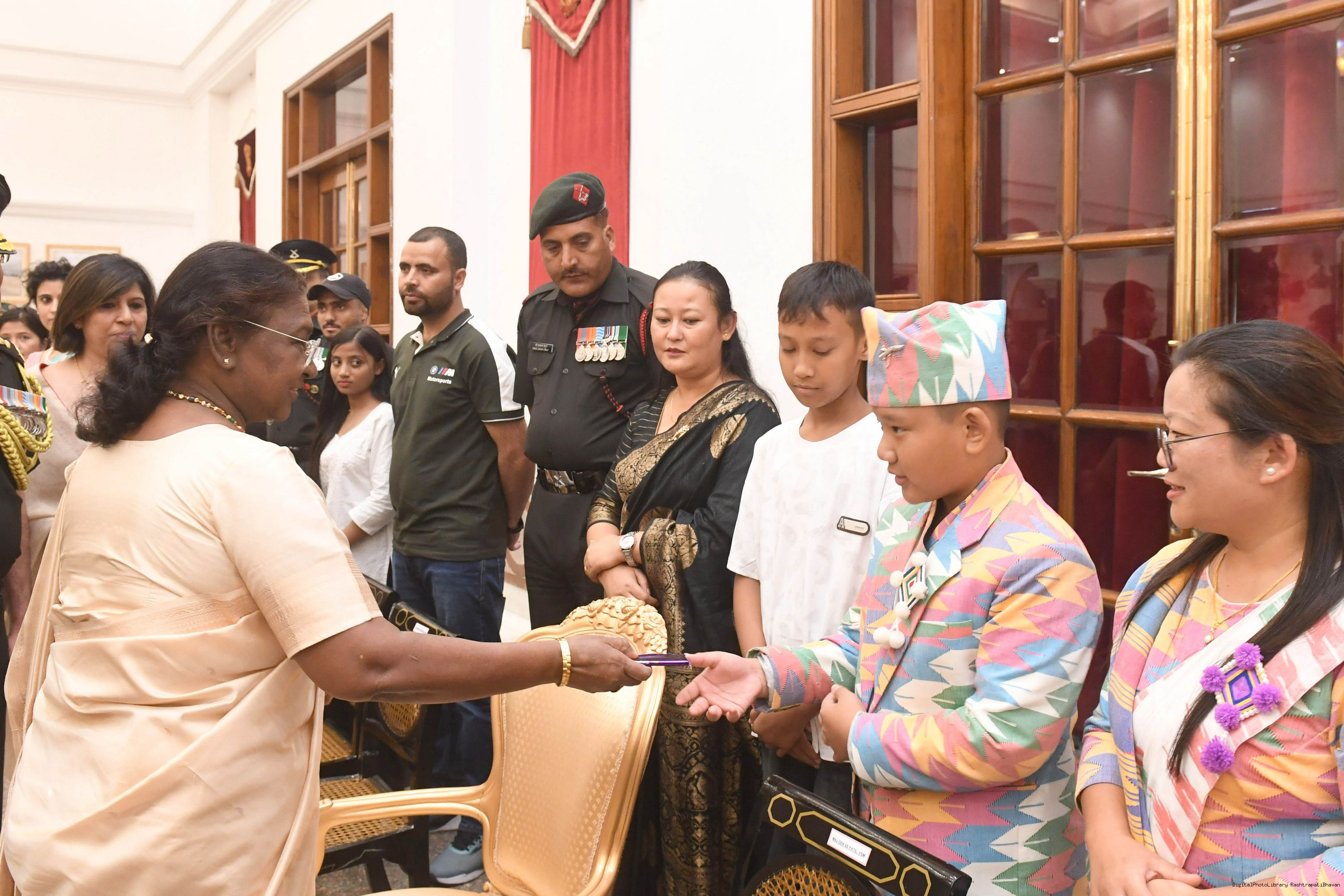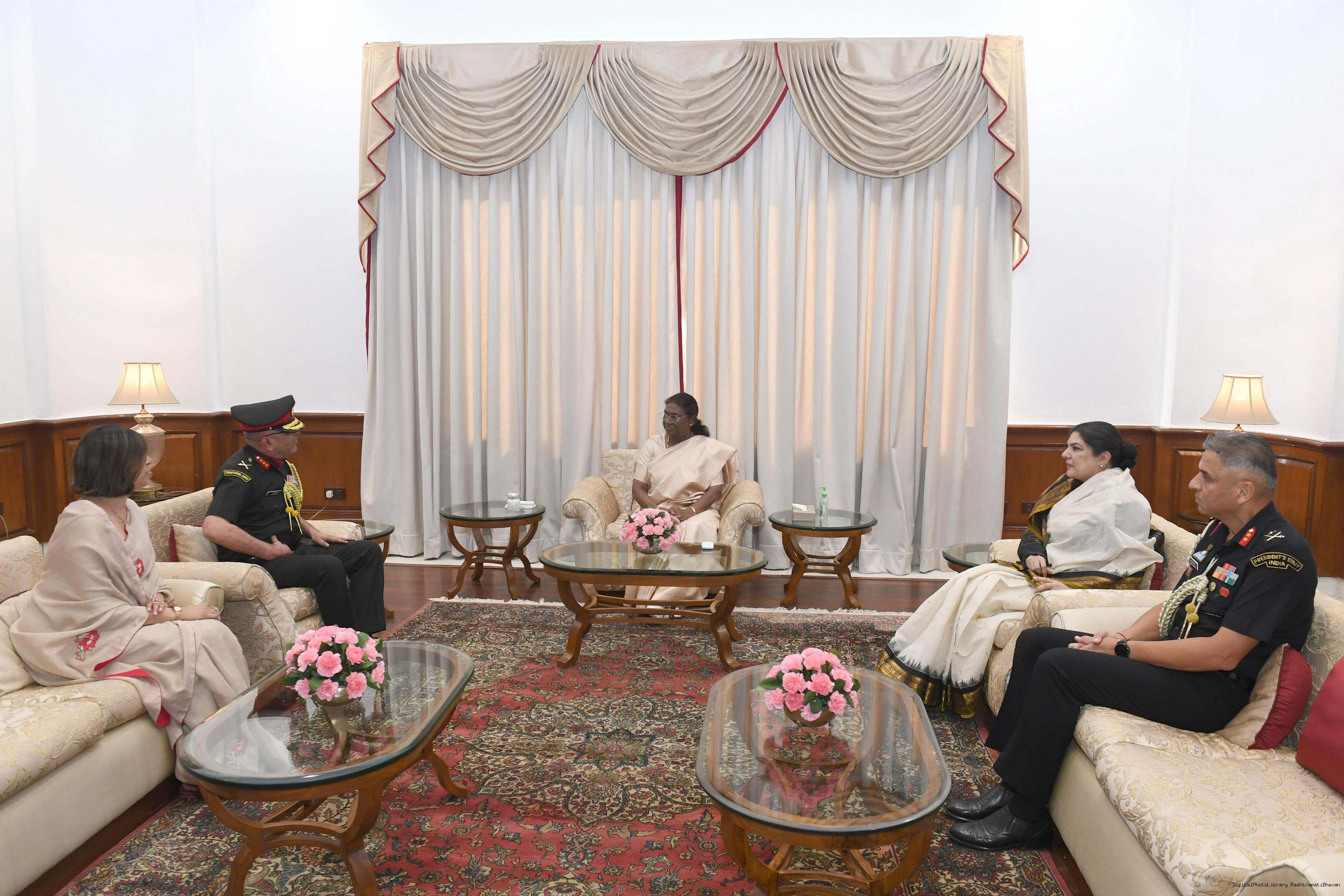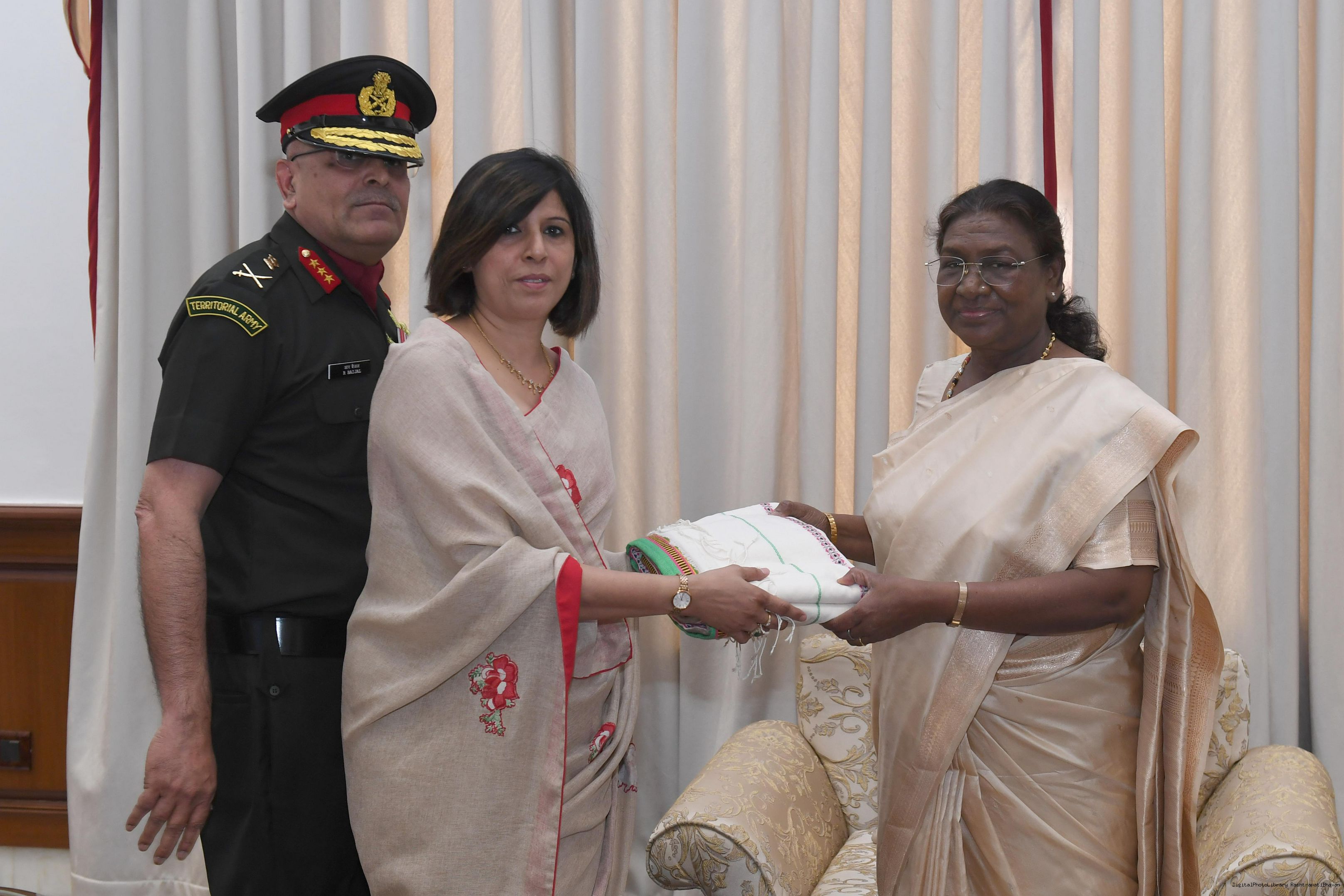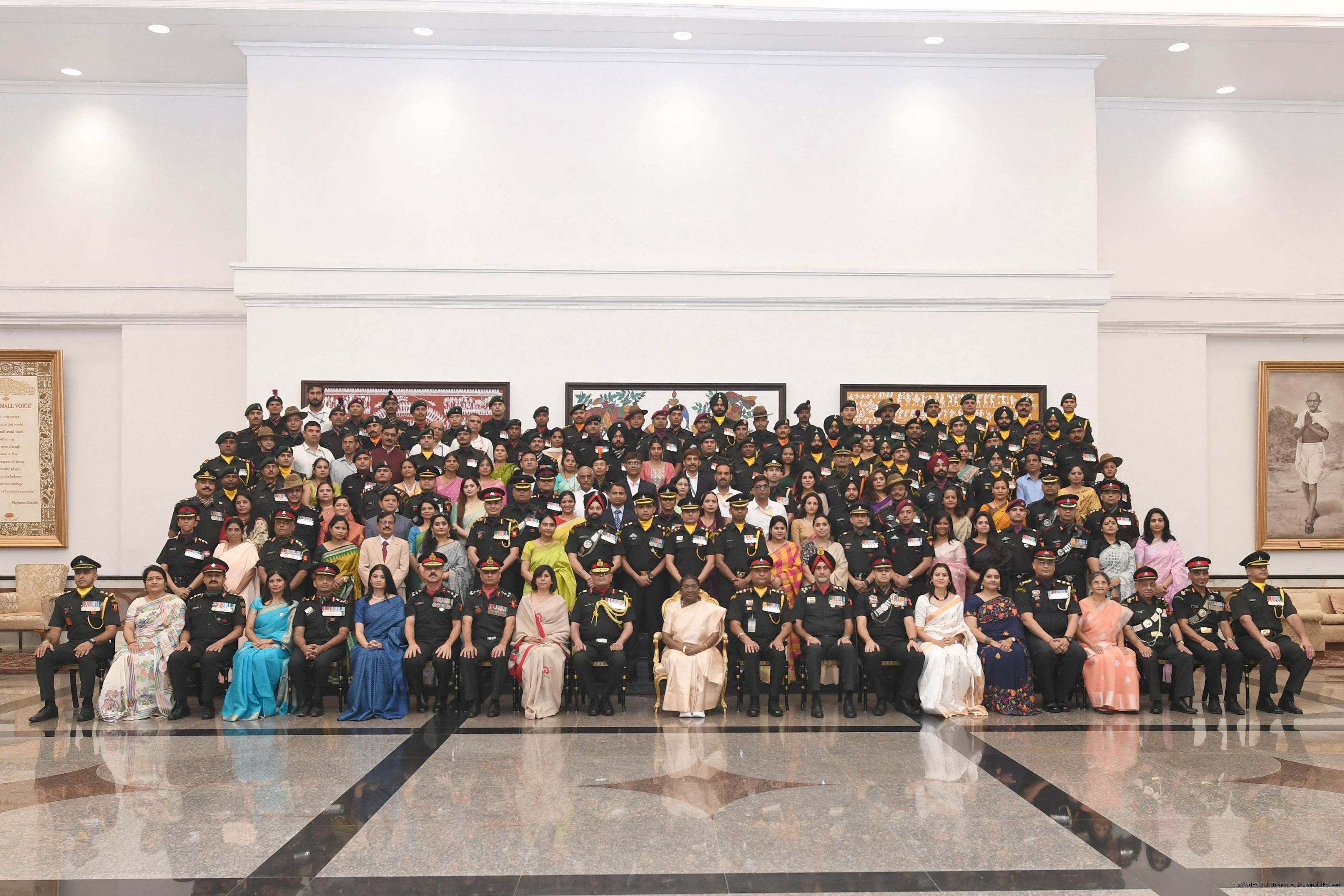 | Caption: | The President of India, Smt Droupadi Murmu met Territotial Army (TA) Officers, JCOs and ORs along with other at Rashtrapati Bhavan on October 7, 2024. |