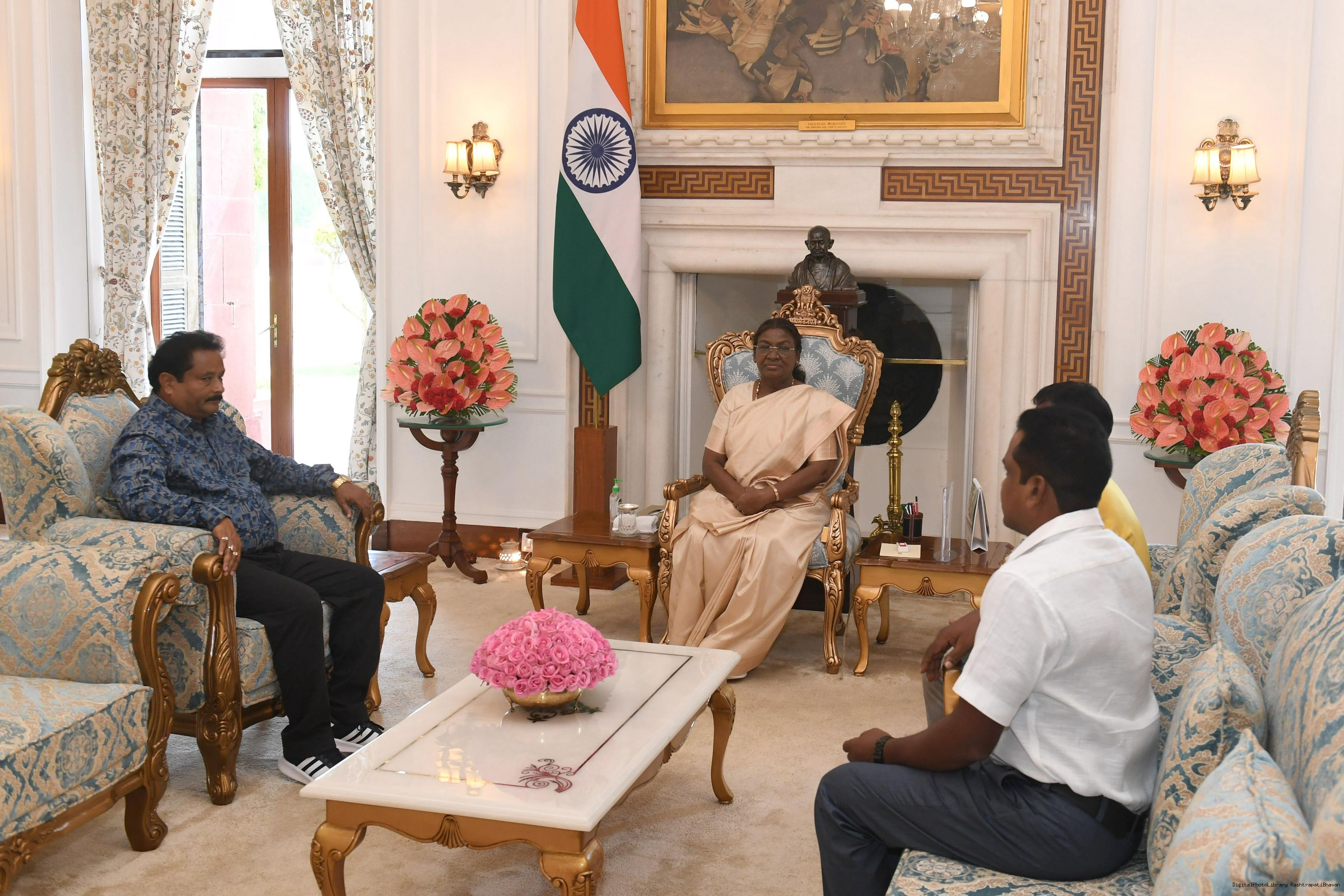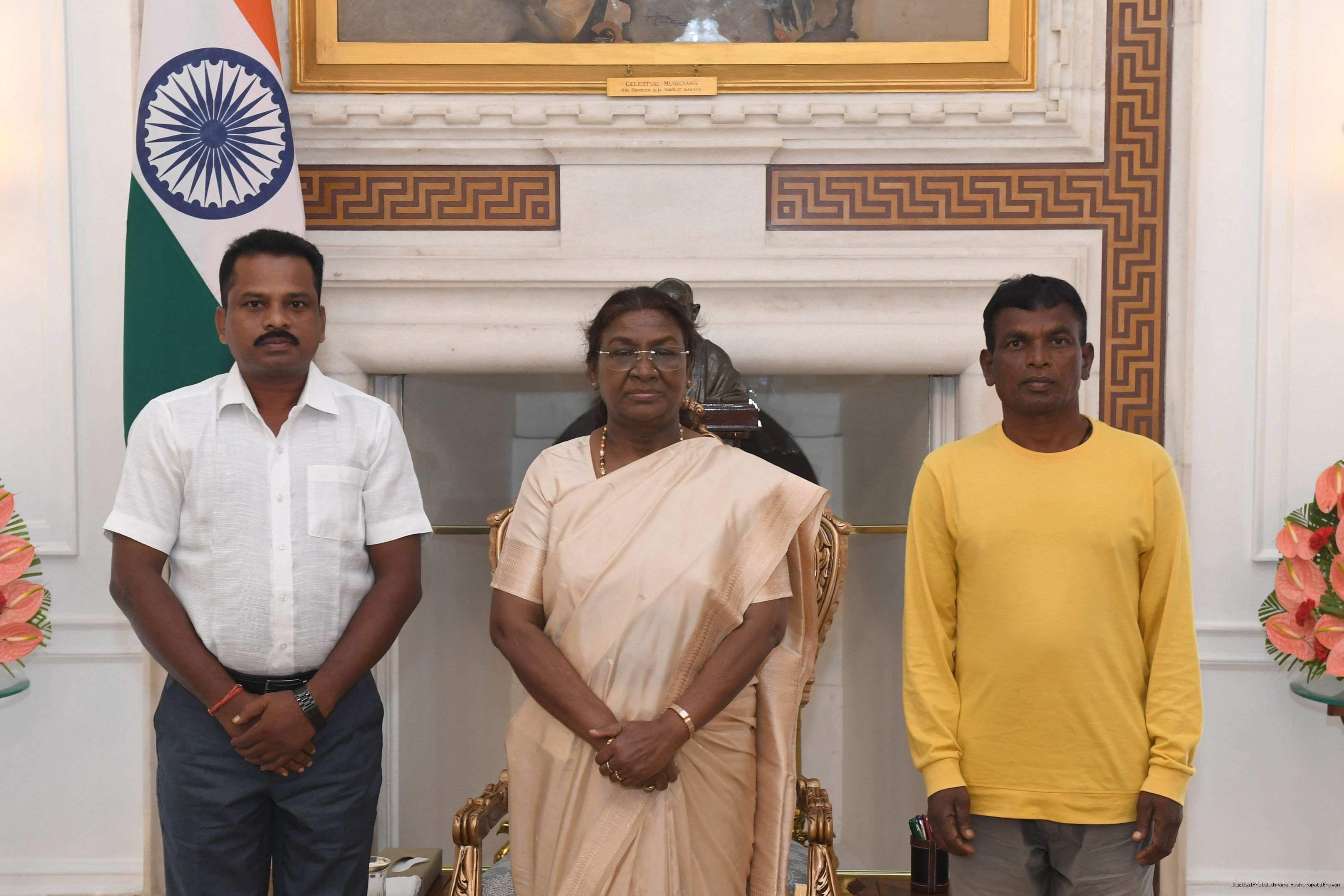 | Caption: | Shri Satish Chandra Pratihari from Badampahar alsong with others meeting with the President of India Smt. Droupadi Murmu at Rashtrapati Bhavan on October 7, 2024. |