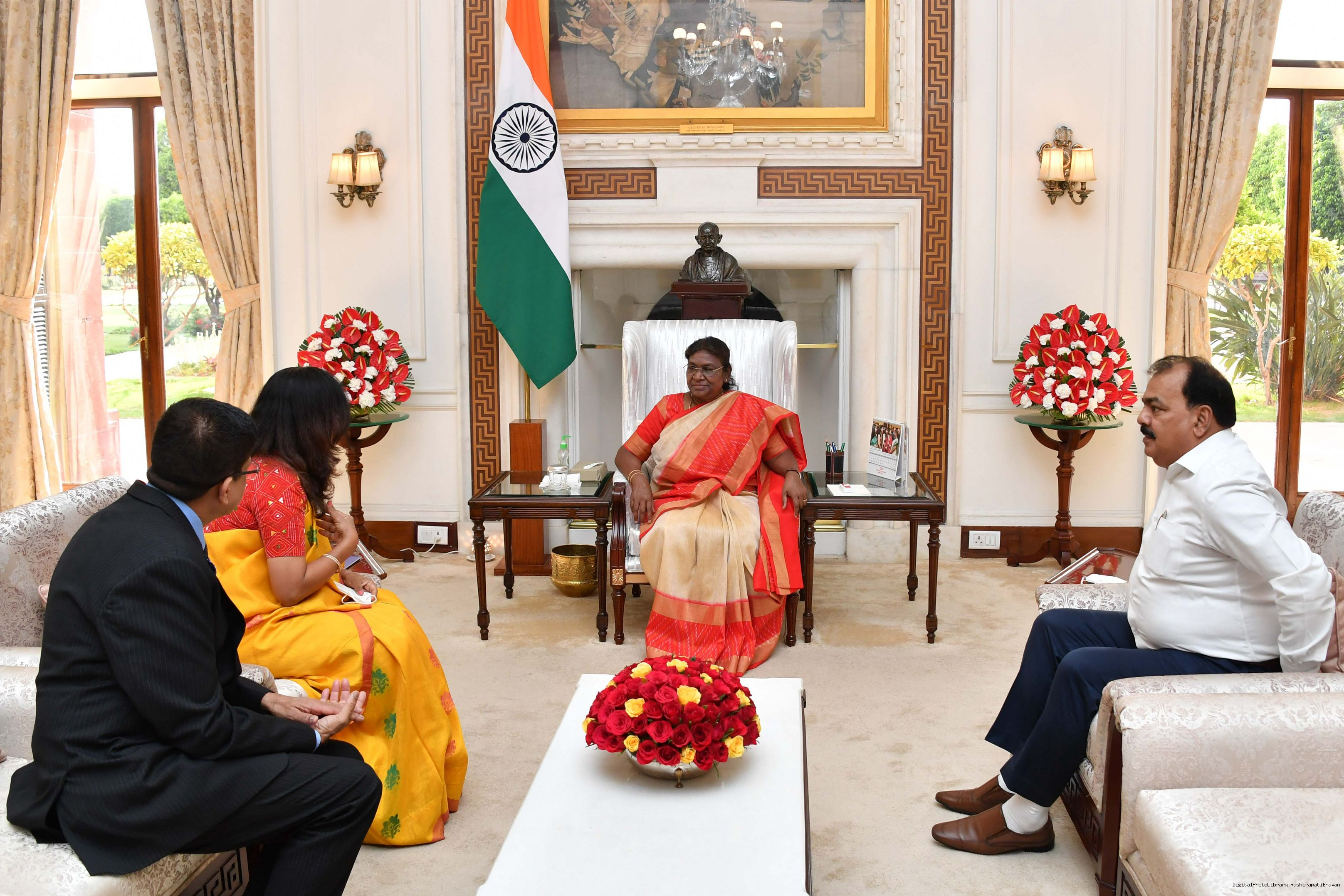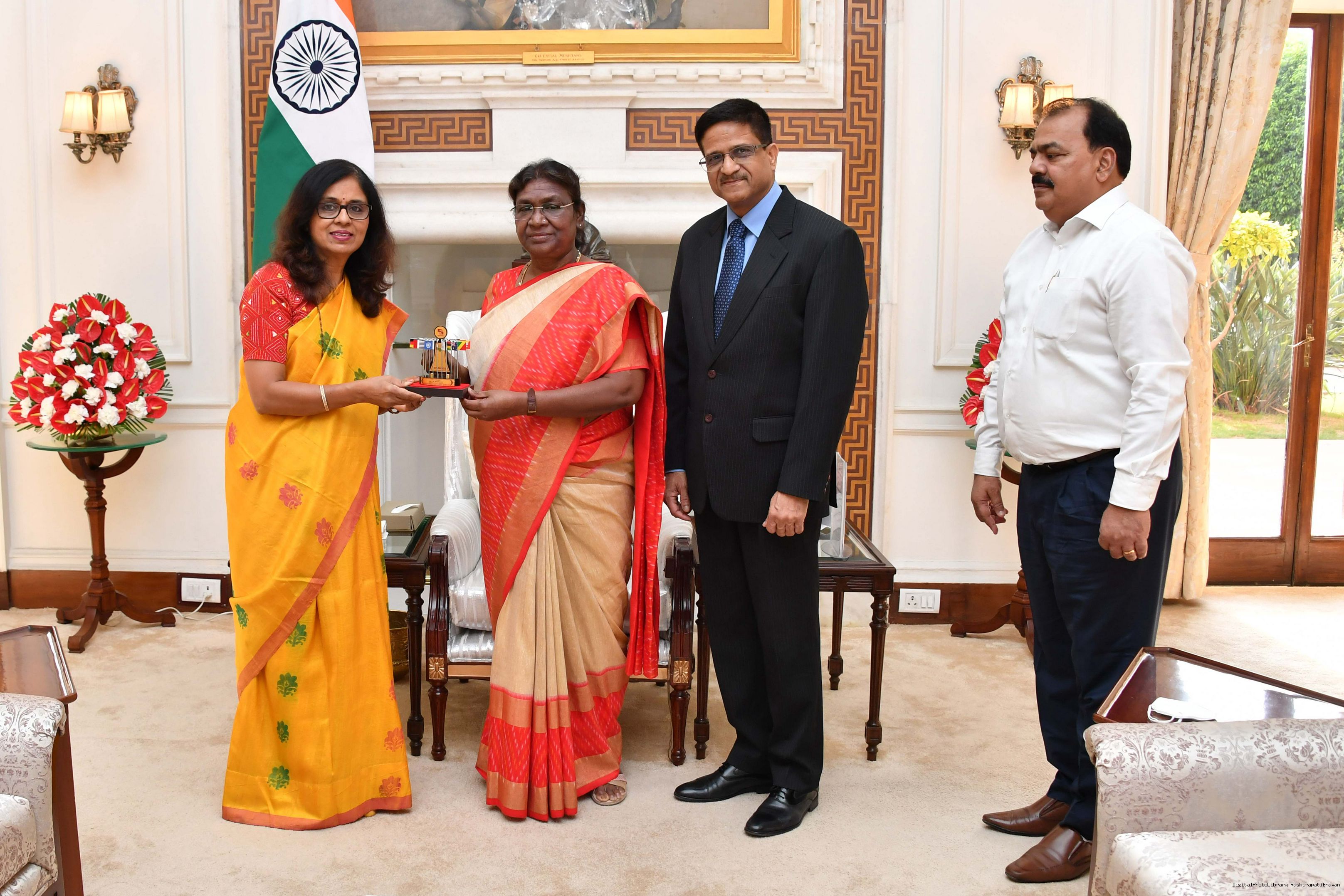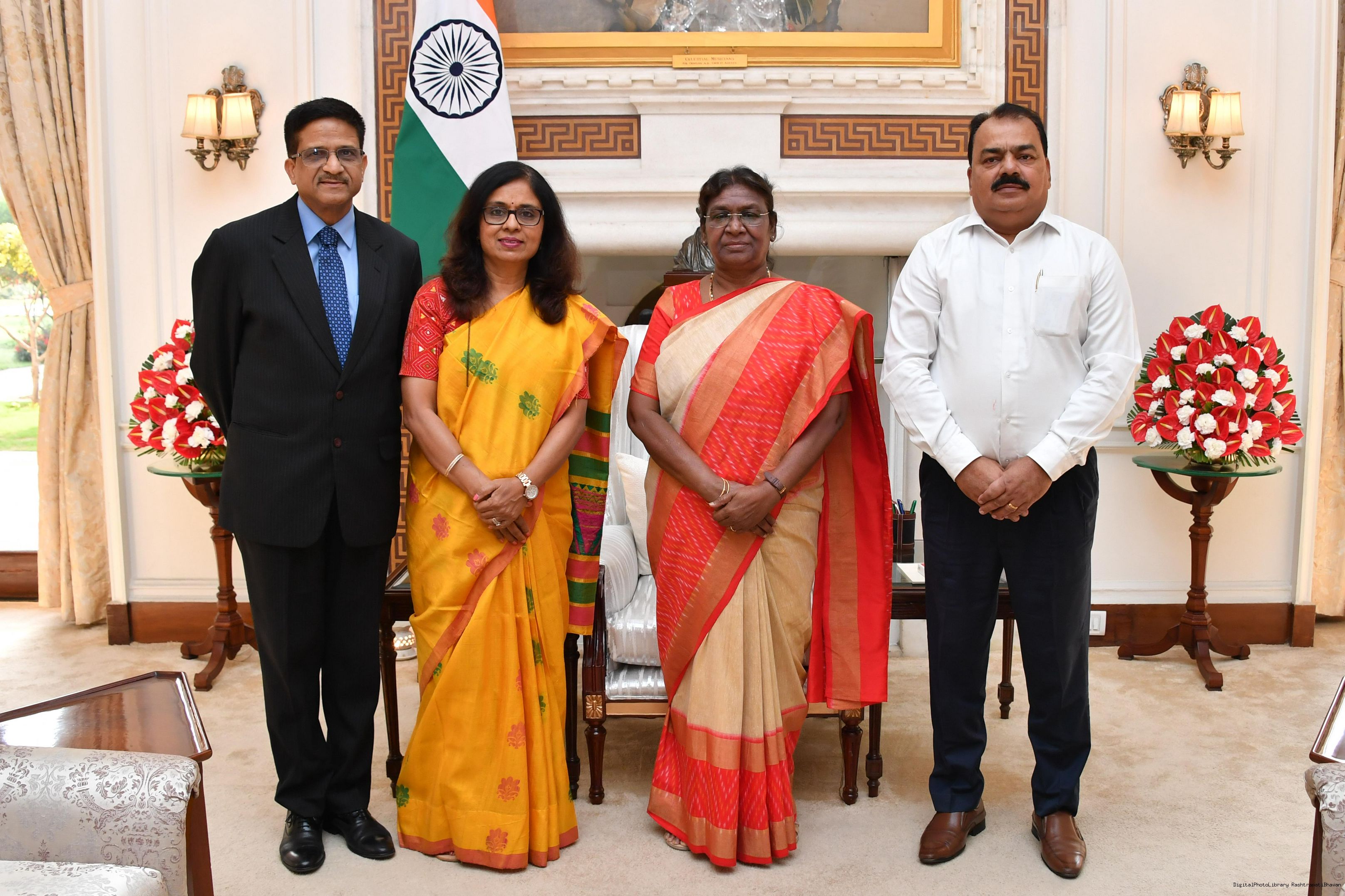 | Caption: | Shri Subodh Kumar, Development Coordinator, SLS Trust along with Dr. Rajiv Yeravdekar, Provest Faculty of Medical Health Sciences and Vidya Yeravdekar, Pro Chancellor, Symbiosis International University meeting with the President of India Smt. Droupadi Murmu at Rashtrapati Bhavan on April 17, 2023. |