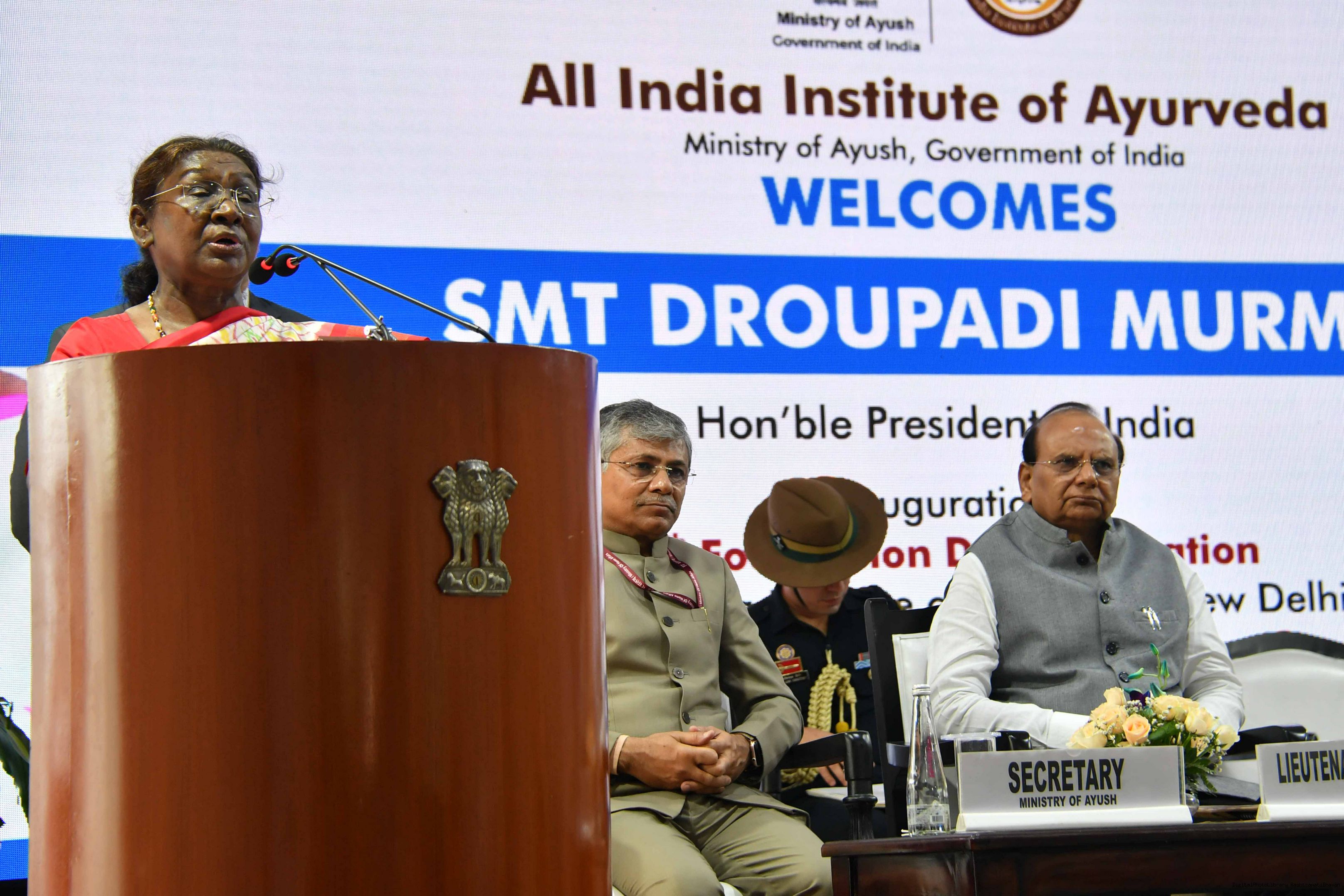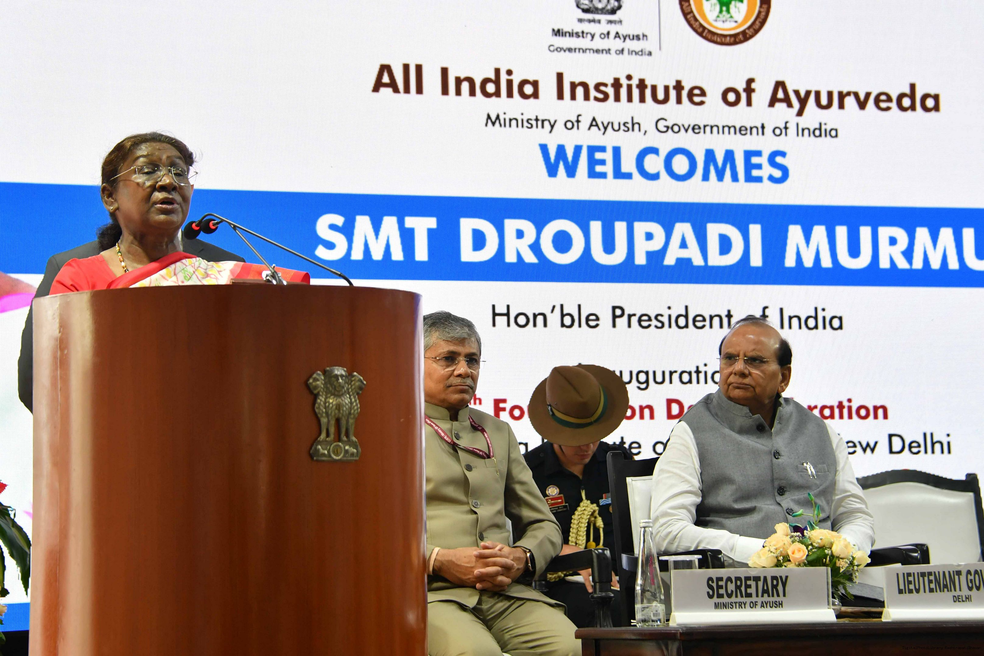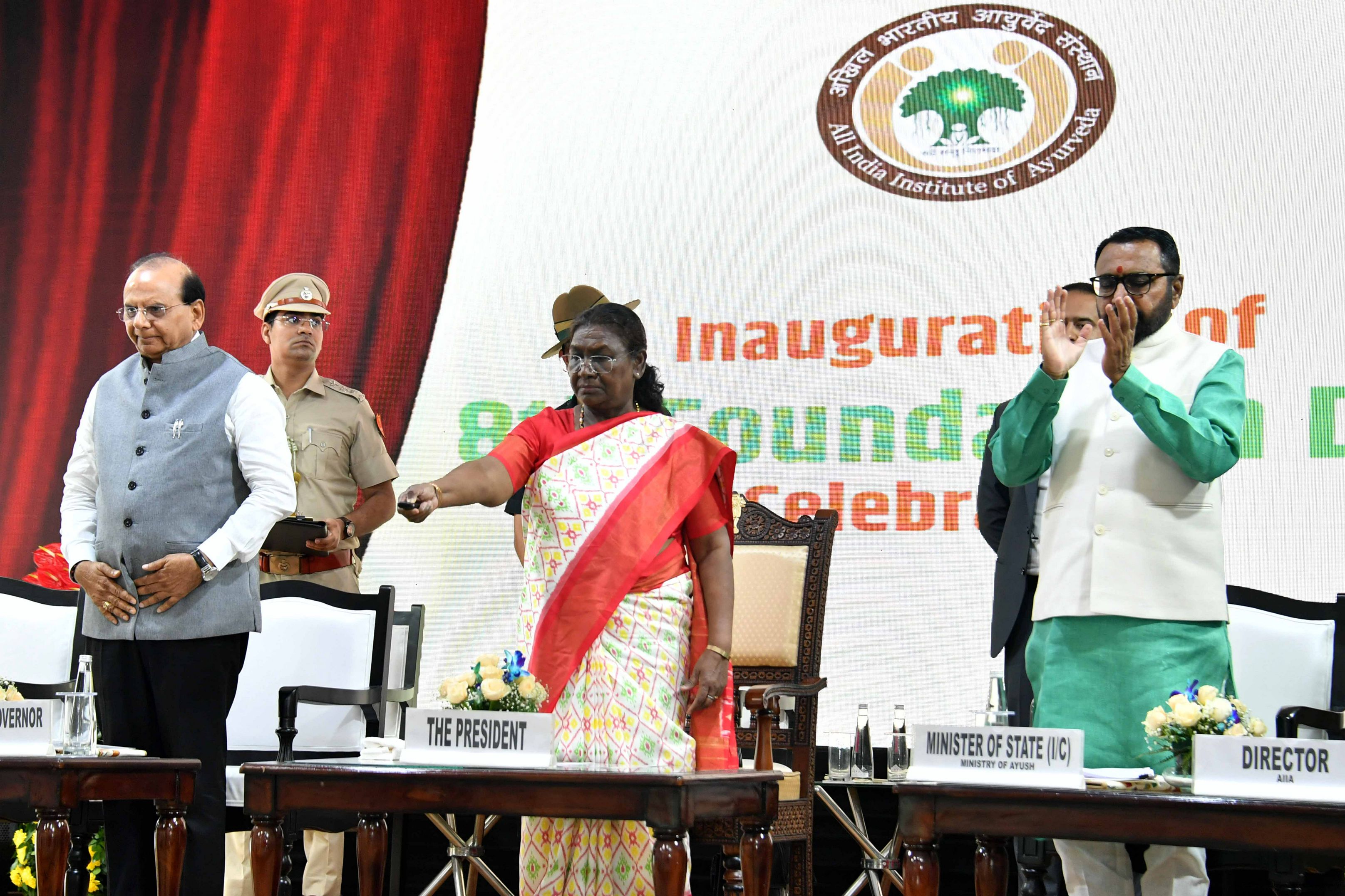 | Caption: | The President of India, Smt Droupadi Murmu graced the 7th foundation day of All India Institute of Ayurveda (AIIA) in New Delhi on October 8, 2024. |