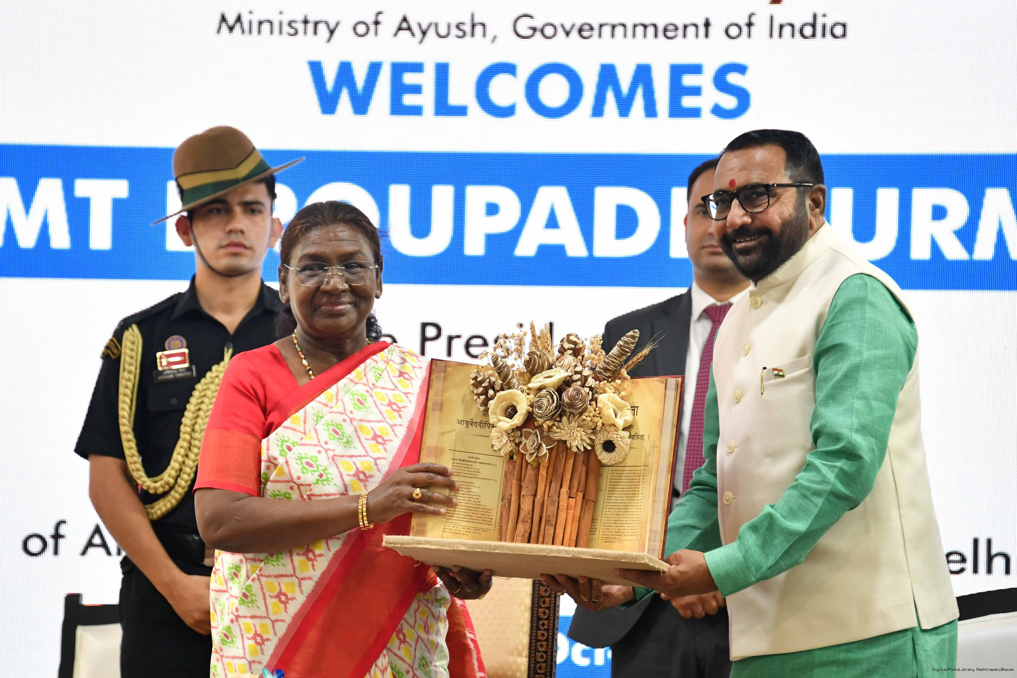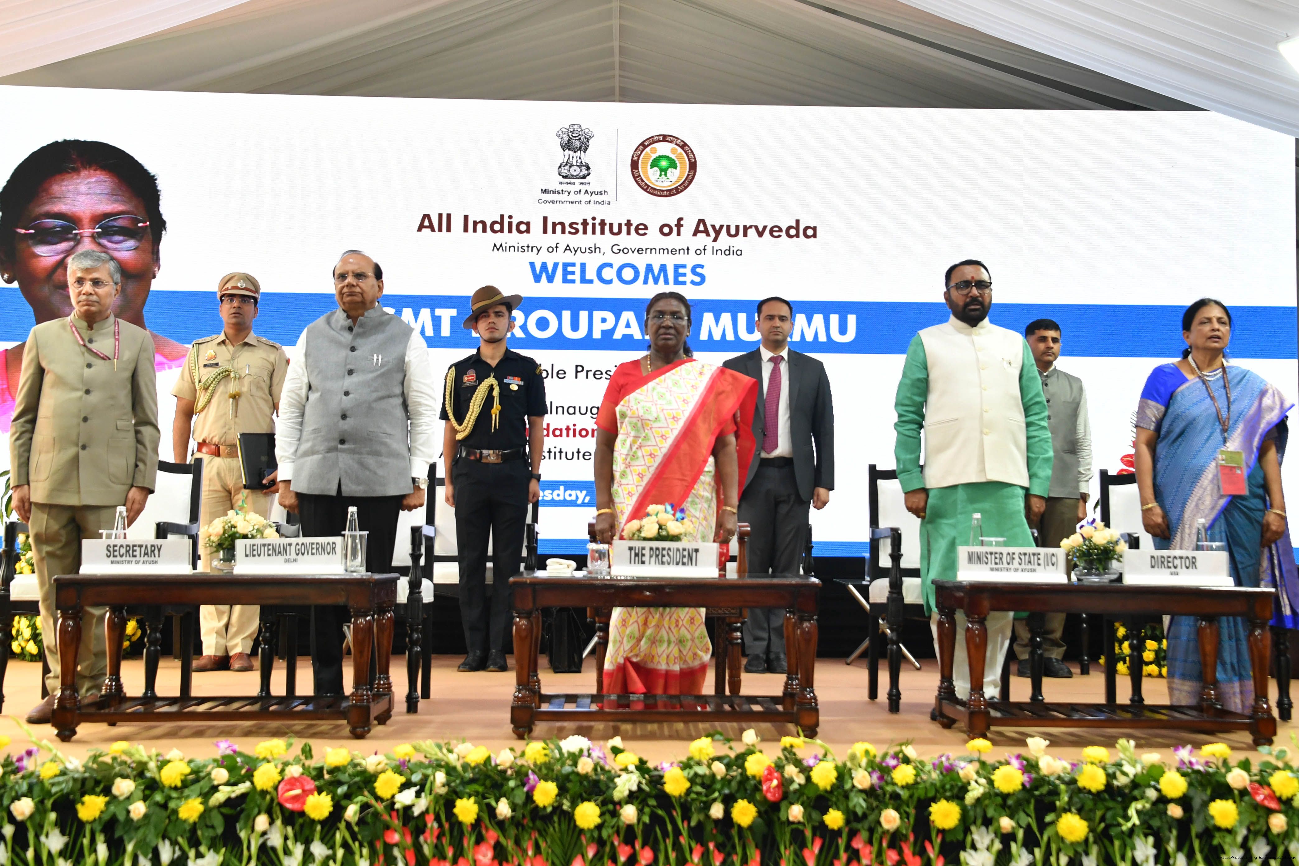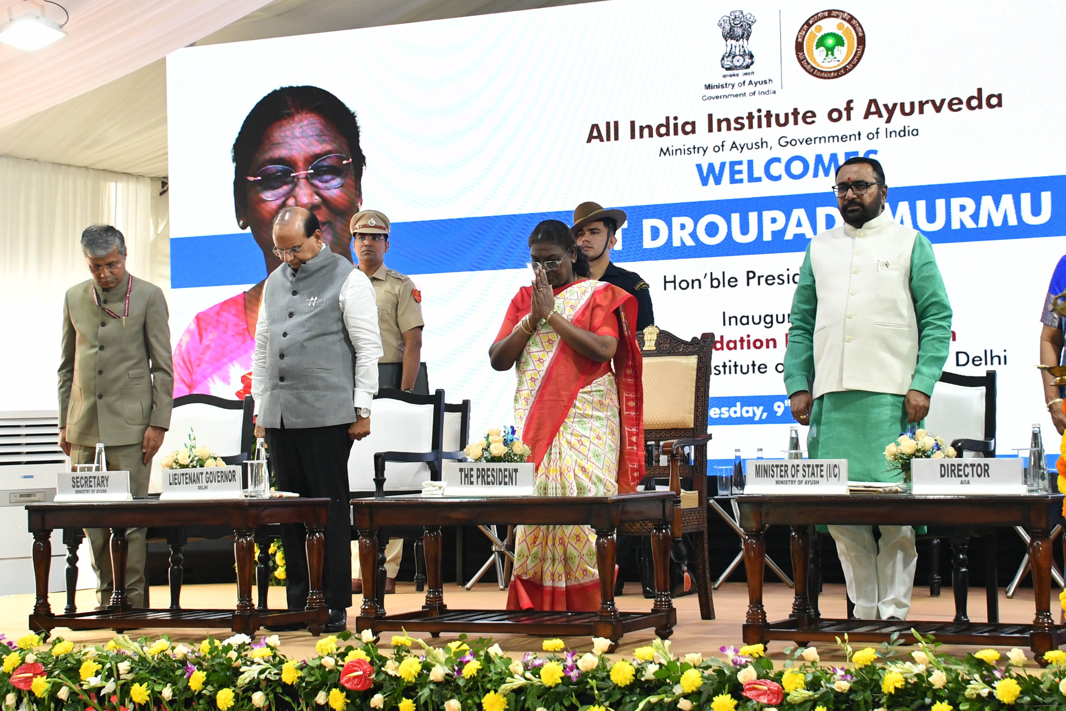 | Caption: | The President of India, Smt Droupadi Murmu graced the 7th foundation day of All India Institute of Ayurveda (AIIA) in New Delhi on October 8, 2024. |