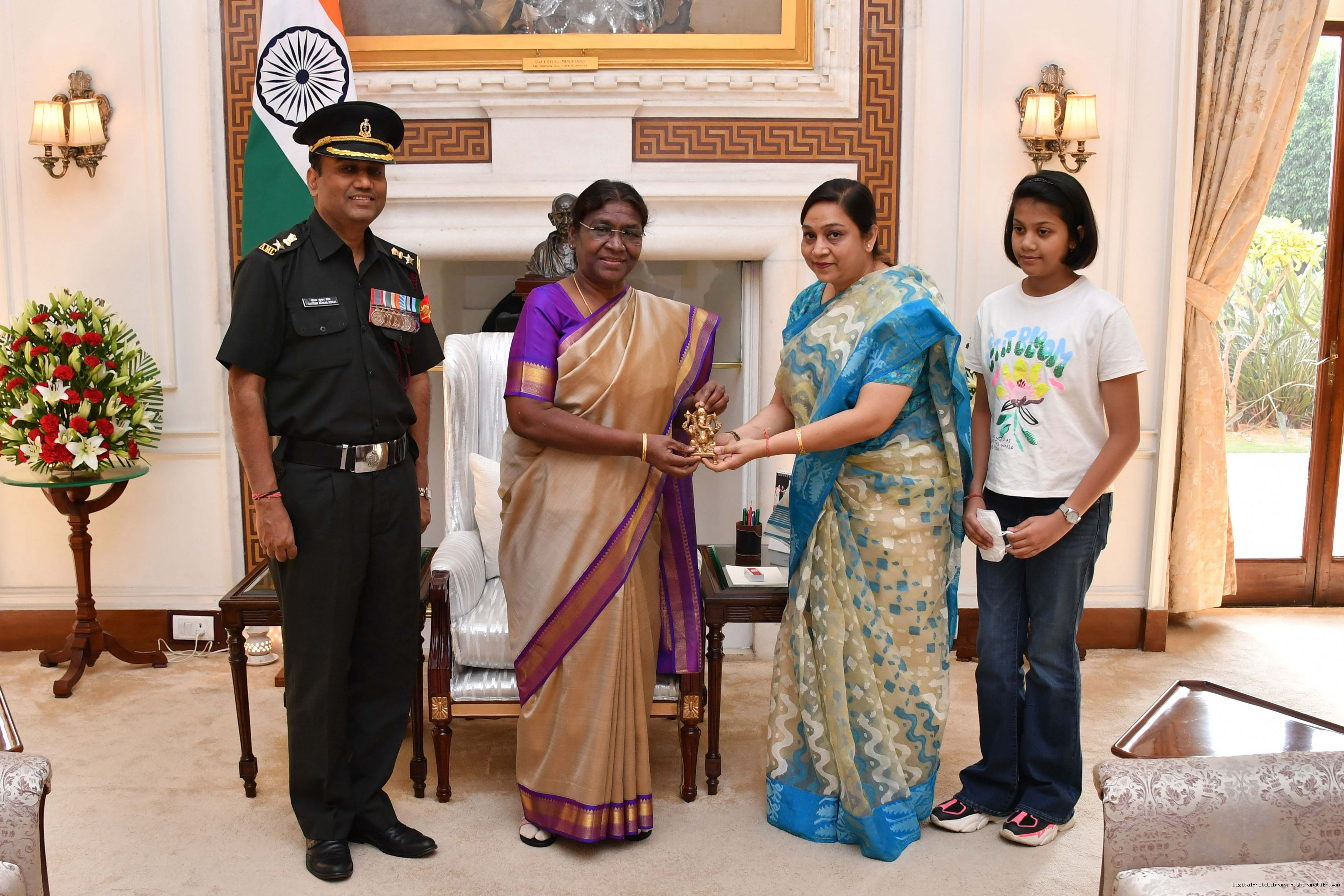 | Caption: | Lt Col (Dr.) GK Singh, Dermatologist, Base Hospital, Delhi Cantt along with others meeting with the President of India Smt. Droupadi Murmu at Rashtrapati Bhavan on May 11, 2023. |