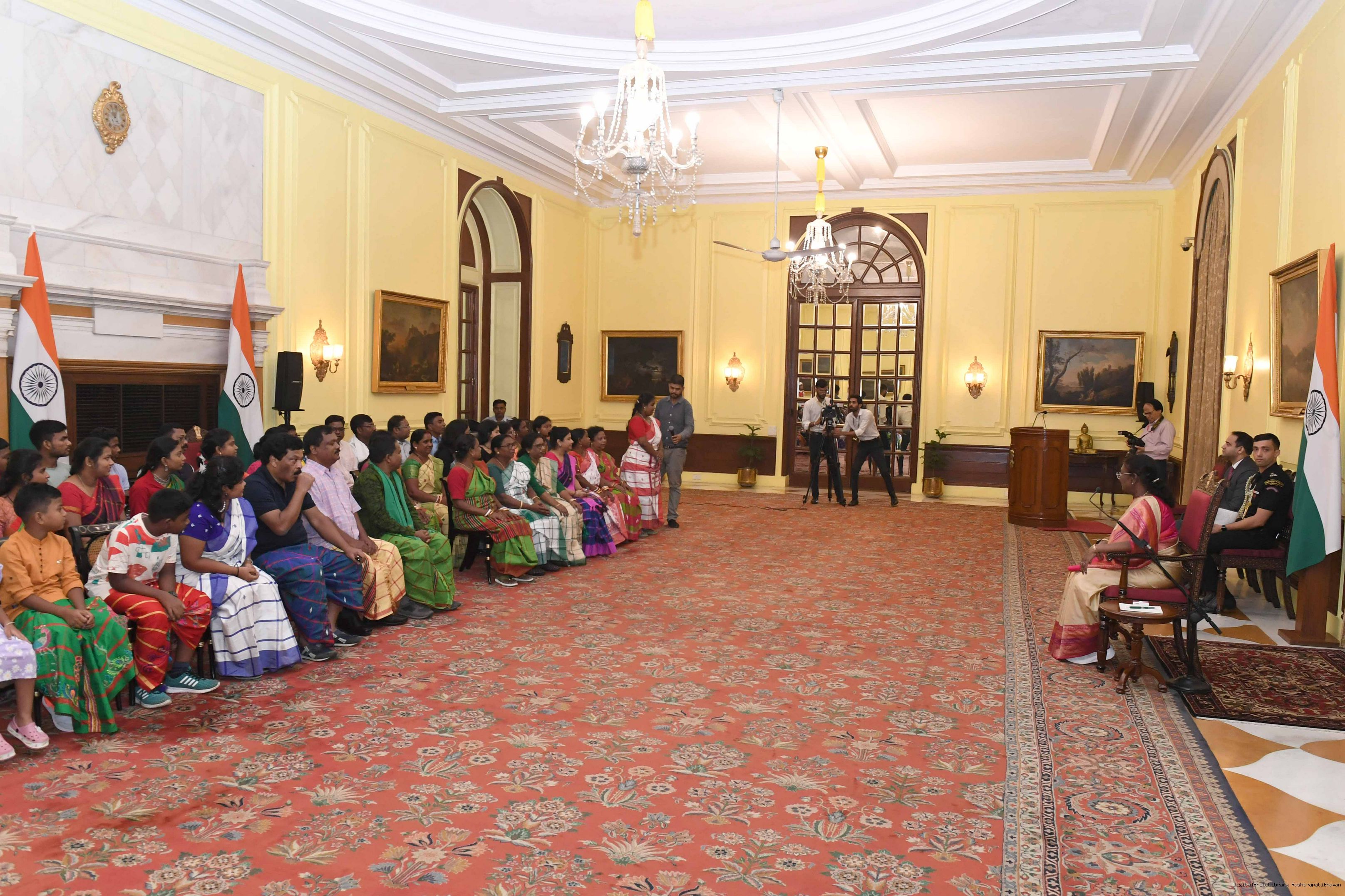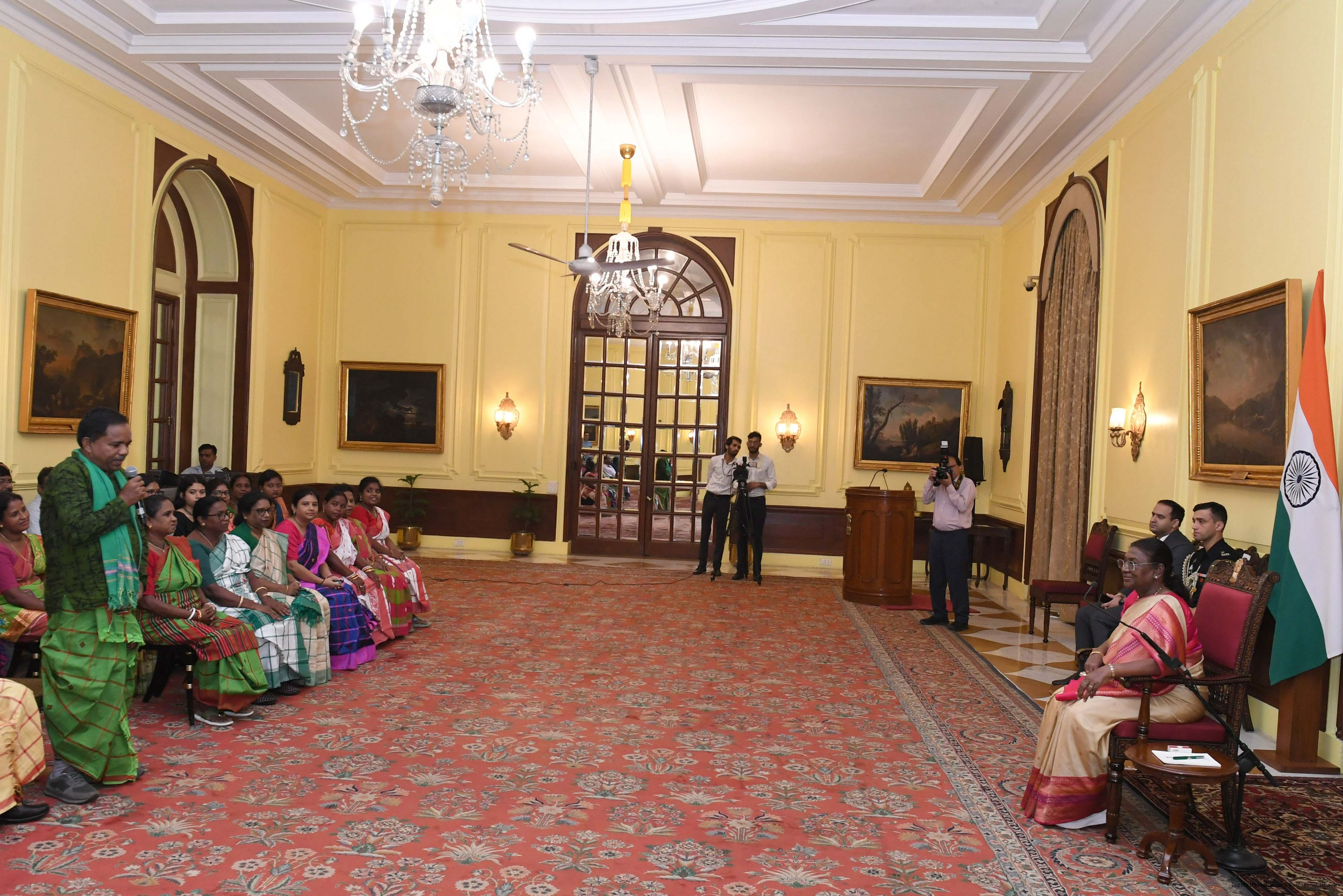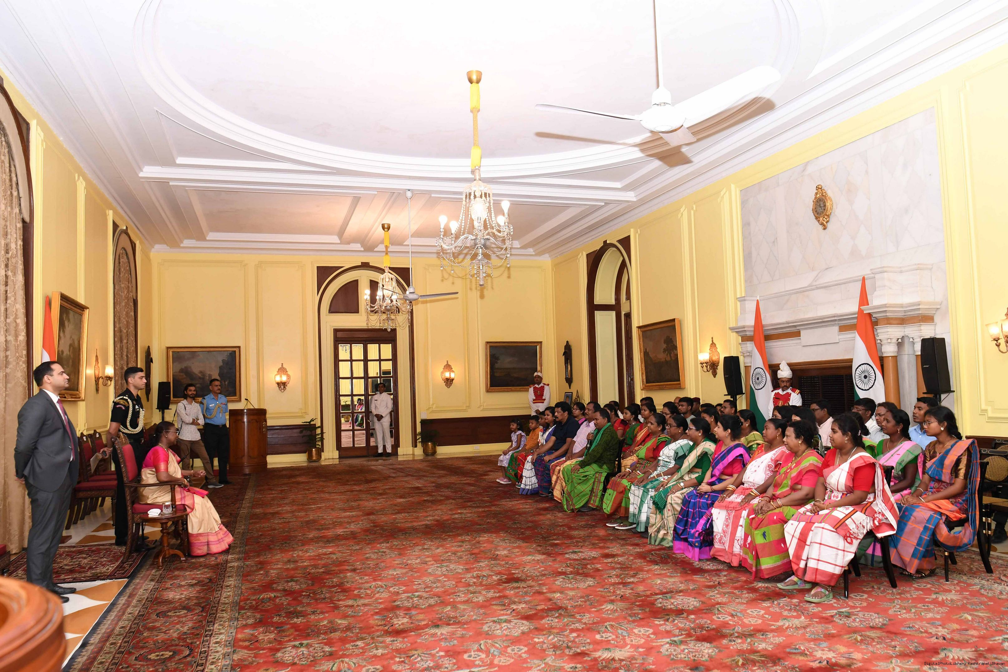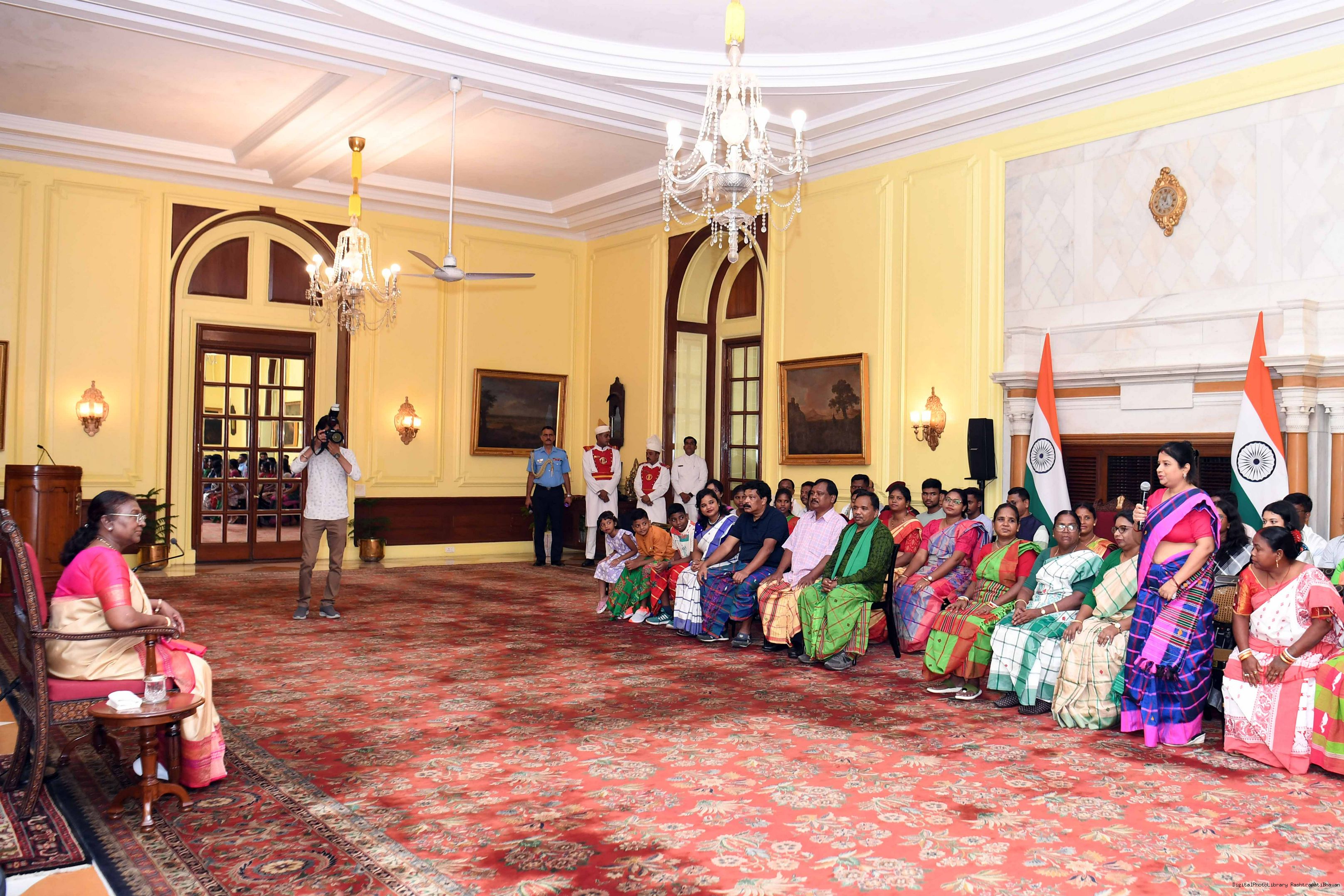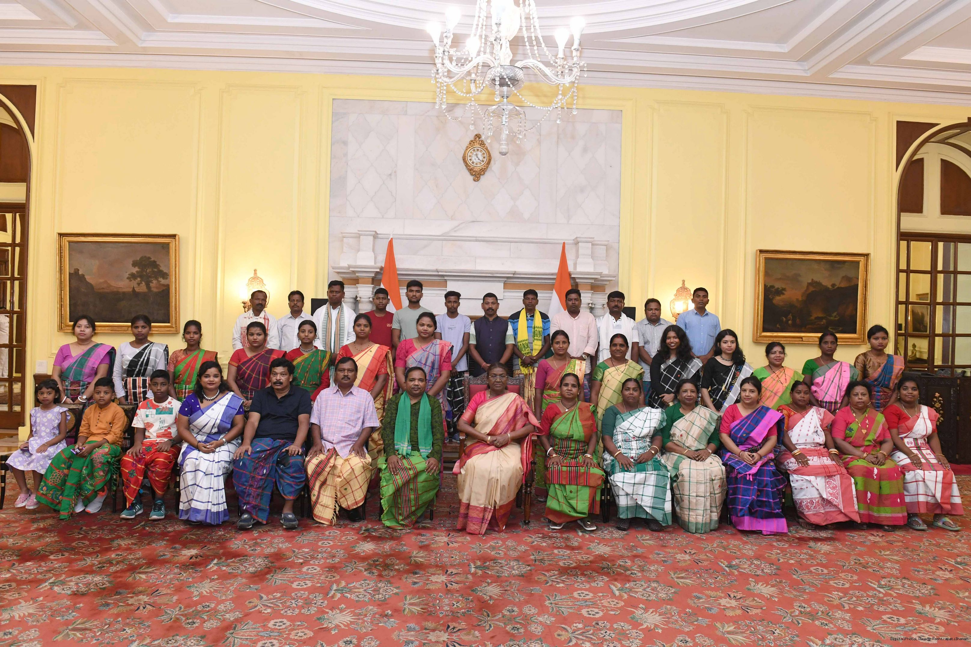| Caption: | Smt. Malati Murmu, Publisher Editior, Fagun, Bhubaneswar along with others meeting with the President of India Smt. Droupadi Murmu at Rashtrapati Bhavan on October 11, 2024. |