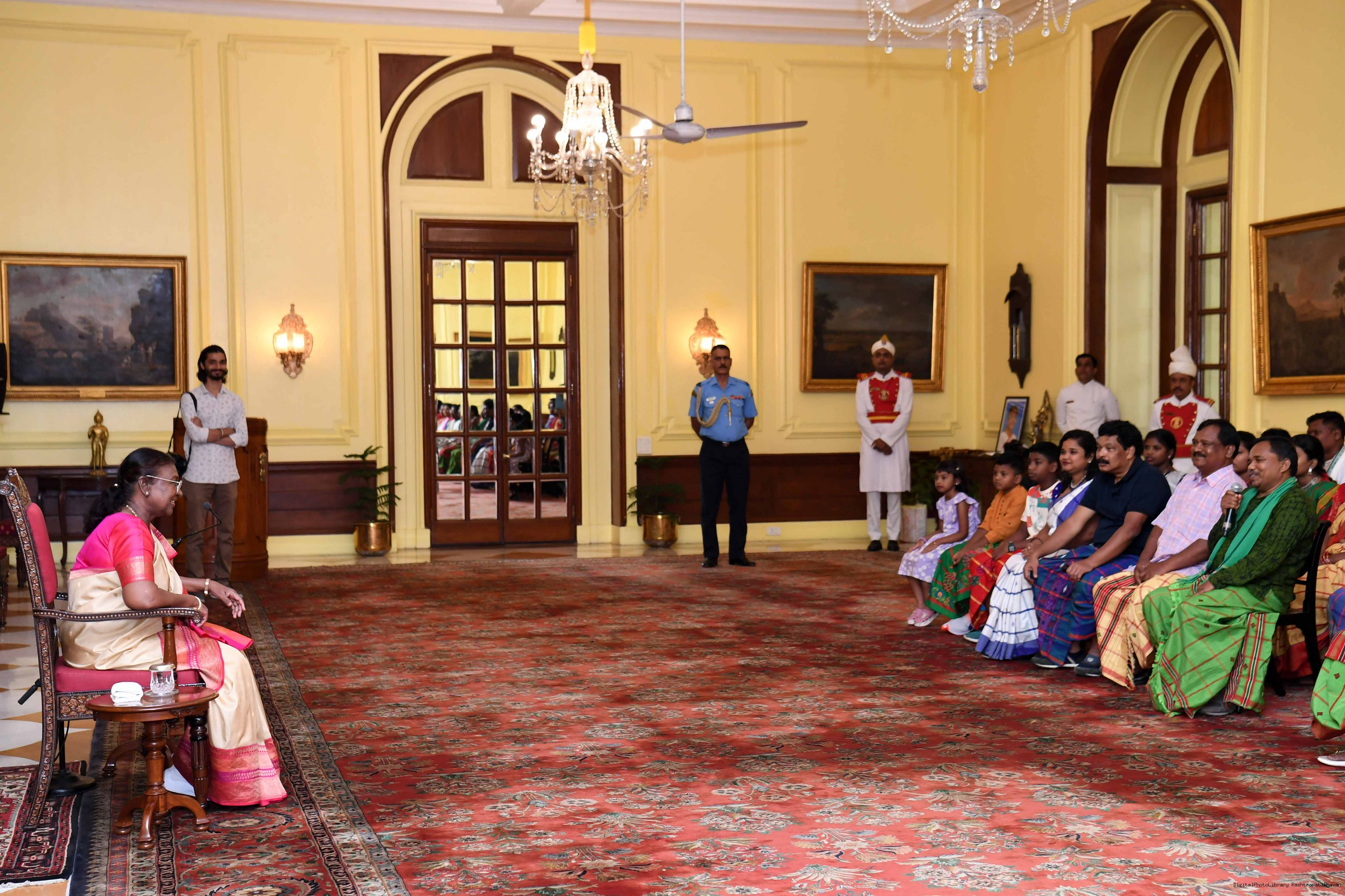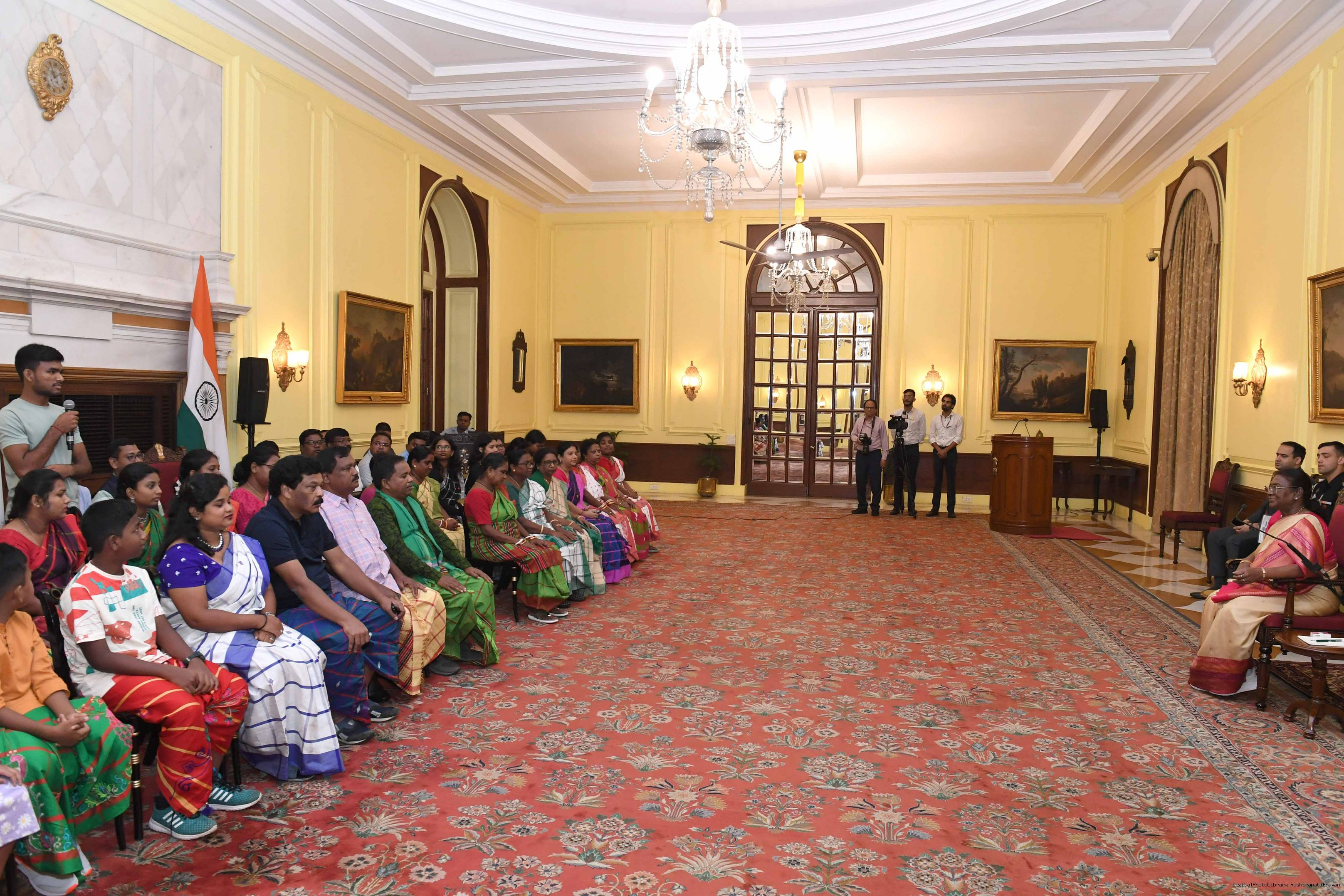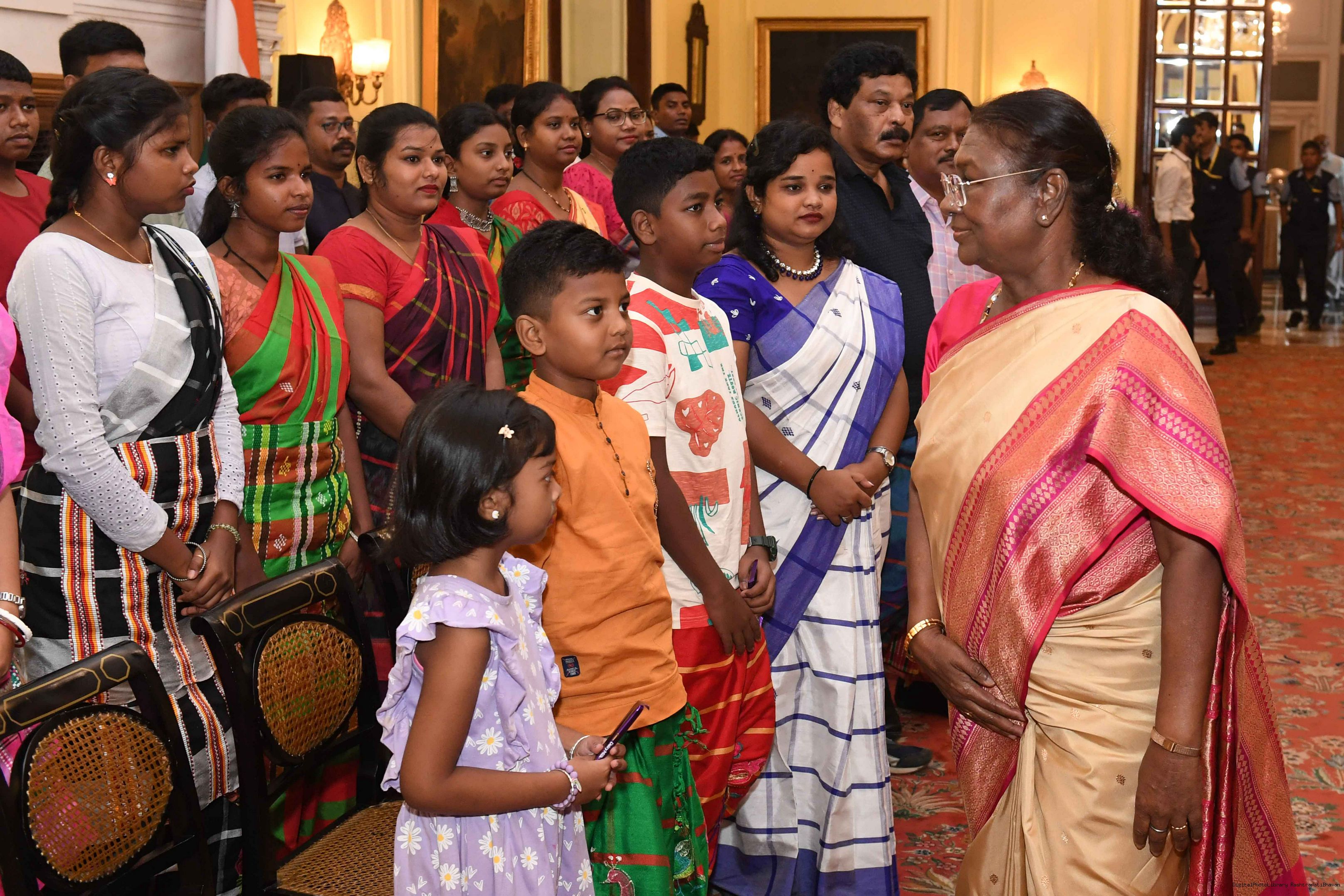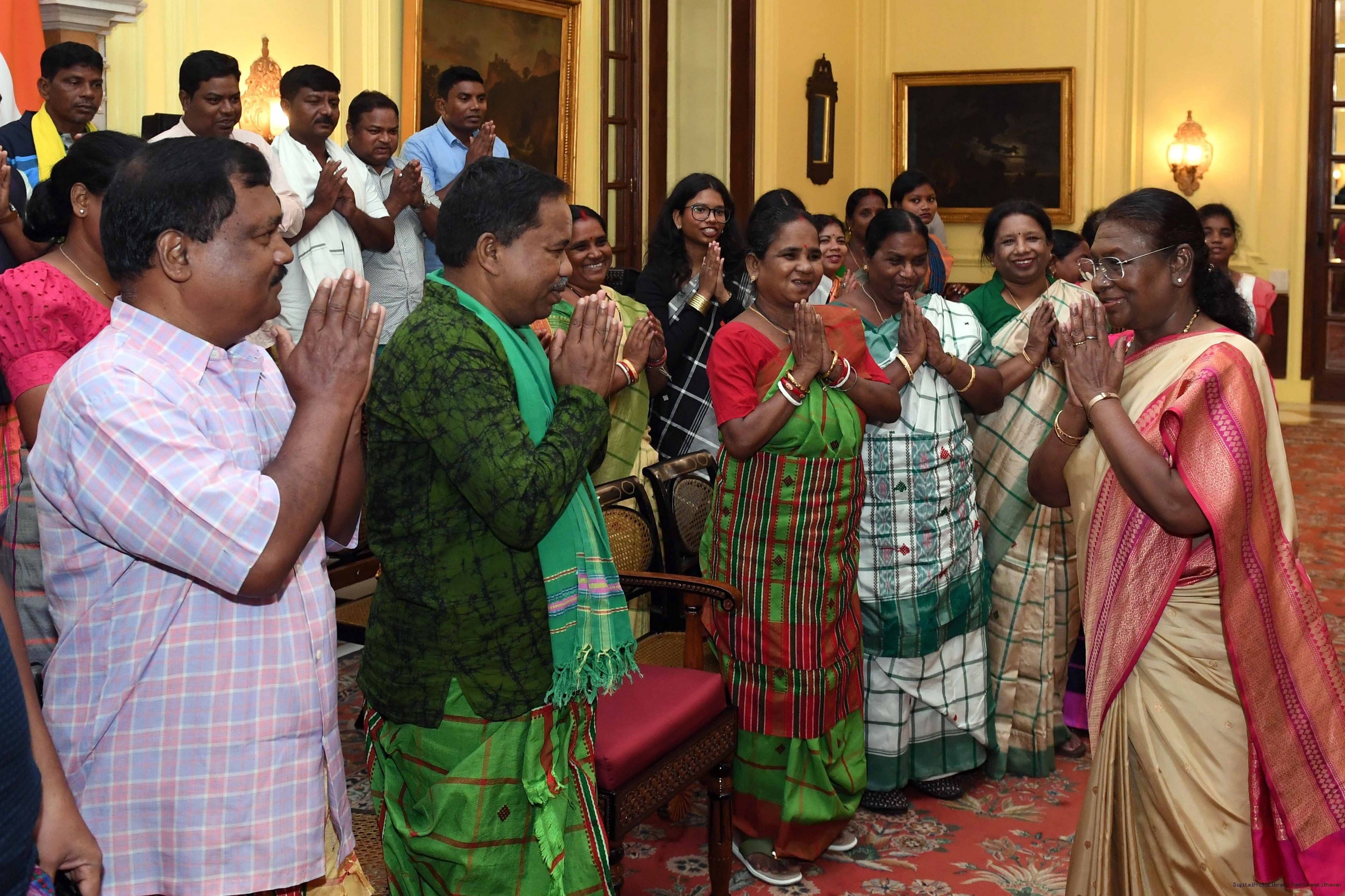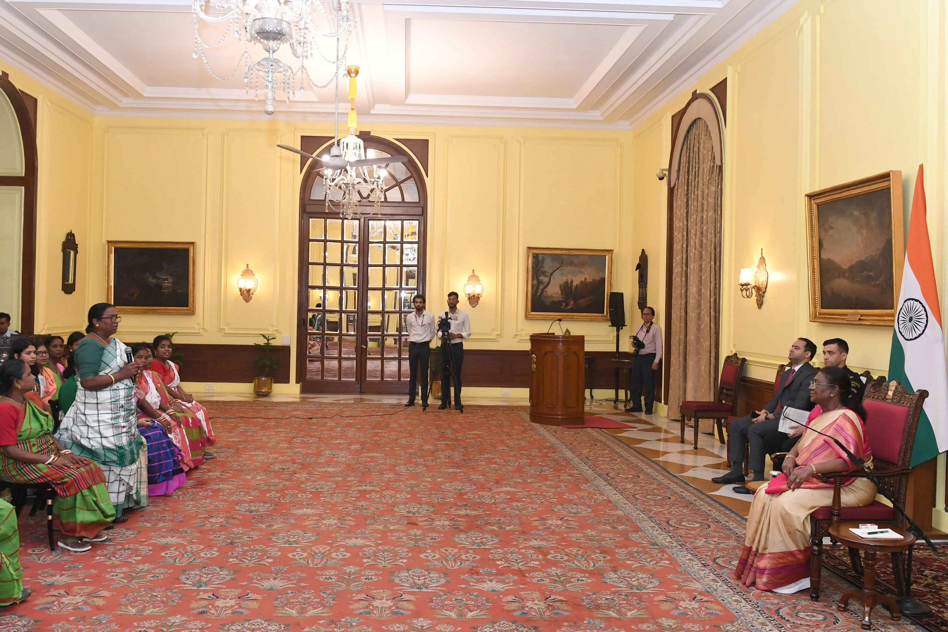 | Caption: | Smt. Malati Murmu, Publisher Editior, Fagun, Bhubaneswar along with others meeting with the President of India Smt. Droupadi Murmu at Rashtrapati Bhavan on October 11, 2024. |