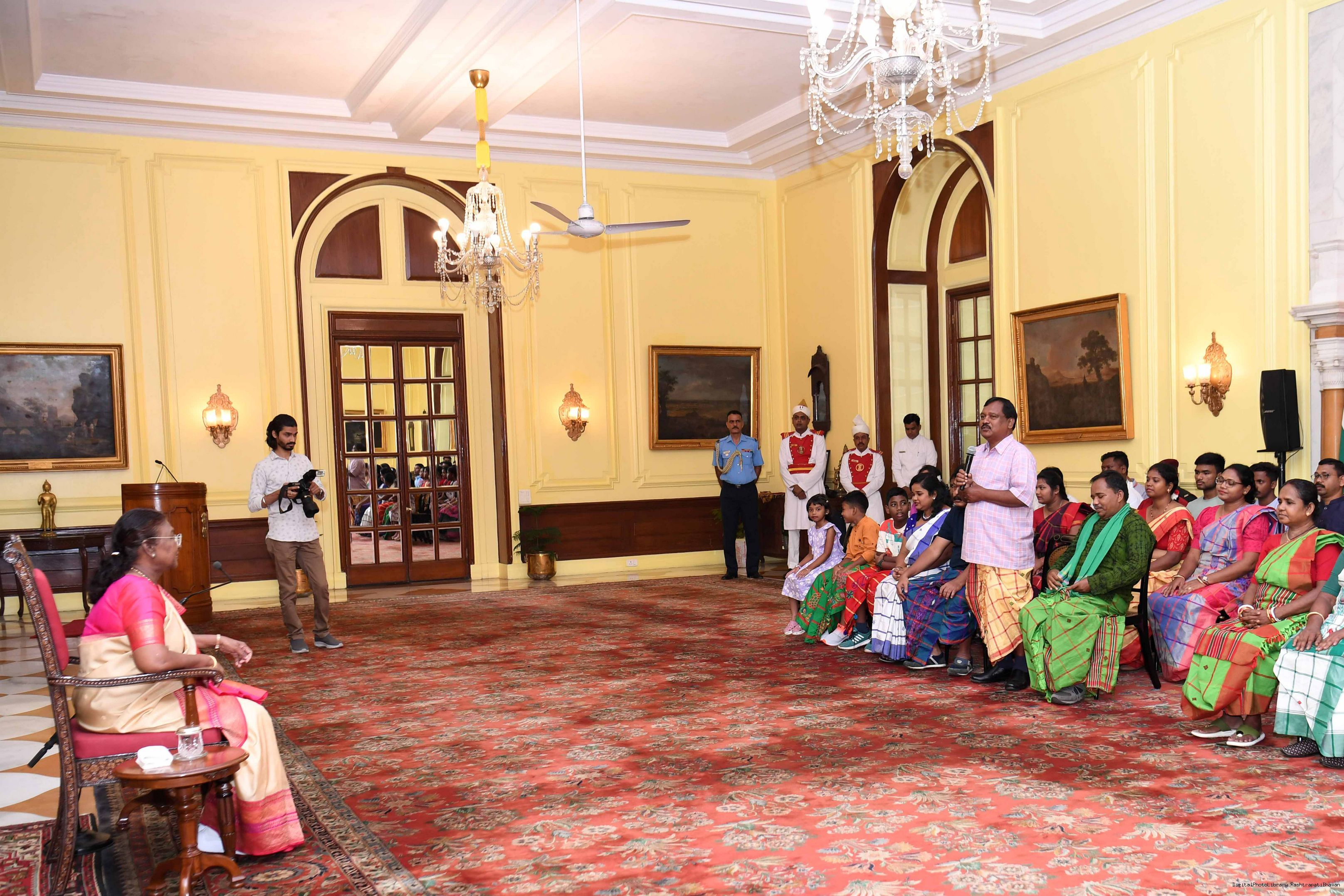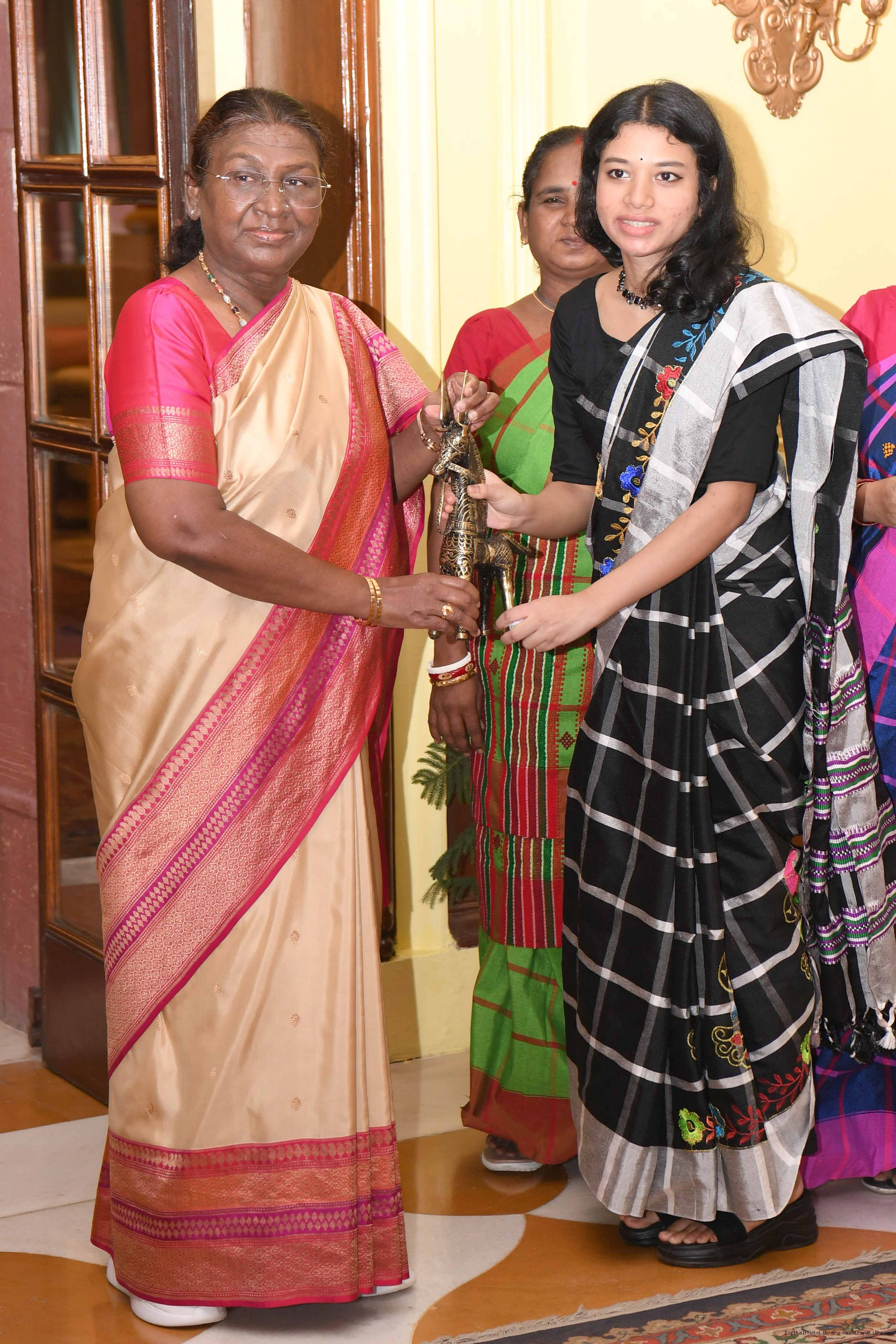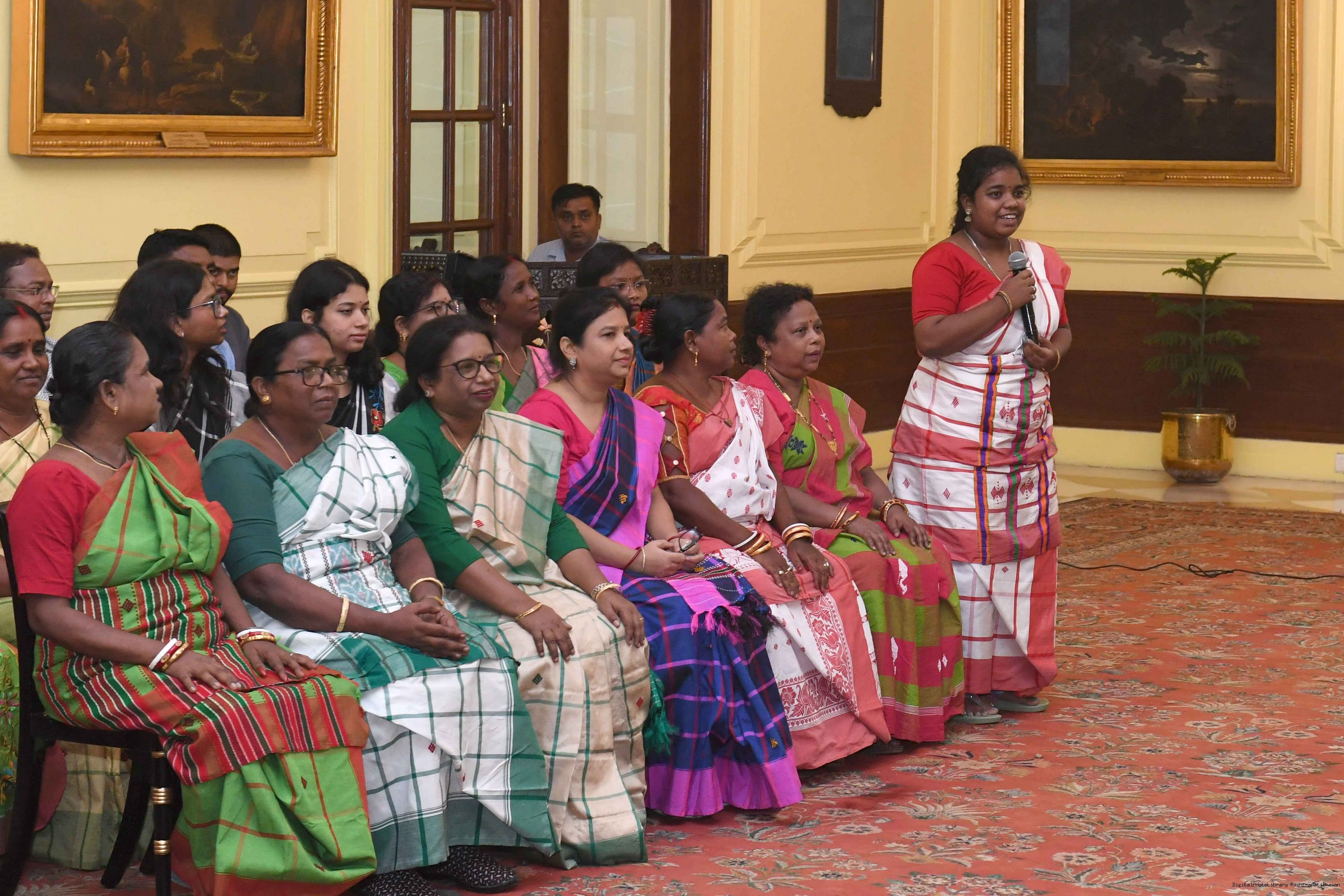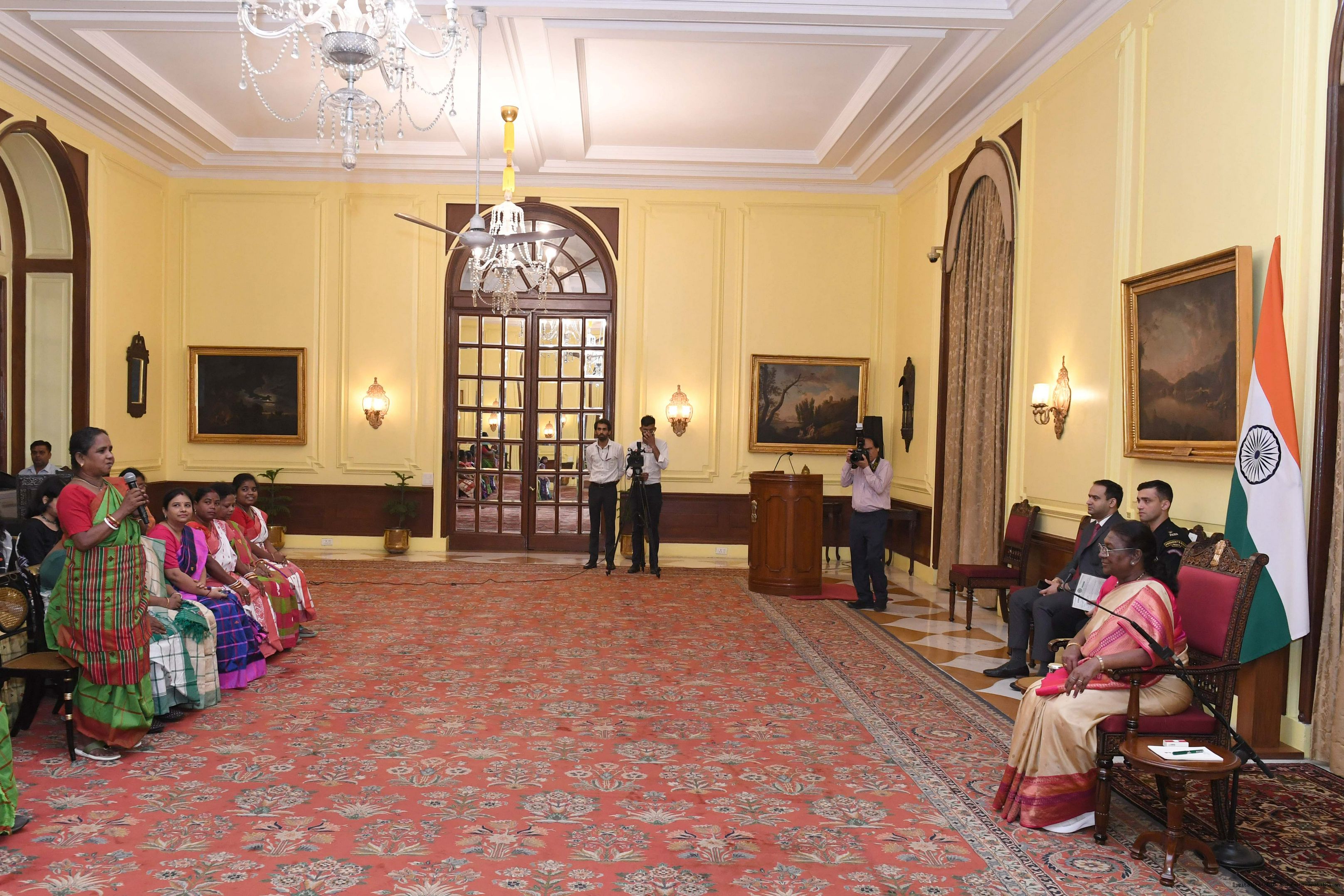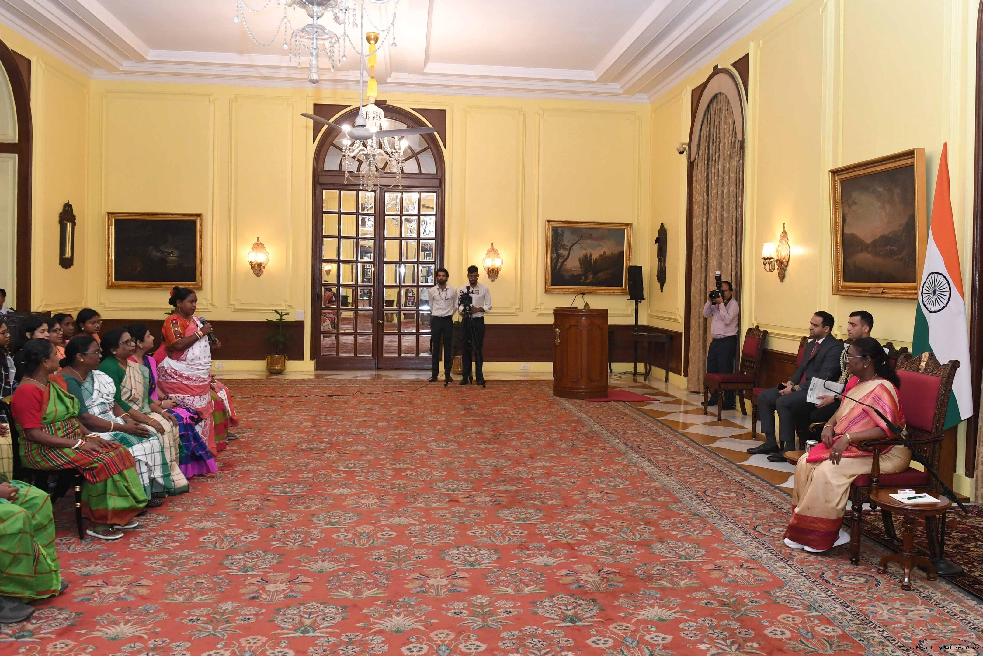 | Caption: | Smt. Malati Murmu, Publisher Editior, Fagun, Bhubaneswar along with others meeting with the President of India Smt. Droupadi Murmu at Rashtrapati Bhavan on October 11, 2024. |