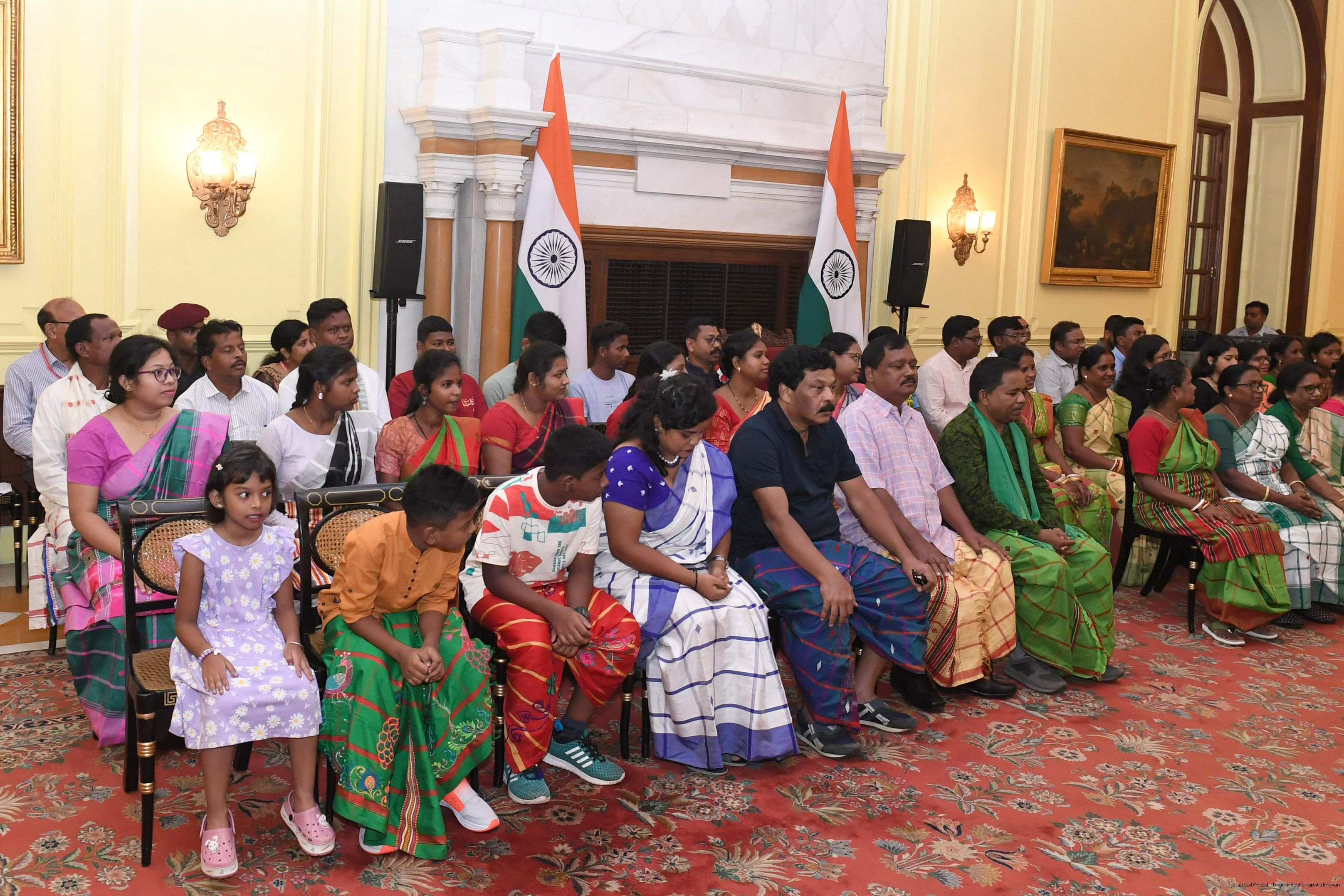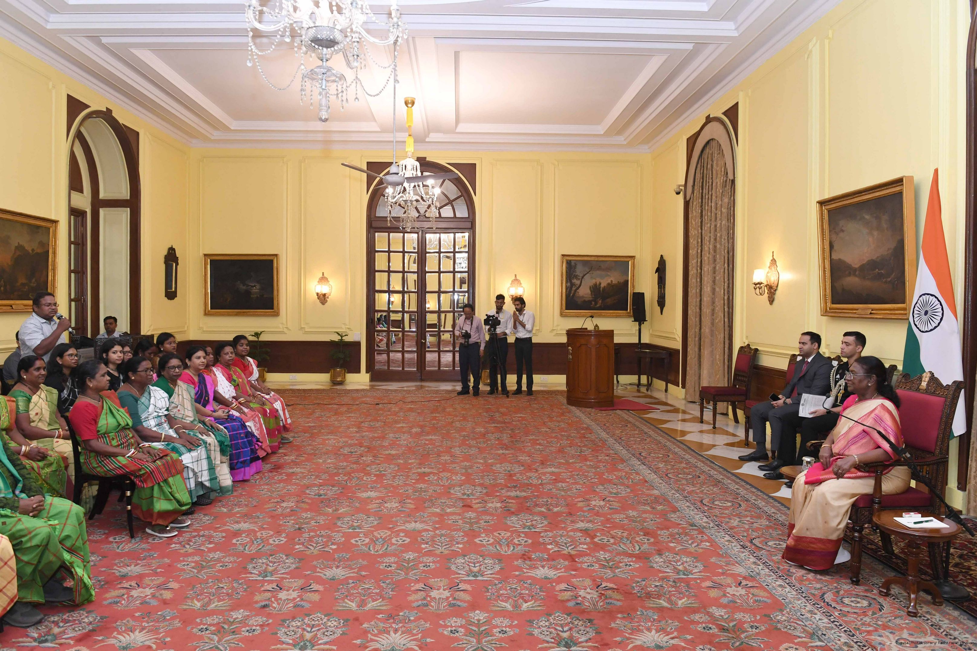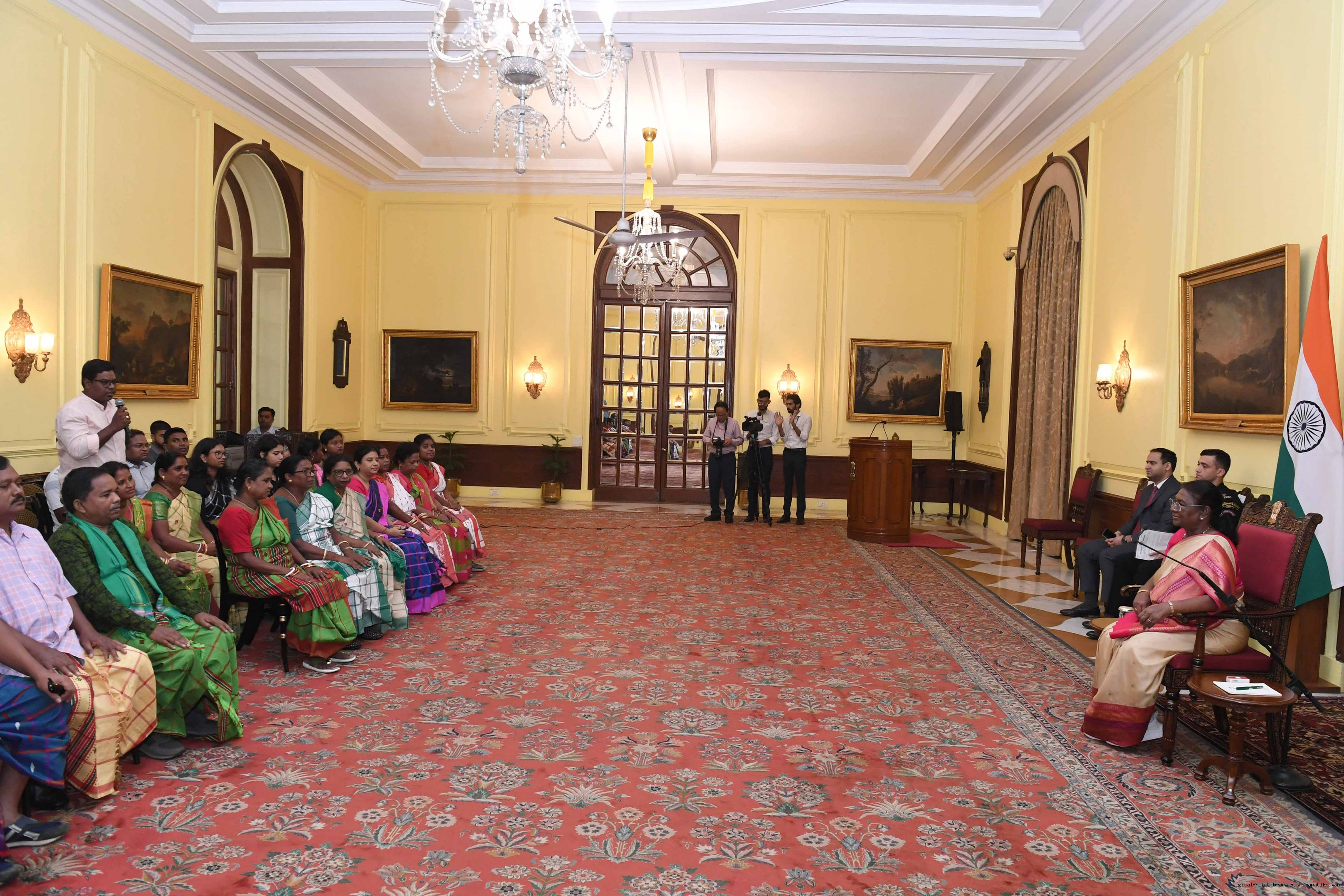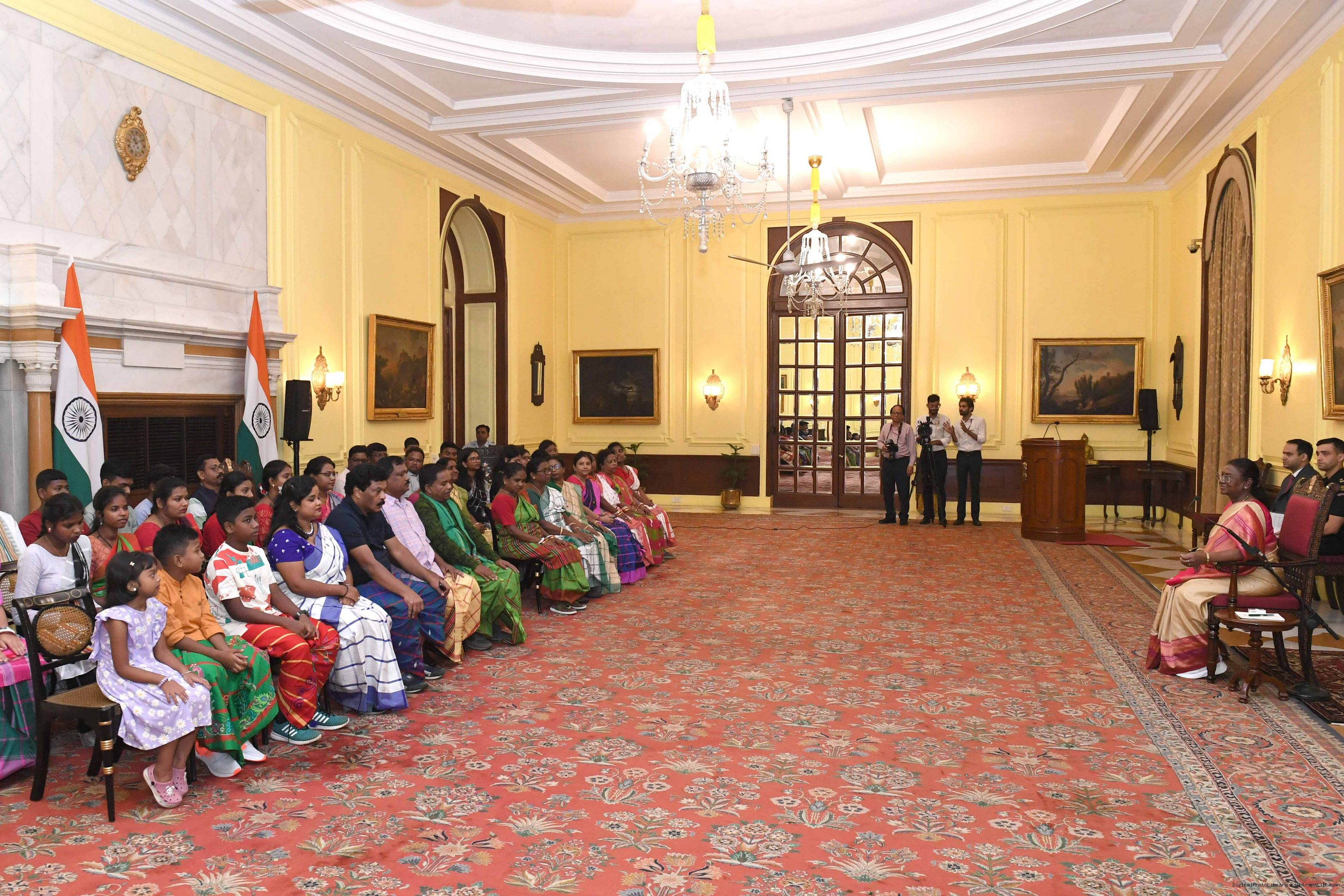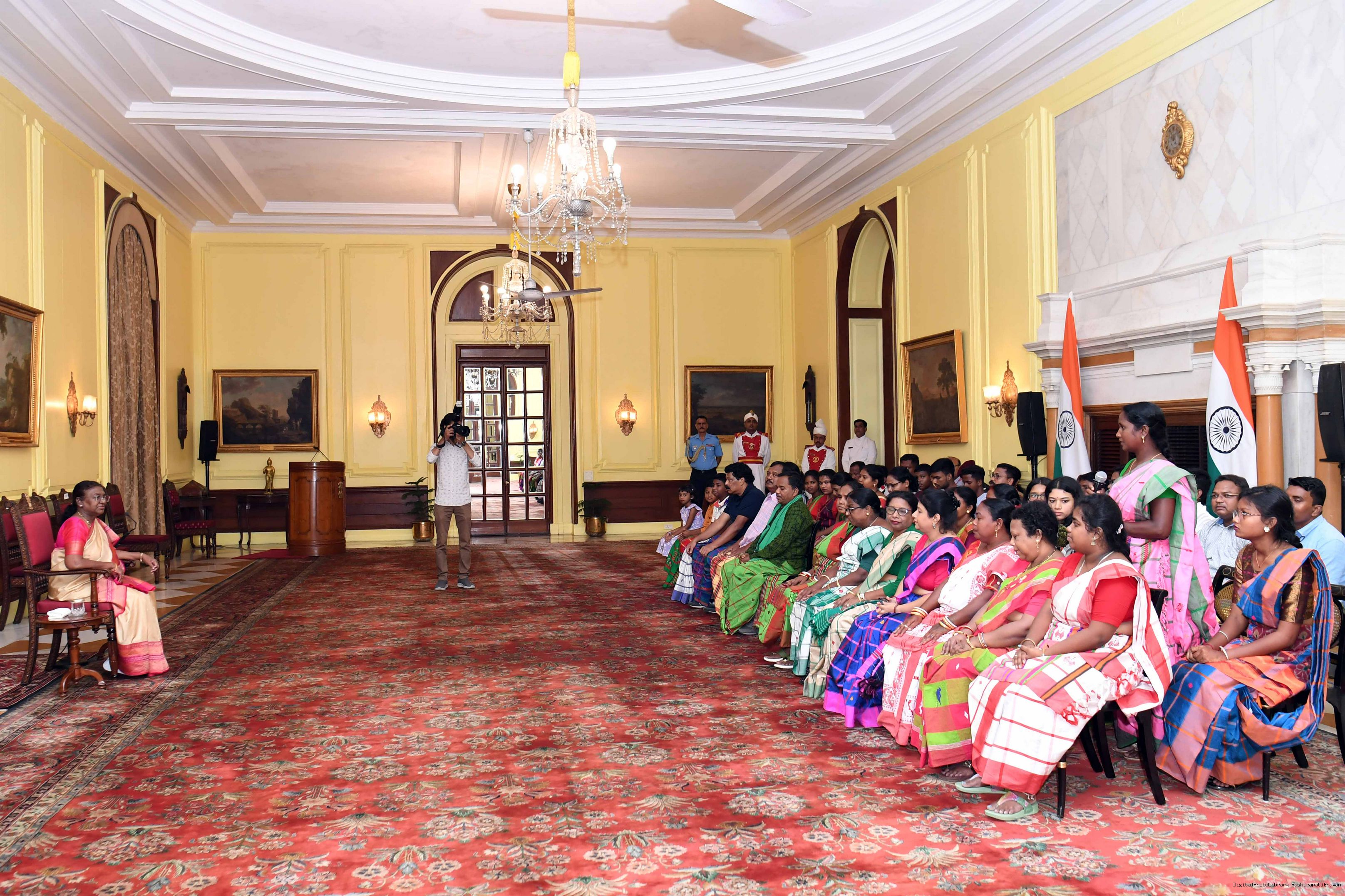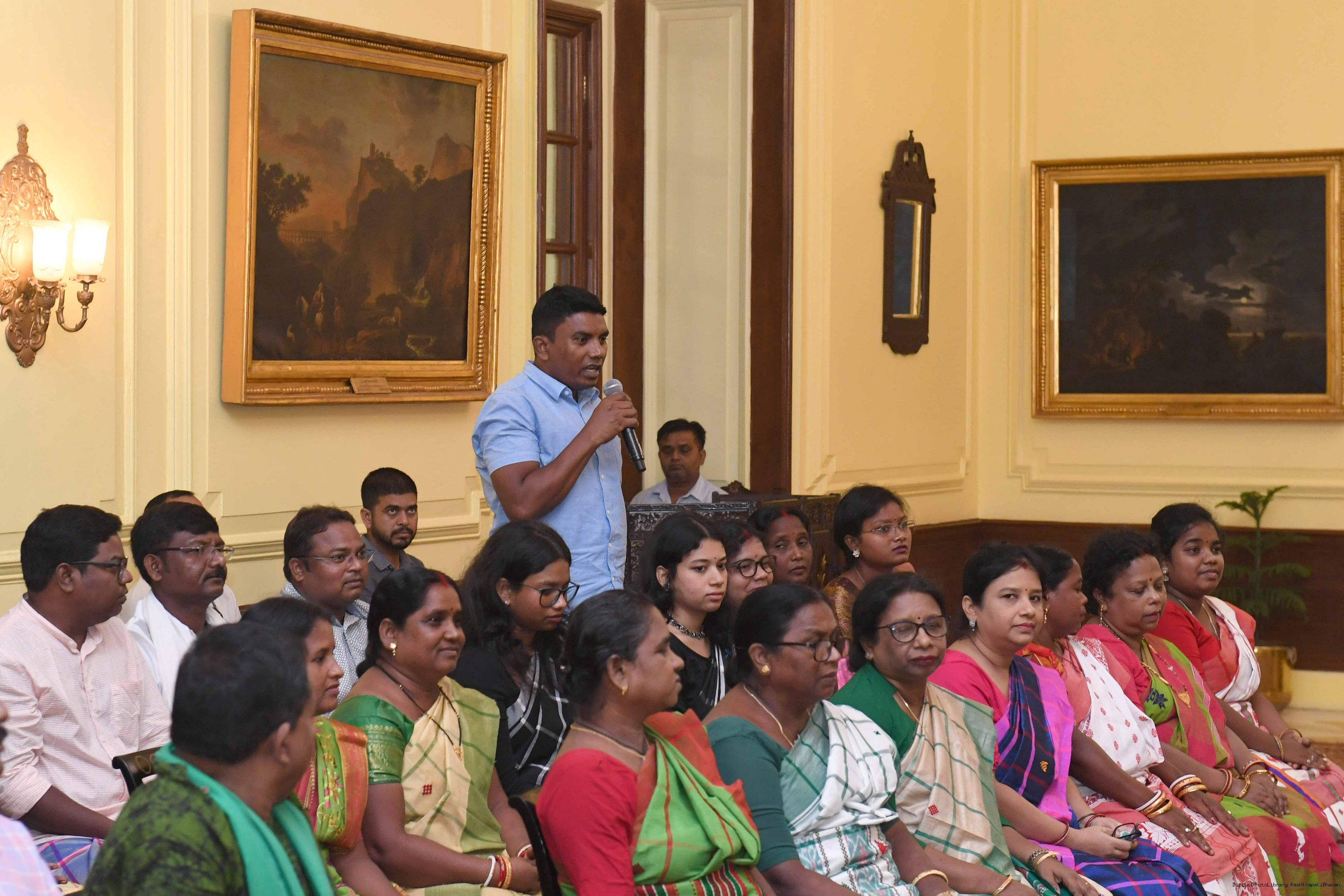 | Caption: | Smt. Malati Murmu, Publisher Editior, Fagun, Bhubaneswar along with others meeting with the President of India Smt. Droupadi Murmu at Rashtrapati Bhavan on October 11, 2024. |