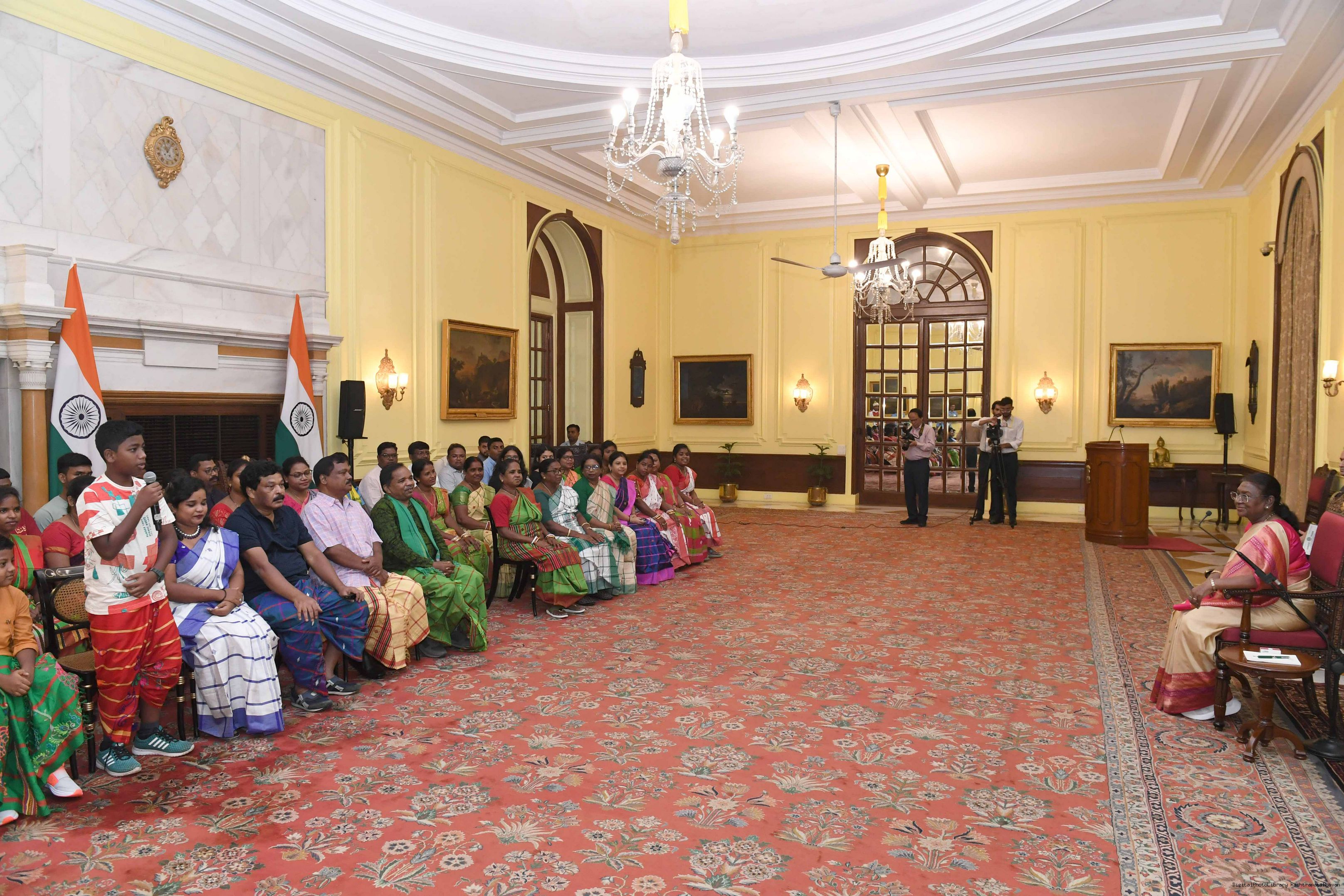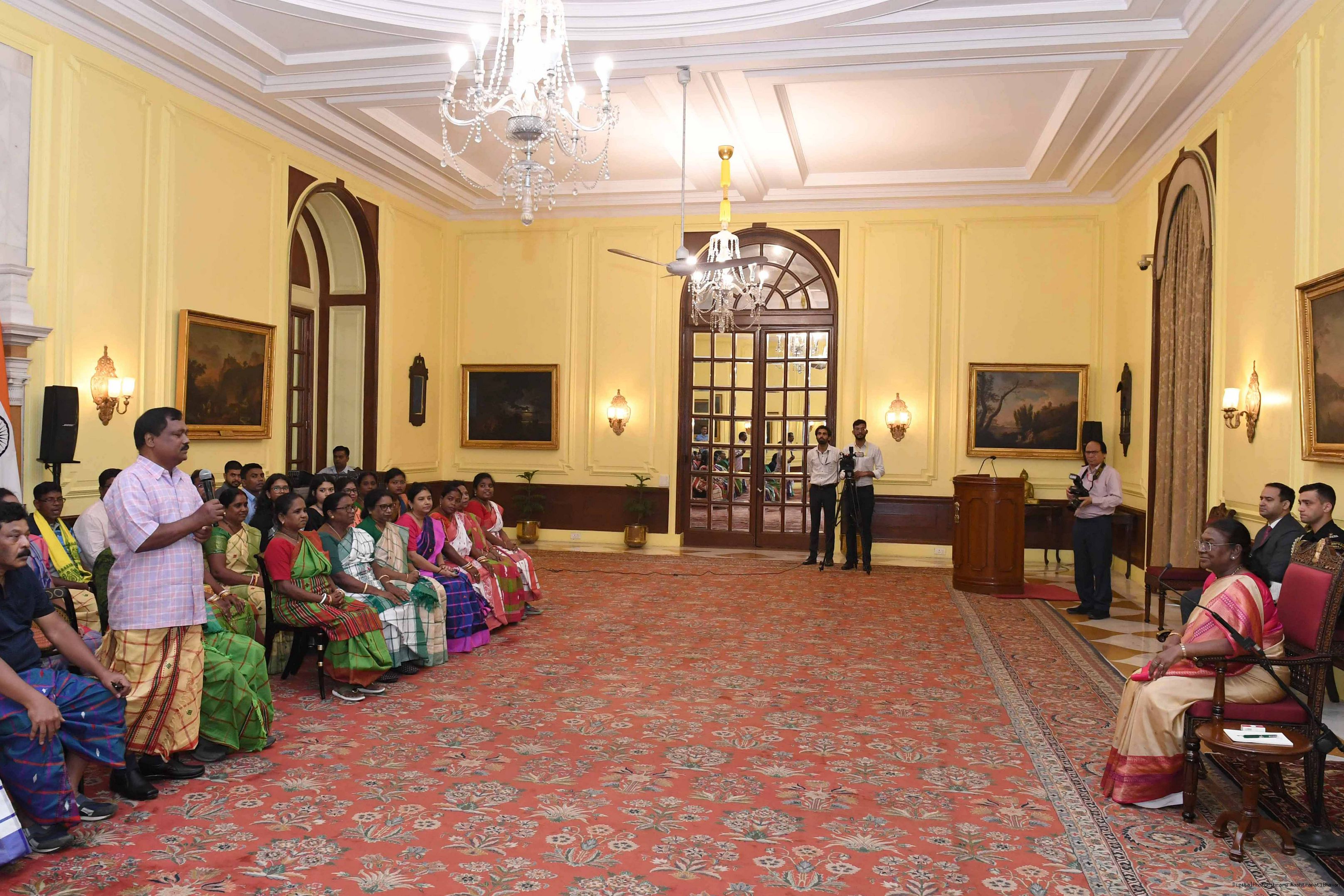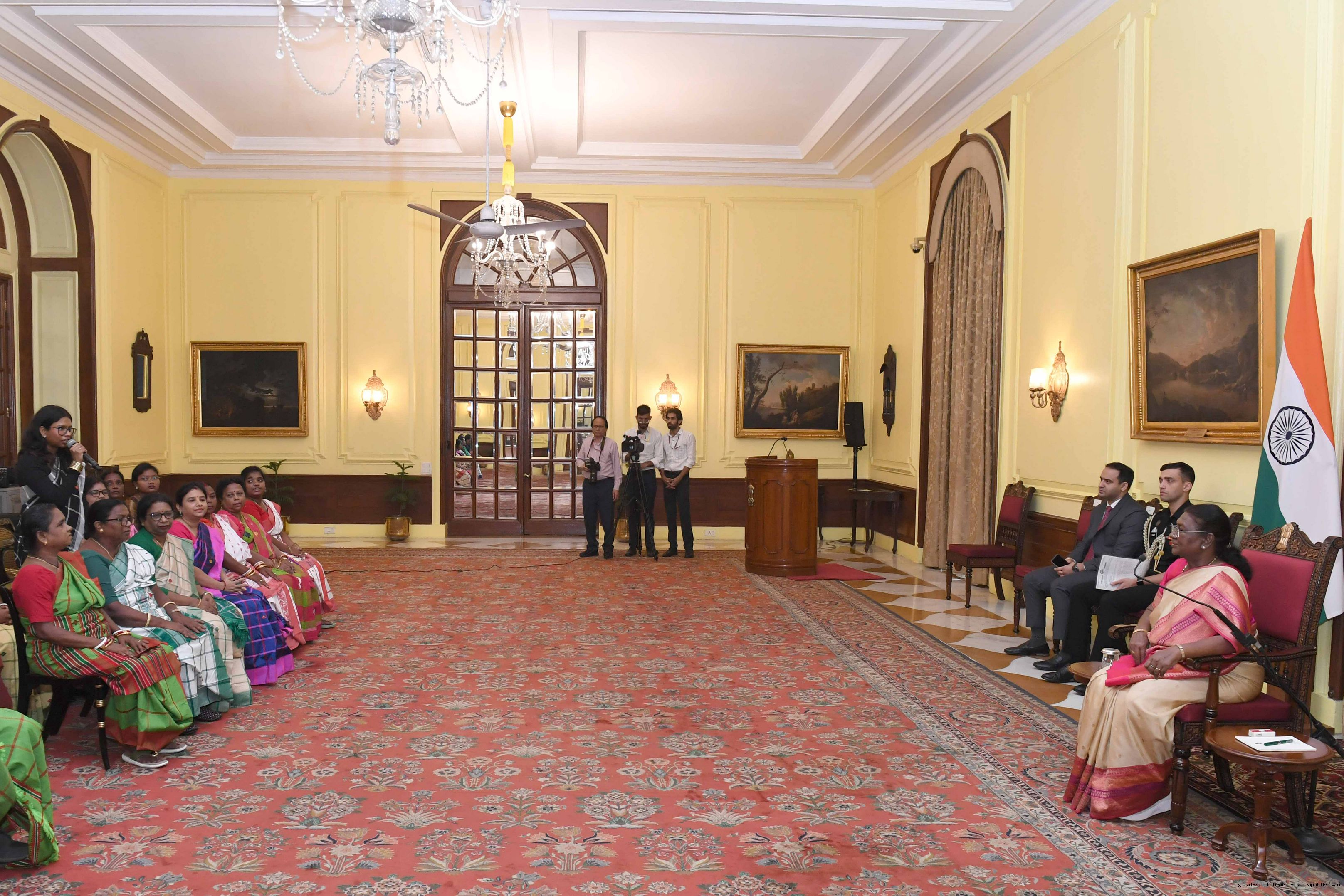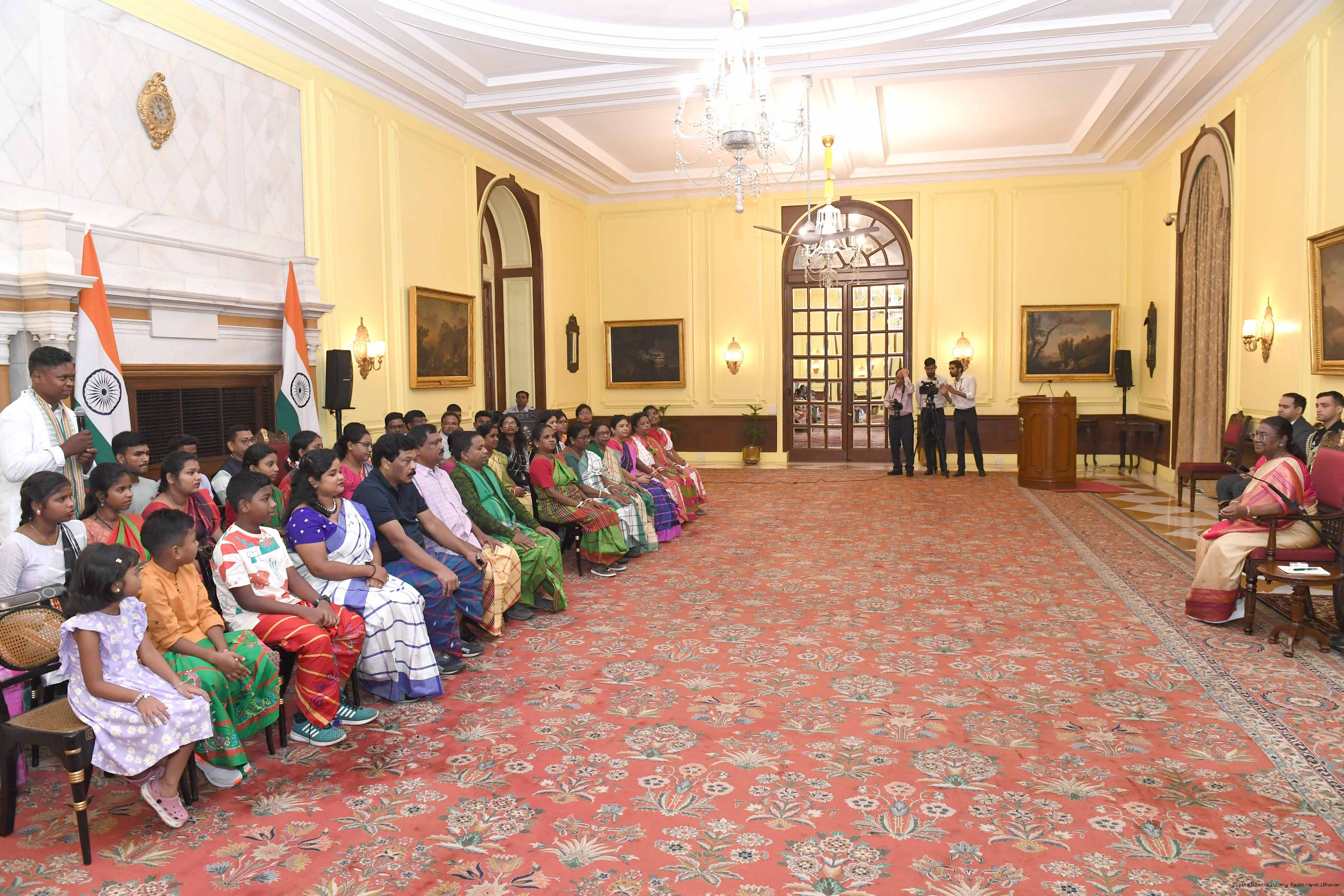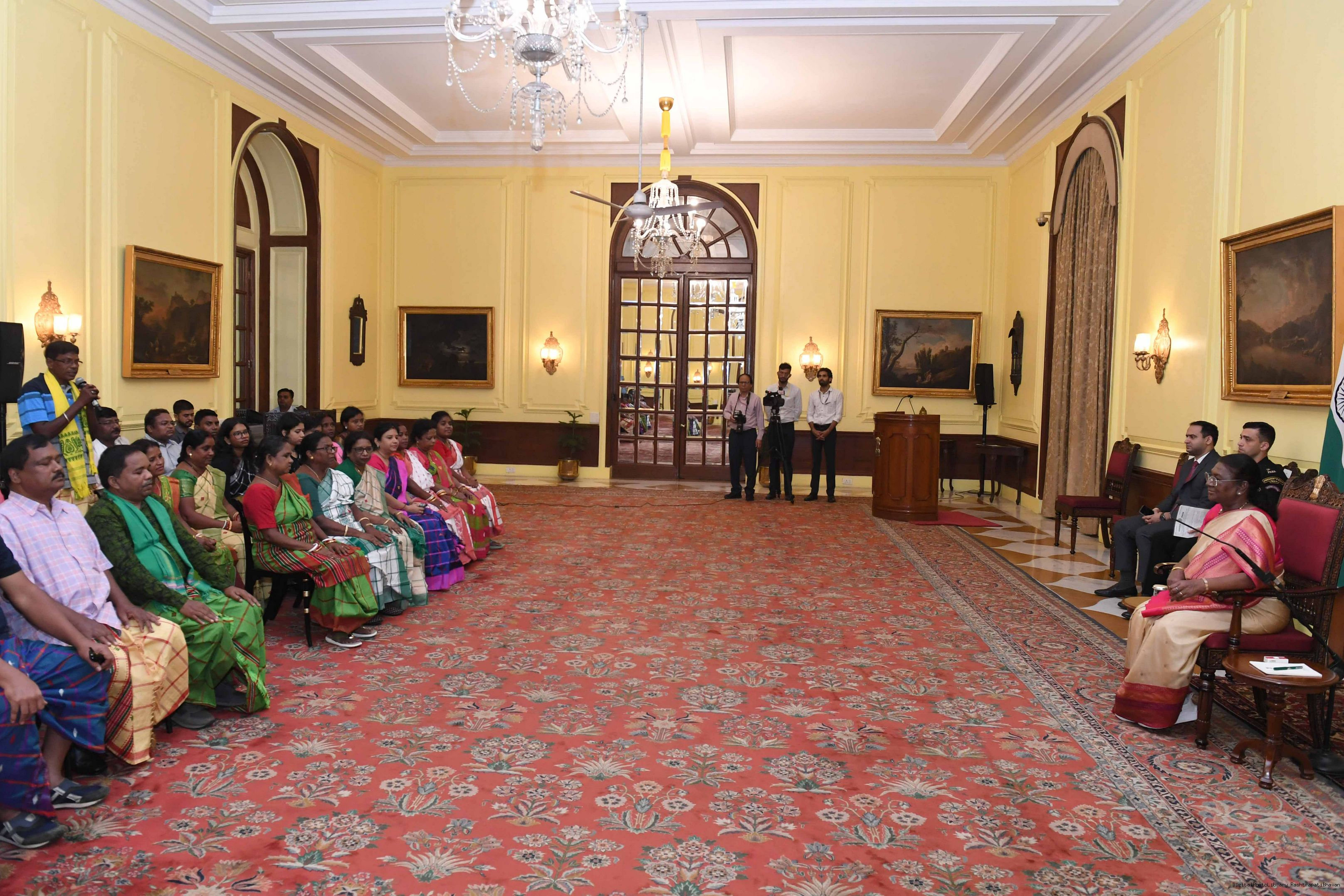 | Caption: | Smt. Malati Murmu, Publisher Editior, Fagun, Bhubaneswar along with others meeting with the President of India Smt. Droupadi Murmu at Rashtrapati Bhavan on October 11, 2024. |