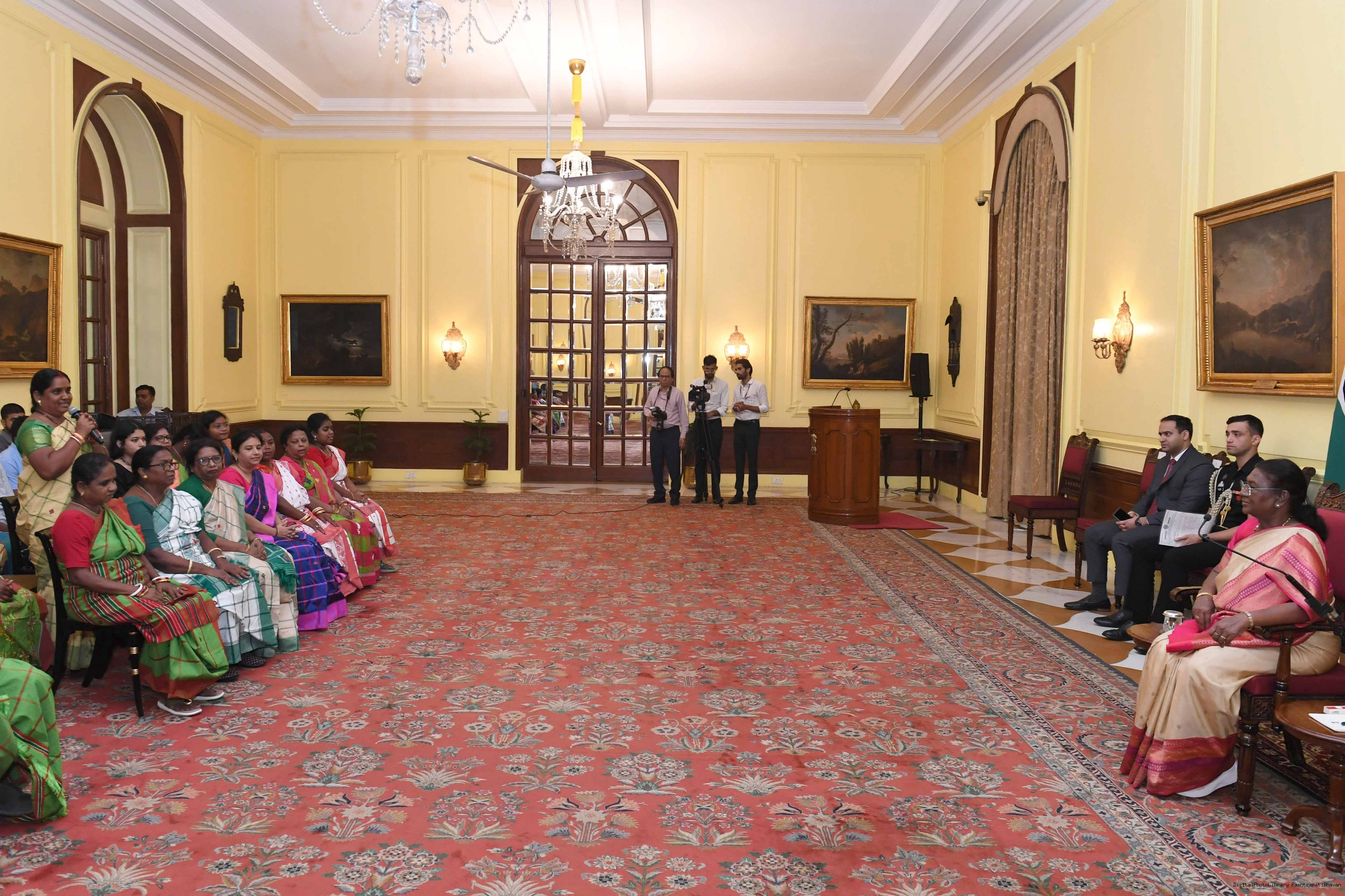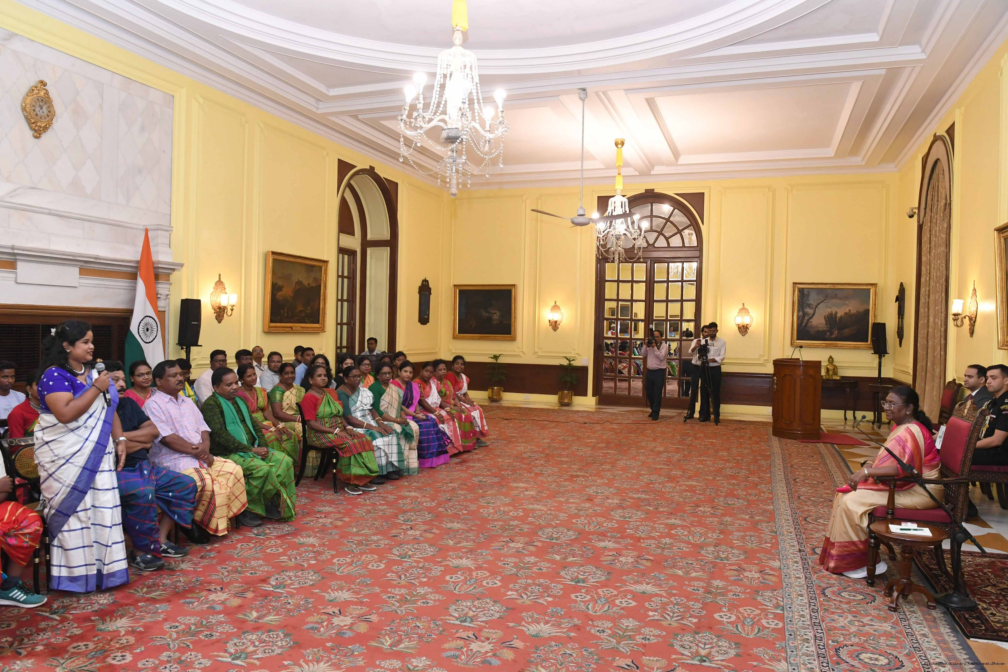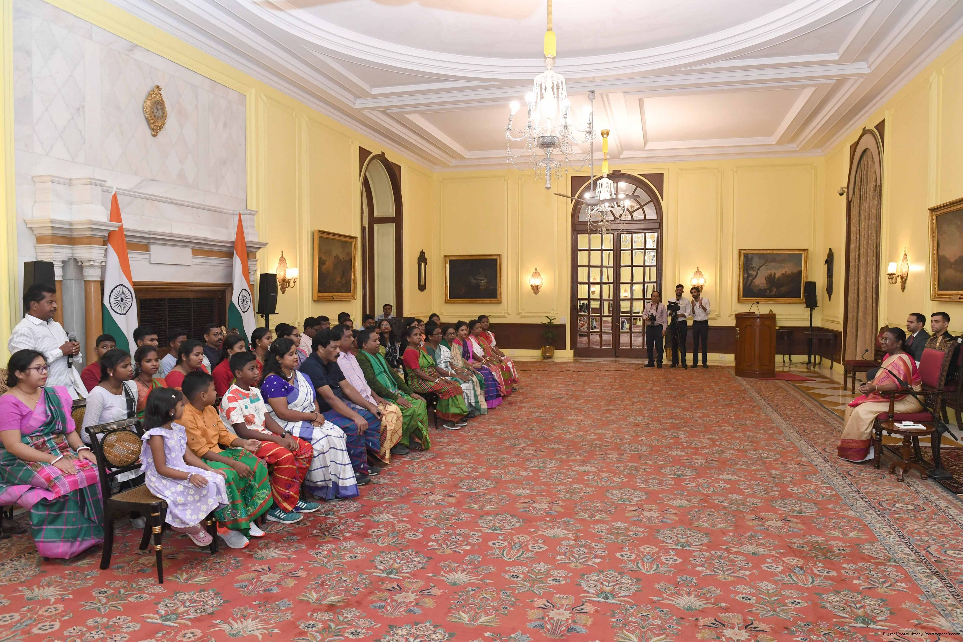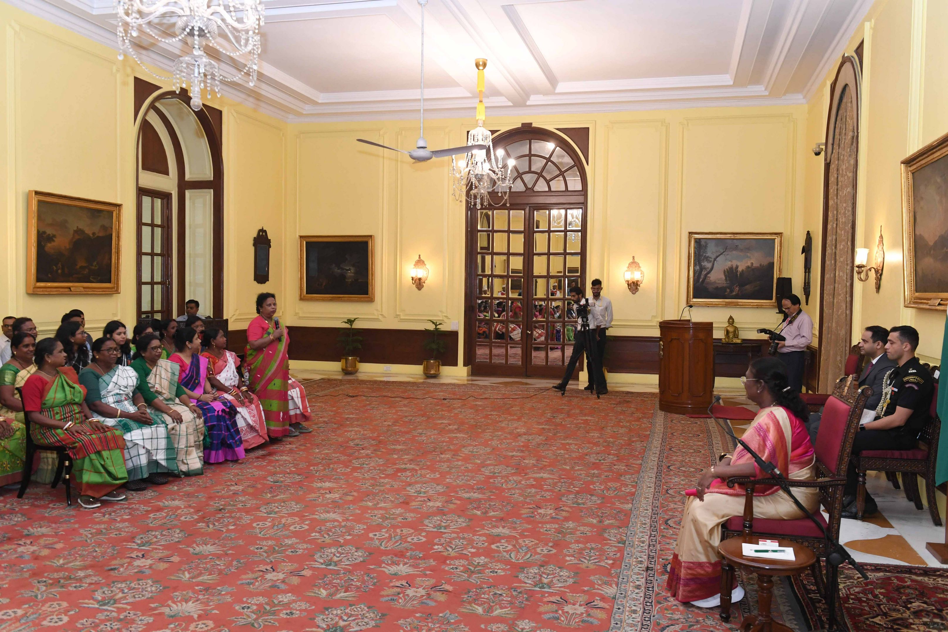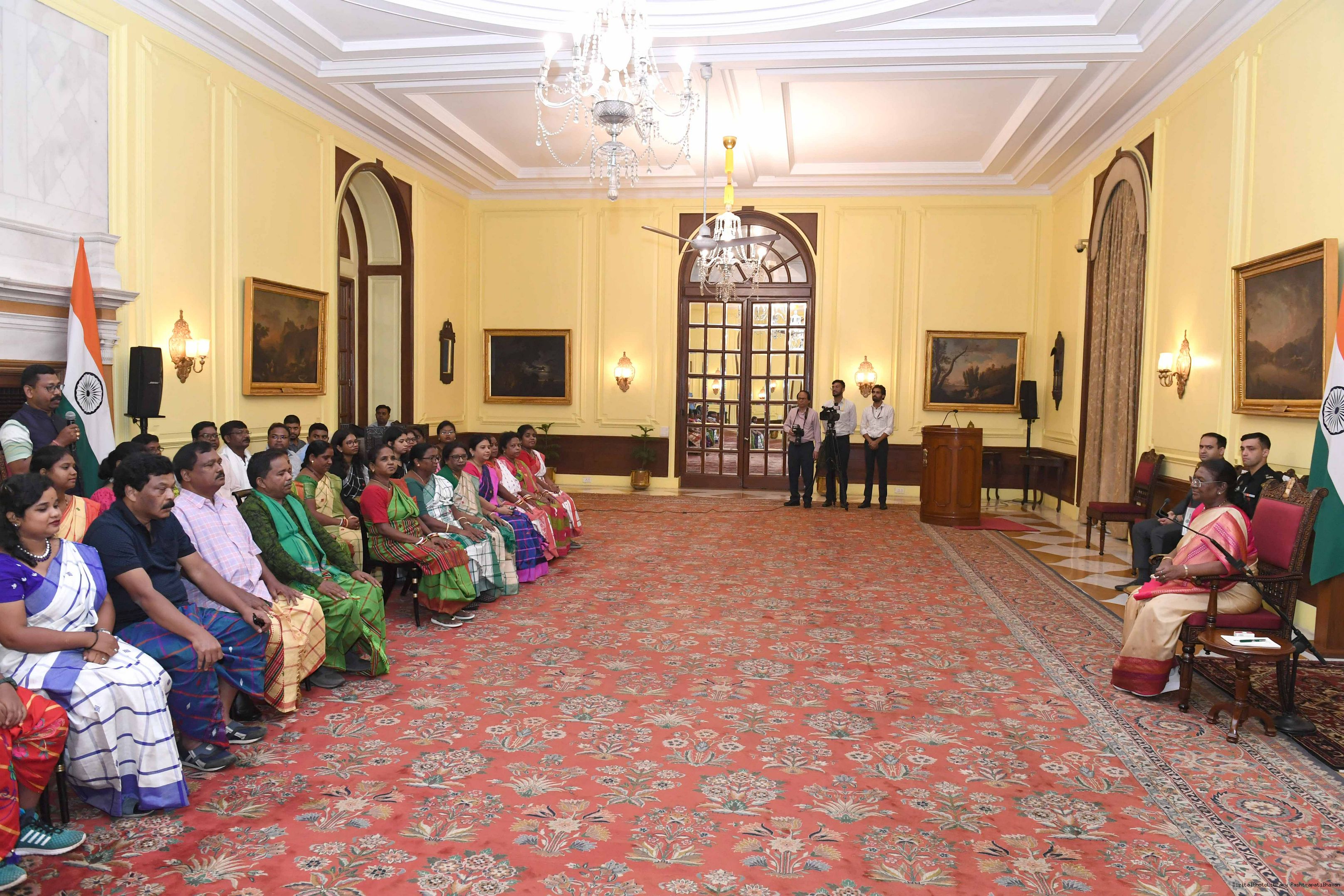 | Caption: | Smt. Malati Murmu, Publisher Editior, Fagun, Bhubaneswar along with others meeting with the President of India Smt. Droupadi Murmu at Rashtrapati Bhavan on October 11, 2024. |