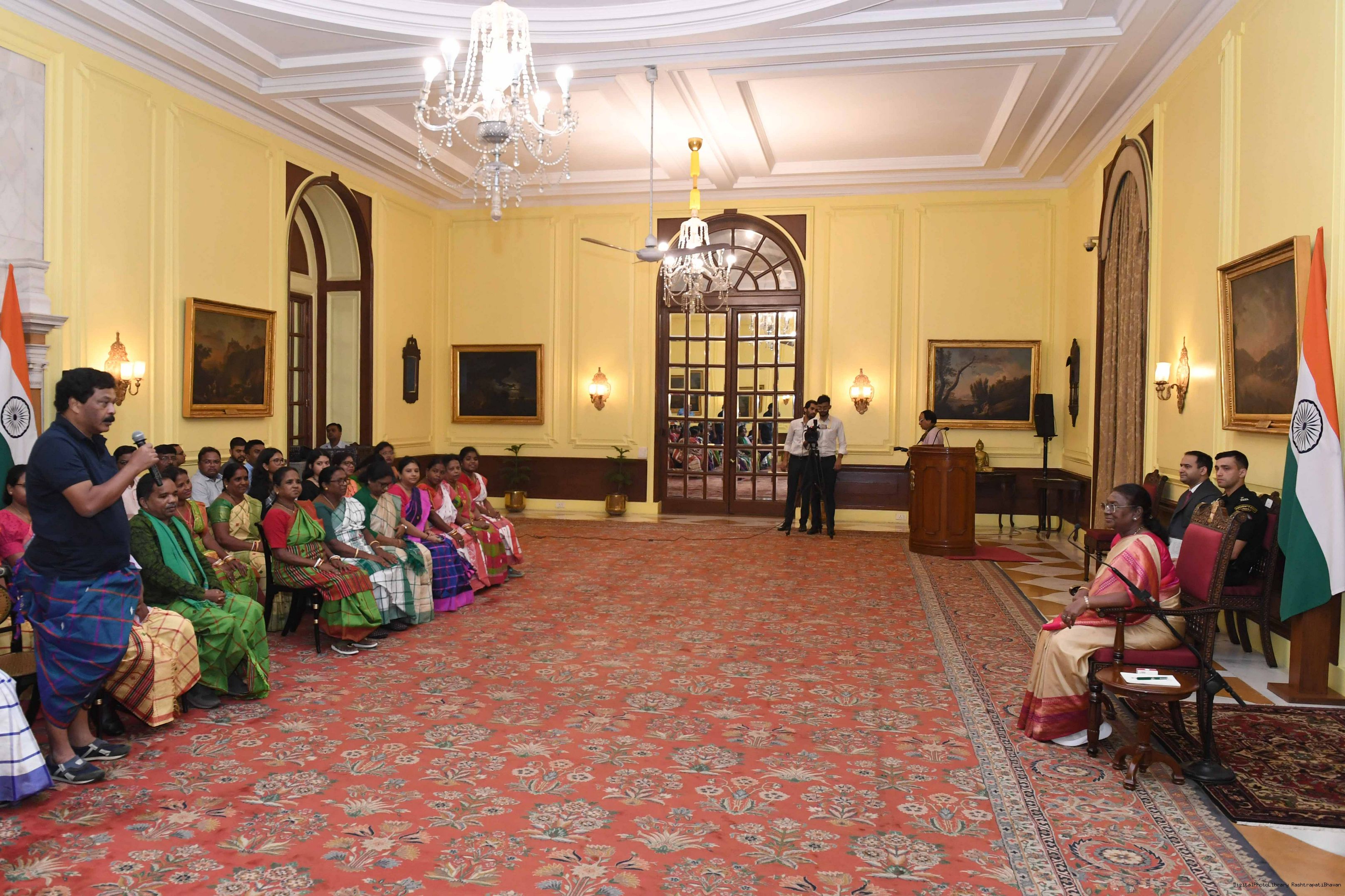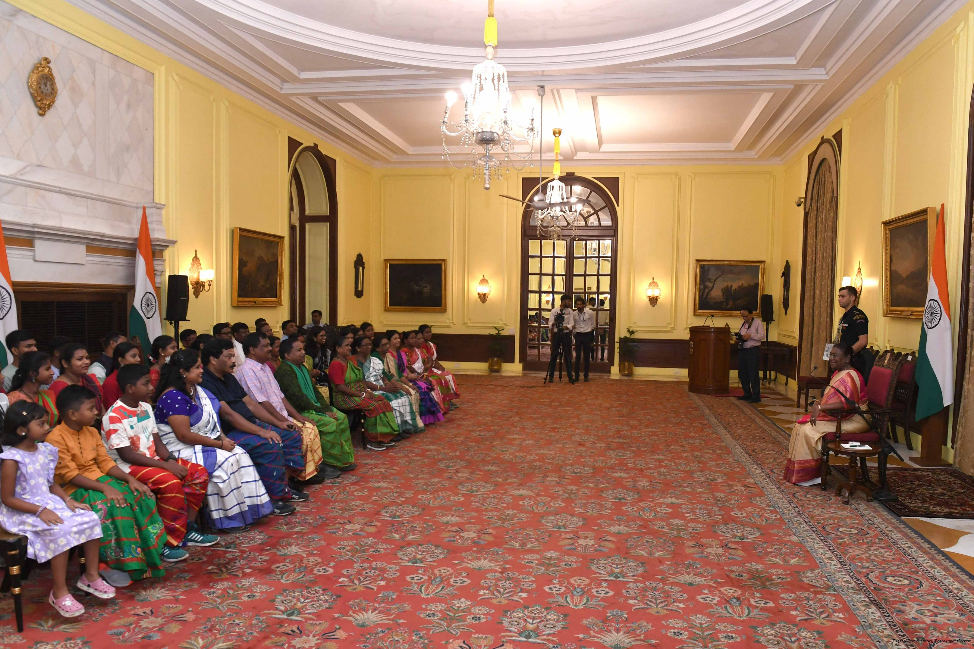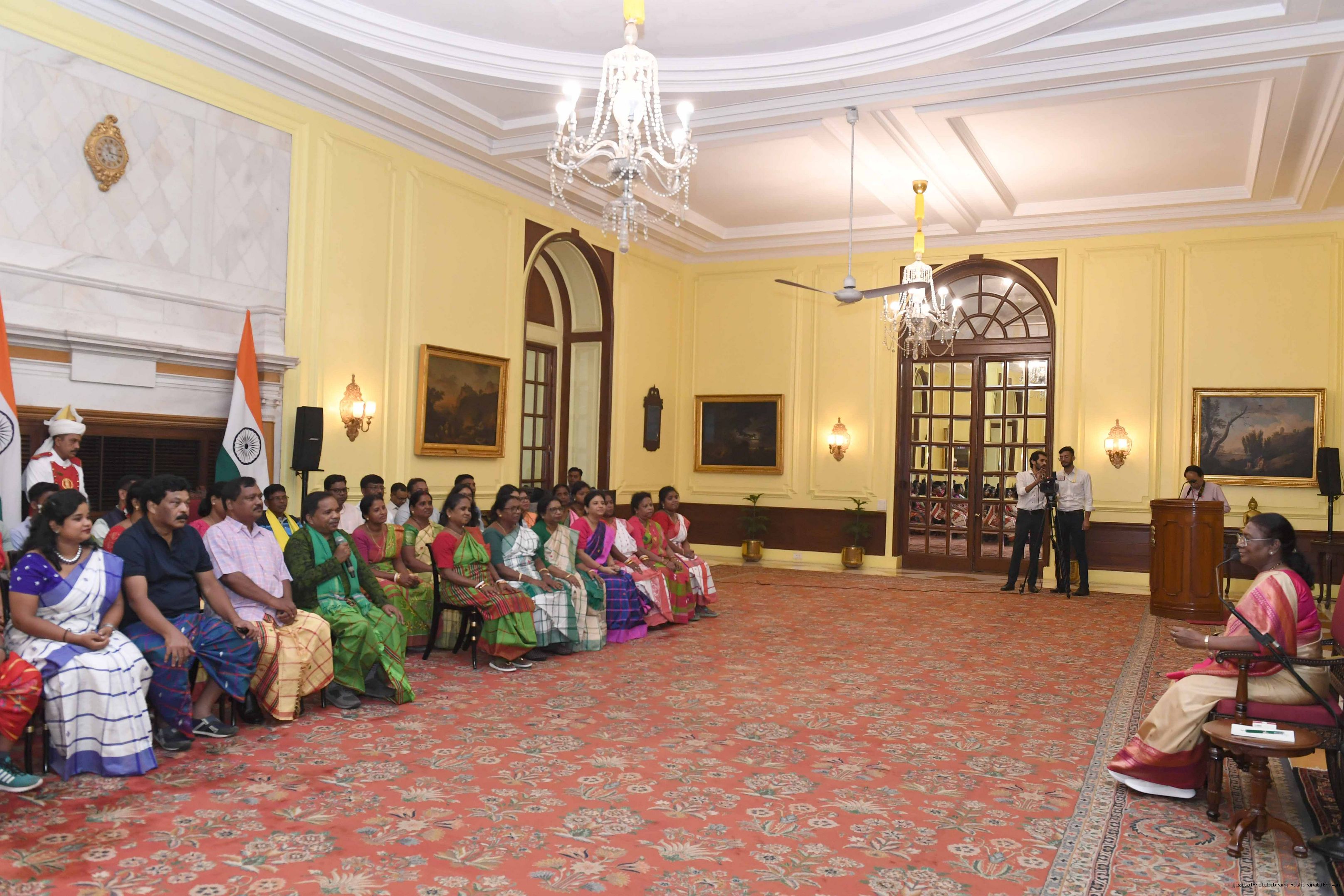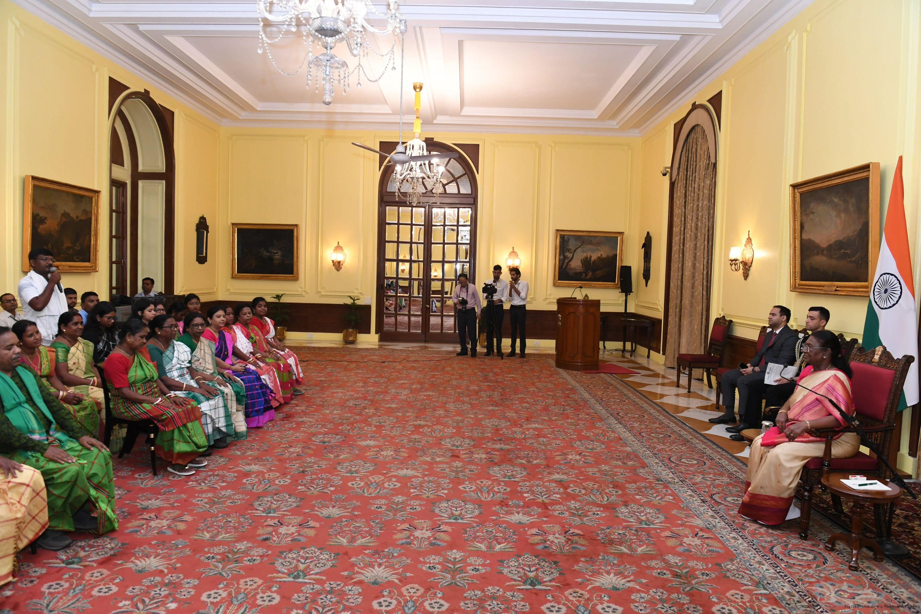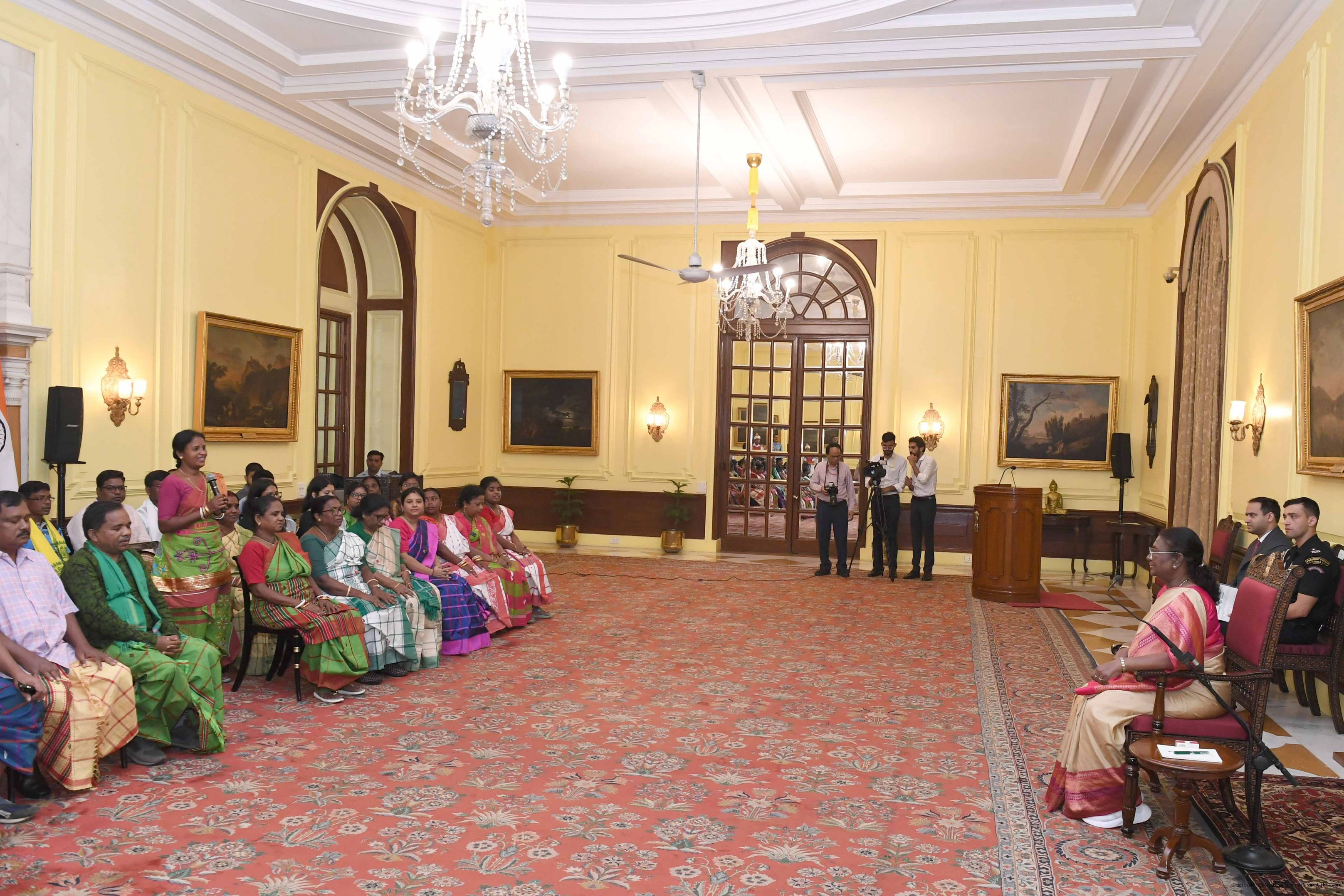 | Caption: | Smt. Malati Murmu, Publisher Editior, Fagun, Bhubaneswar along with others meeting with the President of India Smt. Droupadi Murmu at Rashtrapati Bhavan on October 11, 2024. |