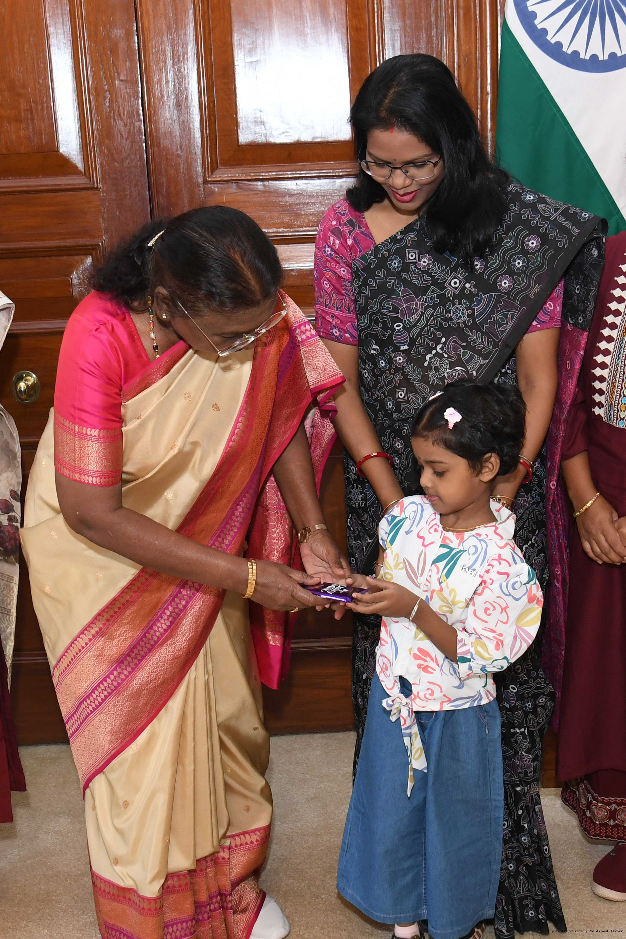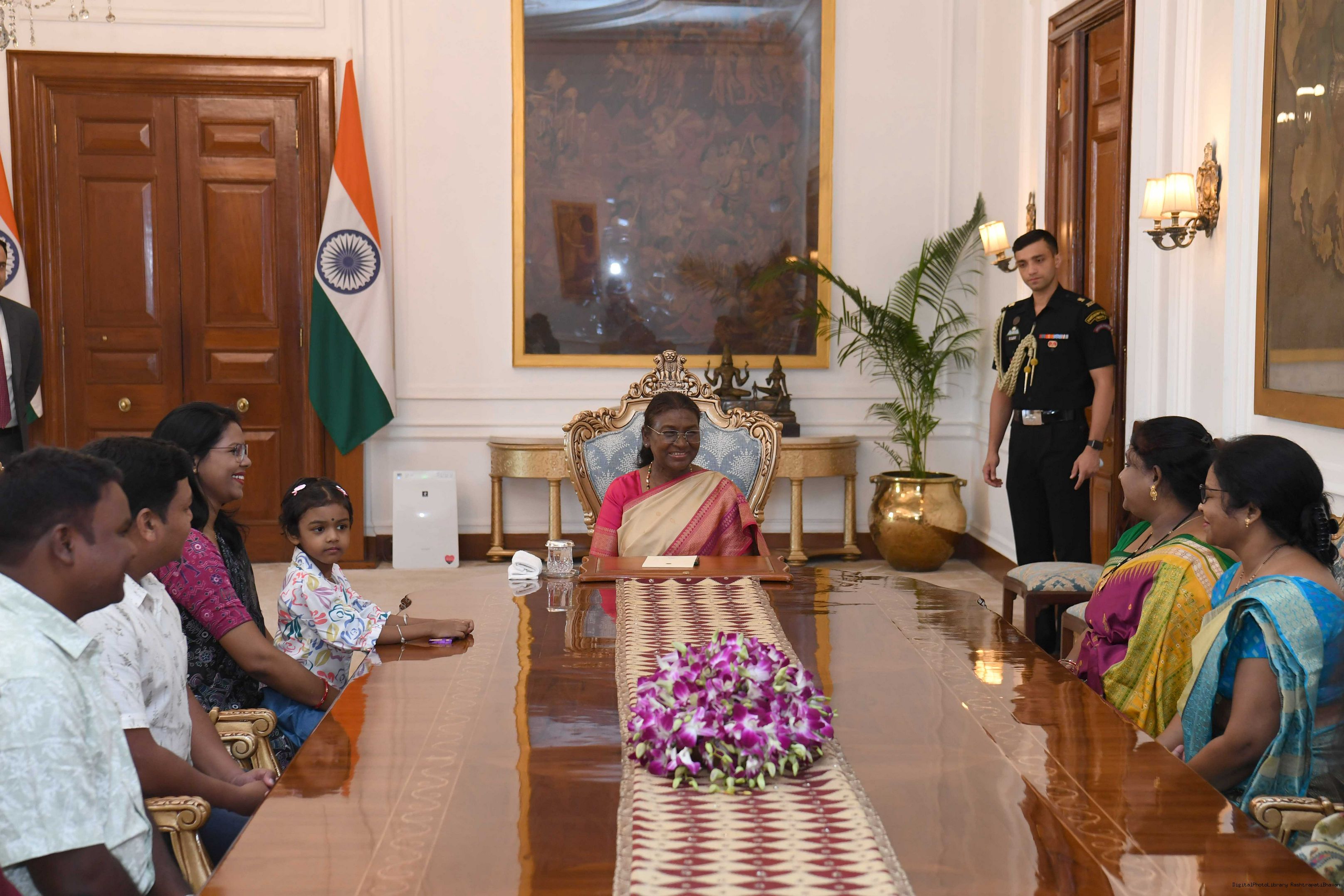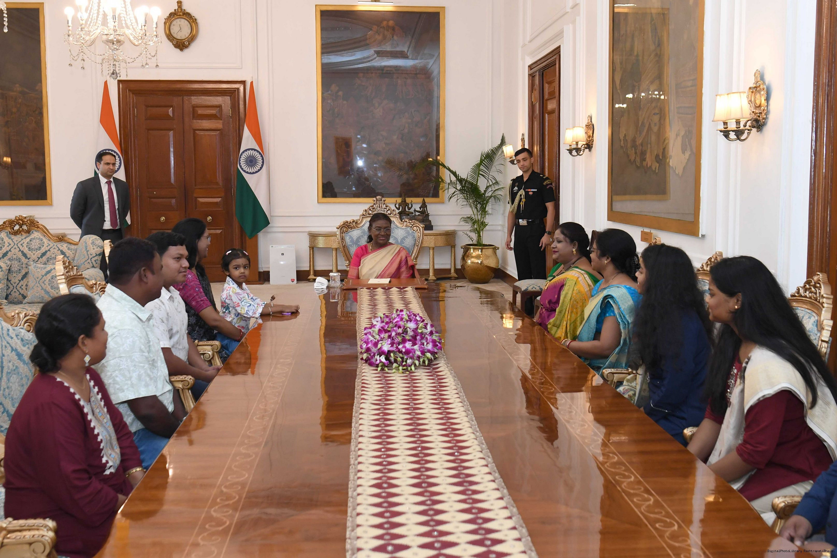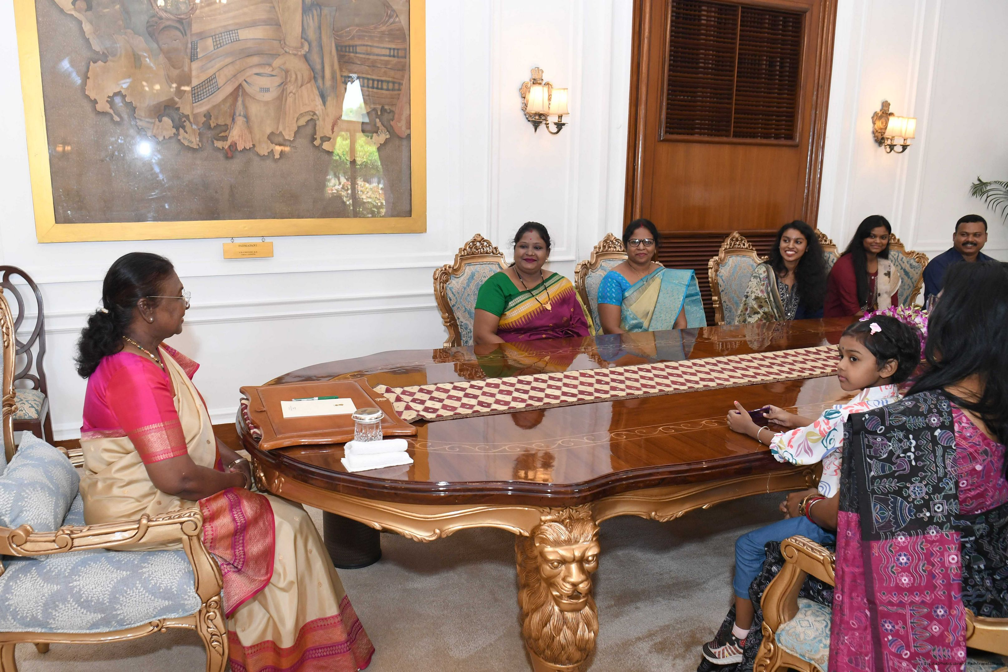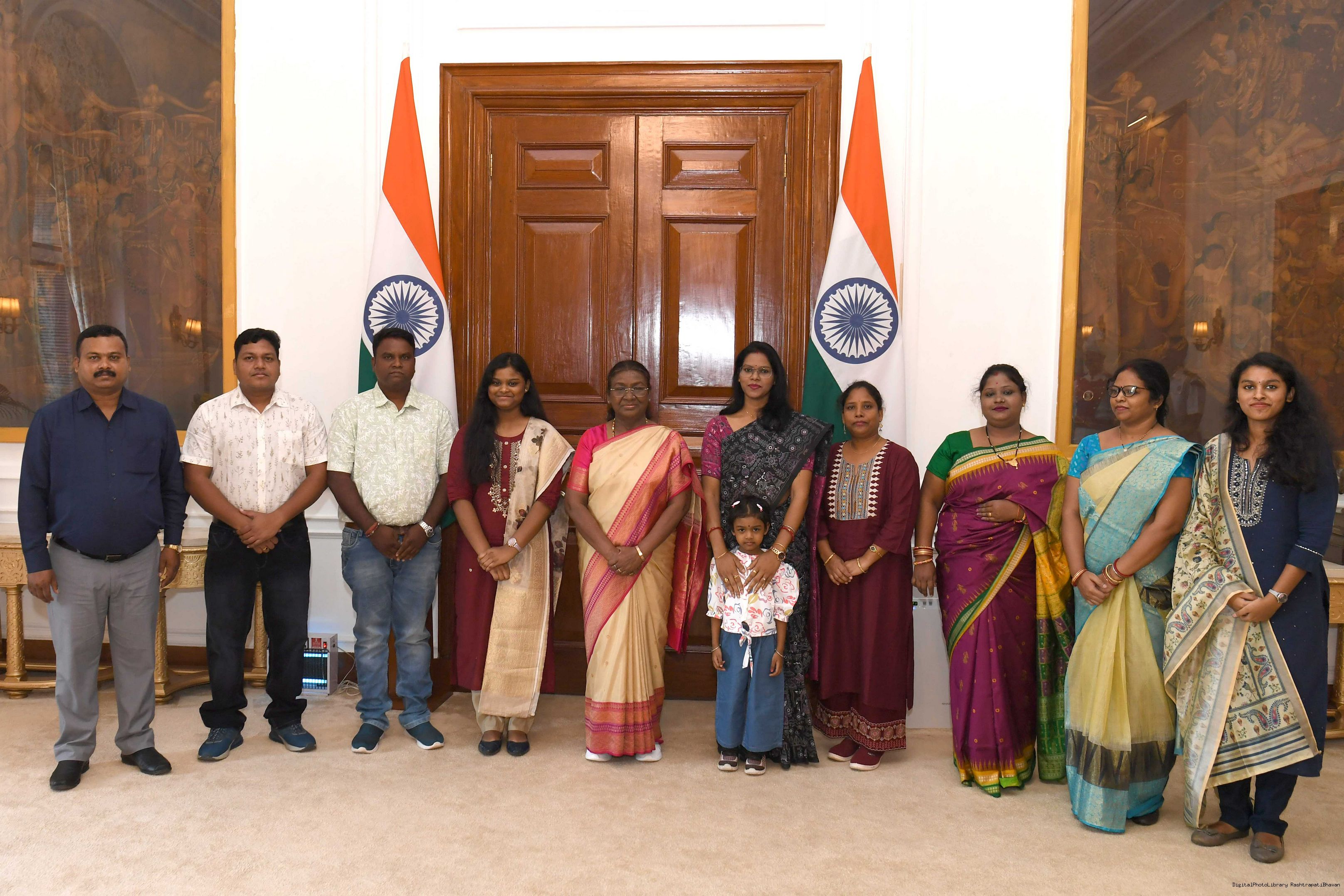 | Caption: | Smt. Ramadevi Soren from Rairangpur along with others meeting with the President of India Smt. Droupadi Murmu at Rashtrapati Bhavan on October 11, 2024. |