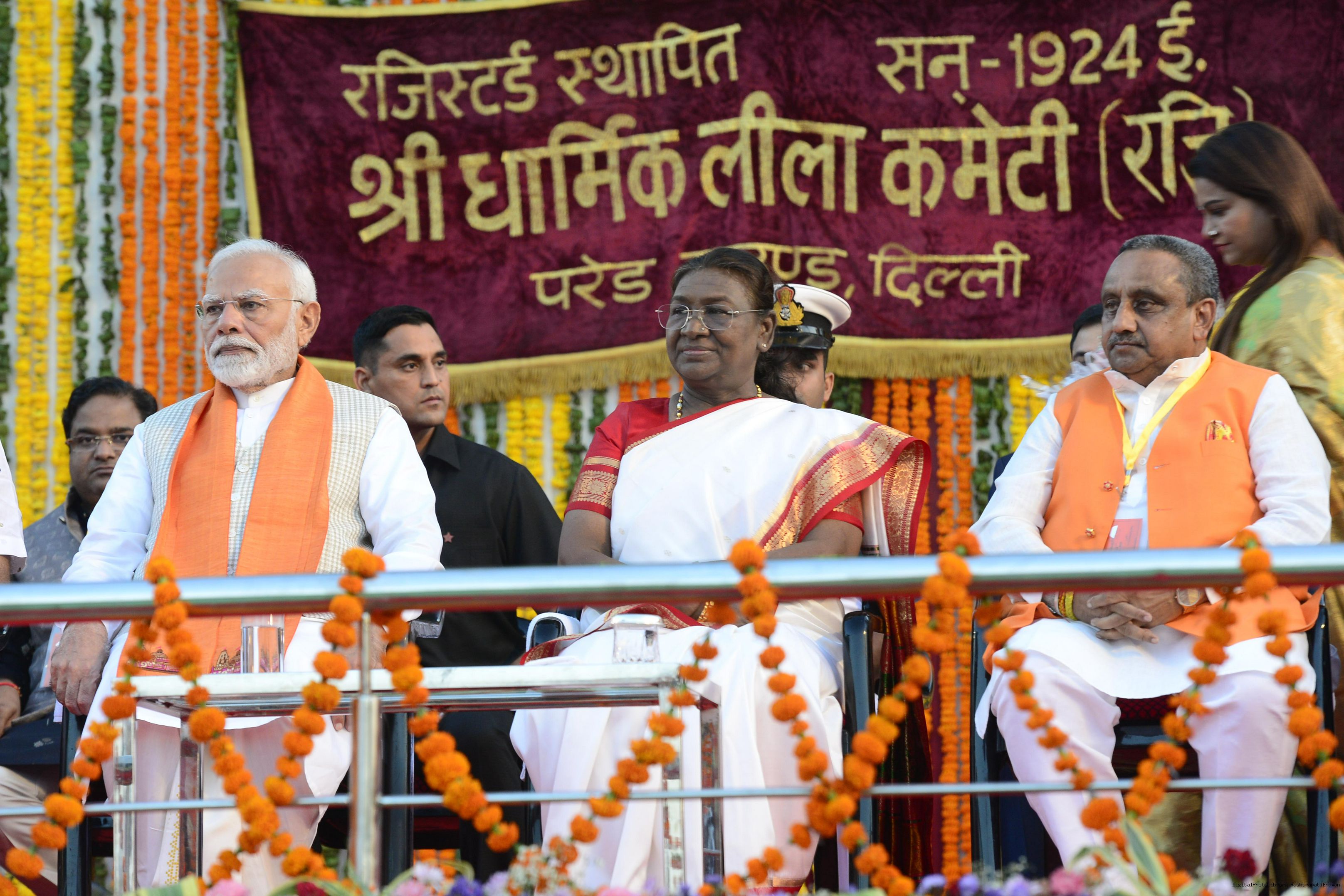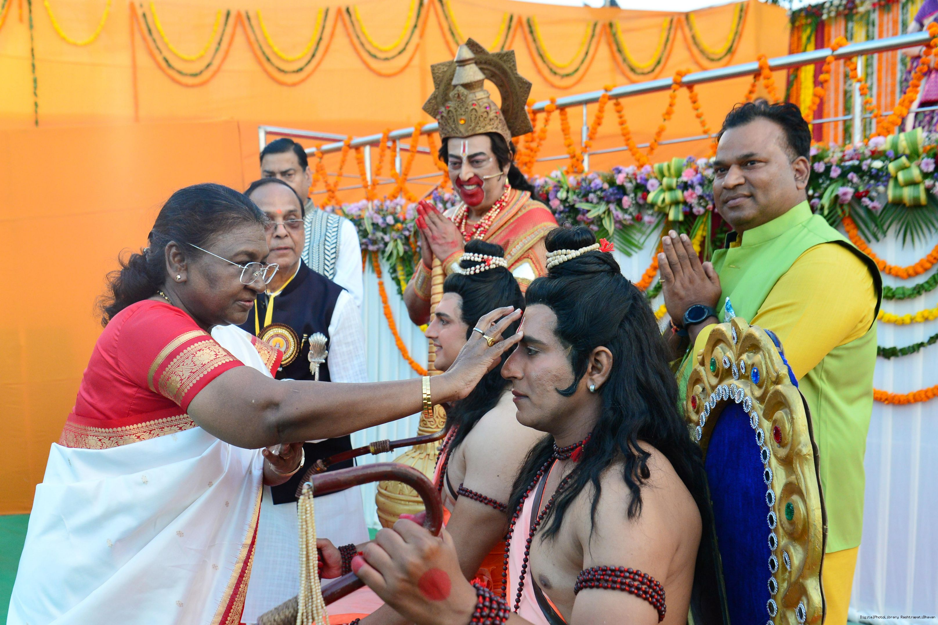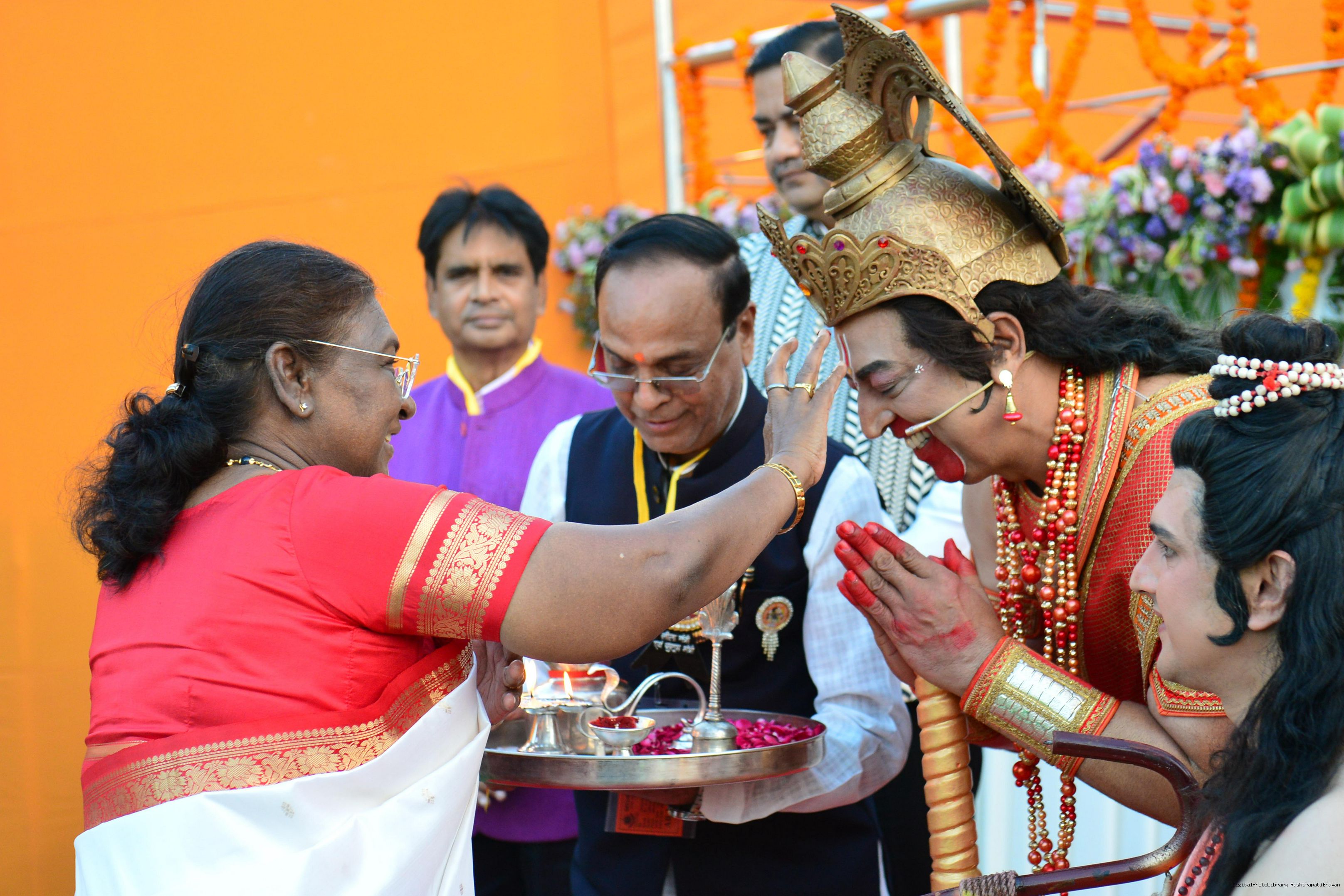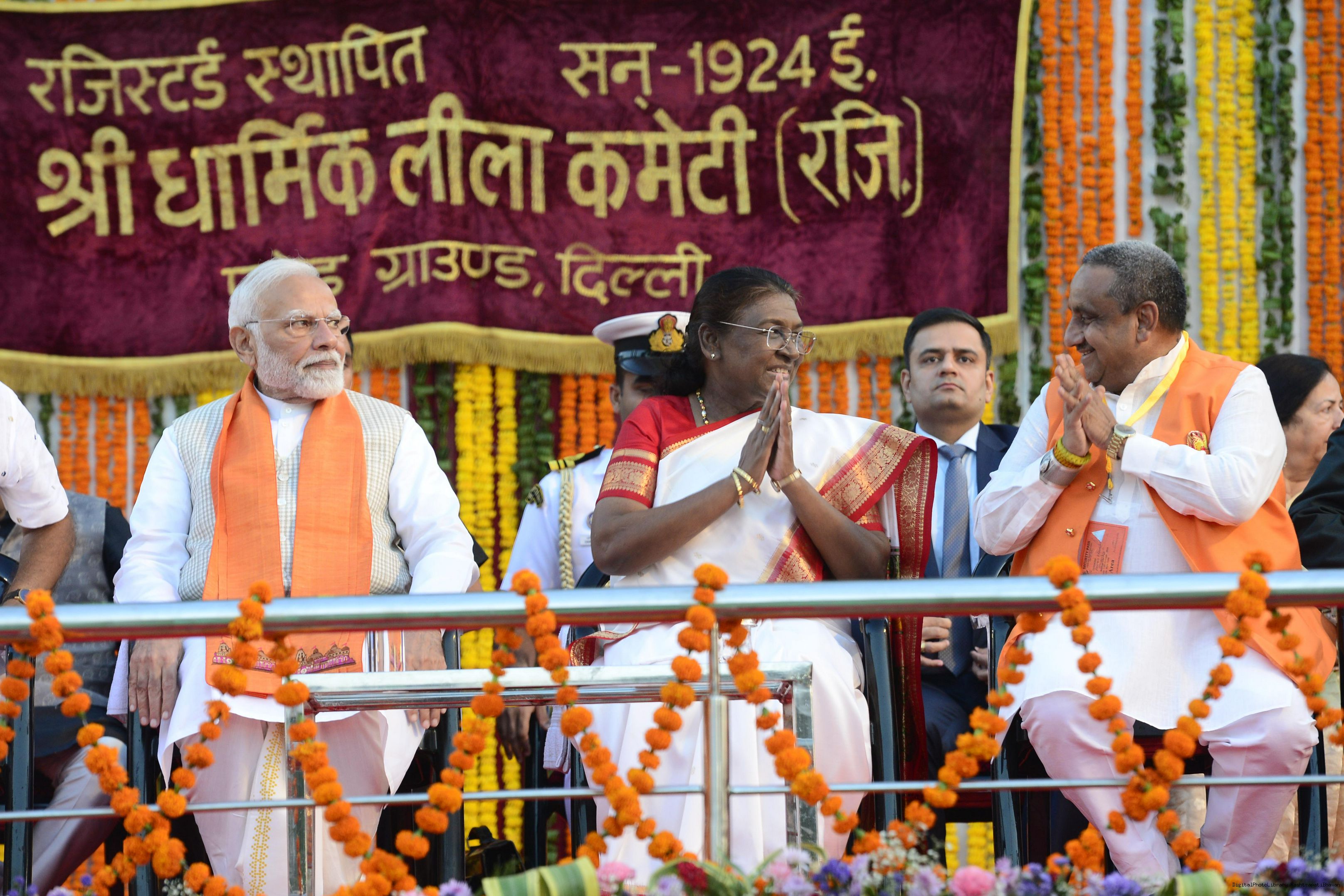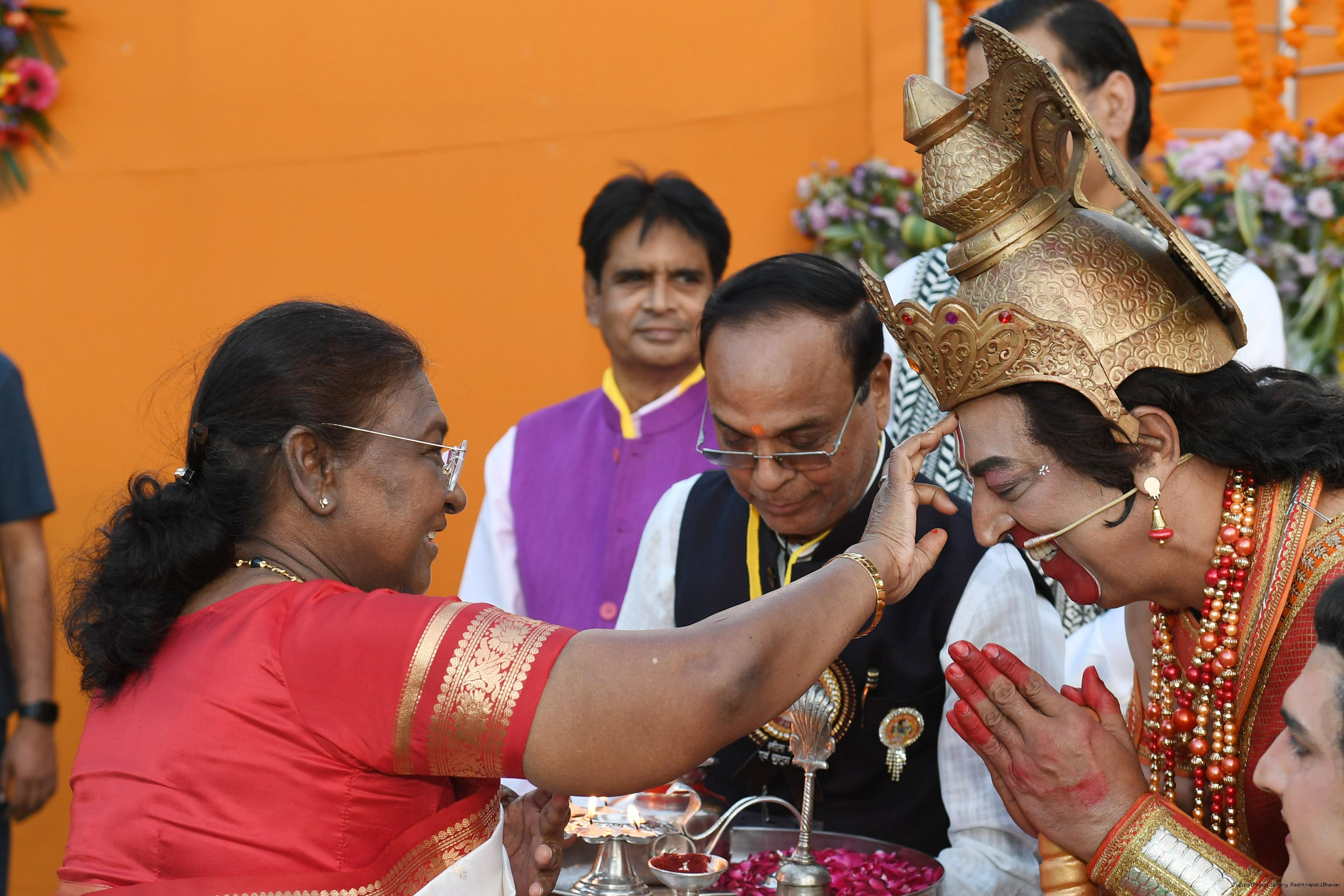 | Caption: | The President of India, Smt Droupadi Murmu attended the Dussehra Festival at Shri Dharmic Leela Committee in New Delhi on October 12, 2024. |