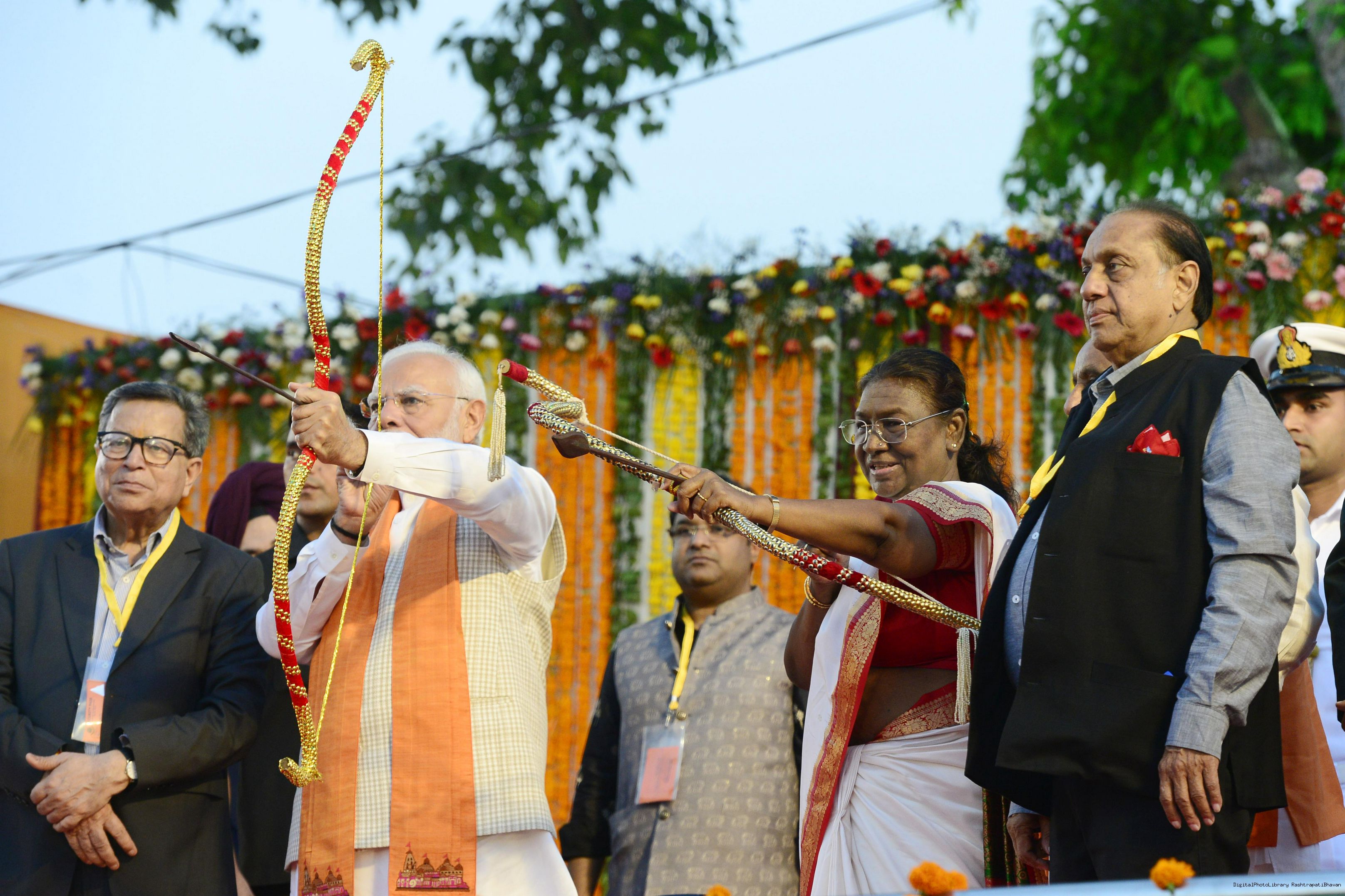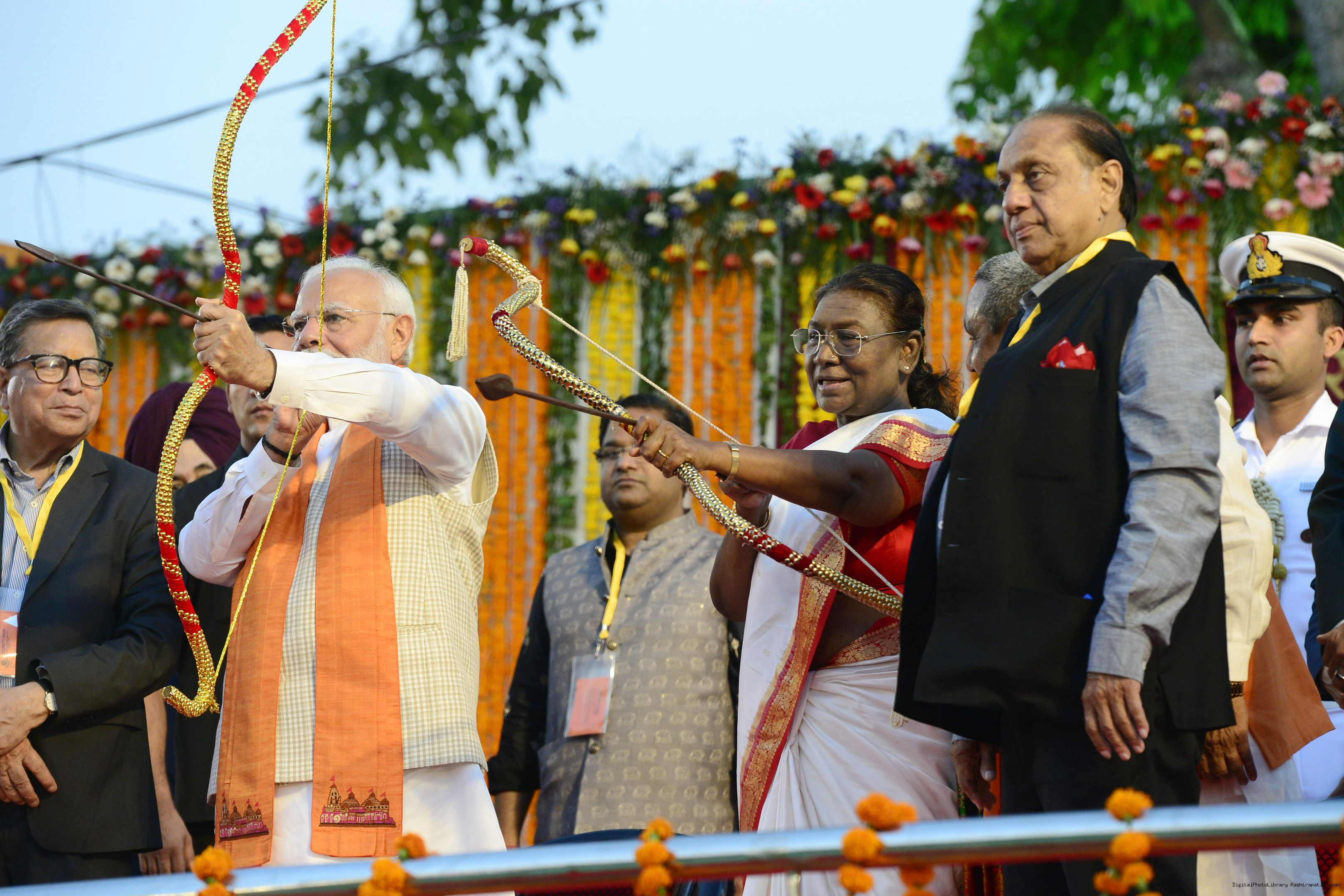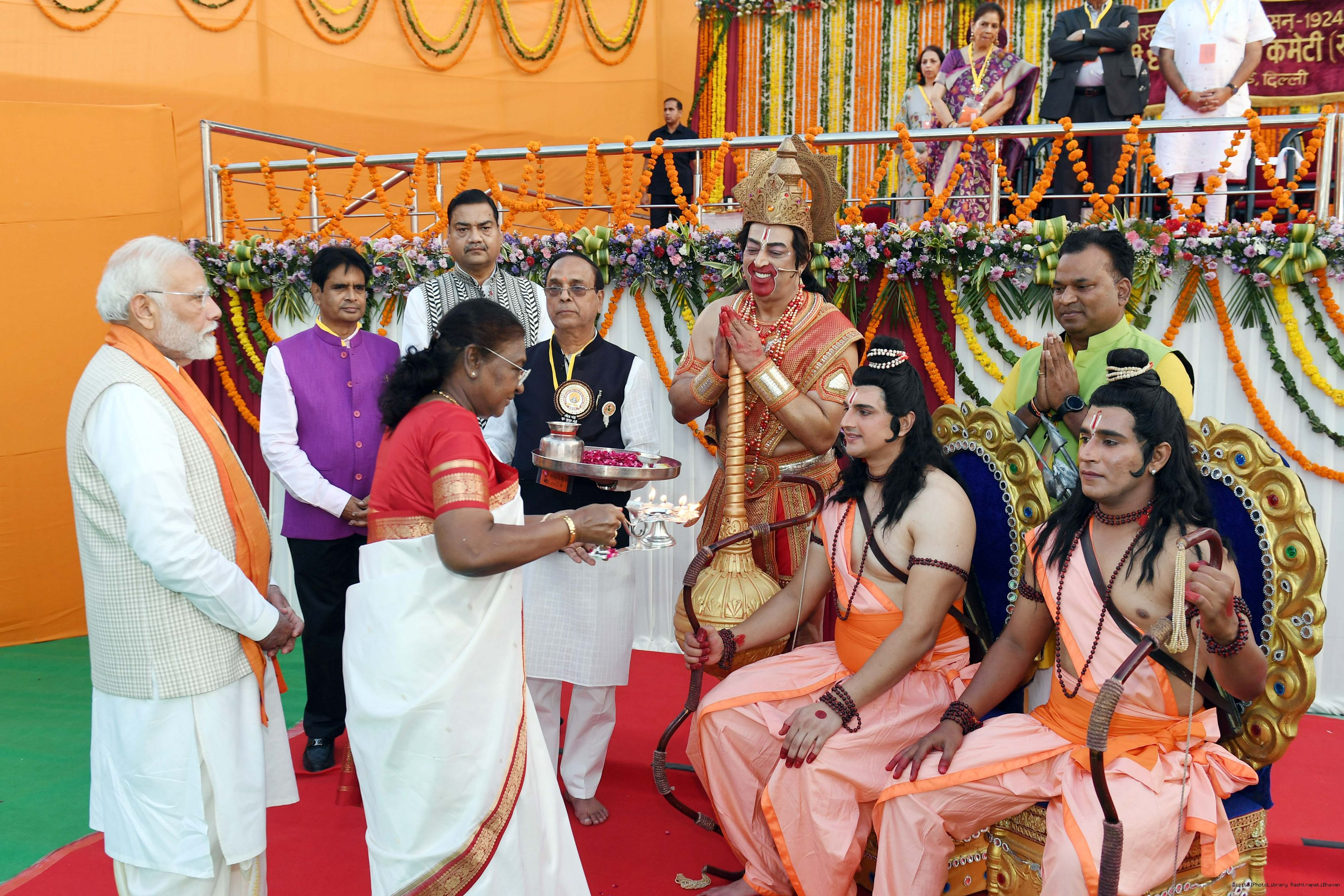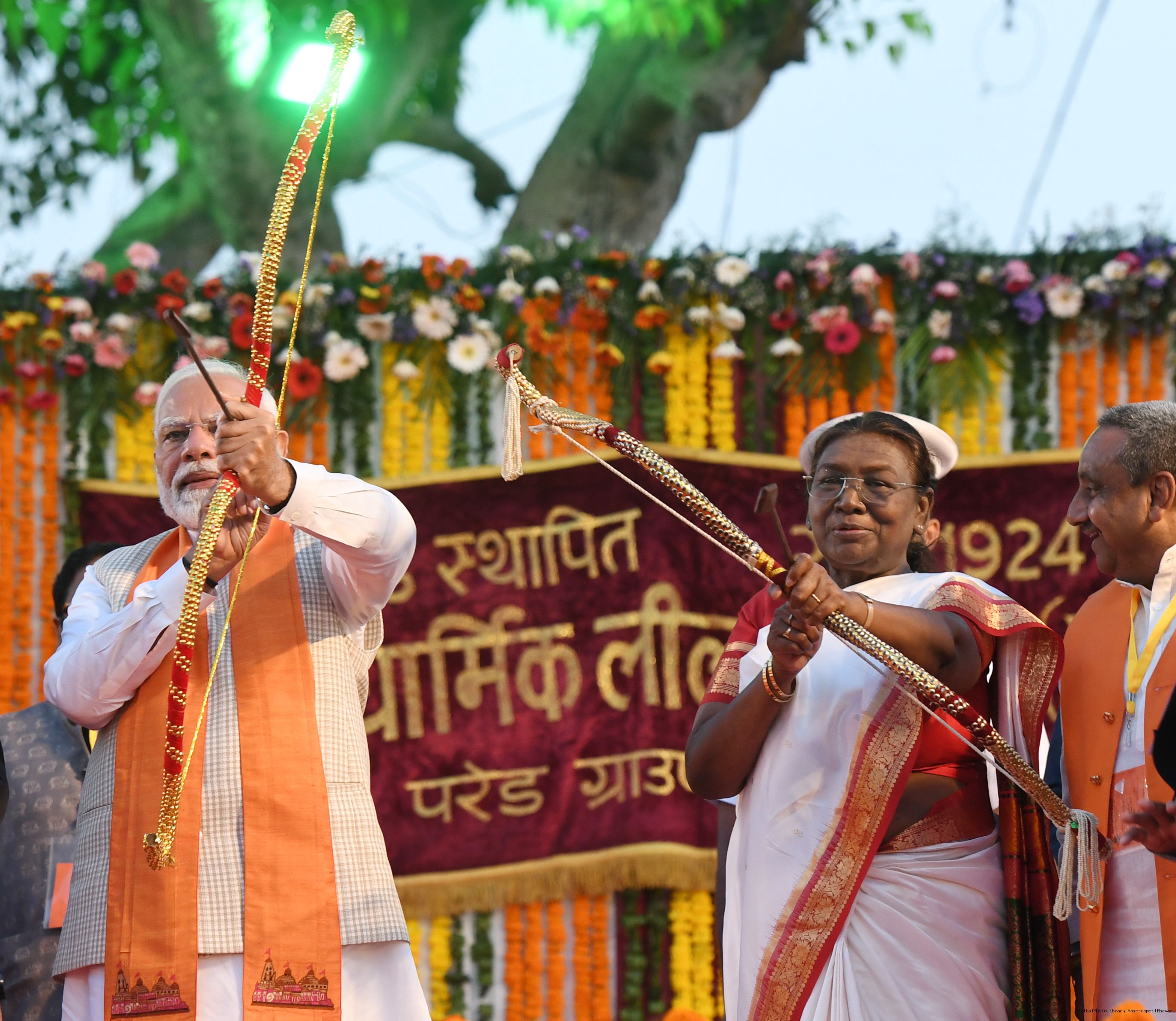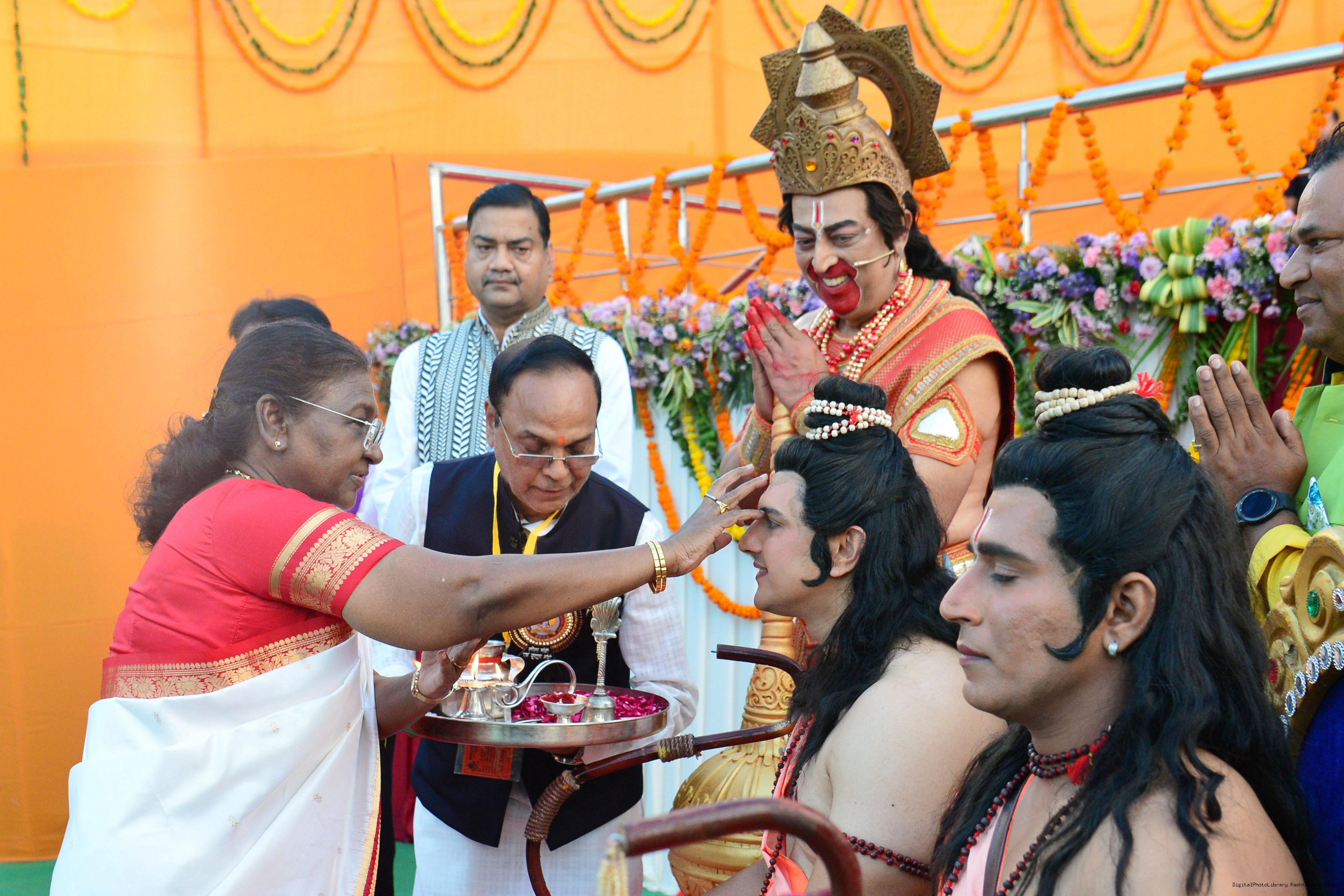 | Caption: | The President of India, Smt Droupadi Murmu attended the Dussehra Festival at Shri Dharmic Leela Committee in New Delhi on October 12, 2024. |