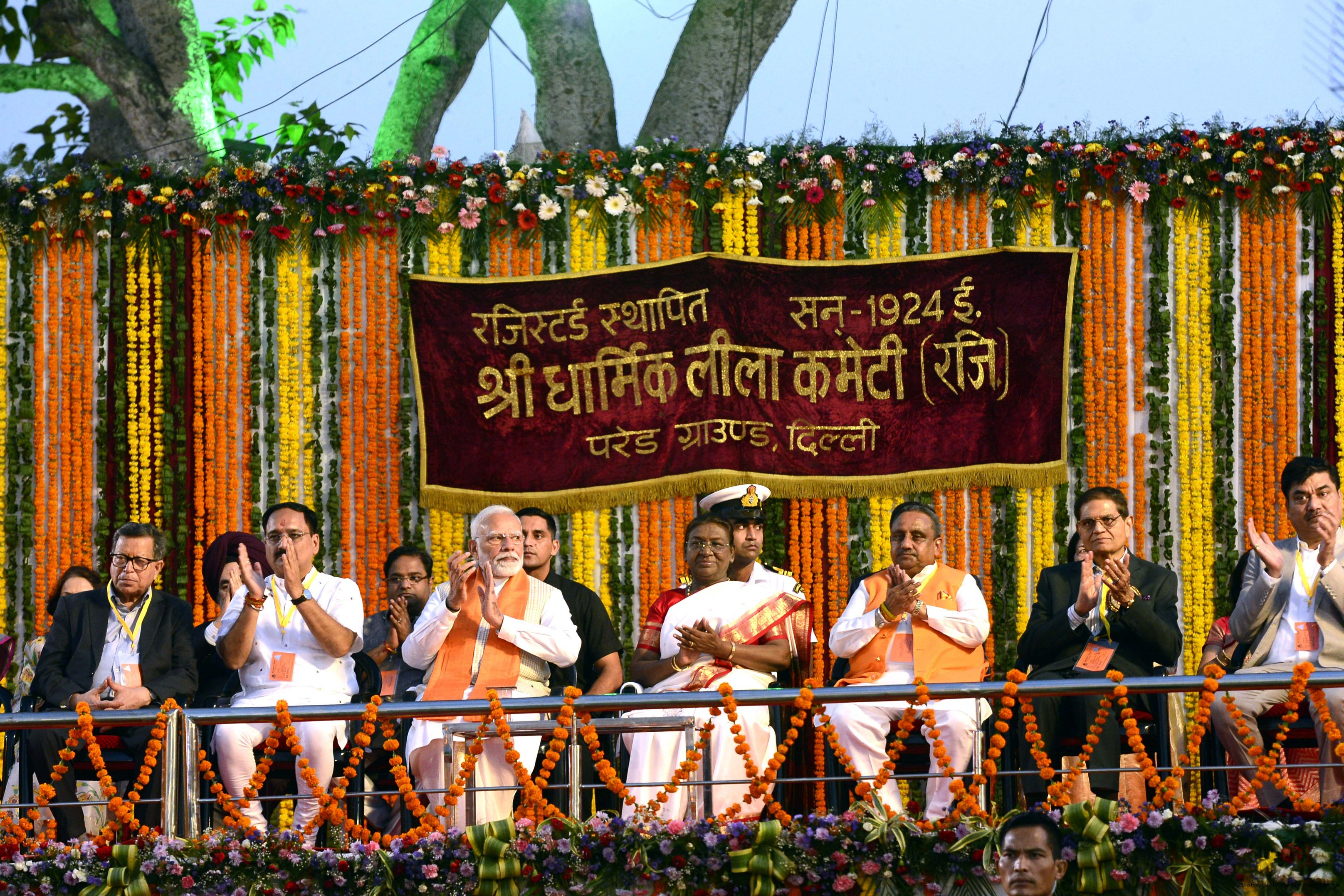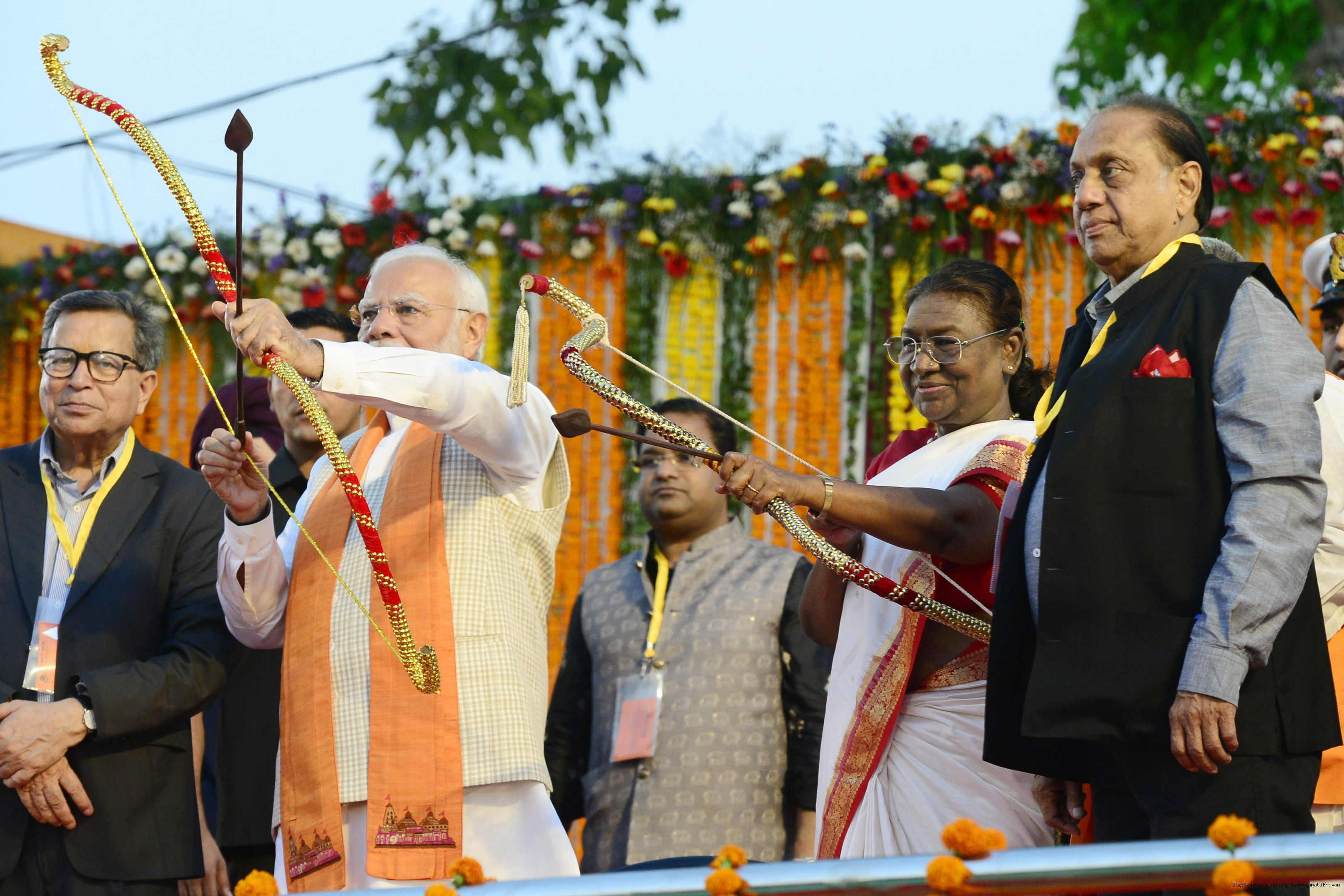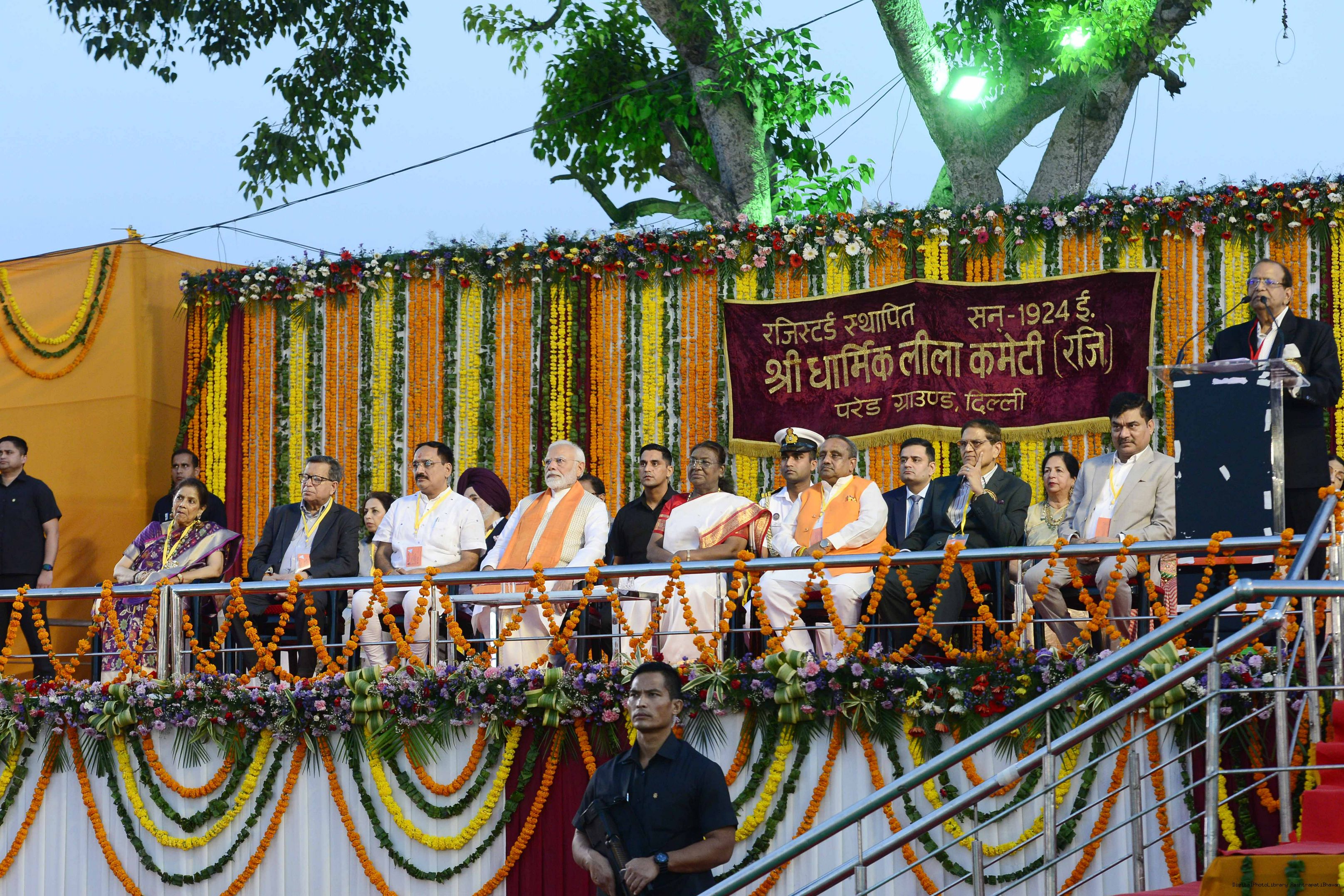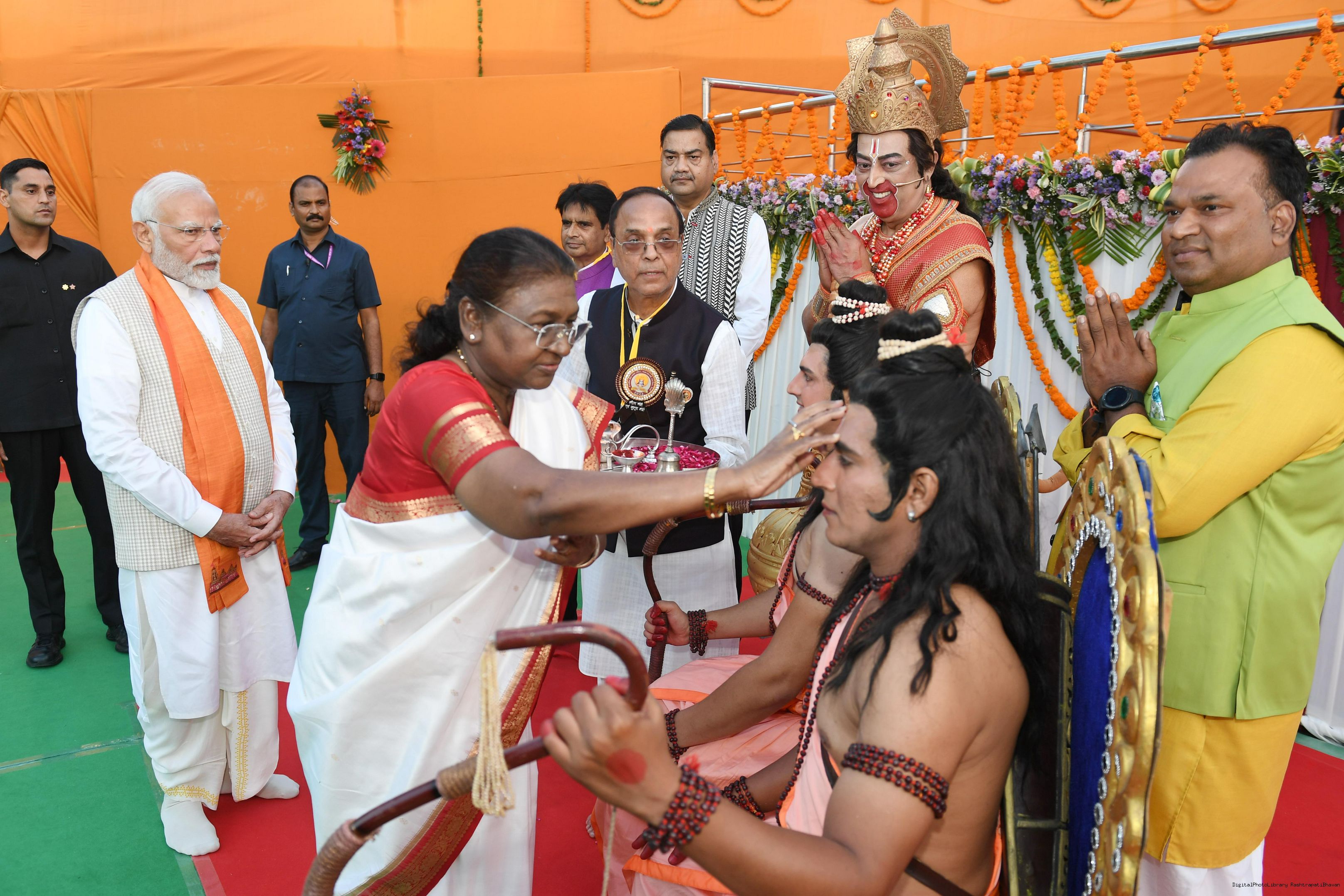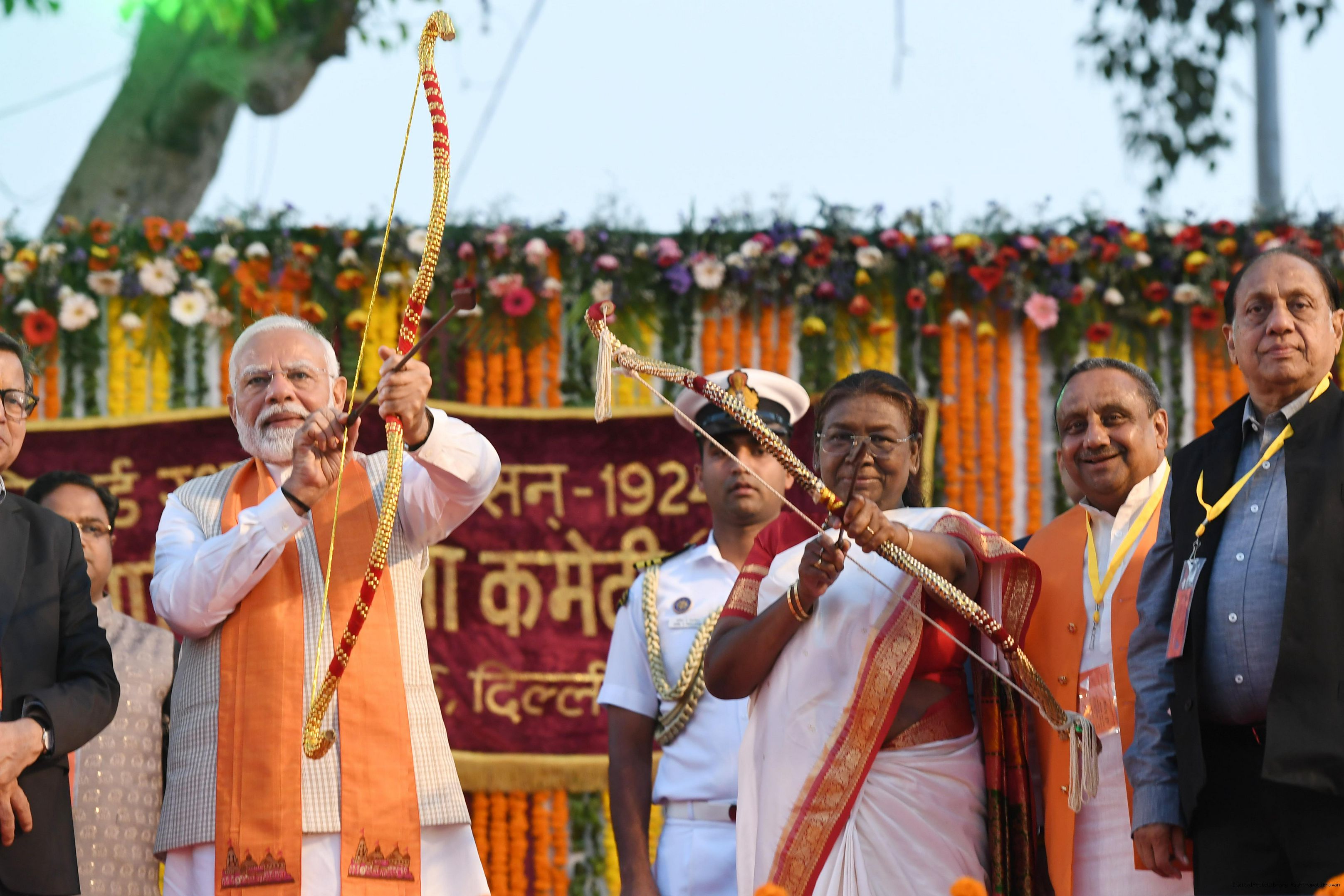 | Caption: | The President of India, Smt Droupadi Murmu attended the Dussehra Festival at Shri Dharmic Leela Committee in New Delhi on October 12, 2024. |