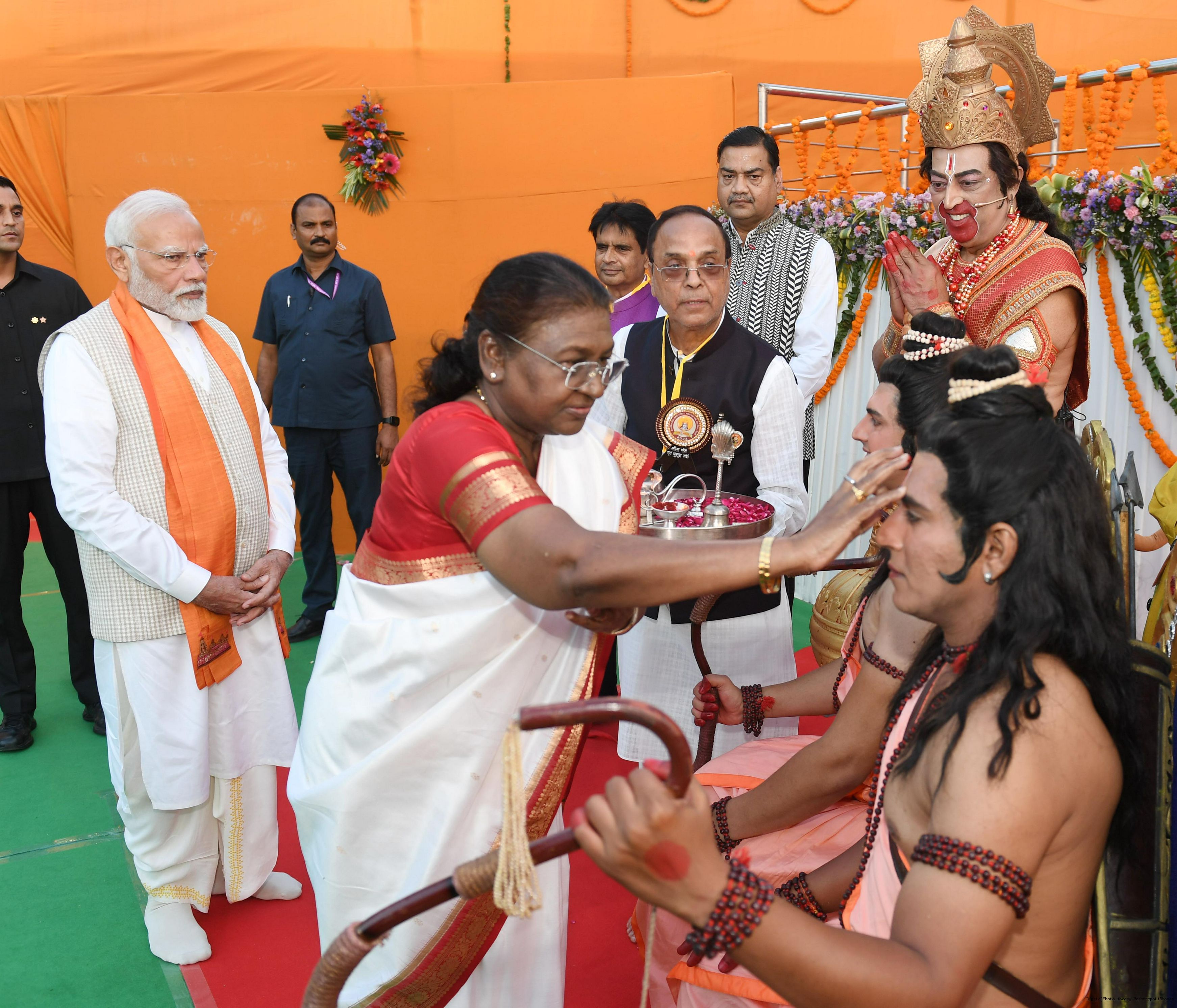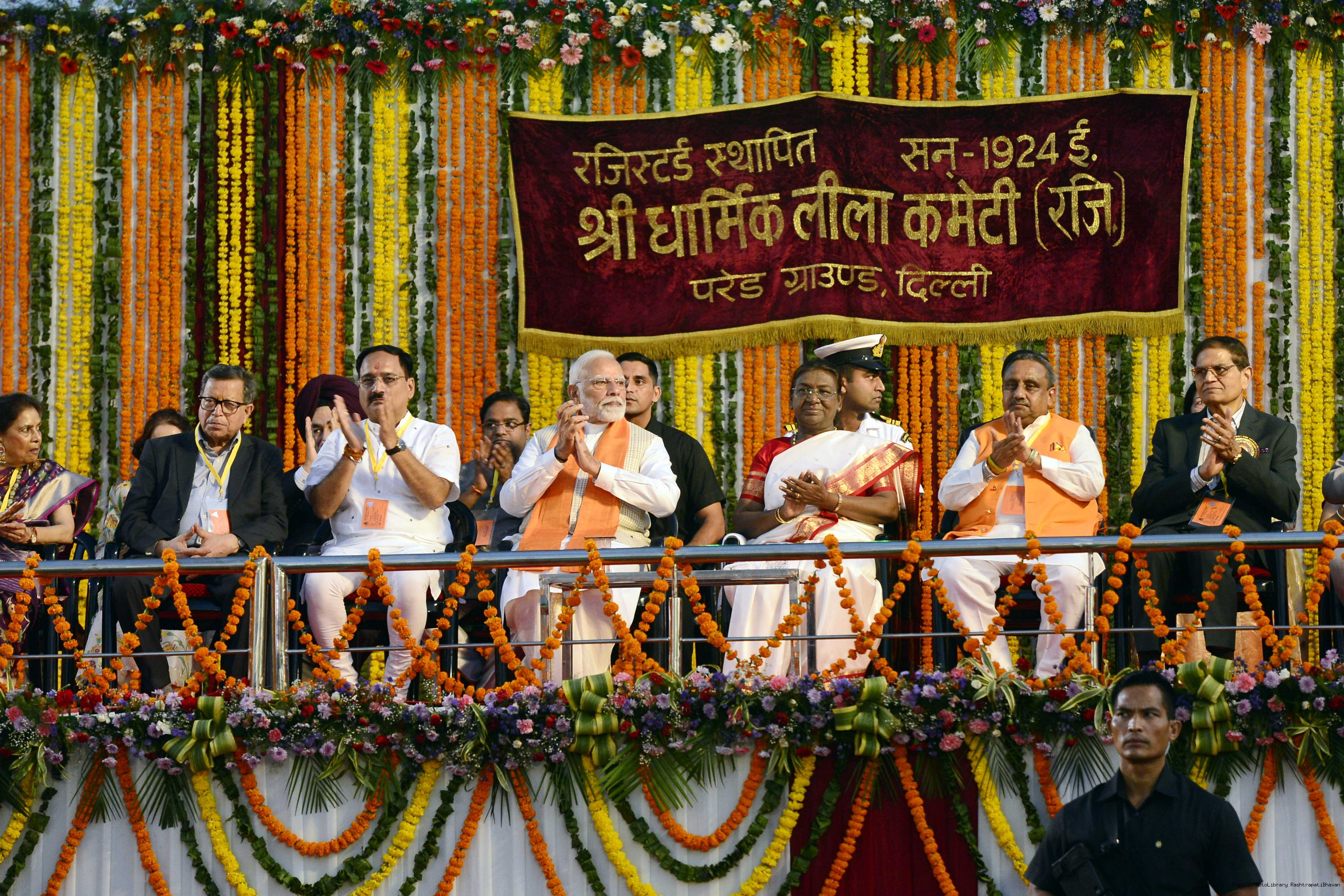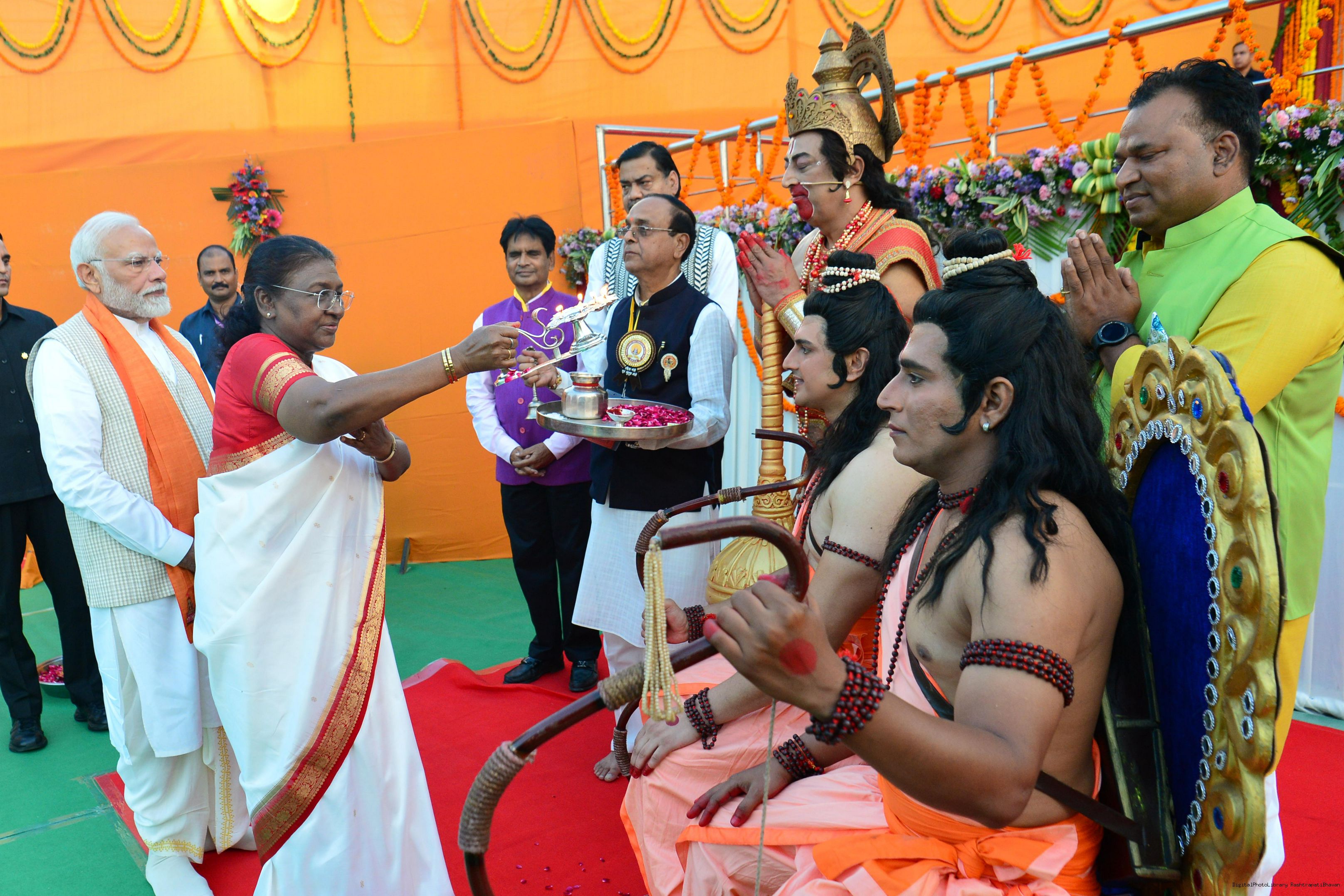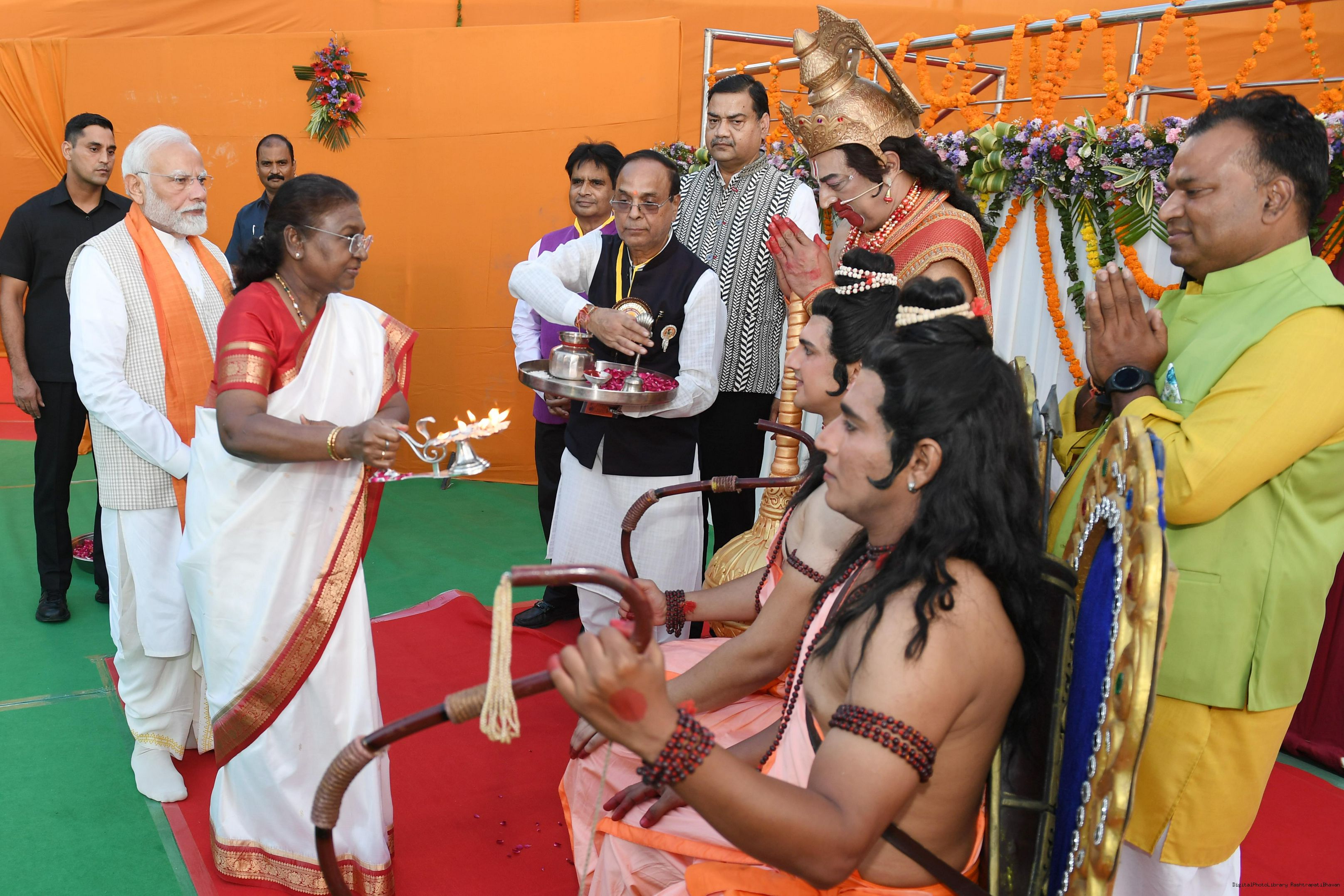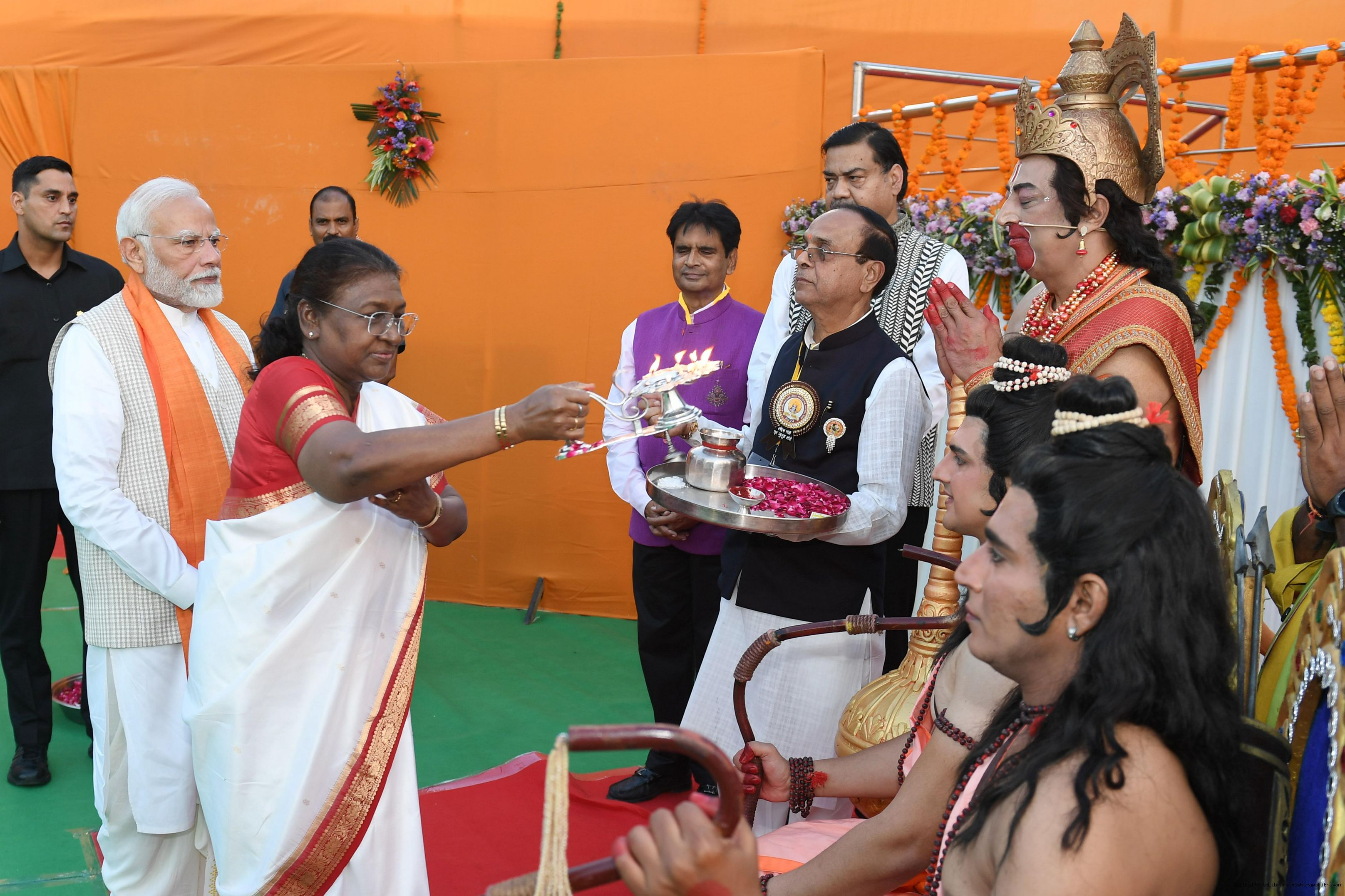 | Caption: | The President of India, Smt Droupadi Murmu attended the Dussehra Festival at Shri Dharmic Leela Committee in New Delhi on October 12, 2024. |