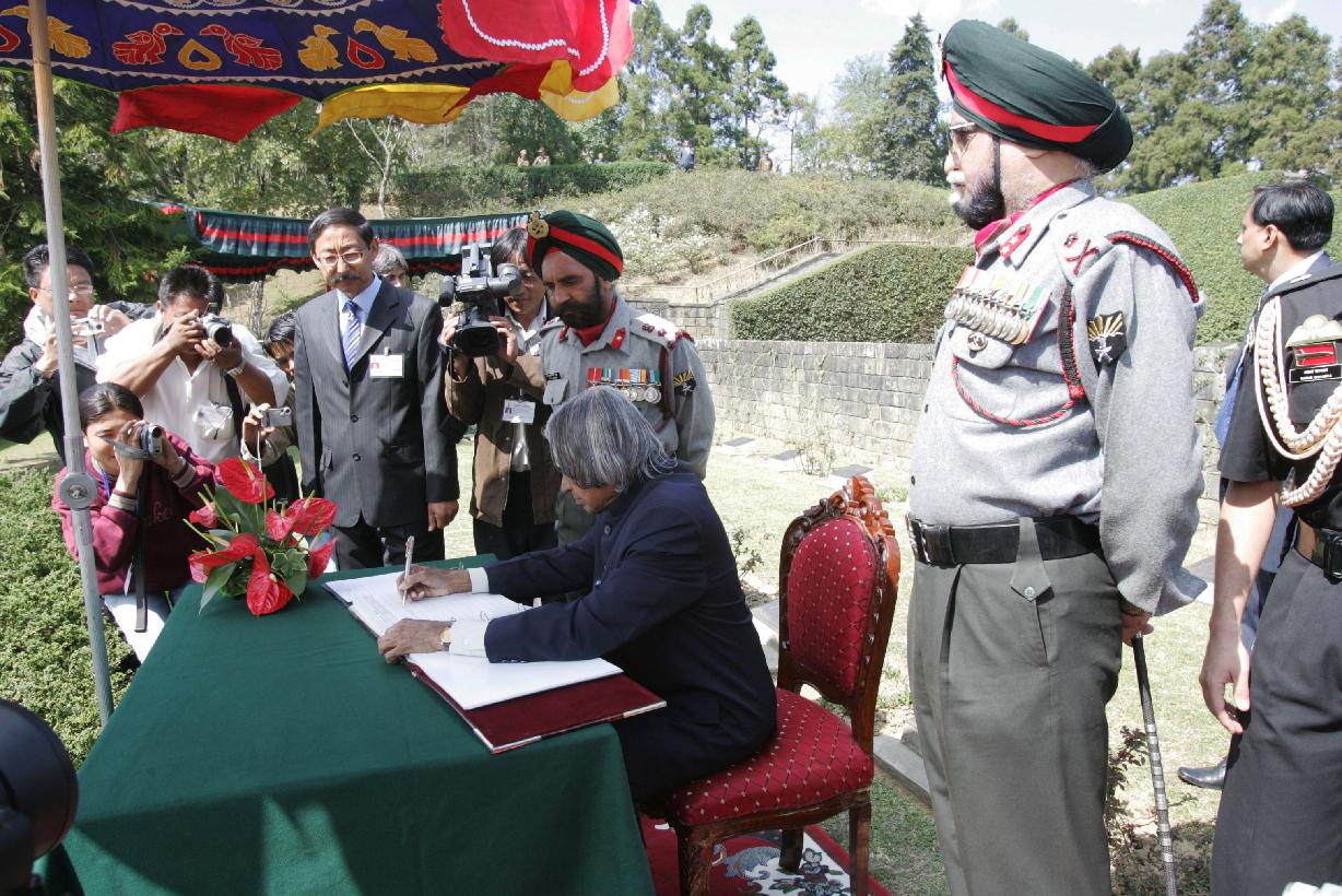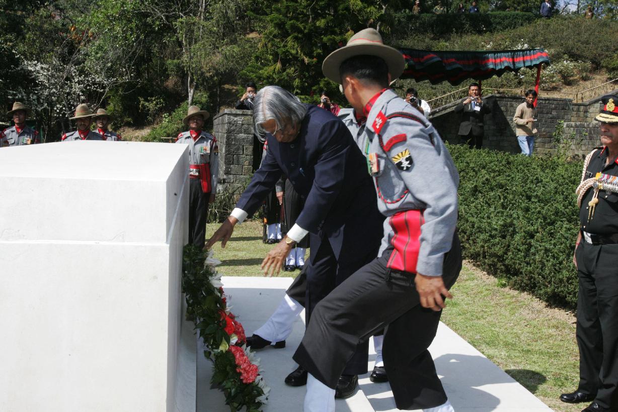 | Caption: | The President of India, Dr A P J Abdul Kalam paying tributes at War Cemetery at Kohima in Nagaland on March 15, 2007 |
