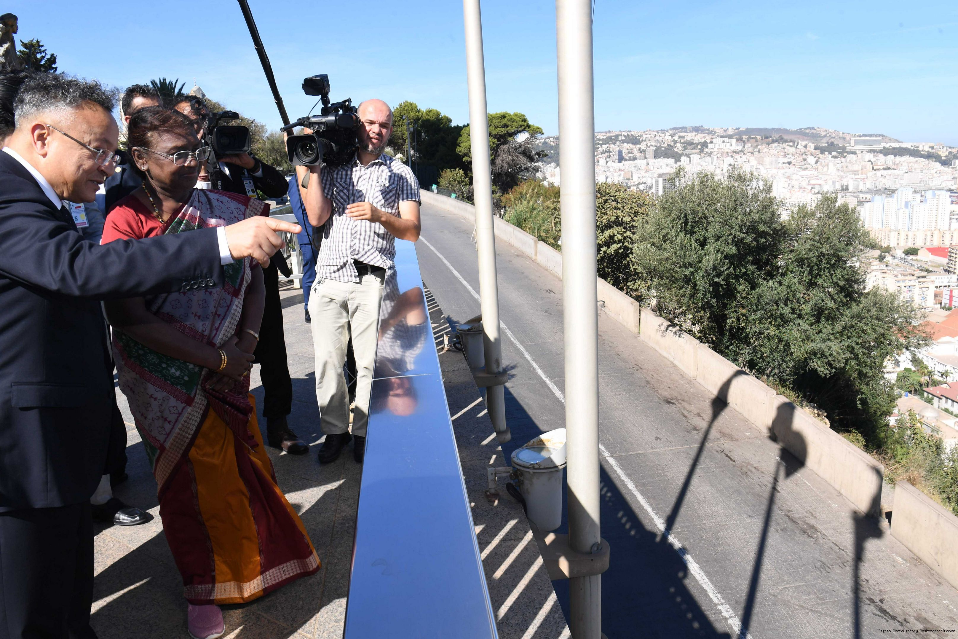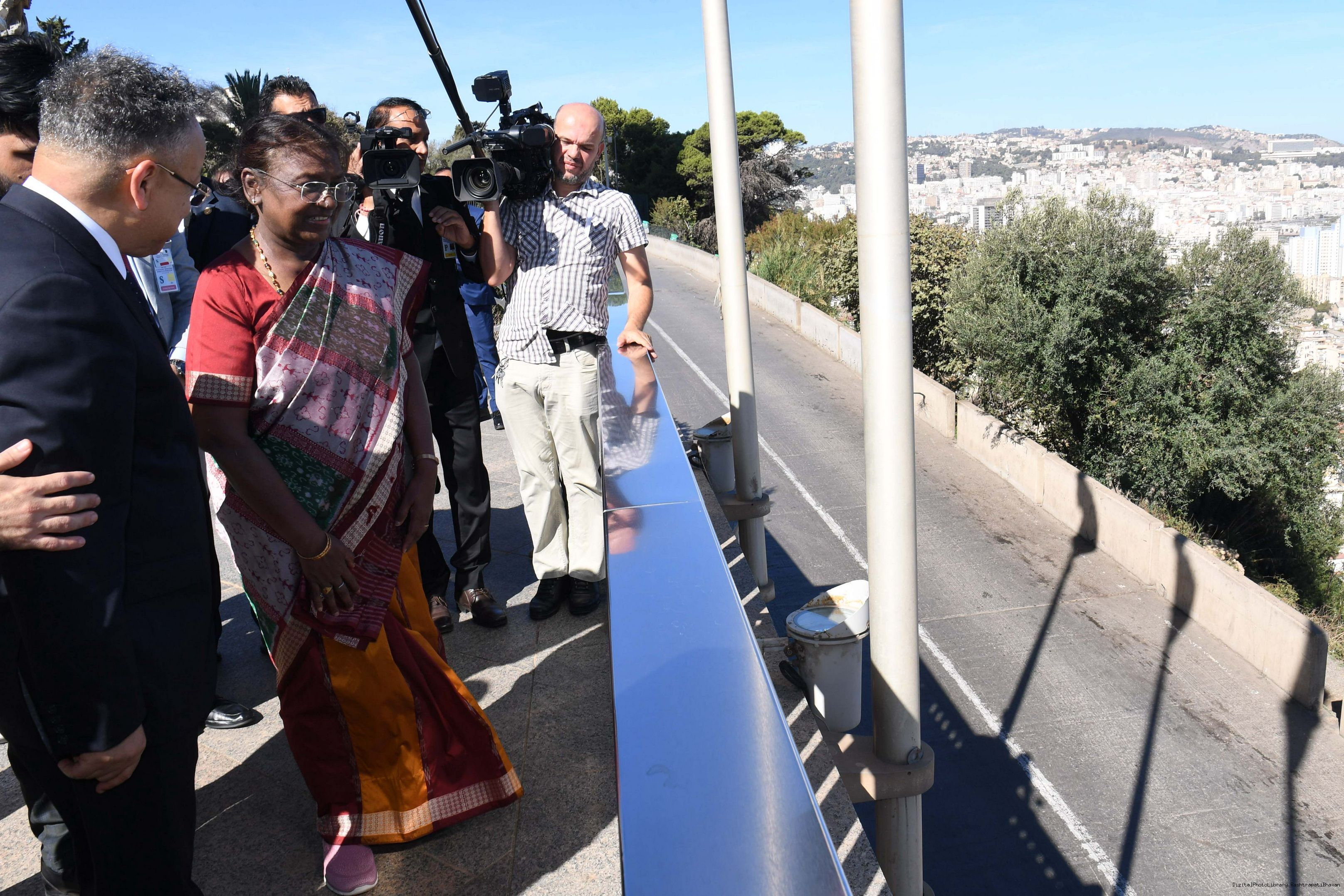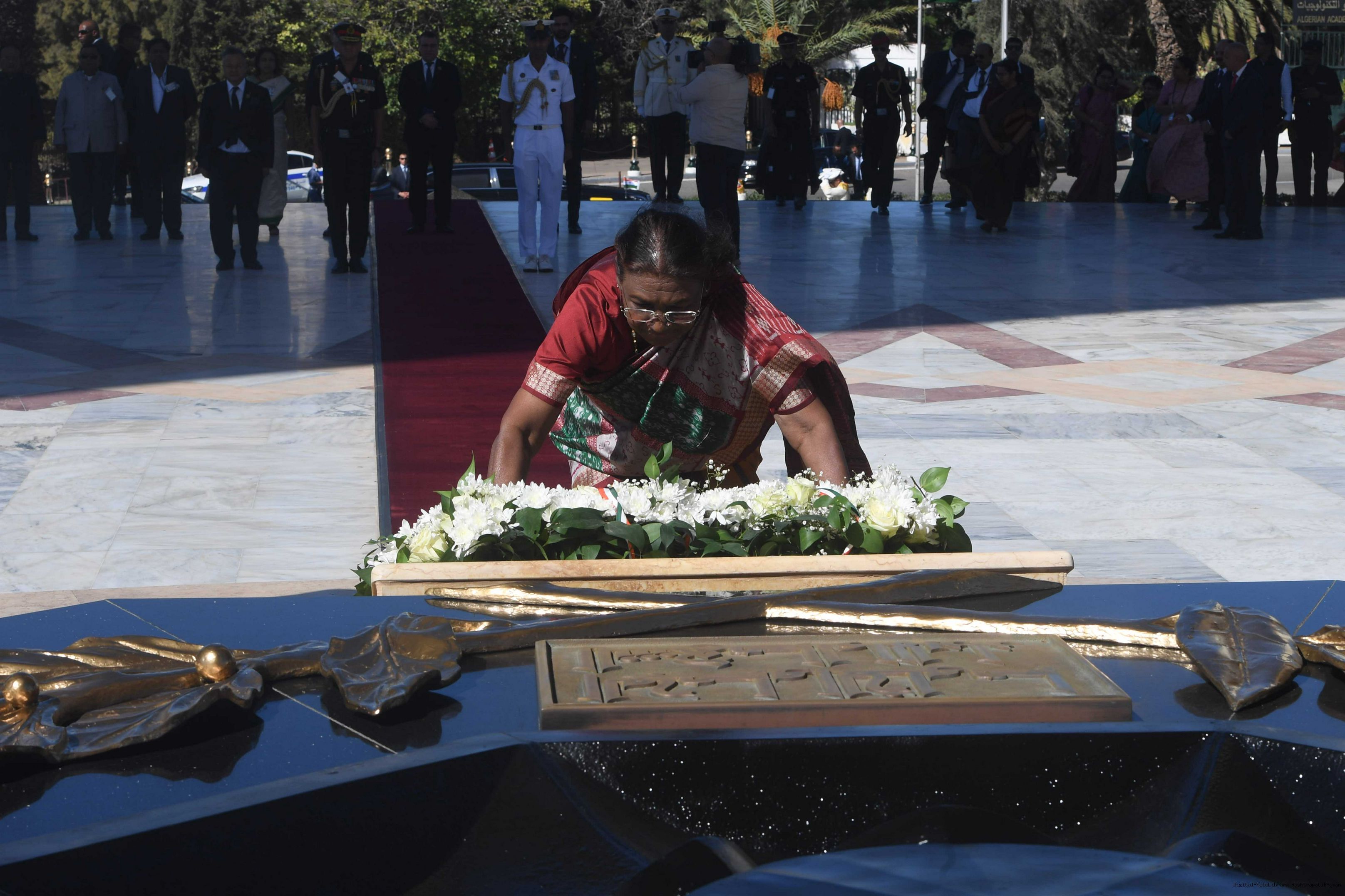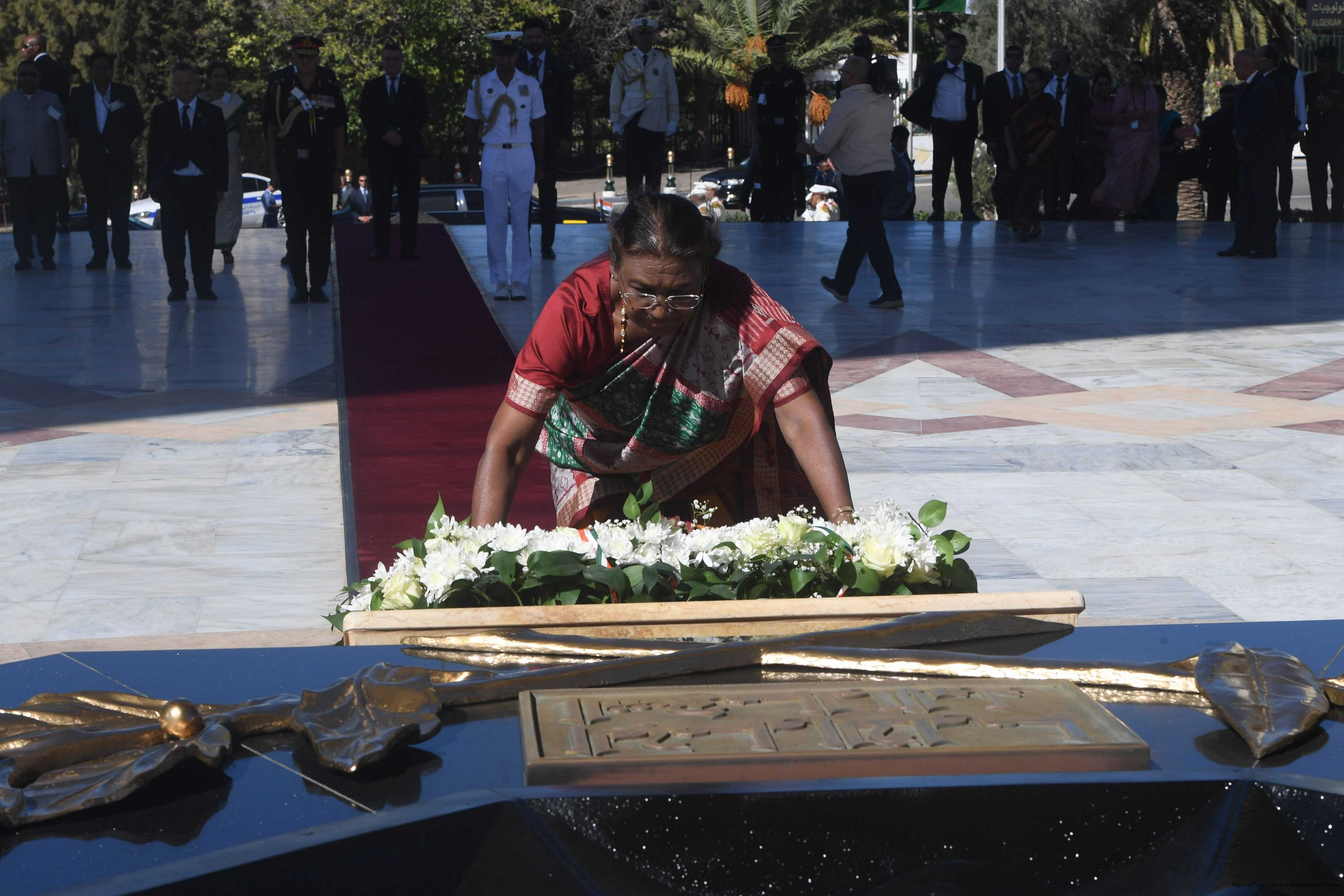 | Caption: | The President of India Smt. Droupadi Murmu laid a wreath at the Maqam Echahid Memorial in Algiers and paid tribute to the soldiers on October 14, 2024. |