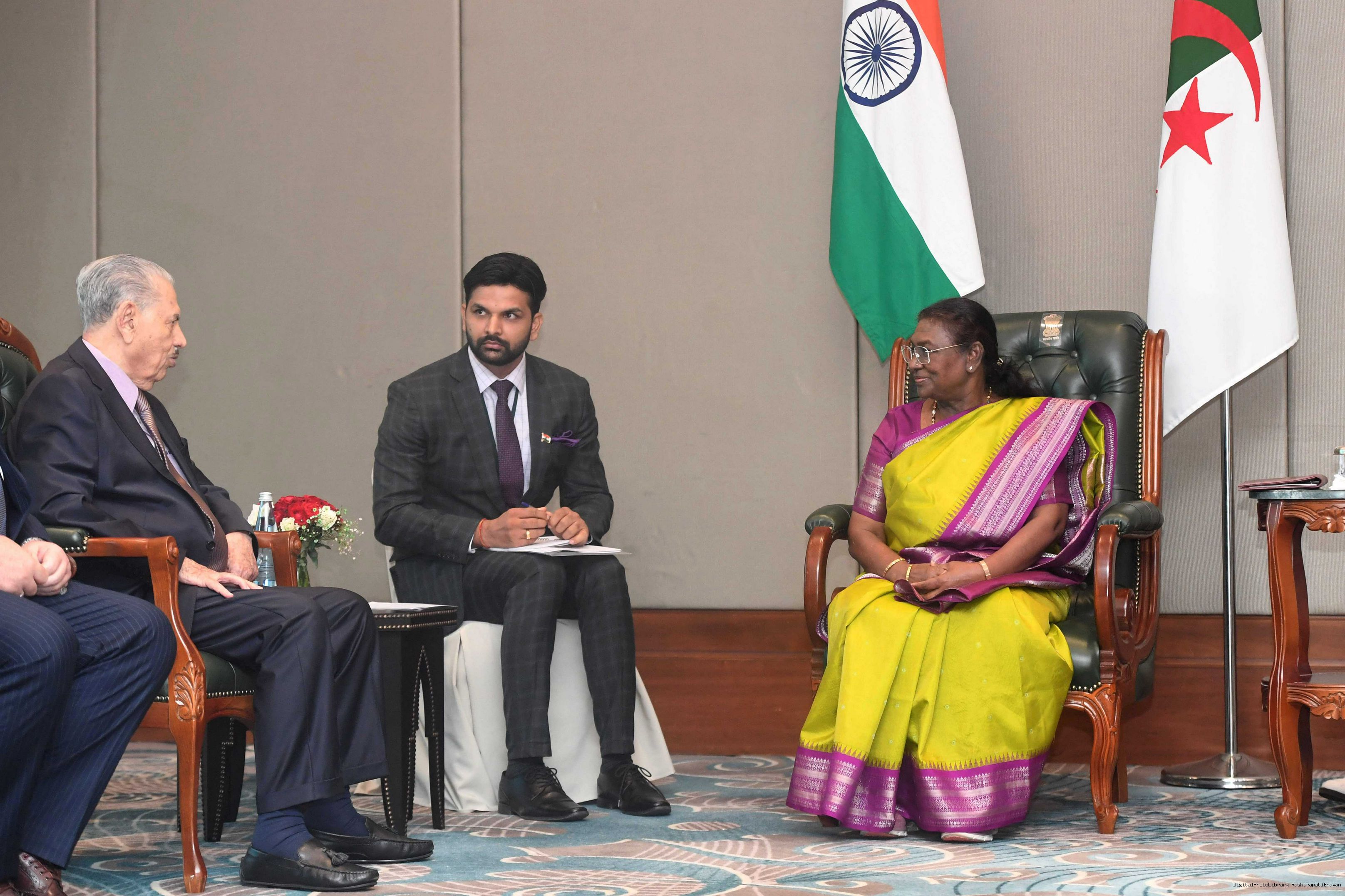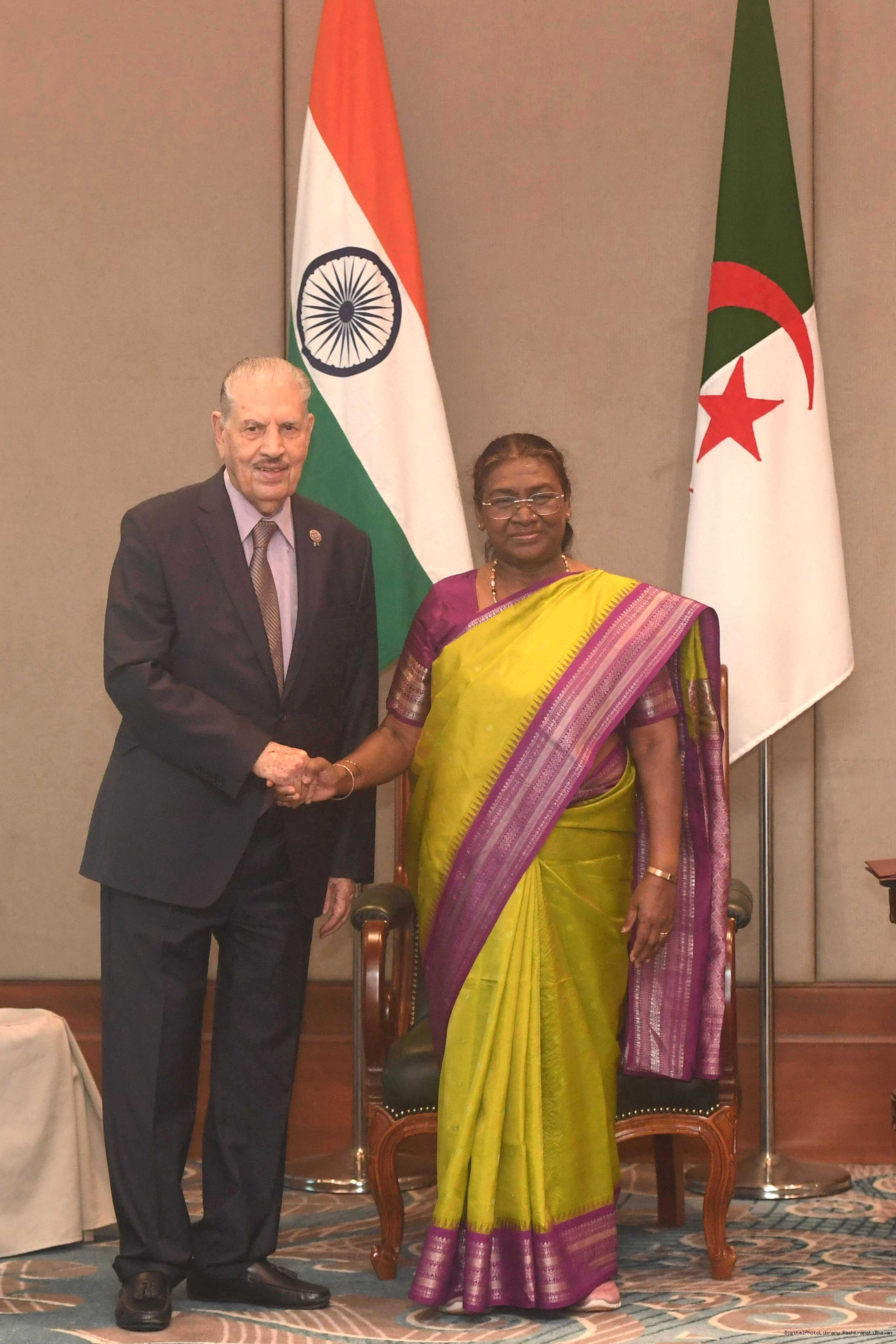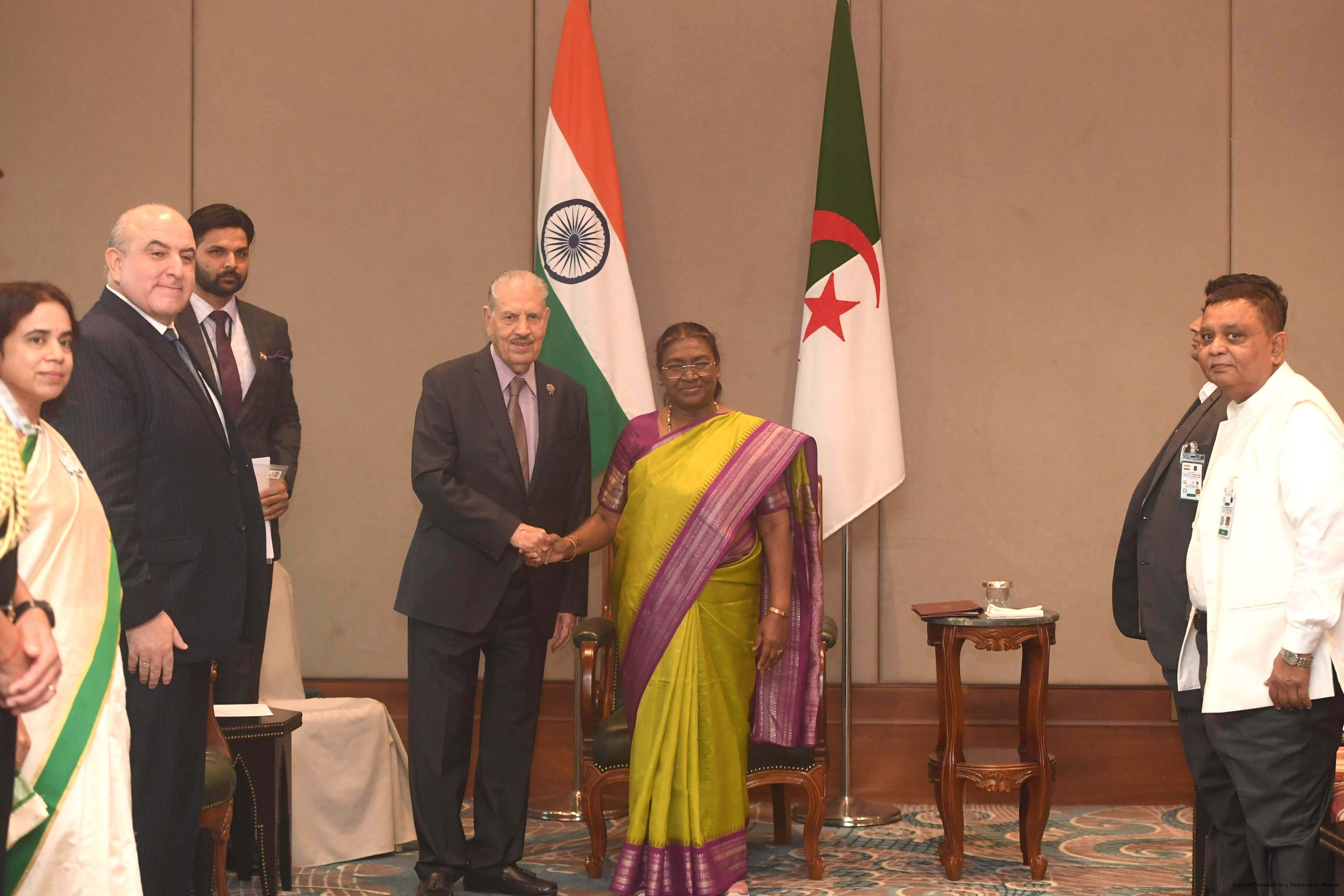| Caption: | The Speaker of the Council of the Nation of the People's Democratic Republic of Algeria, H.E. Mr. Salah Goudjil called on the President of India Smt. Droupadi Murmu in Algeria on October 14, 2024. |
