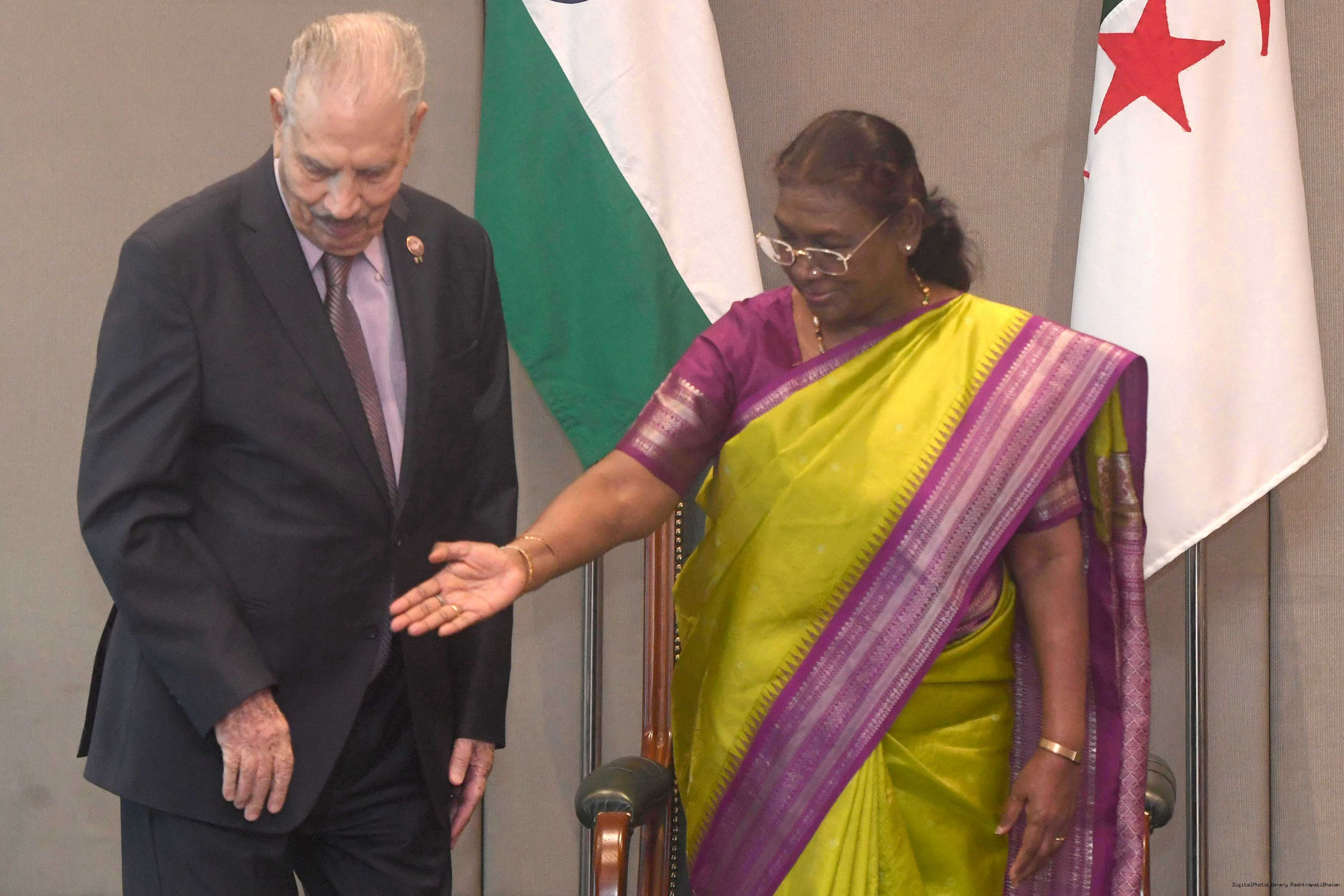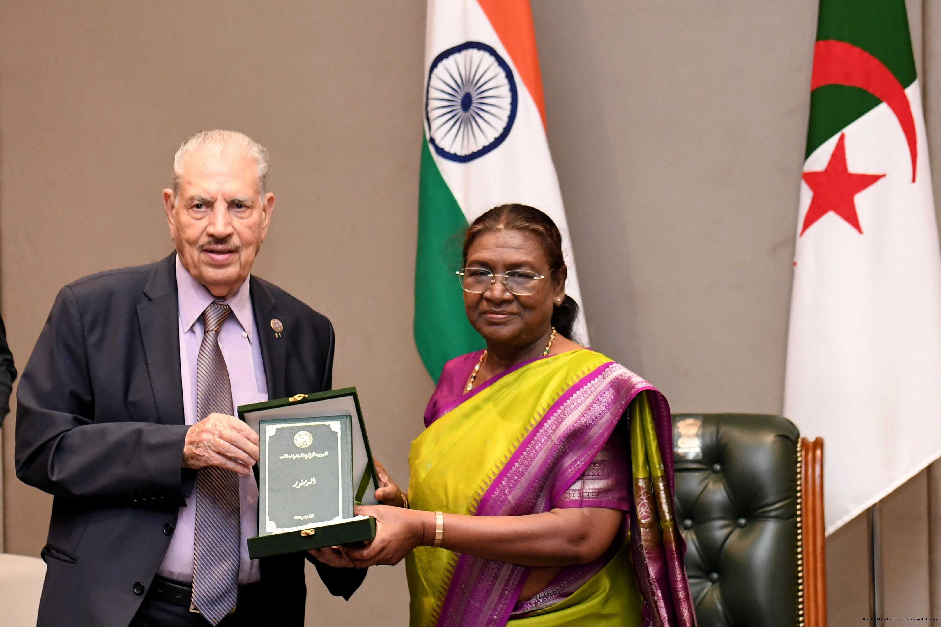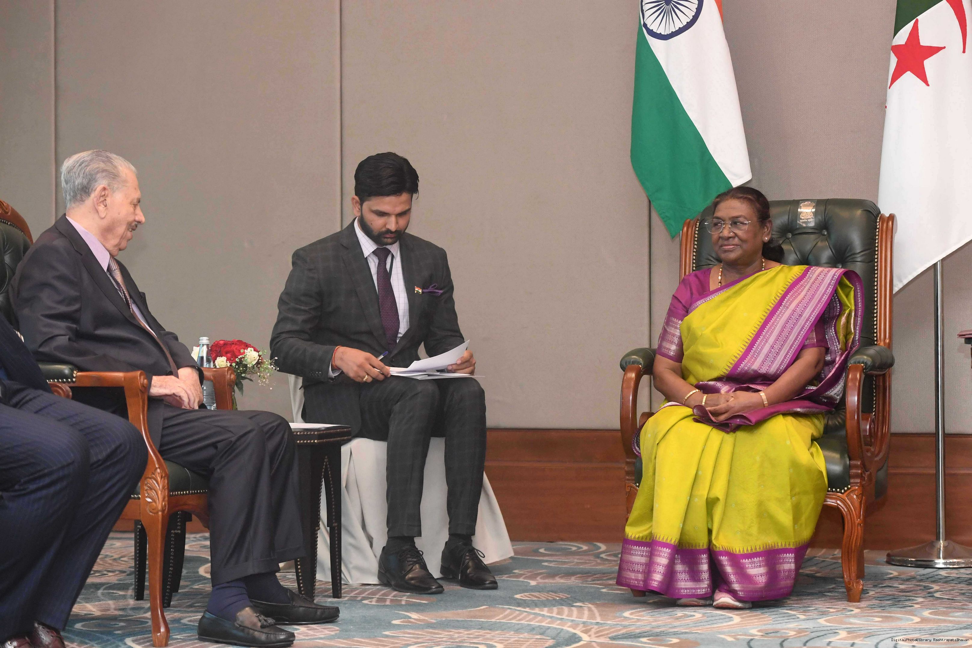 | Caption: | The Speaker of the Council of the Nation of the People's Democratic Republic of Algeria, H.E. Mr. Salah Goudjil called on the President of India Smt. Droupadi Murmu in Algeria on October 14, 2024. |