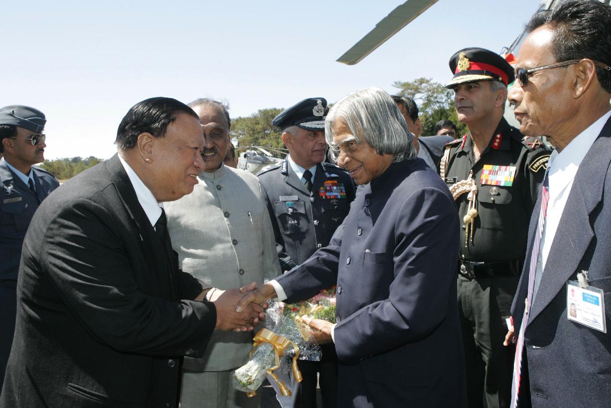| Caption: | The President of India, Dr A P J Abdul Kalam being welcomed by the Governor of Meghalaya, Shri M M Jacob at Shillong Airport in Meghalaya on March 16, 2007 |