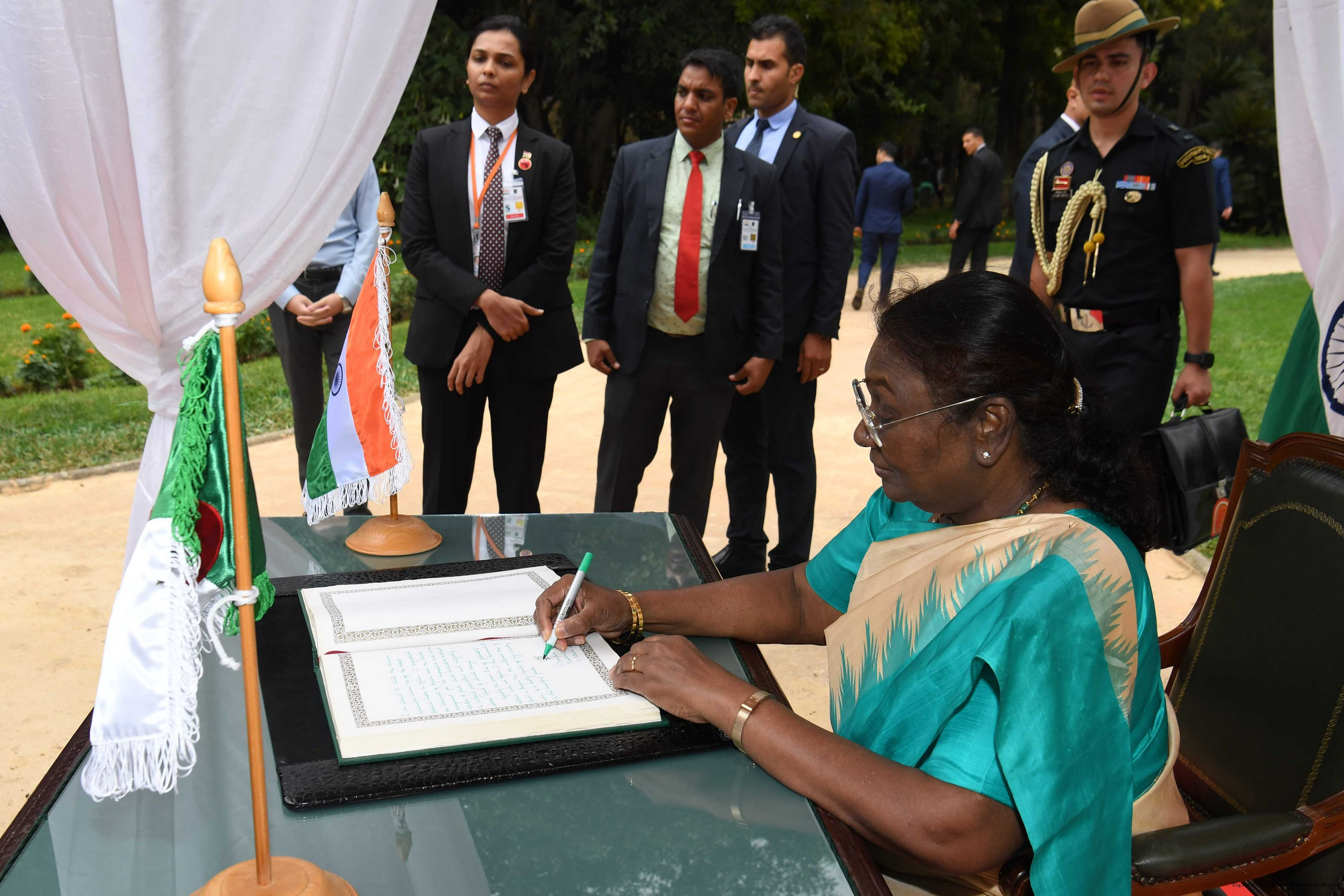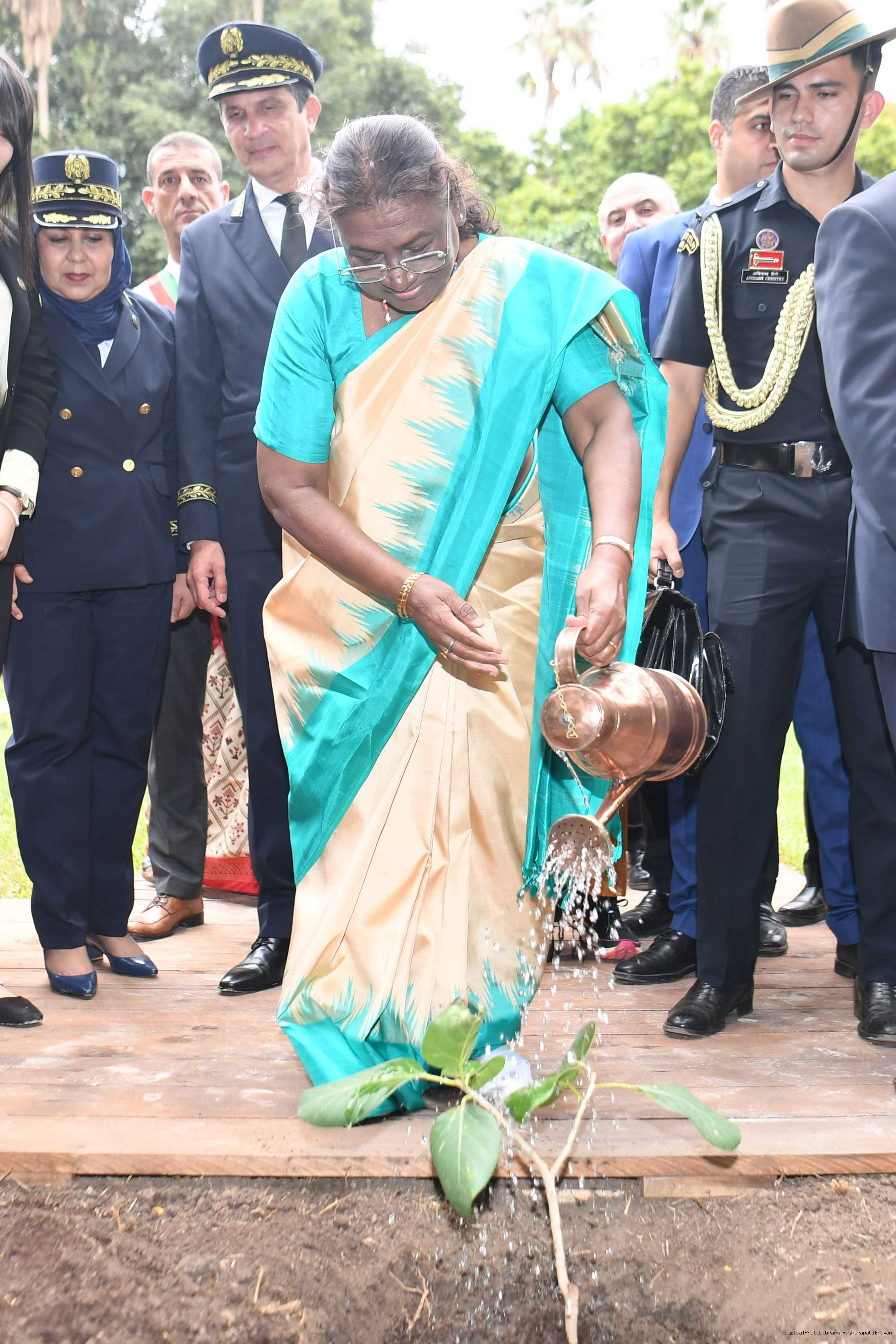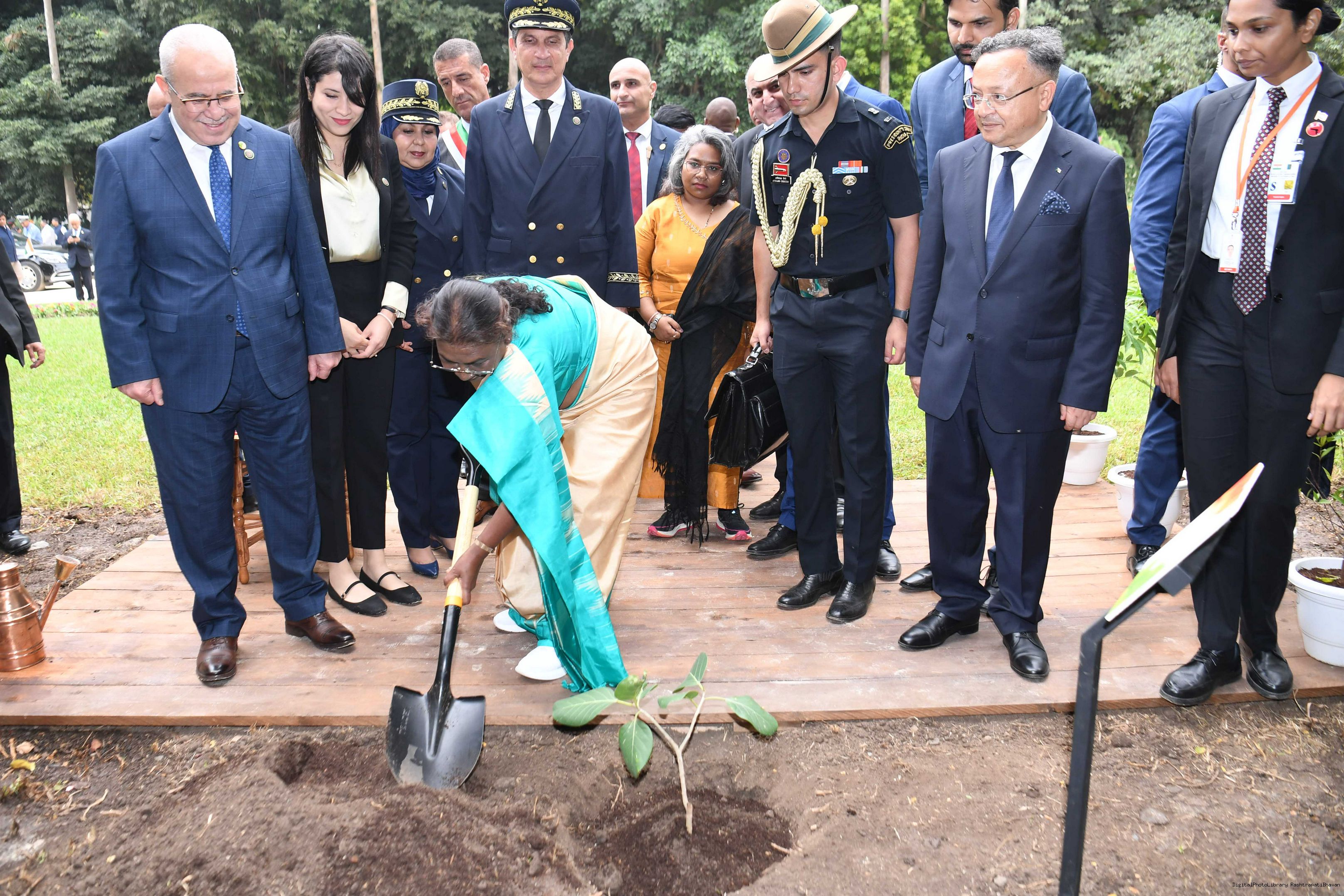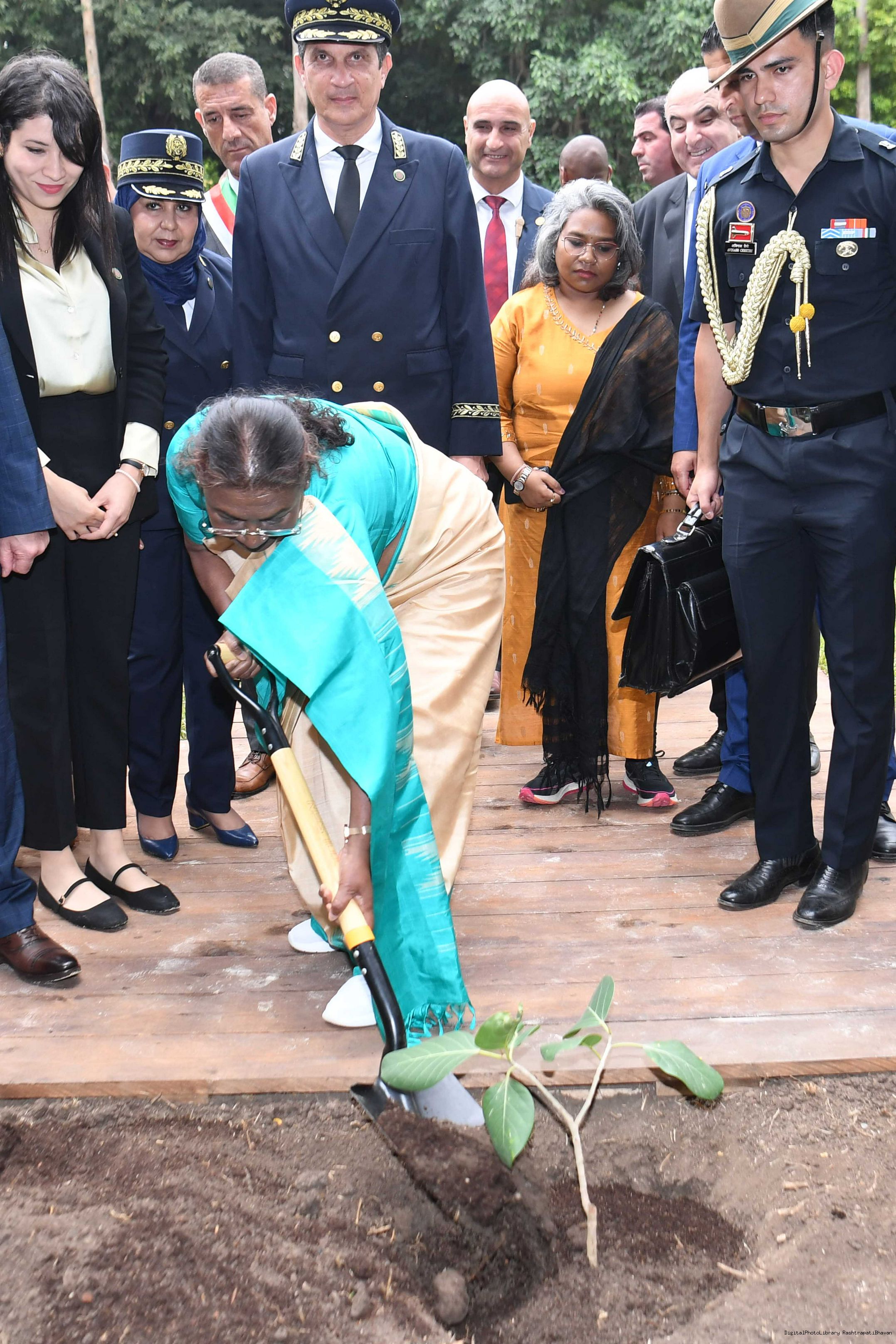 | Caption: | The President of India Smt. Droupadi Murmu tree plantation of Sapling at Jardin d' essai on October 15, 2024. |