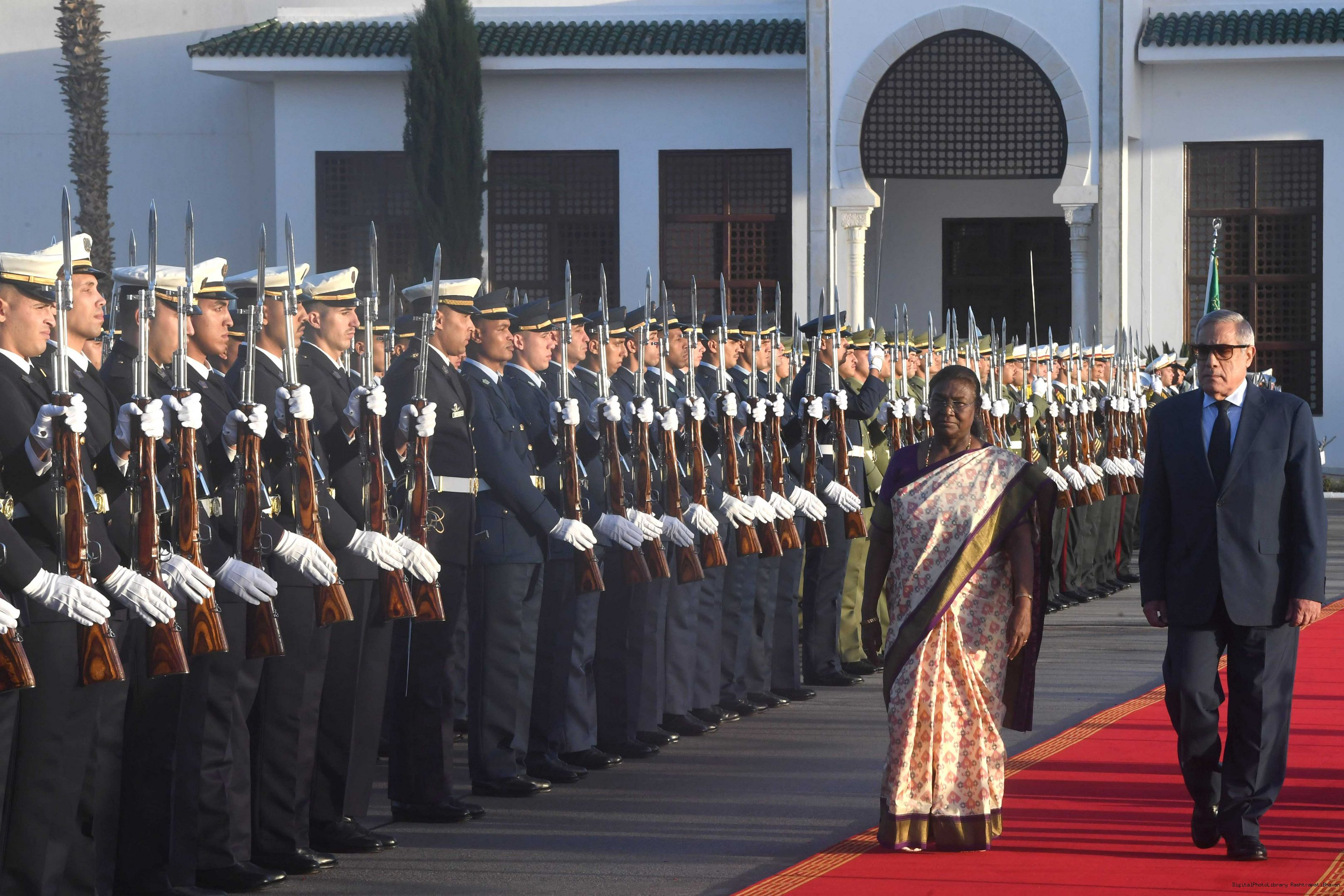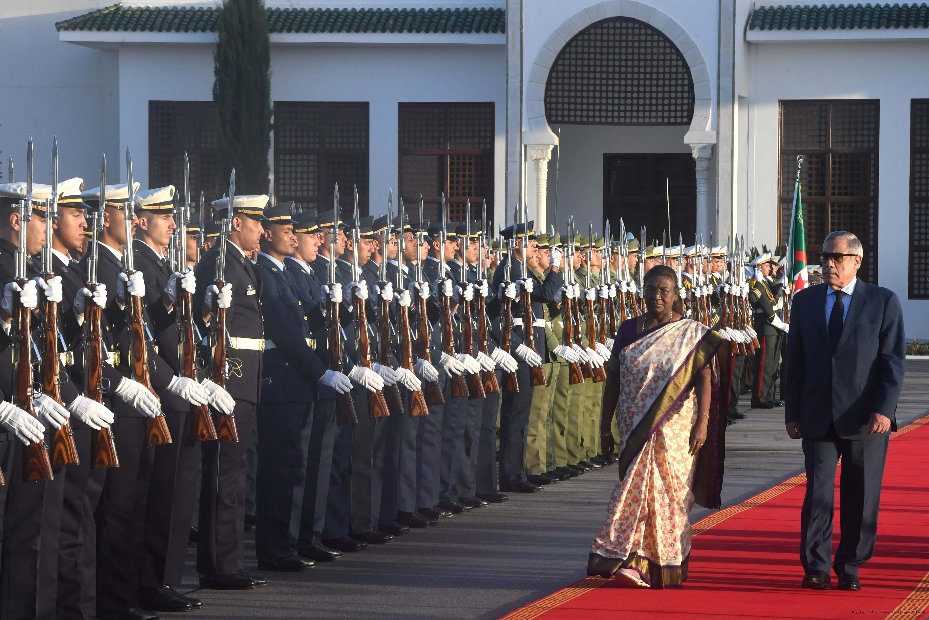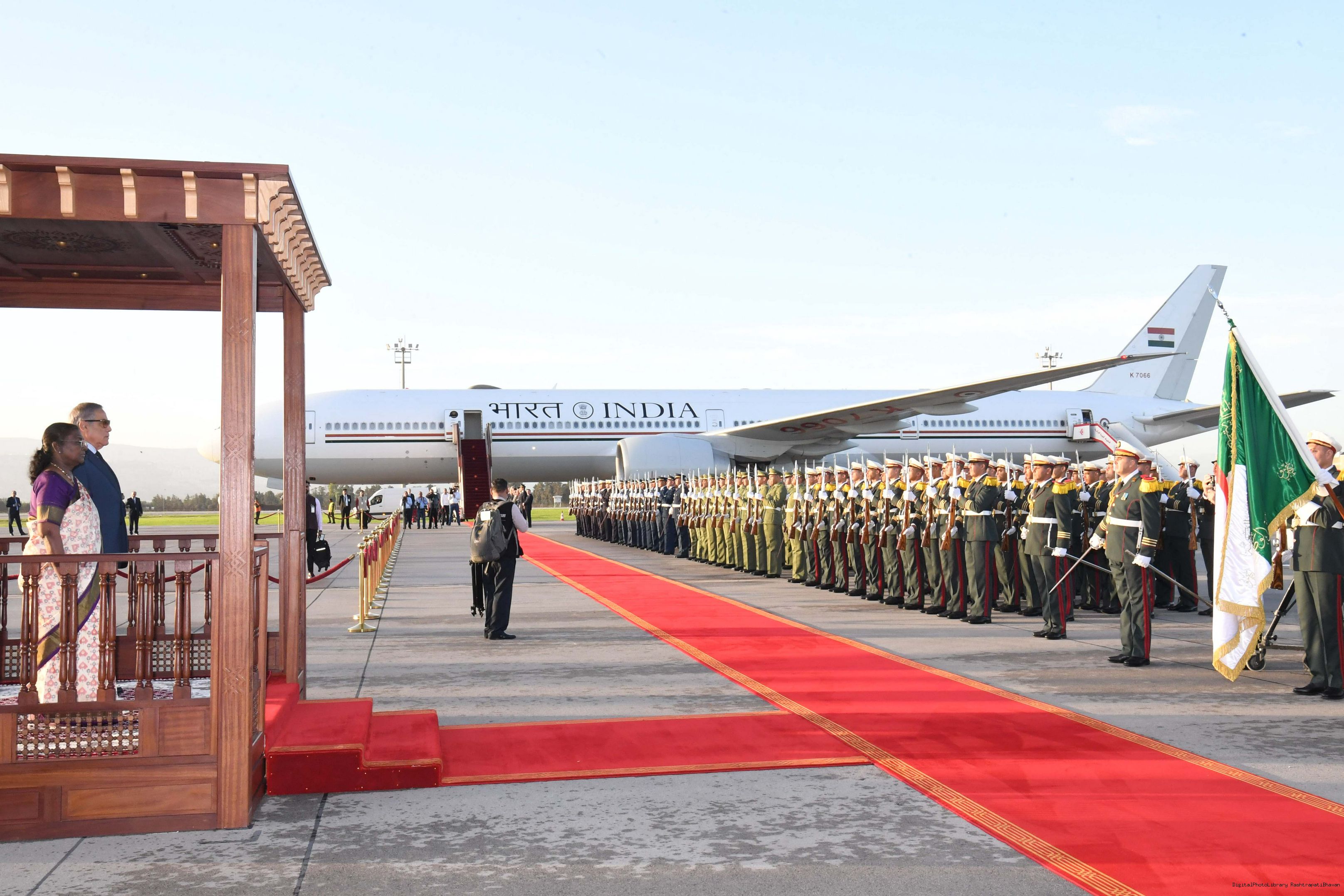 | Caption: | The President of India Smt. Droupadi Murmu given Farewell Guard of Honour at Algiers International Airport Houari Boumediene on October 16, 2024. |