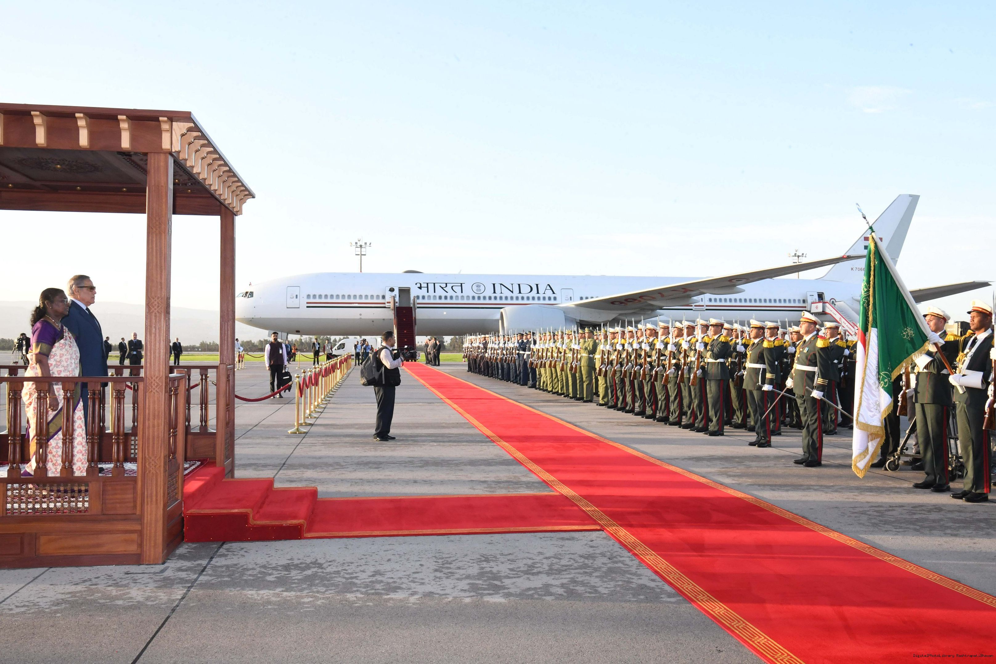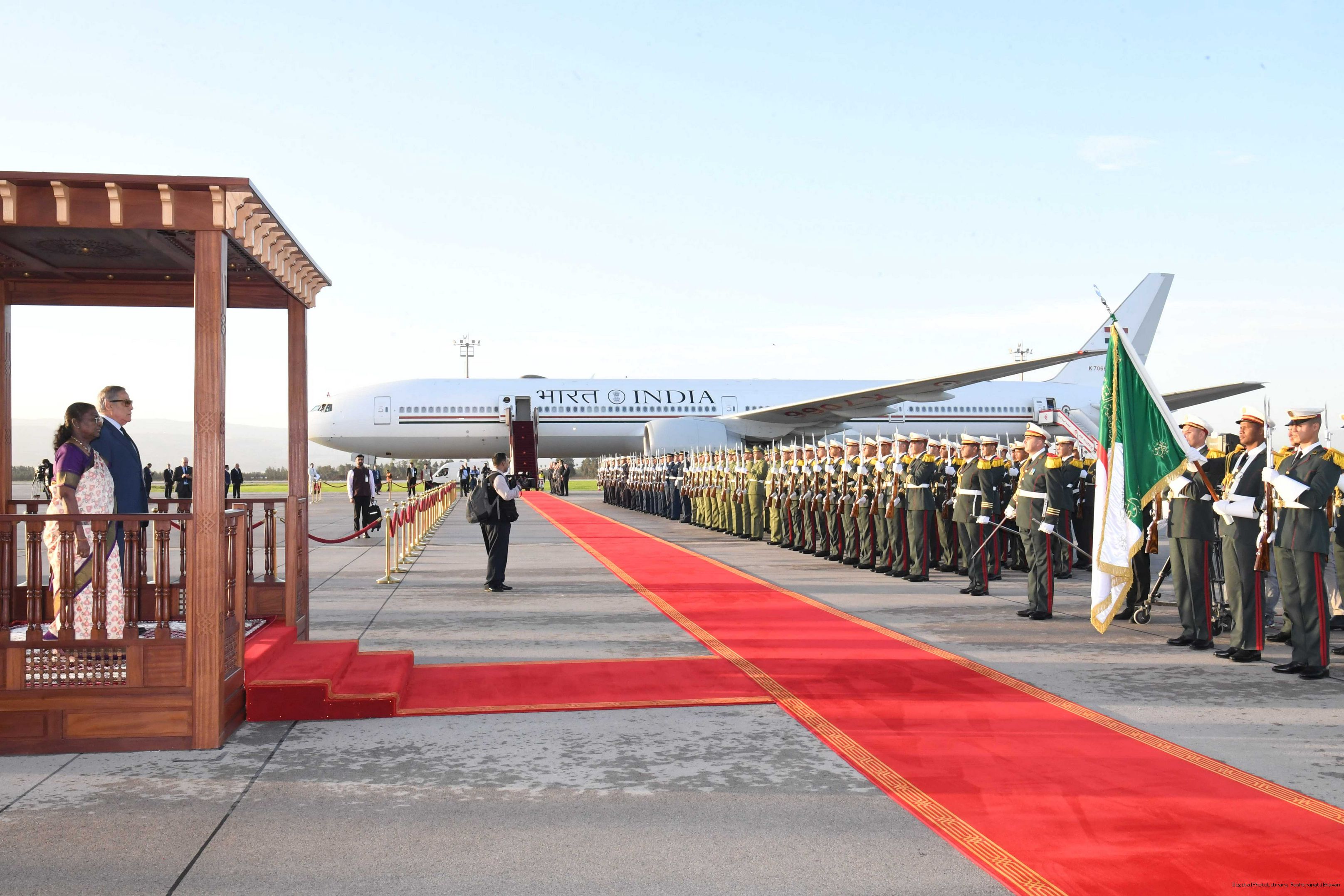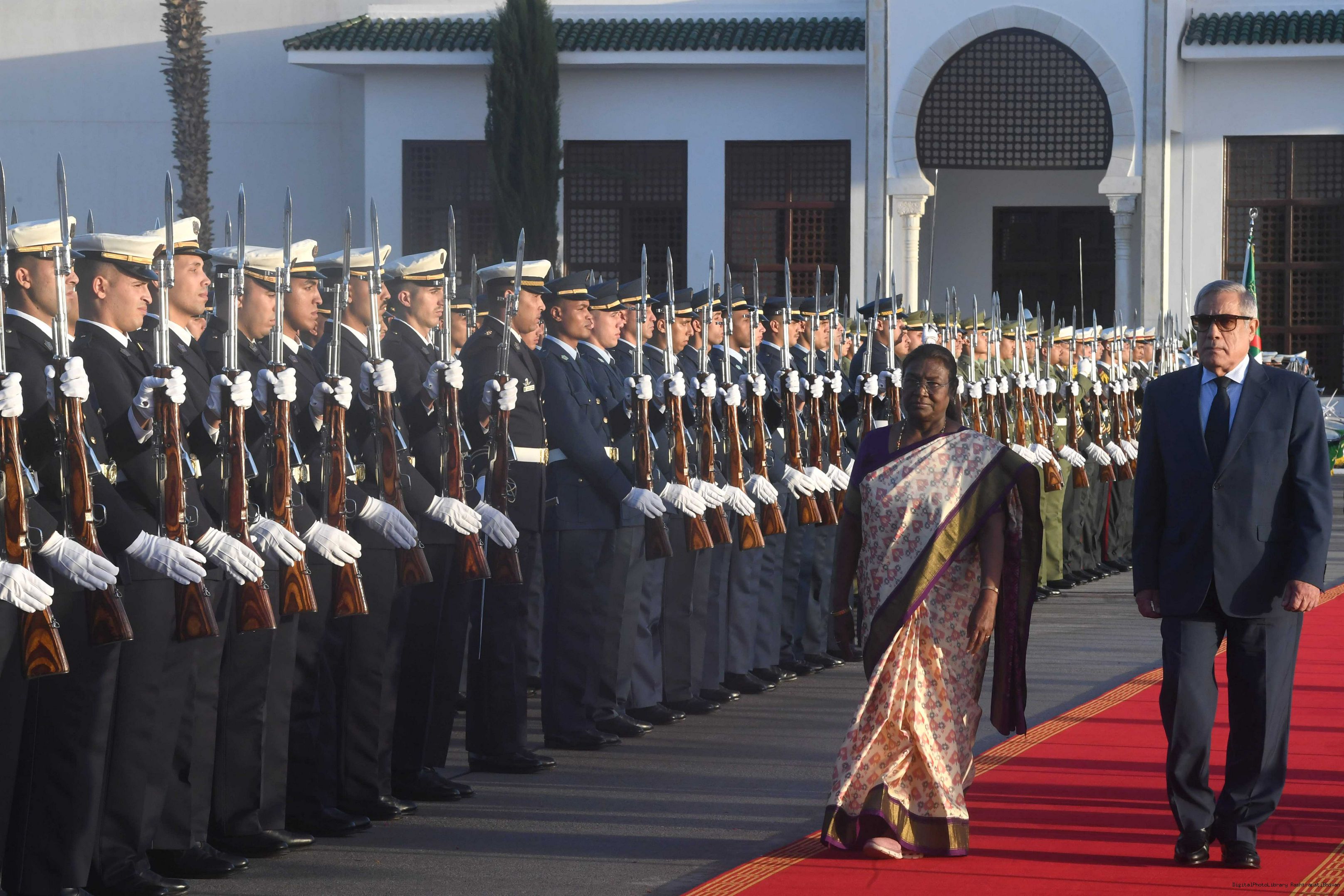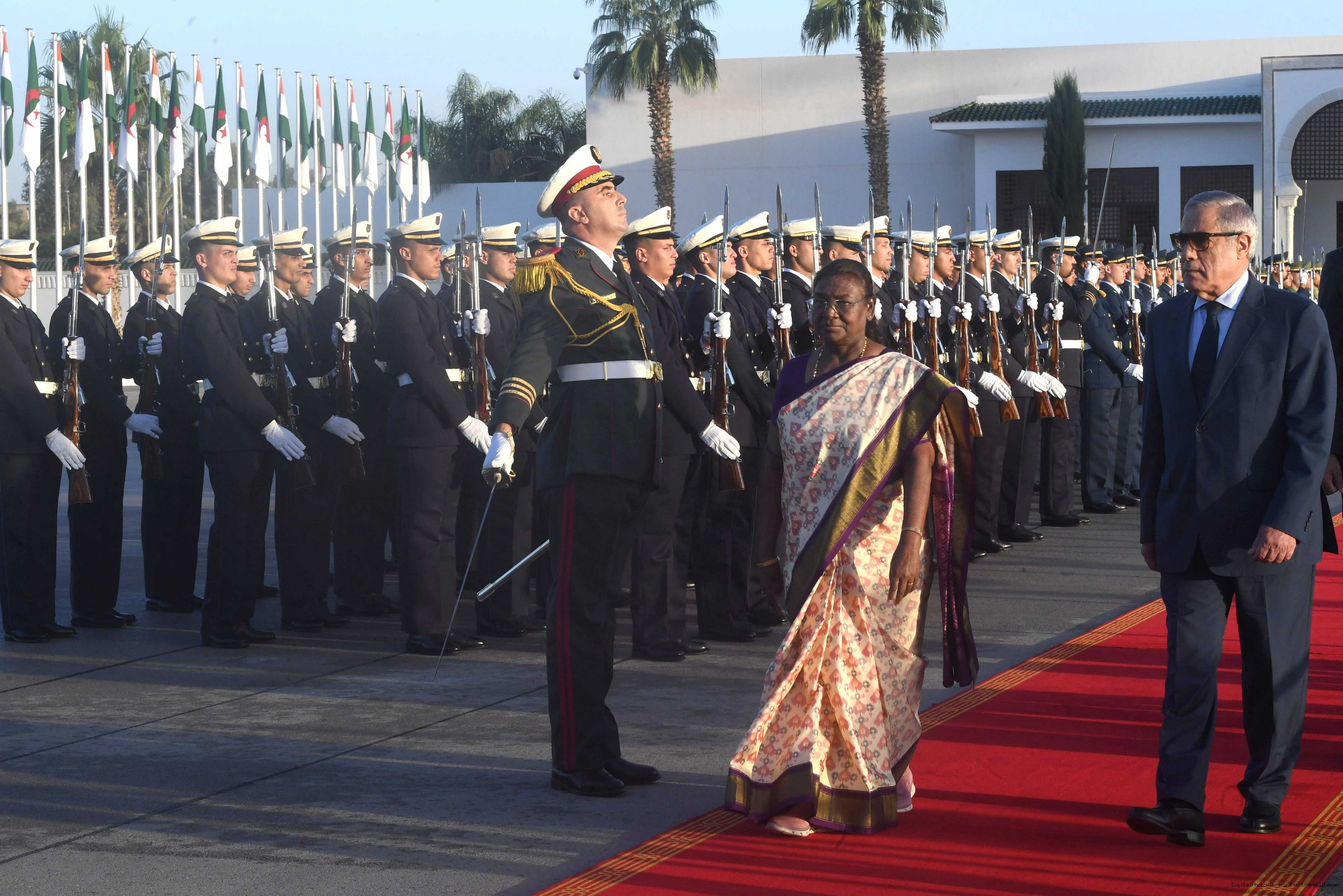 | Caption: | The President of India Smt. Droupadi Murmu given Farewell Guard of Honour at Algiers International Airport Houari Boumediene on October 16, 2024. |