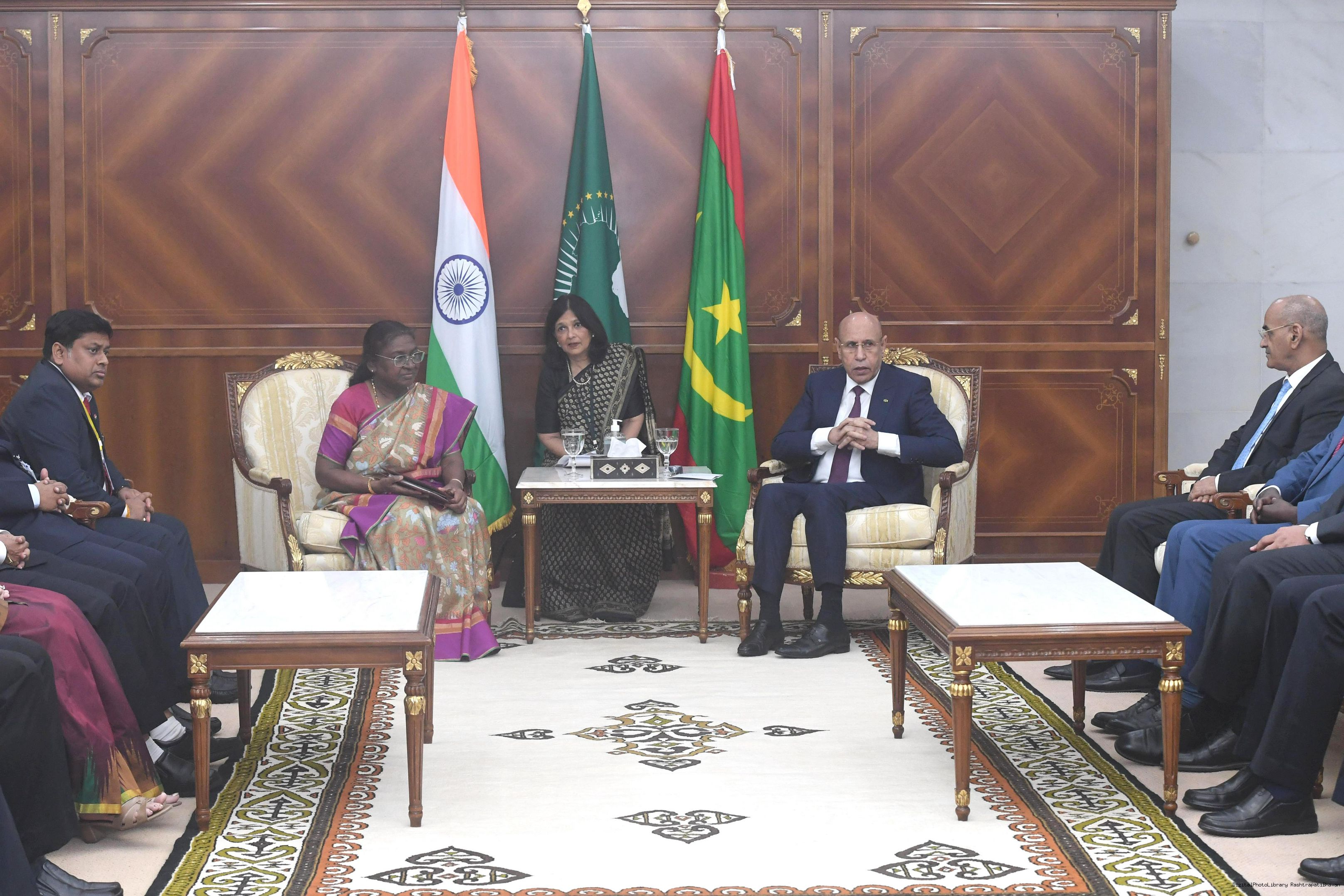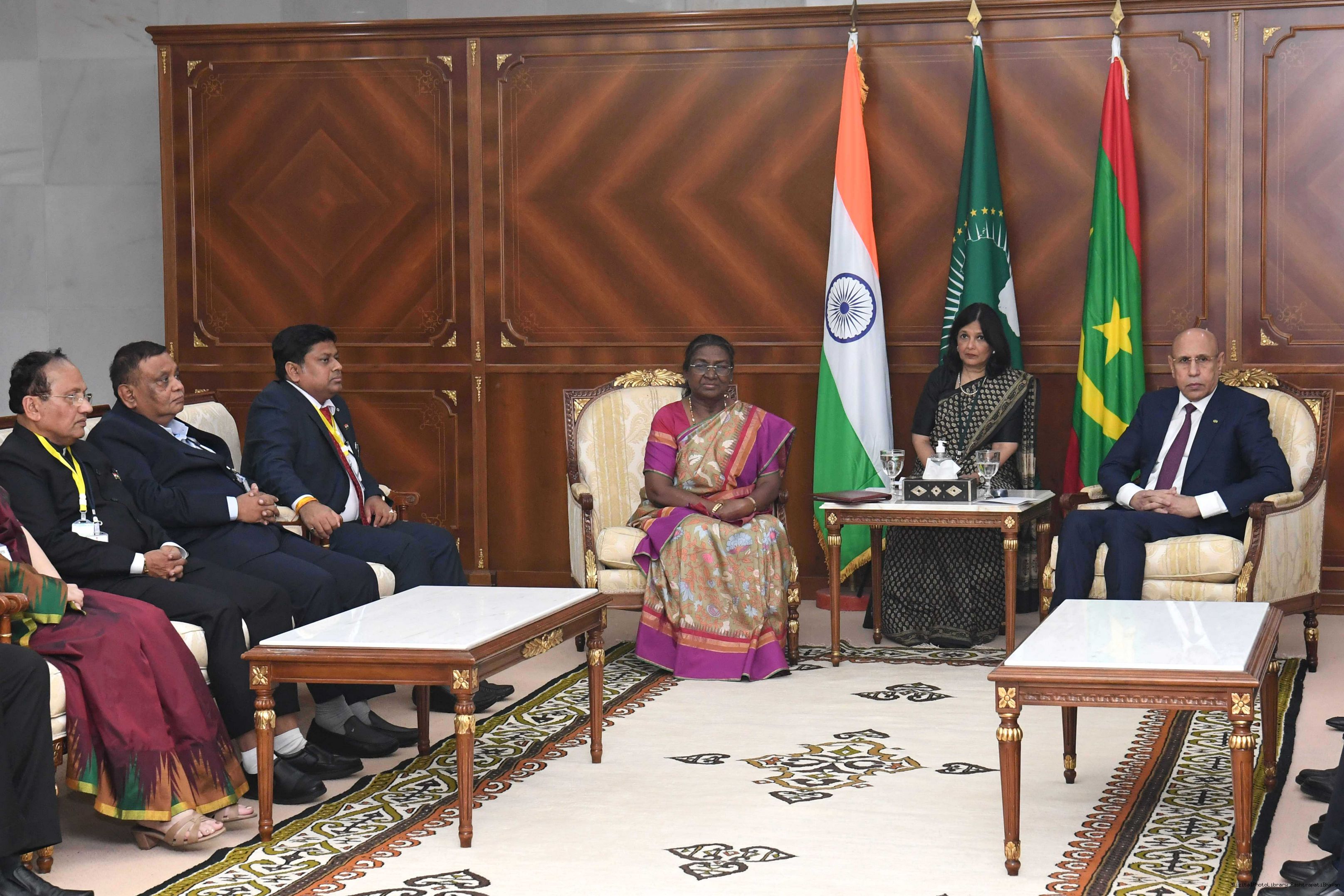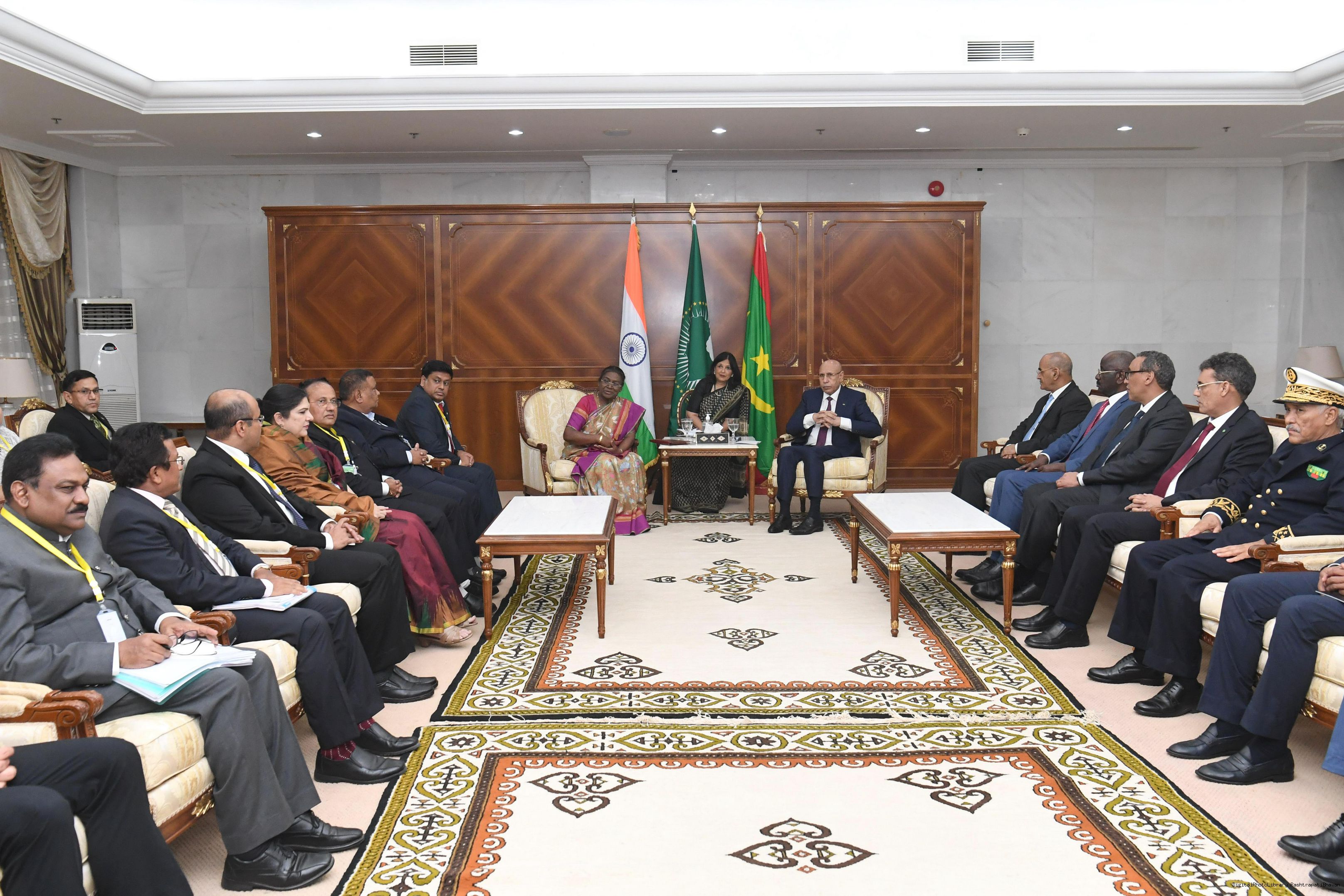 | Caption: | The President of India Smt. Draupadi Murmu led the delegation level talks 05. Delegation Level Talks at Presidential Palace, Mauritania on October 16, 2024. |