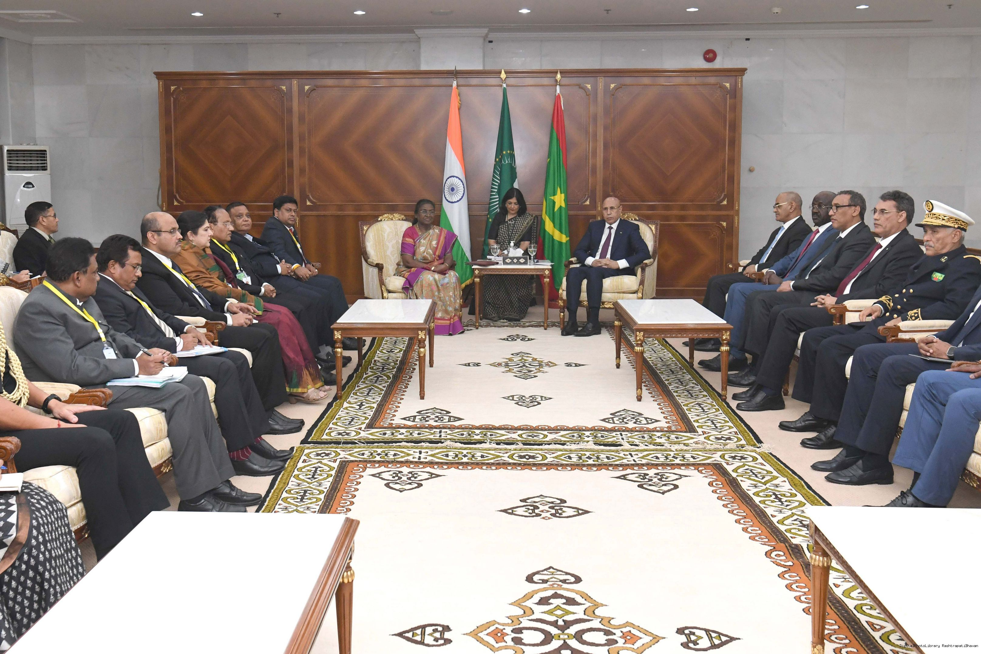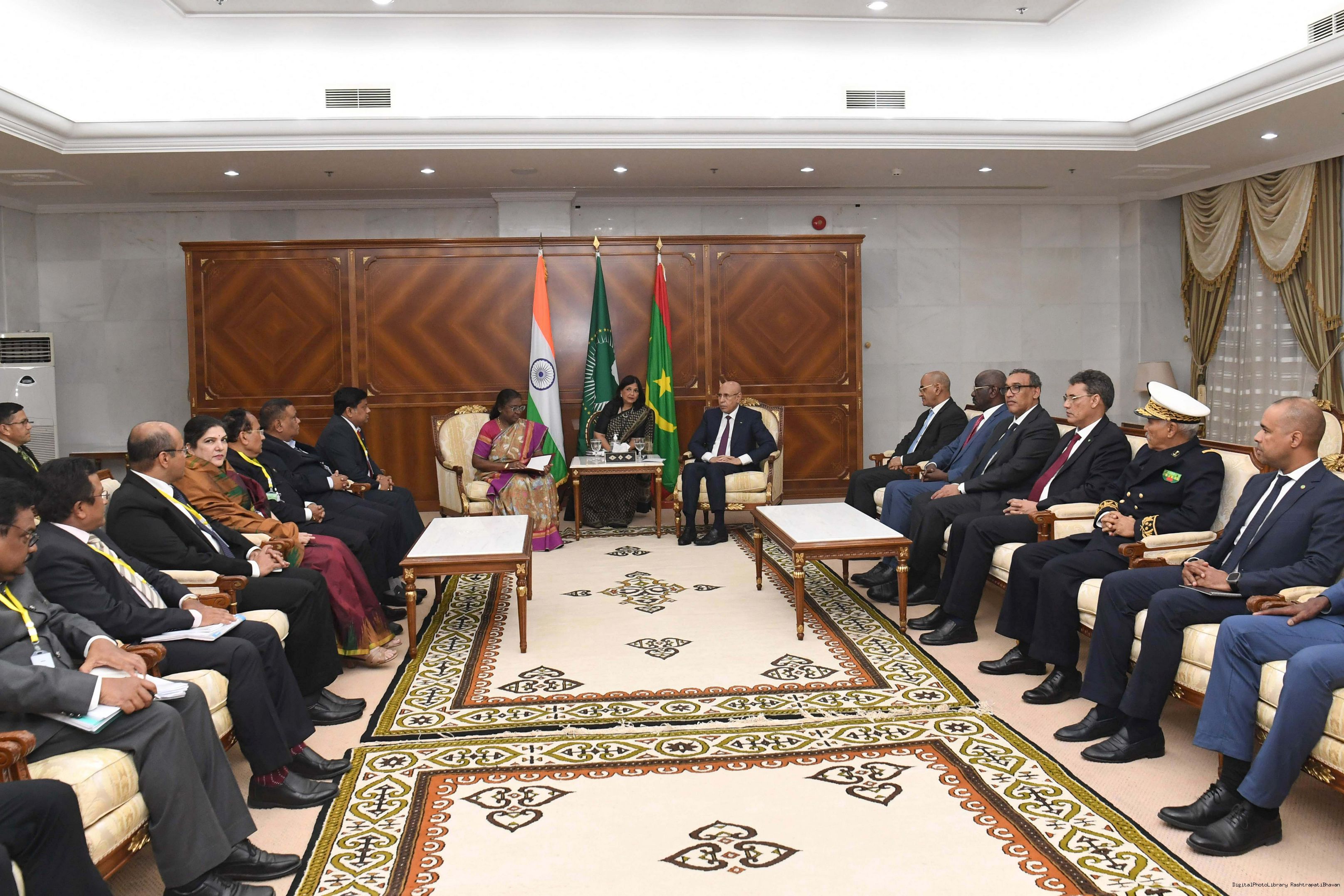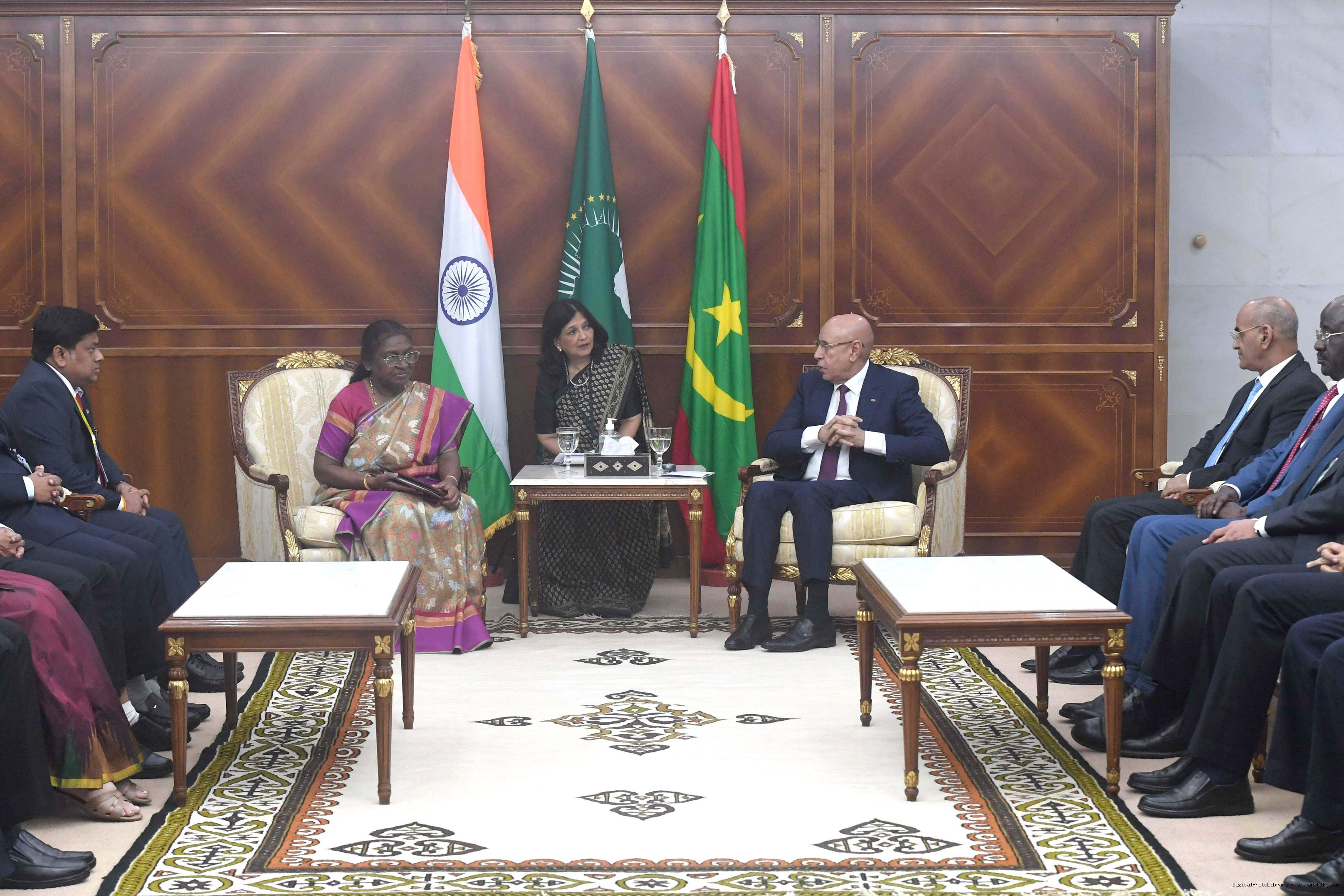 | Caption: | The President of India Smt. Draupadi Murmu led the delegation level talks 05. Delegation Level Talks at Presidential Palace, Mauritania on October 16, 2024. |