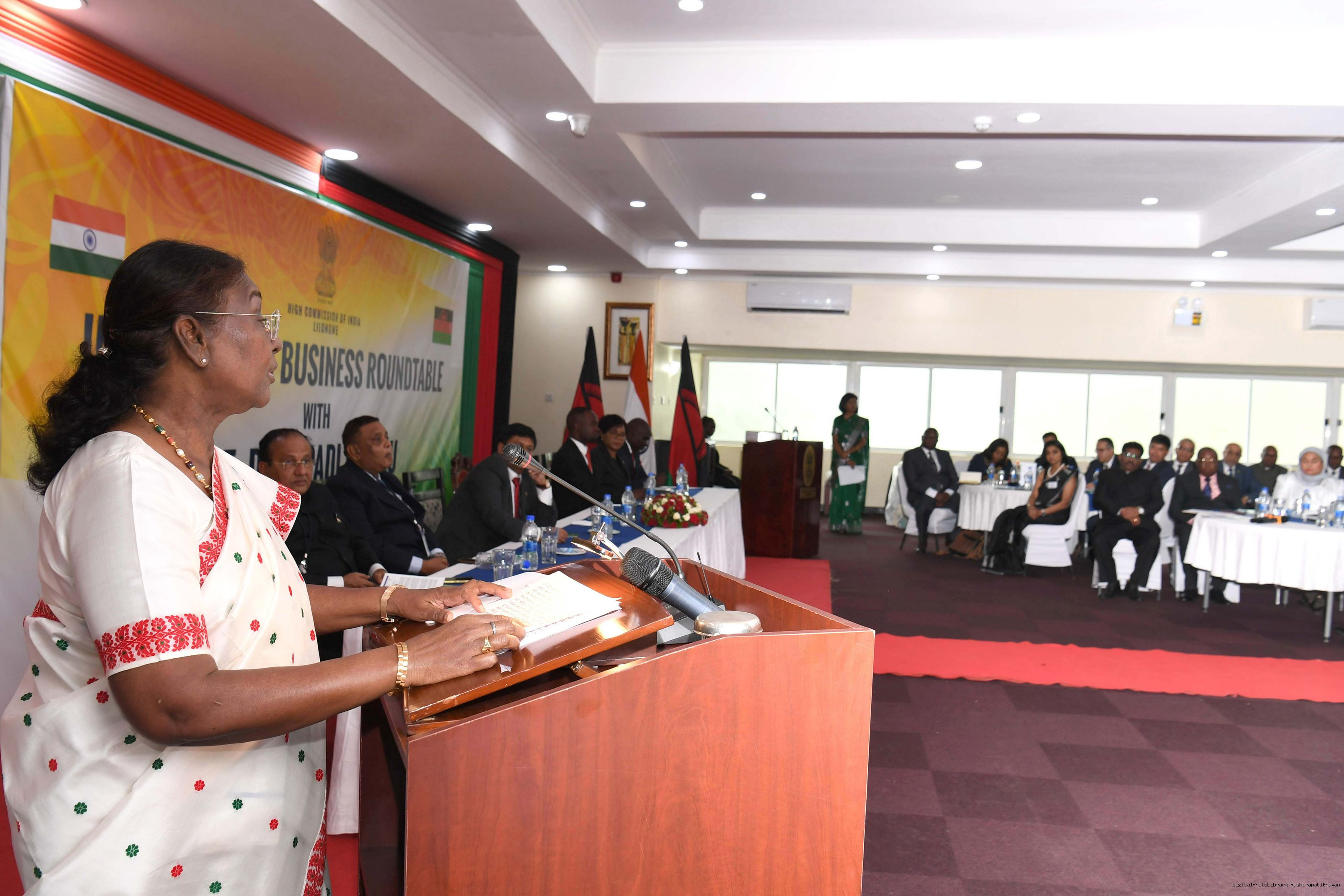 | Caption: | The President of India Smt. Droupadi Murmu addressed the India-Malawi Business Meet at Lilongwe, Malawi on October 17, 2024. |