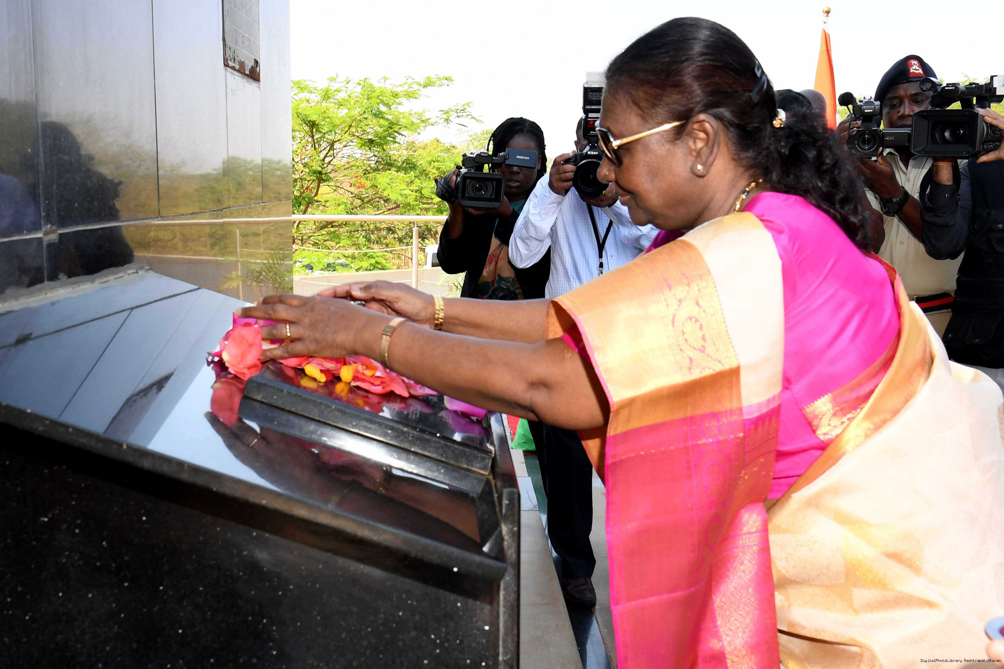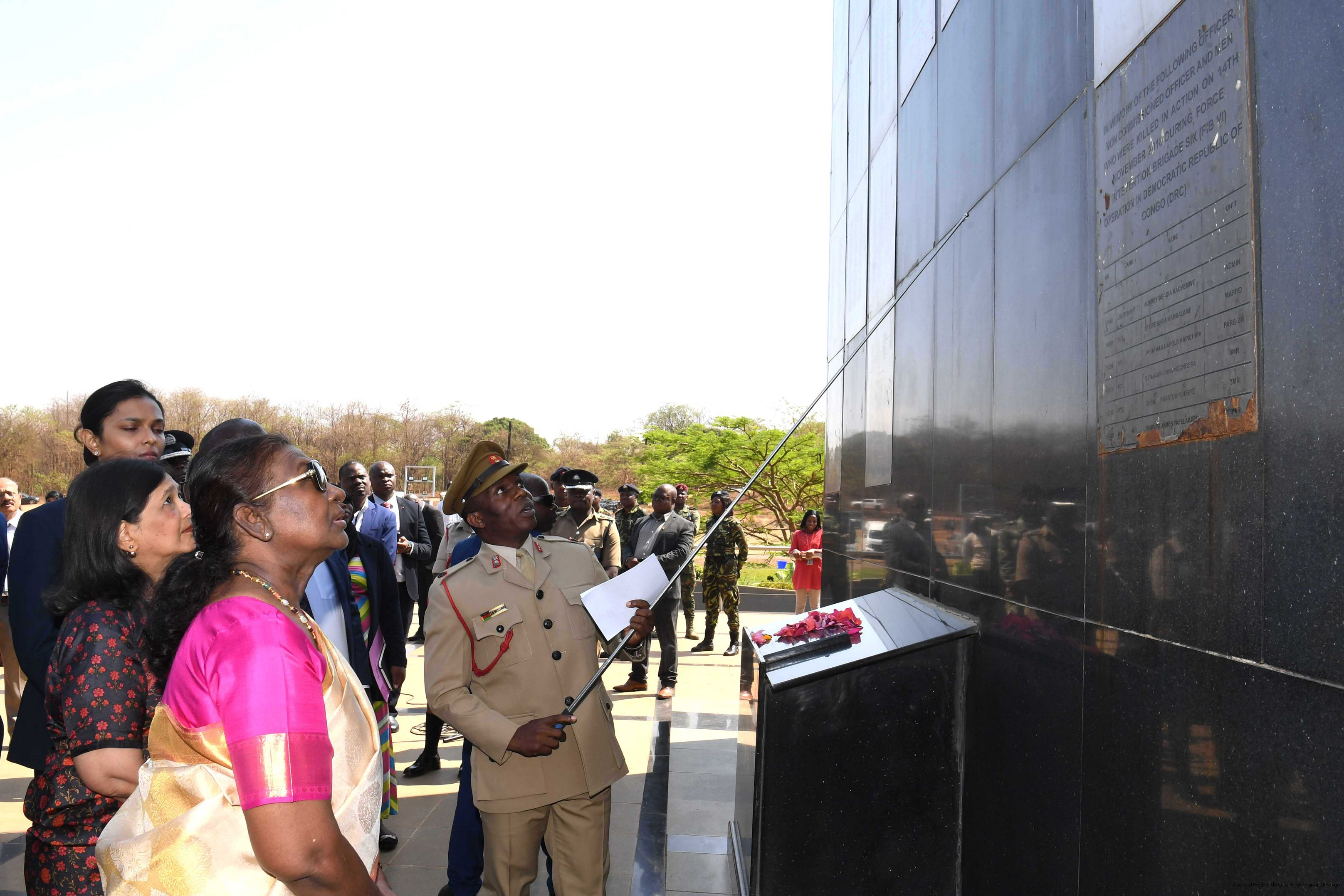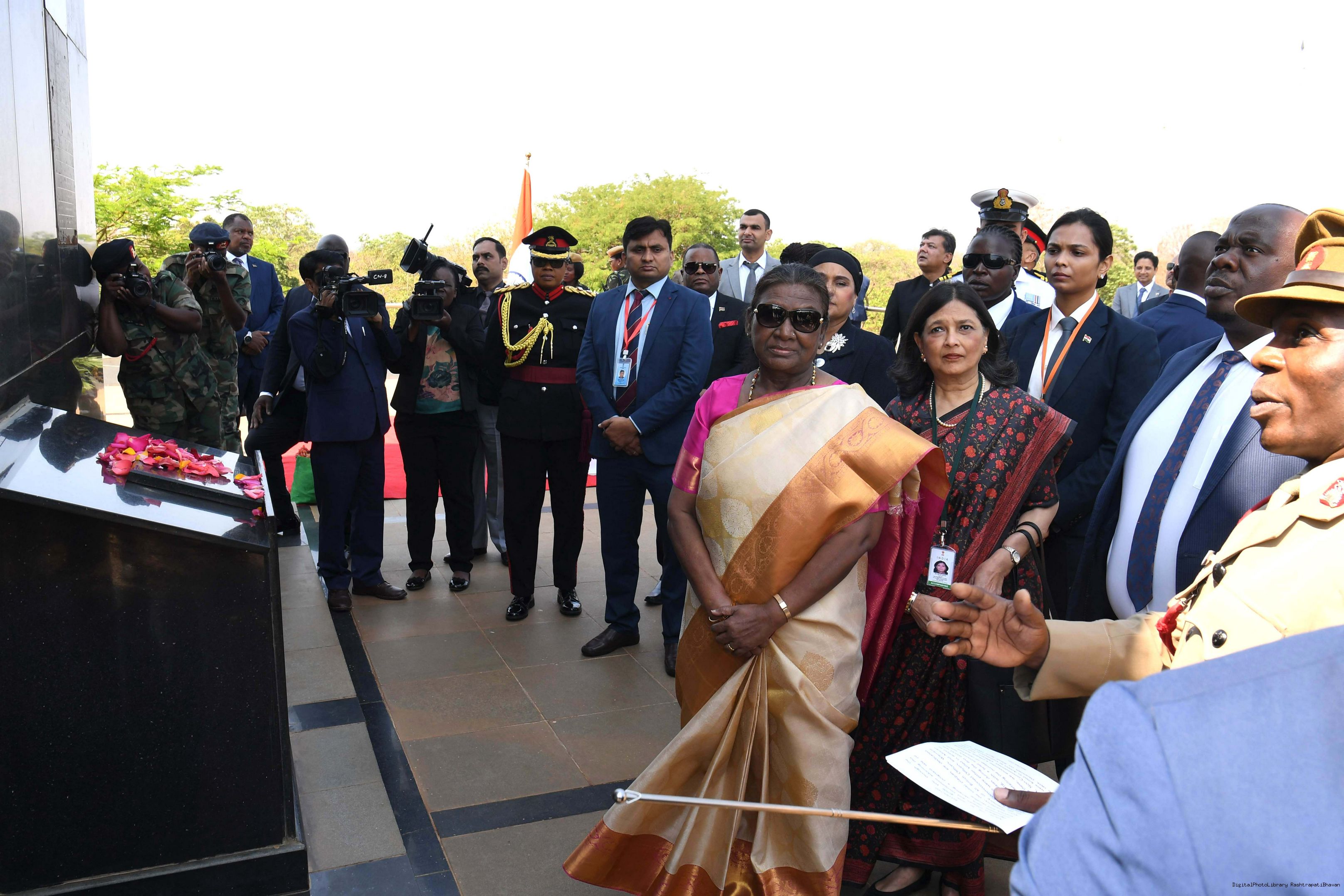 | Caption: | The President of India Smt. Droupadi Murmu Wreath Laying Followed by Signing of Visitor's Book at National War Memorial Malawi on October 18, 2024. |