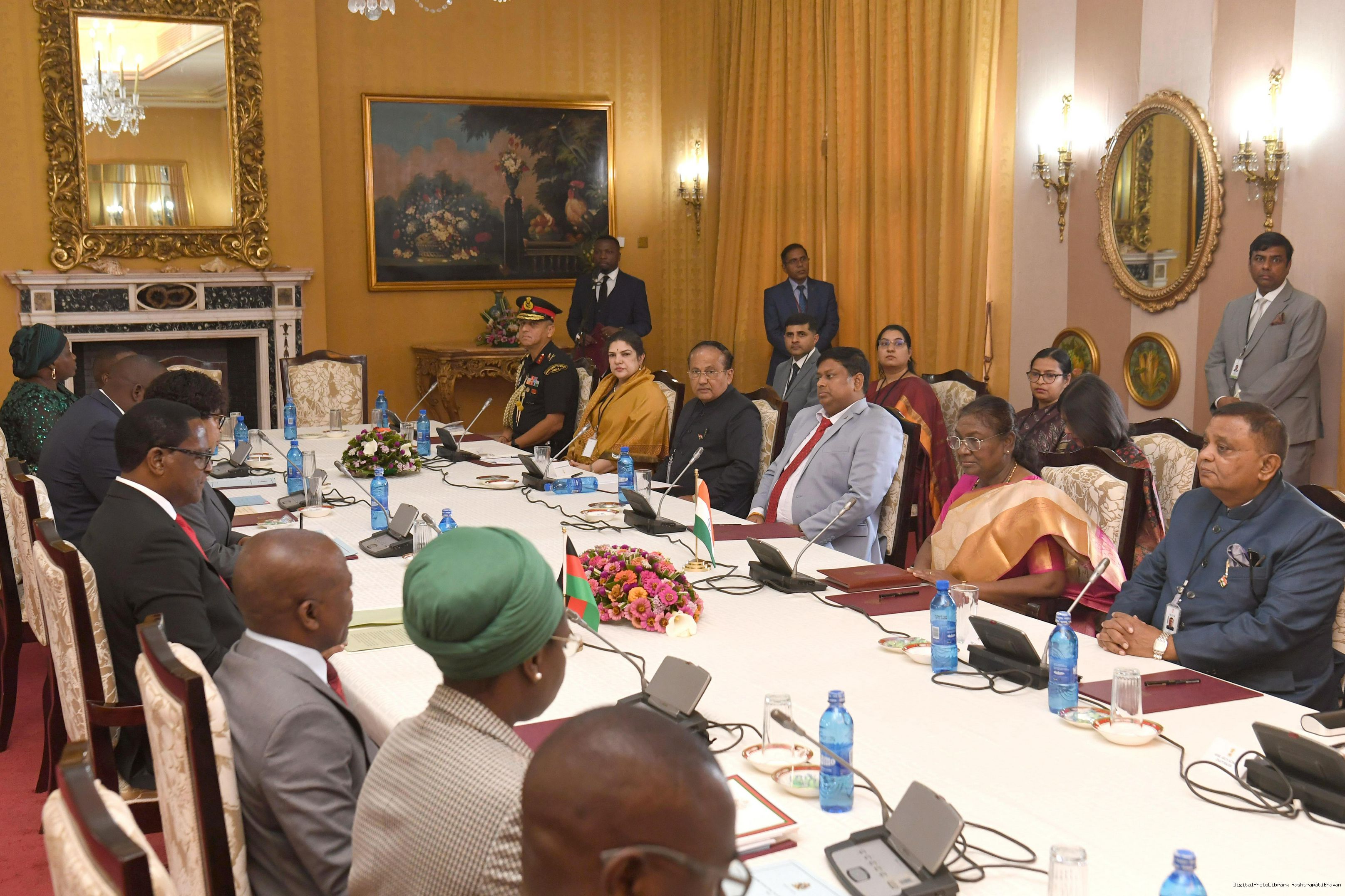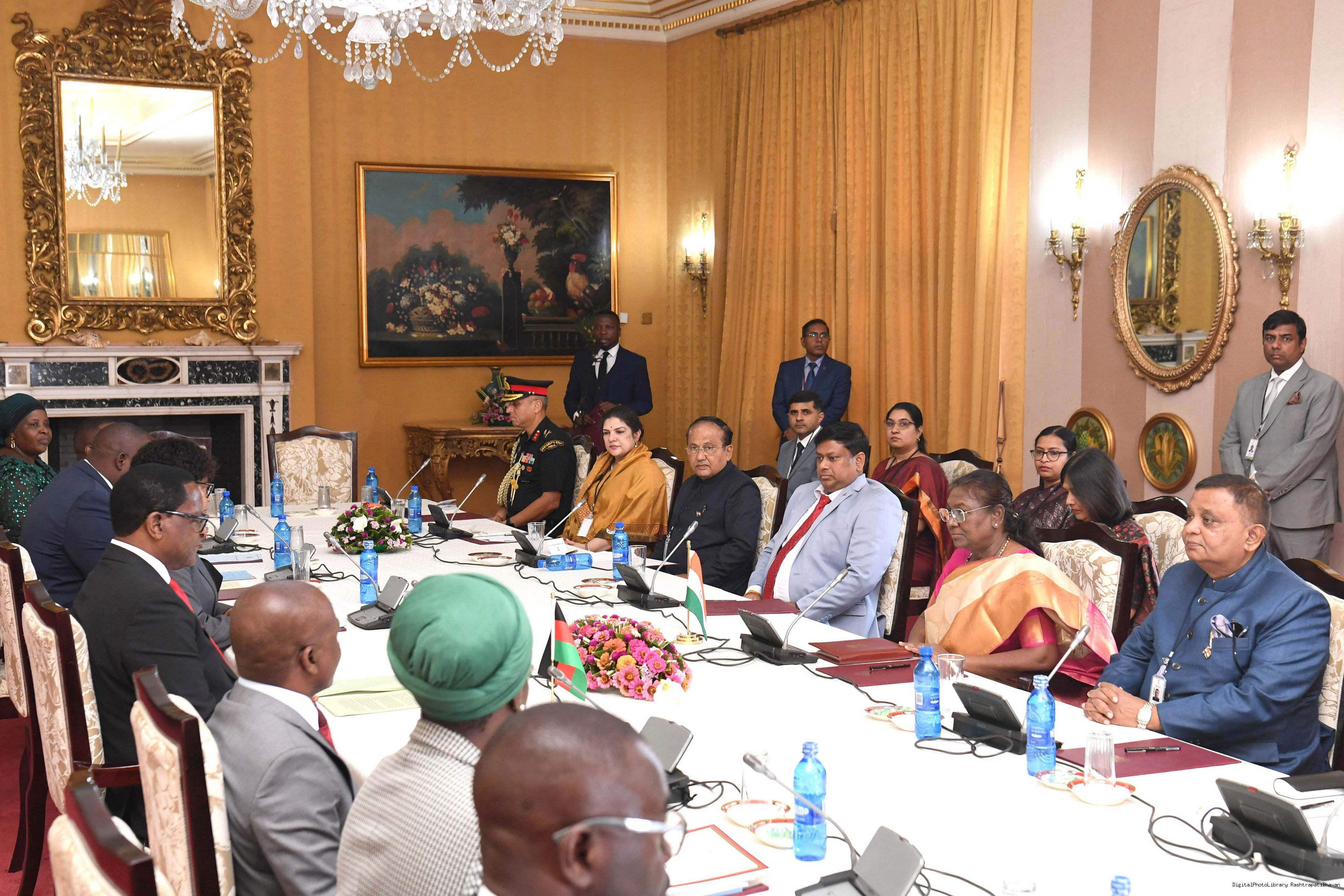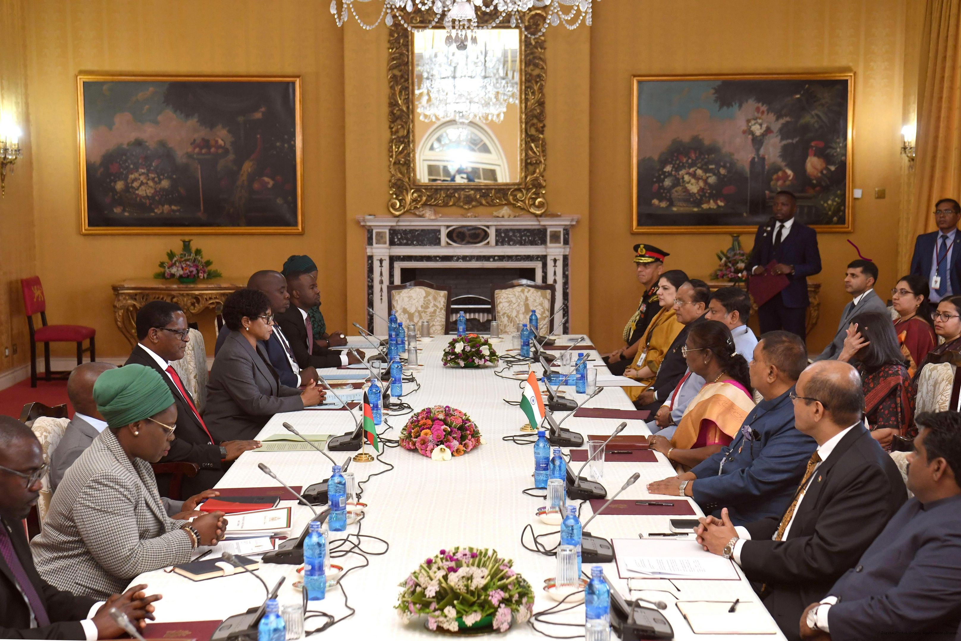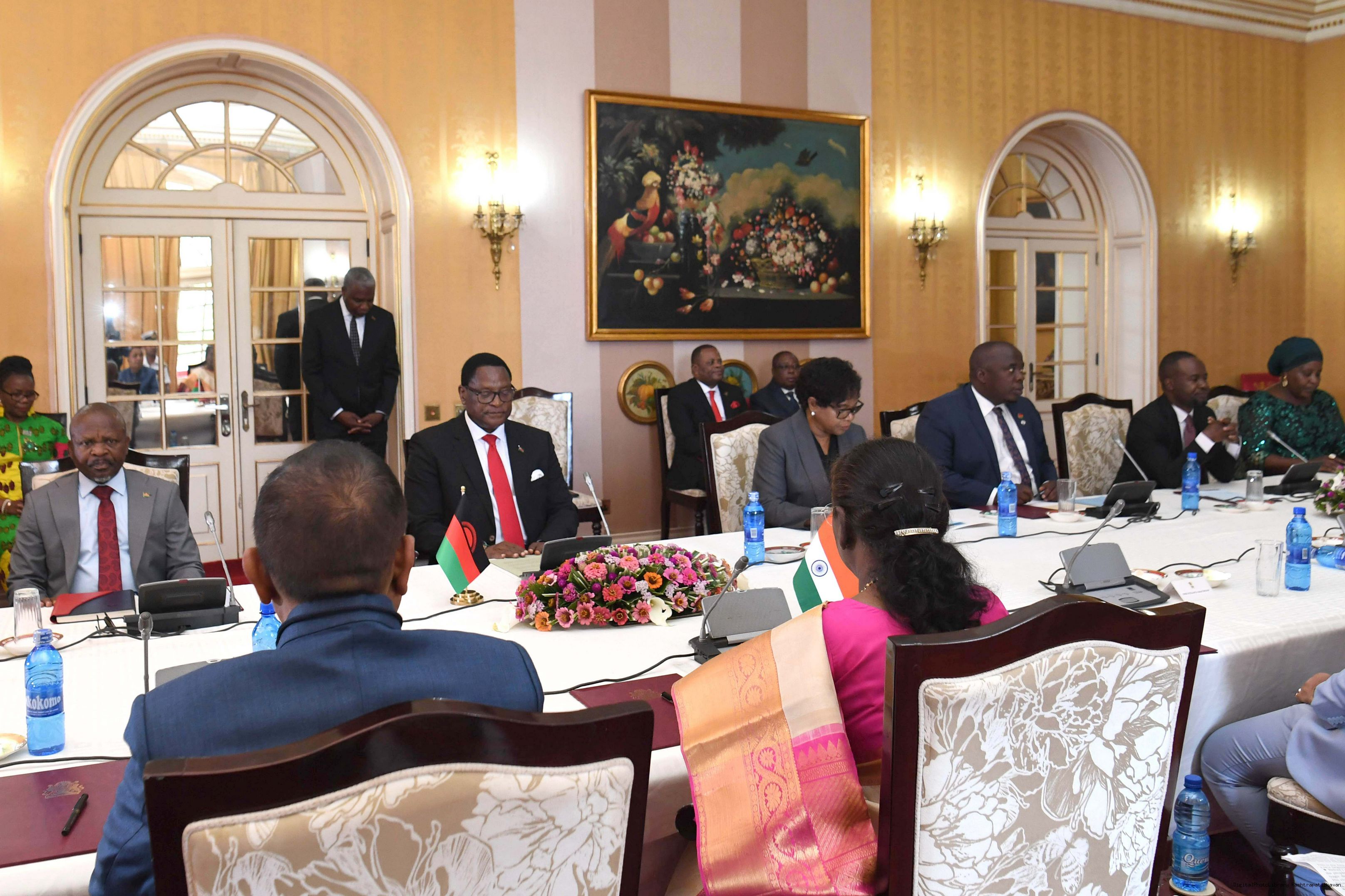 | Caption: | The President of India Smt. Draupadi Murmu led the delegation level talks at State House in Malawi on October 18, 2024. |