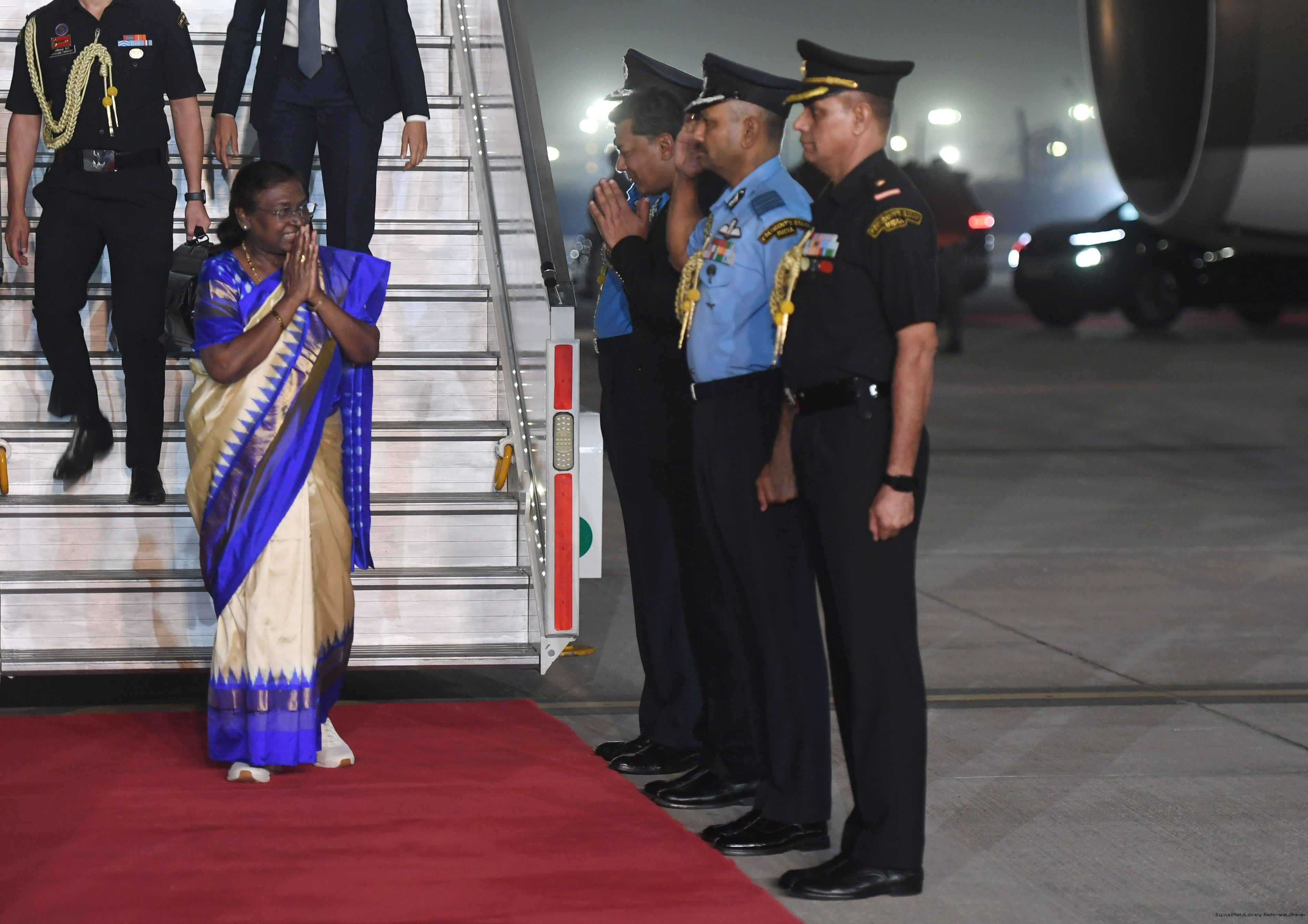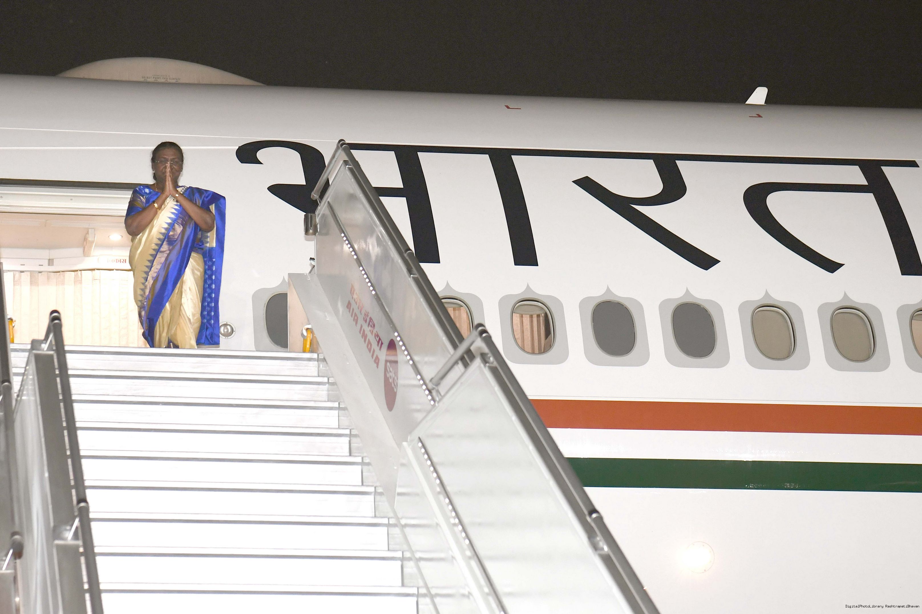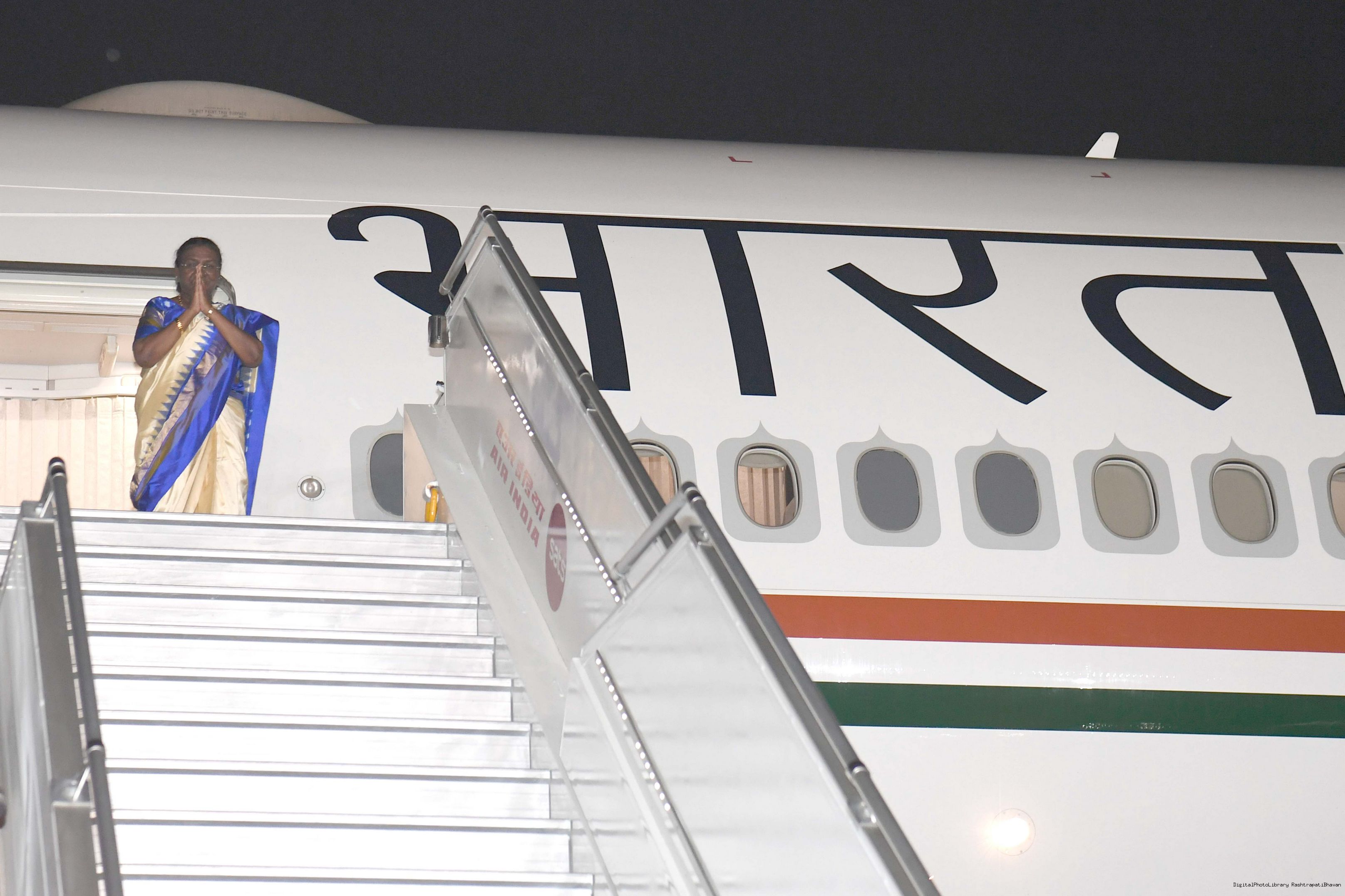 | Caption: | The President of India Smt. Droupadi Murmu returns to New Delhi after completion of her State visits to Algeria, Mauritania and Malawi on October 19, 2024. |