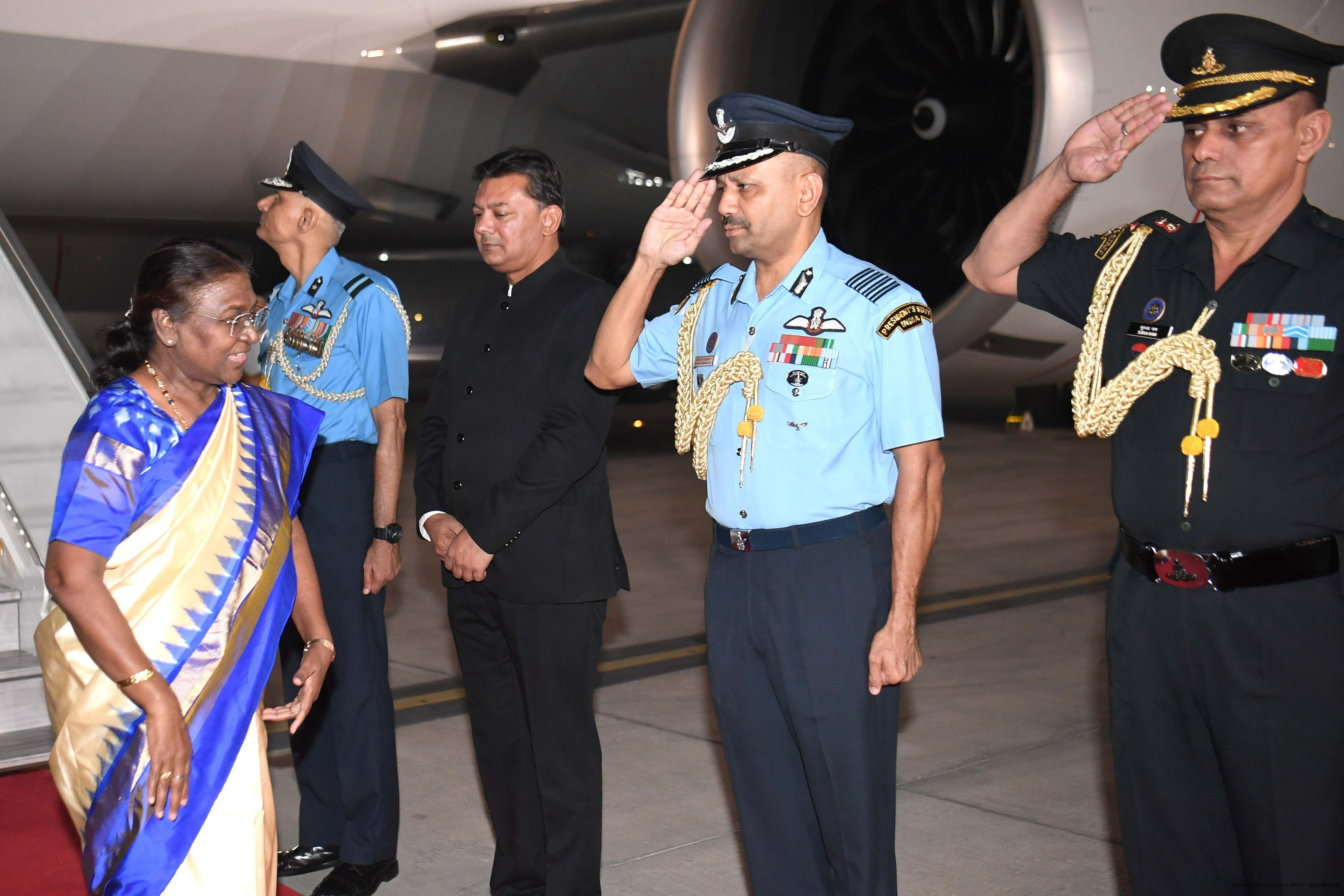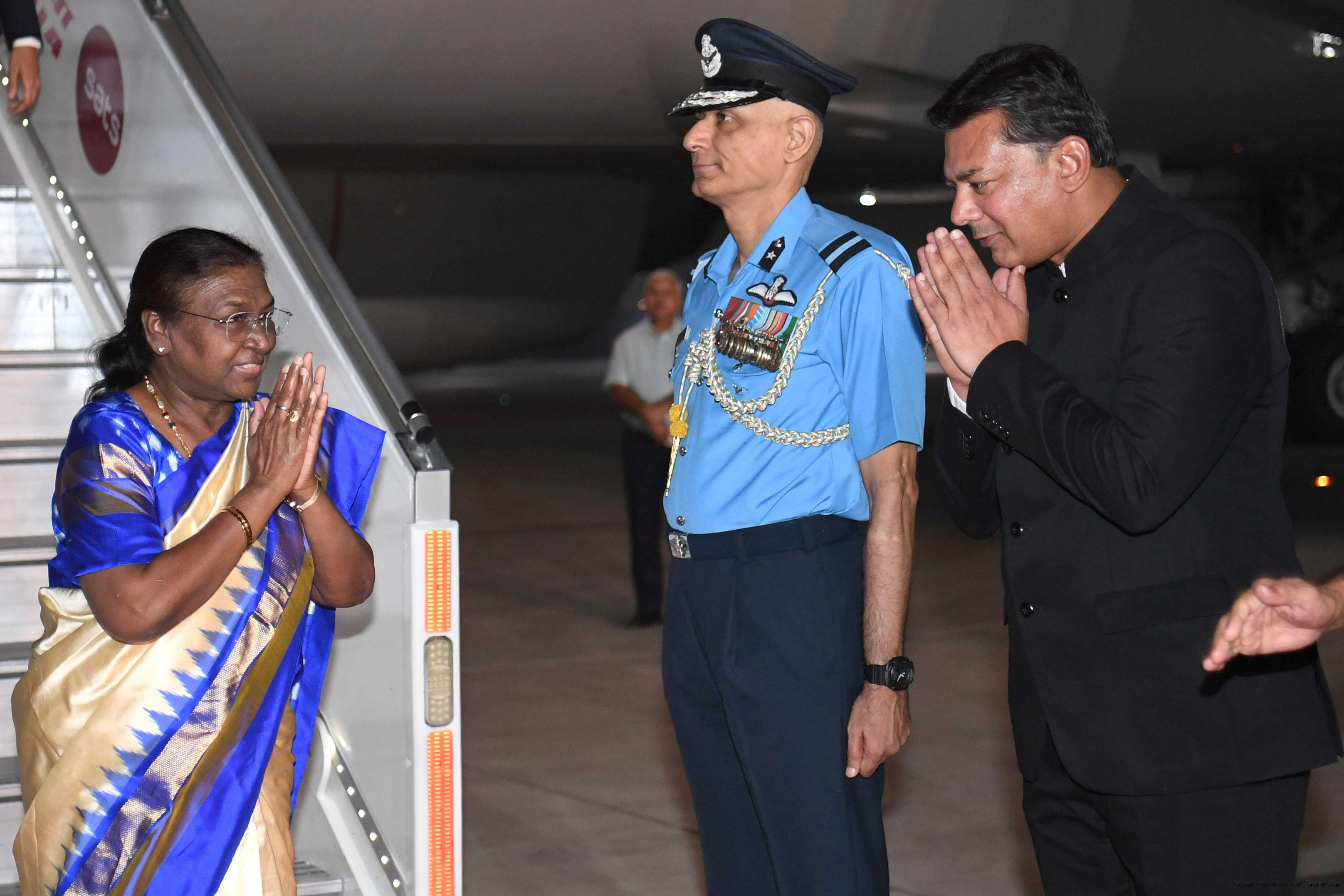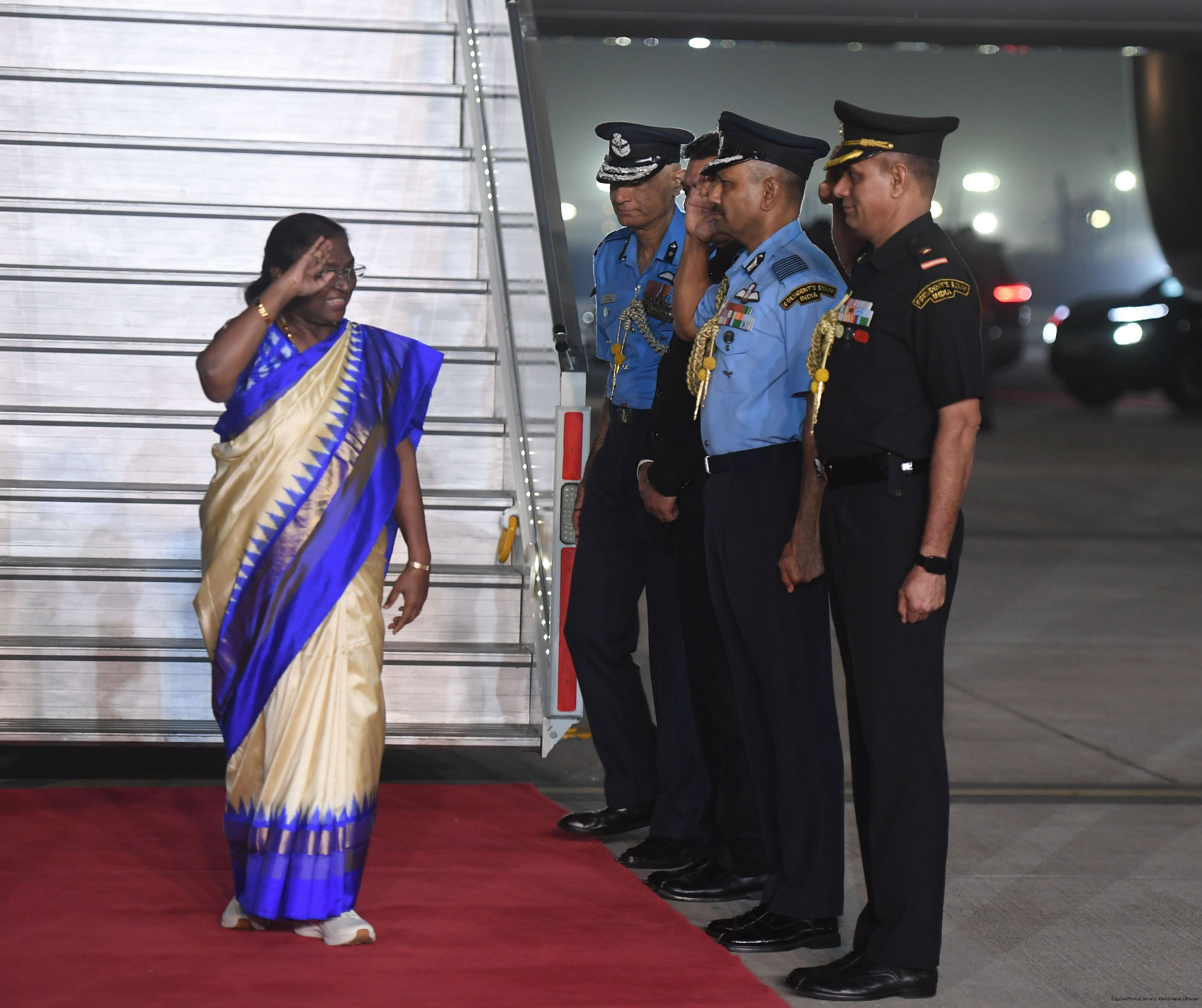 | Caption: | The President of India Smt. Droupadi Murmu returns to New Delhi after completion of her State visits to Algeria, Mauritania and Malawi on October 19, 2024. |