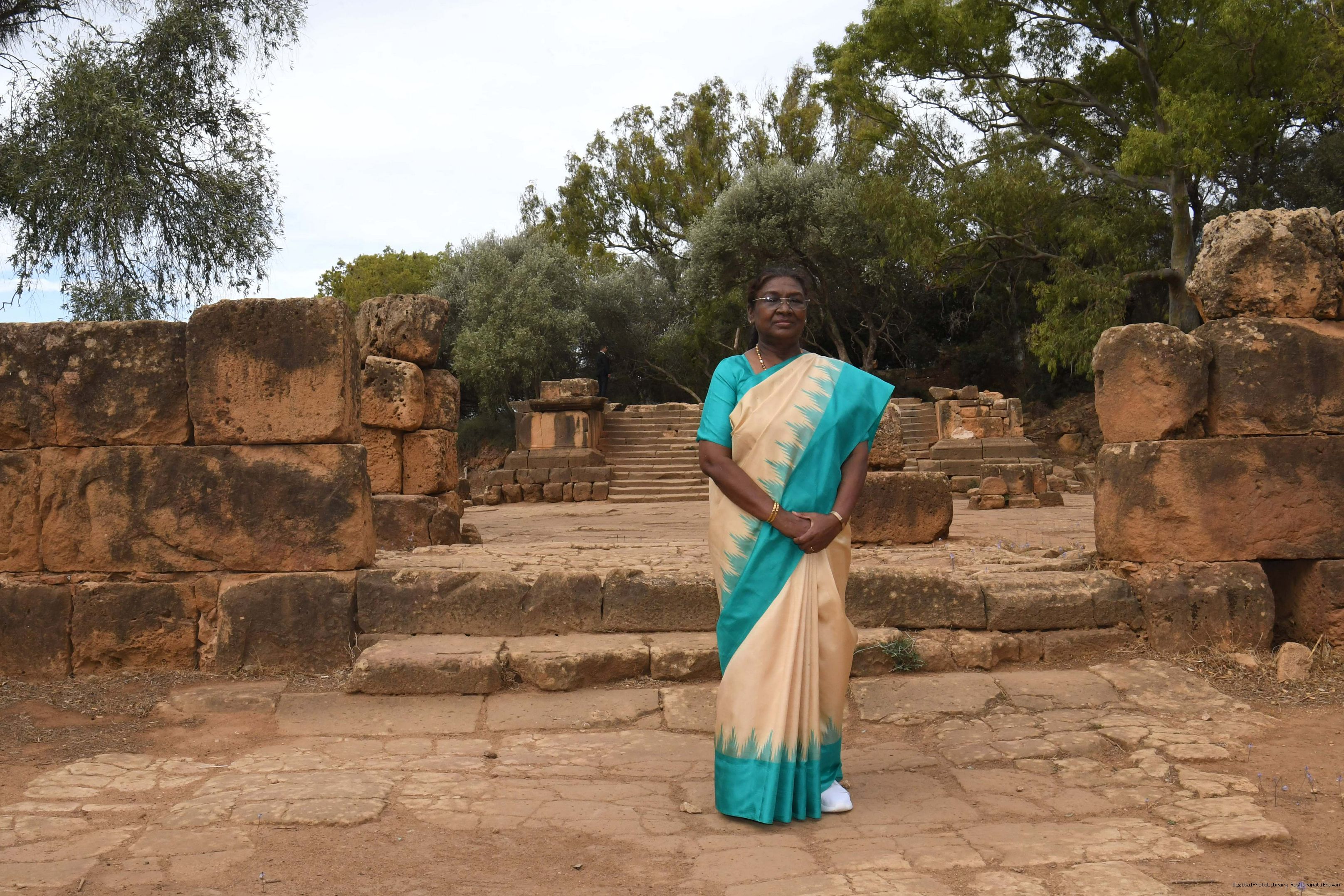| Caption: | The President of India Smt. Droupadi Murmu Visited at Roman Ruins in Algeria on October 15, 2024. |