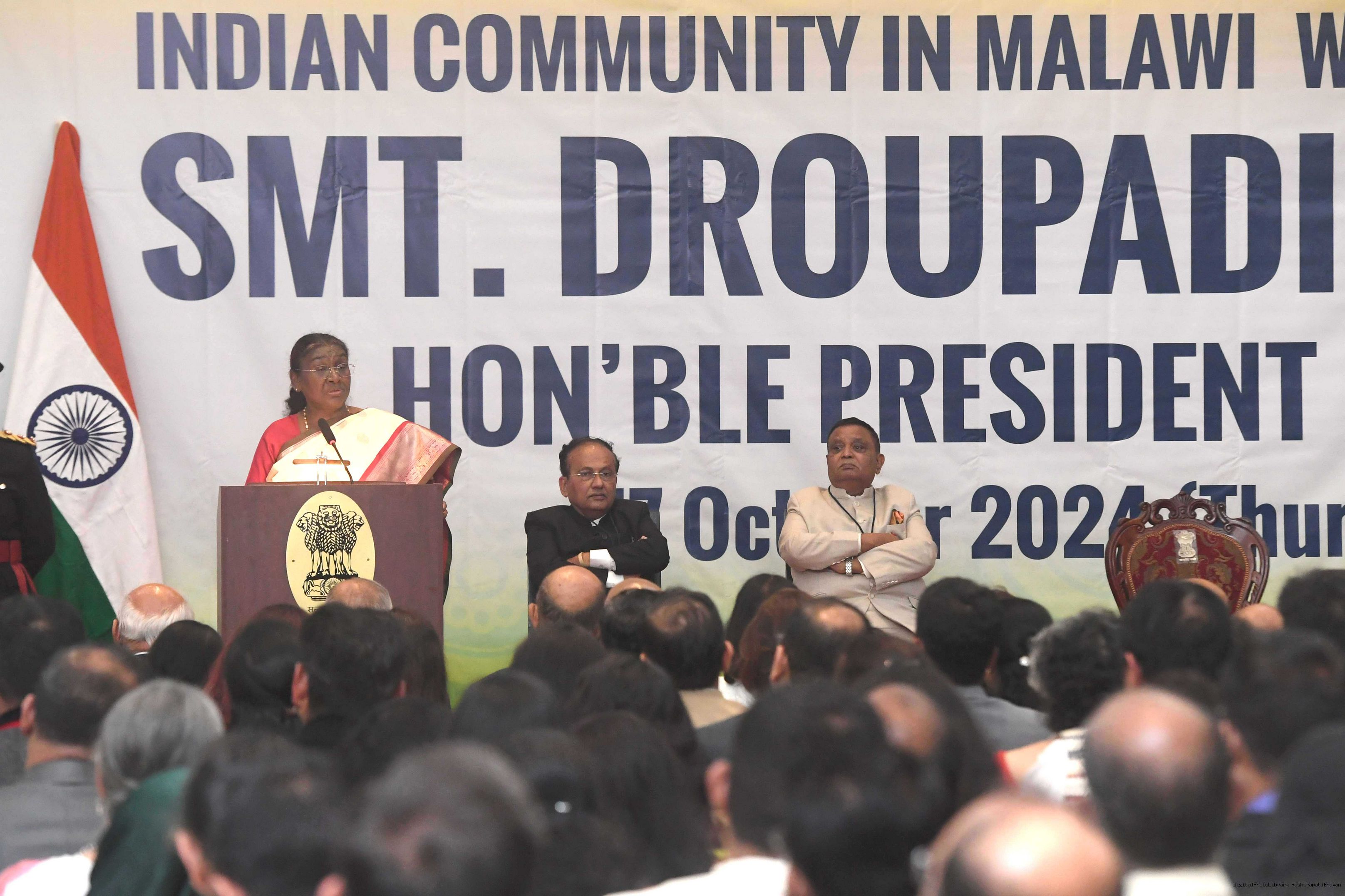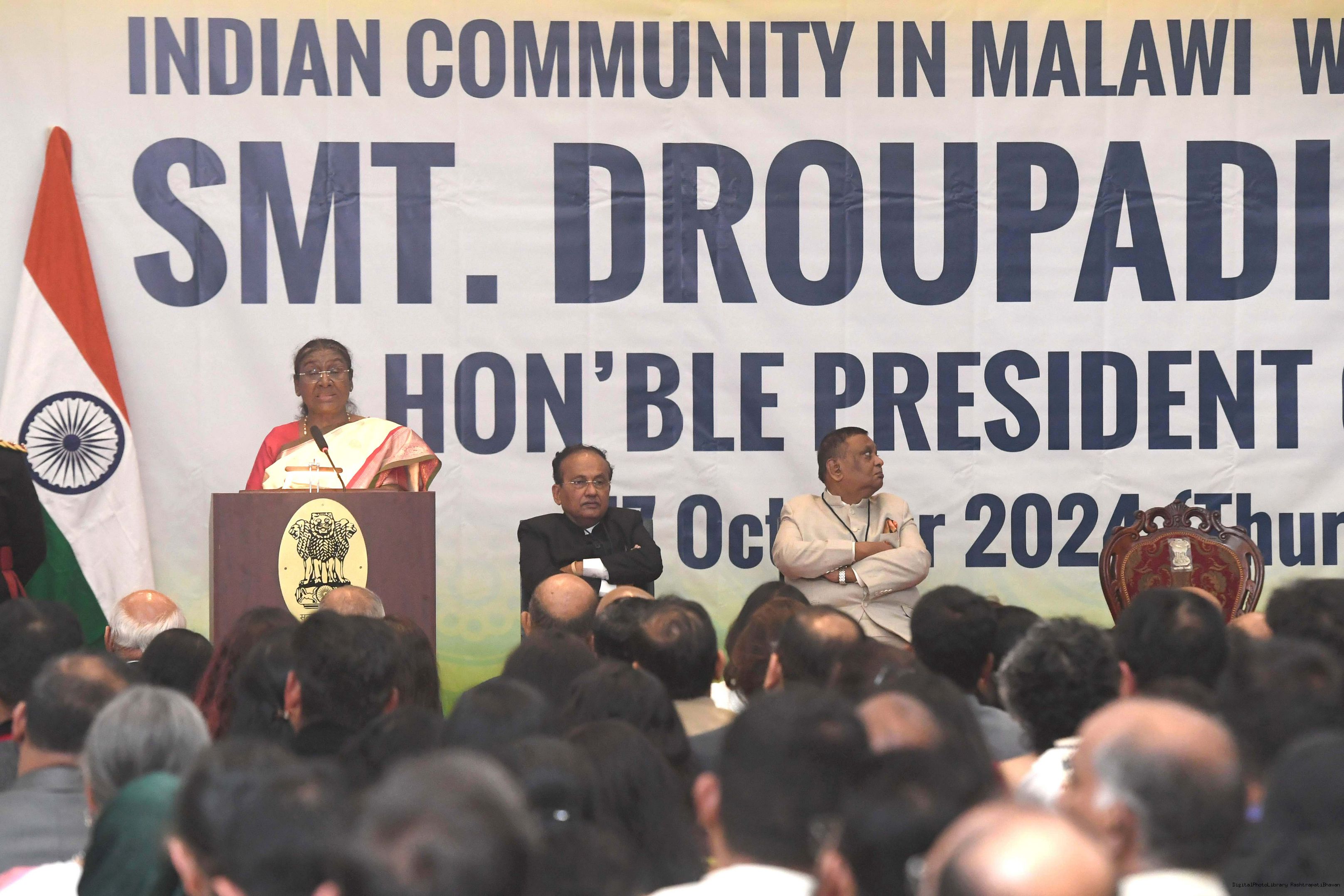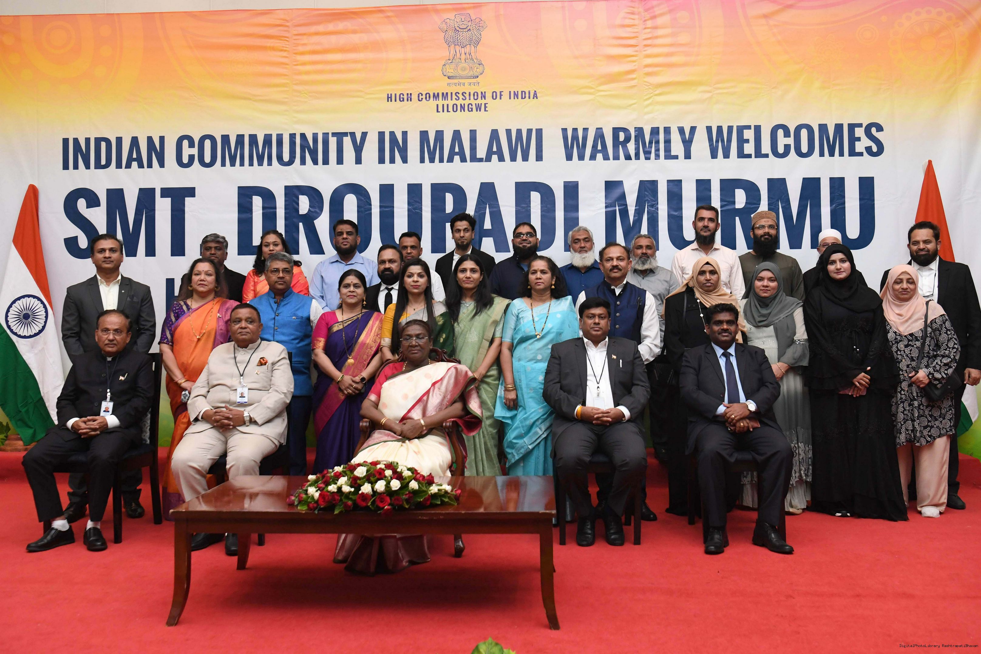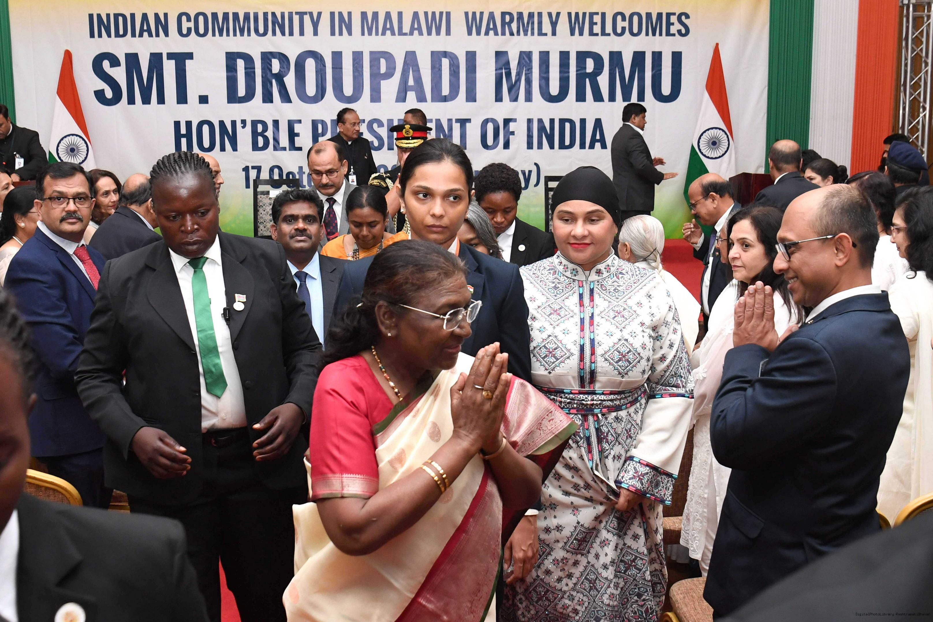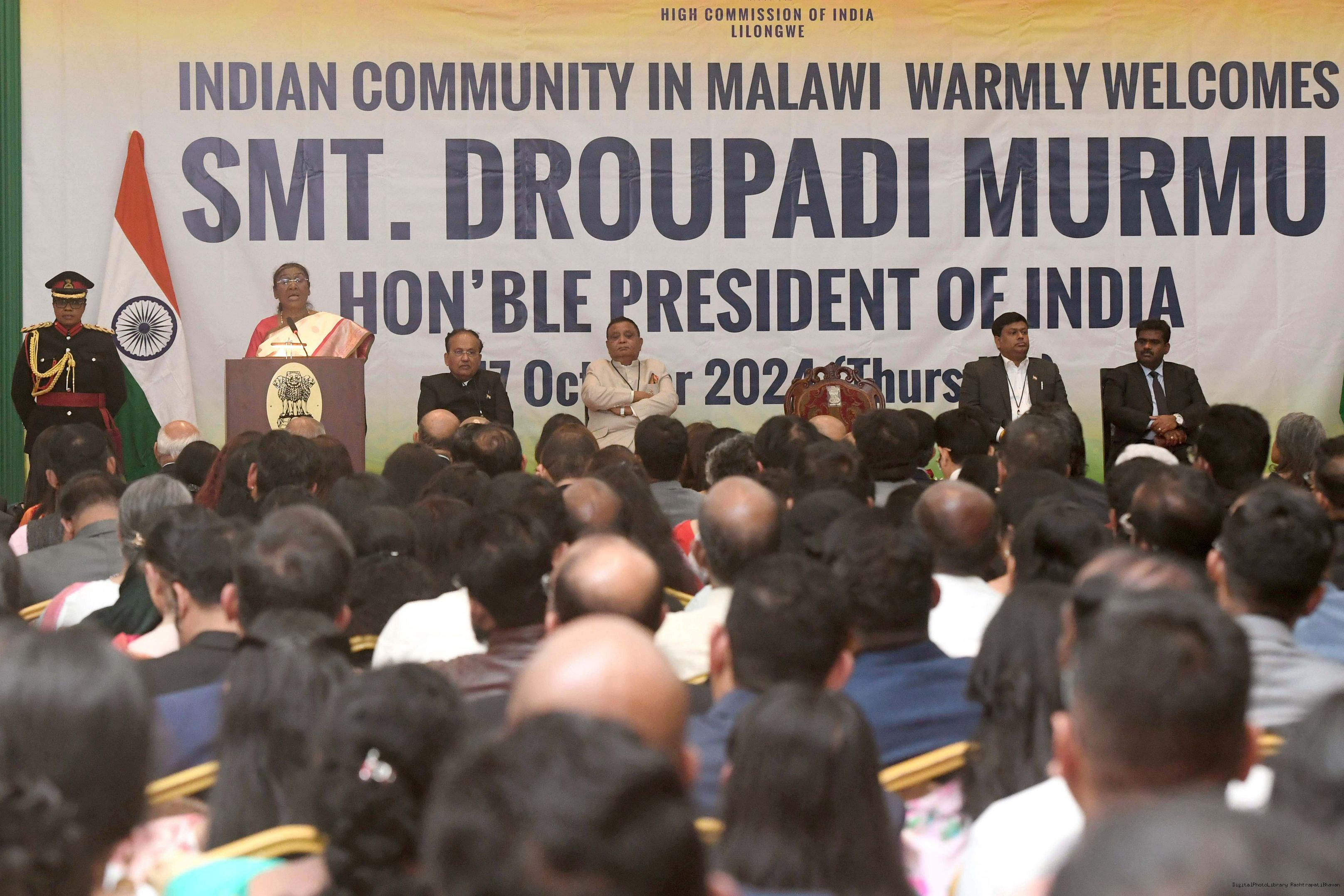 | Caption: | The President of India Smt. Droupadi Murmu was warmly received by the Indian community at a reception organised in Lilongwe, Malawi on October 17, 2024. |