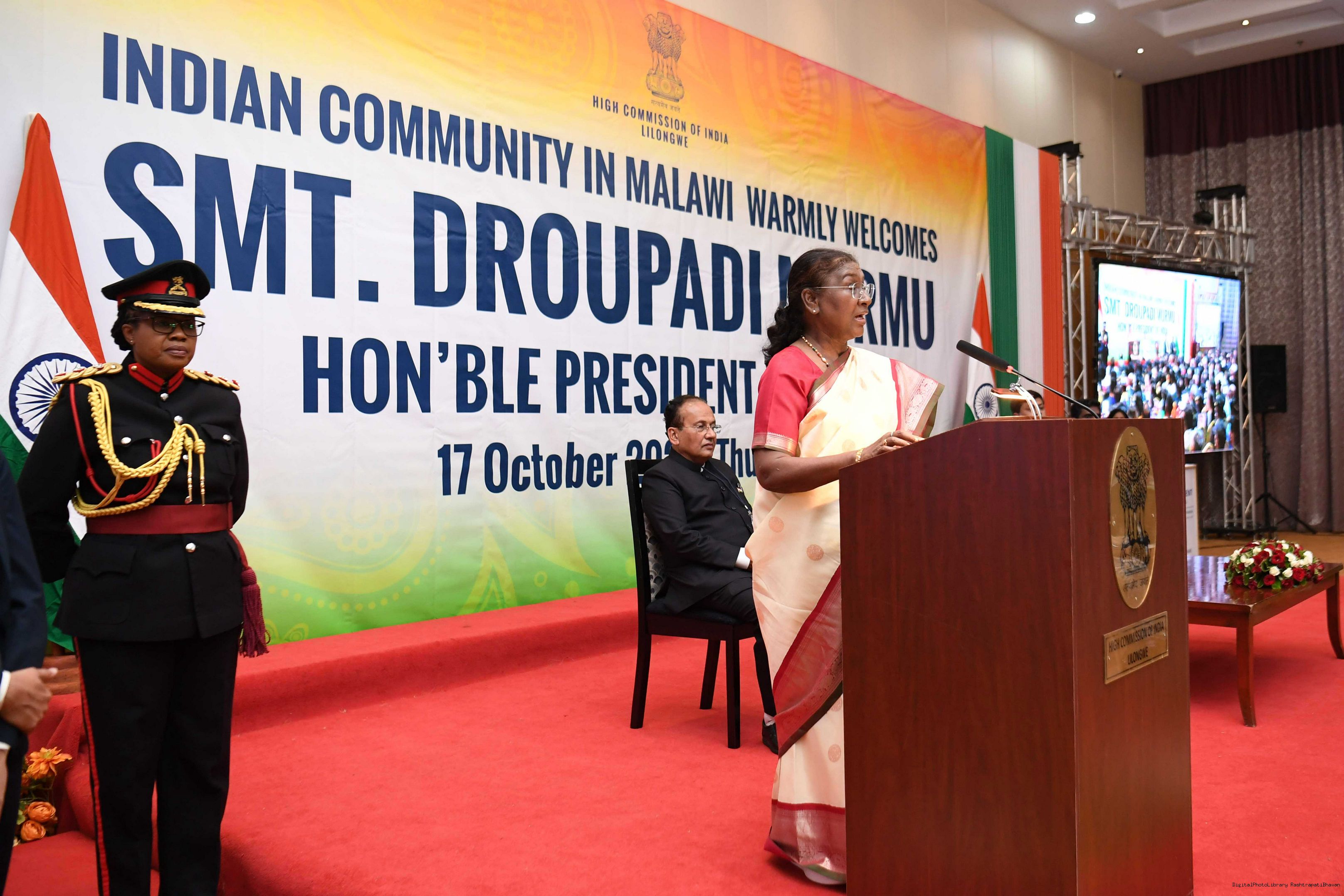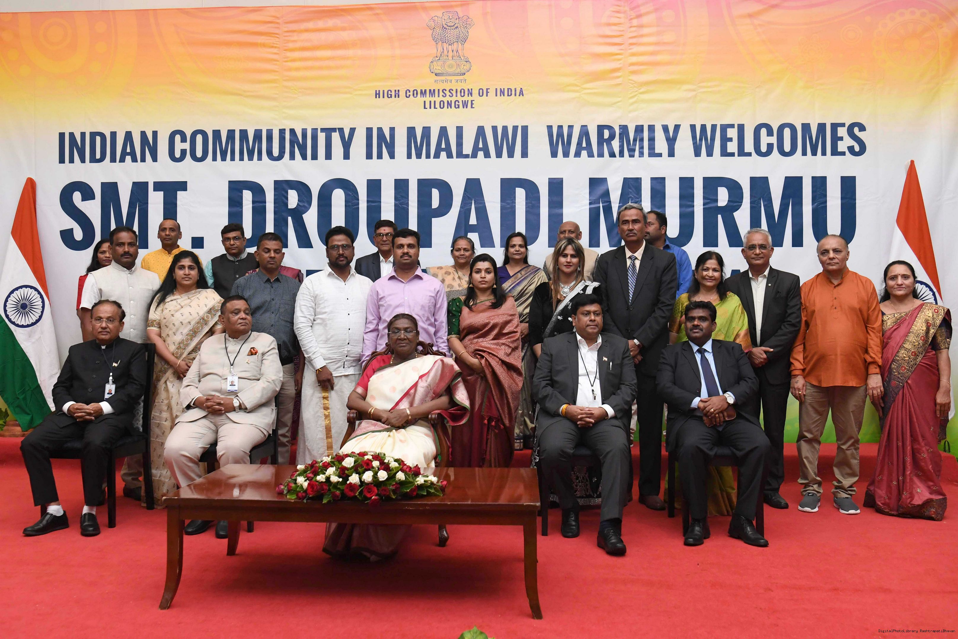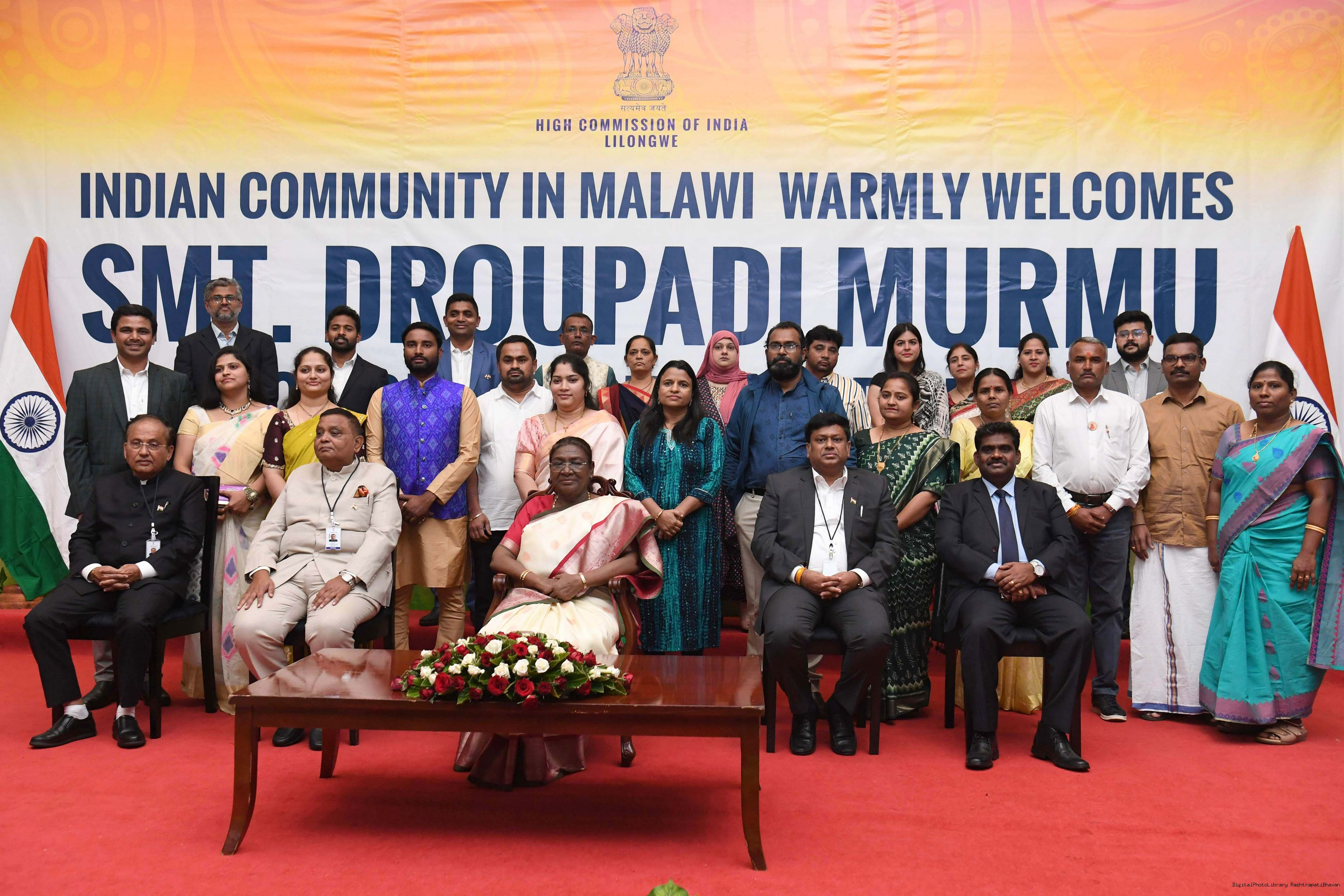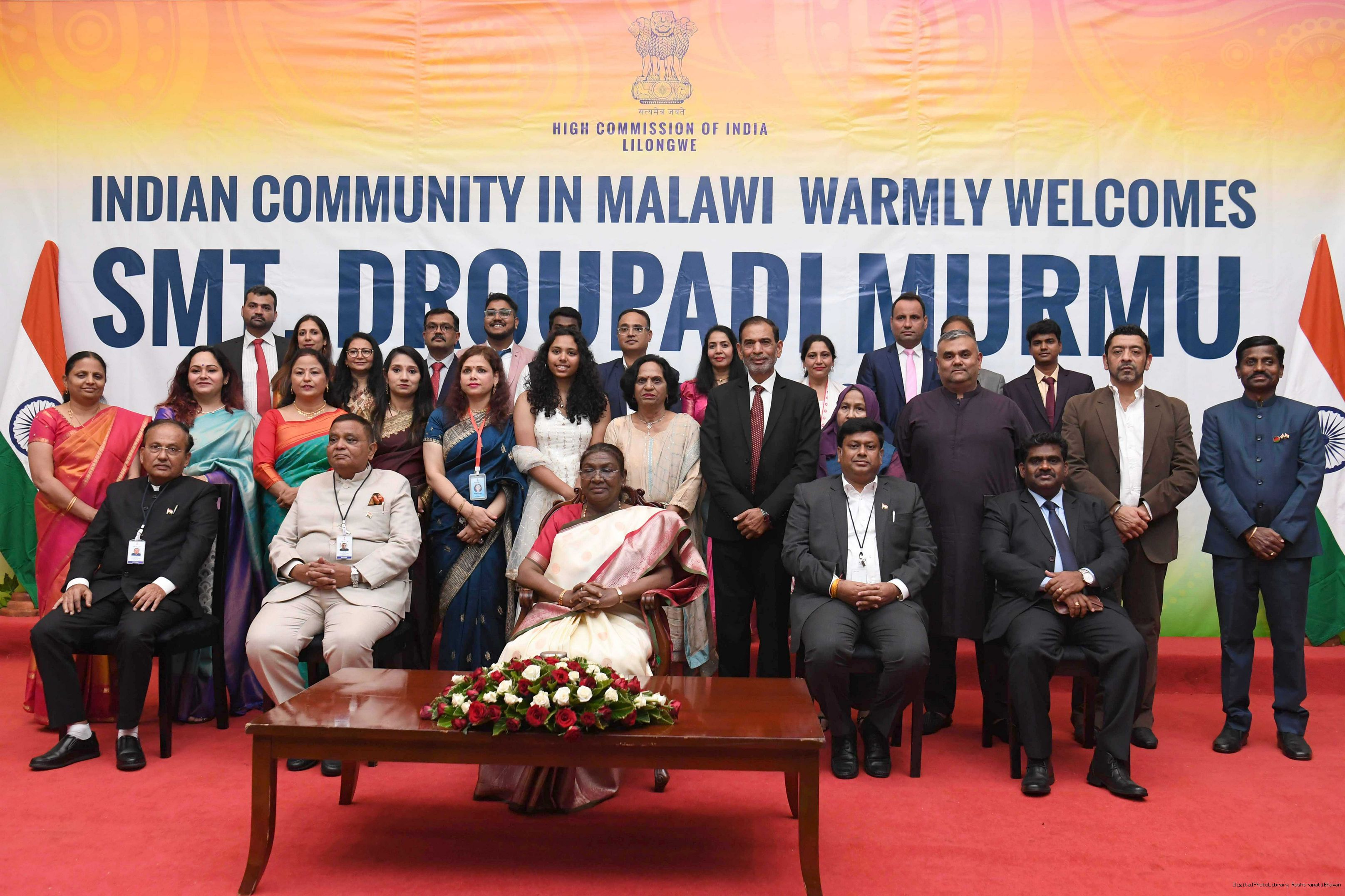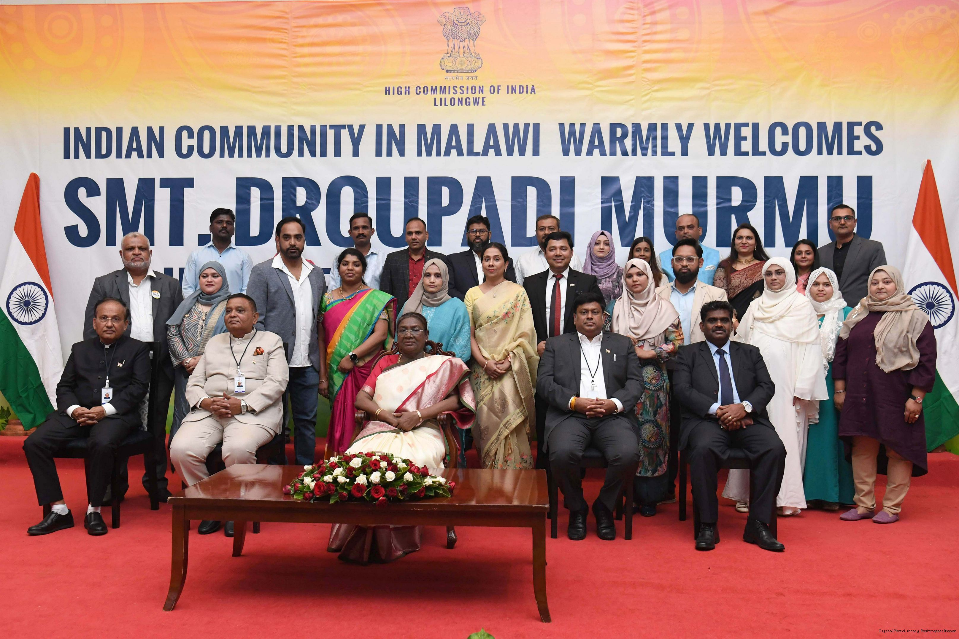 | Caption: | The President of India Smt. Droupadi Murmu was warmly received by the Indian community at a reception organised in Lilongwe, Malawi on October 17, 2024. |