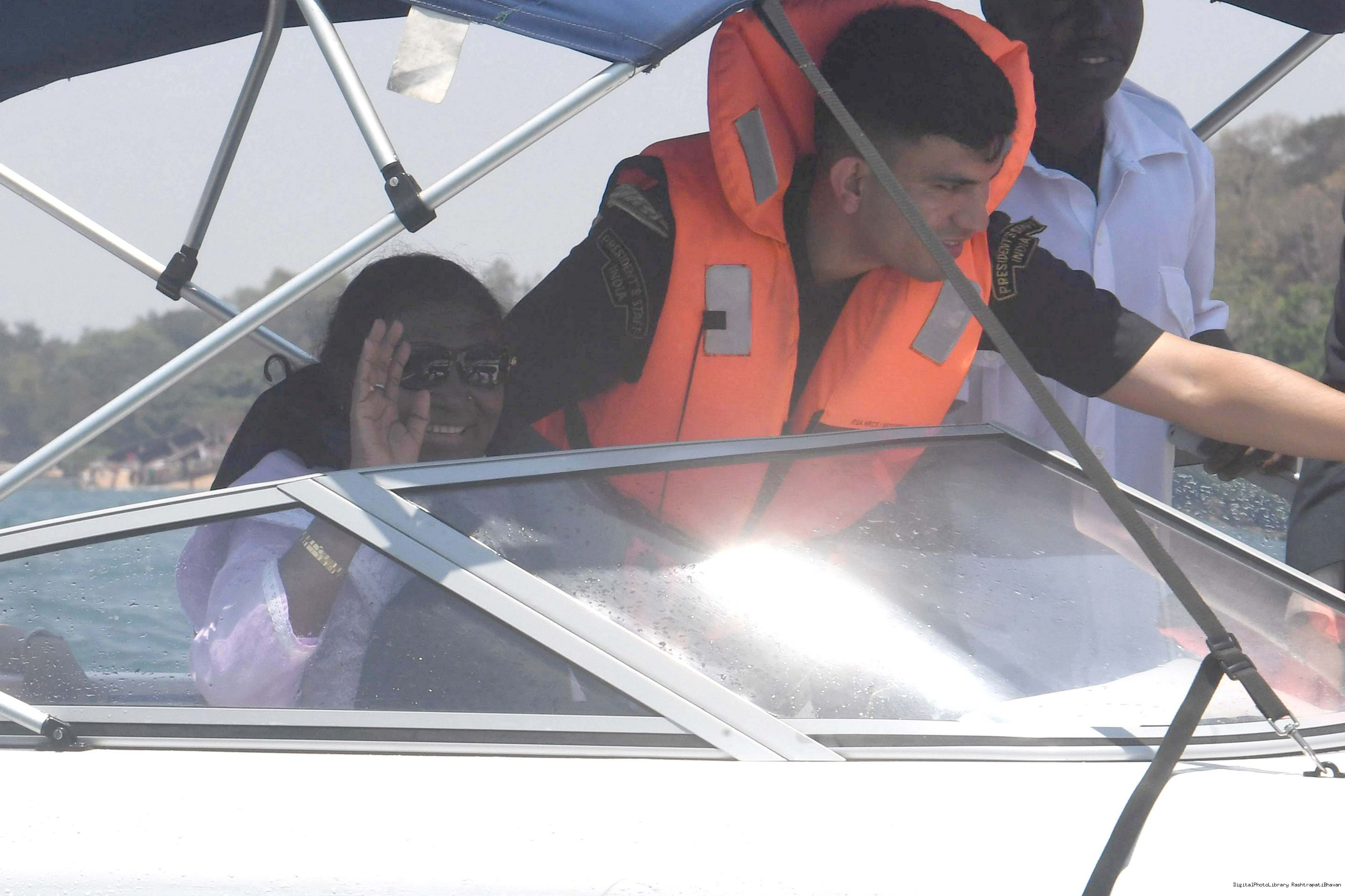 | Caption: | The President of India Smt. Droupadi Murmu Boat Ride on Lake Malawi on October 19, 2024. |