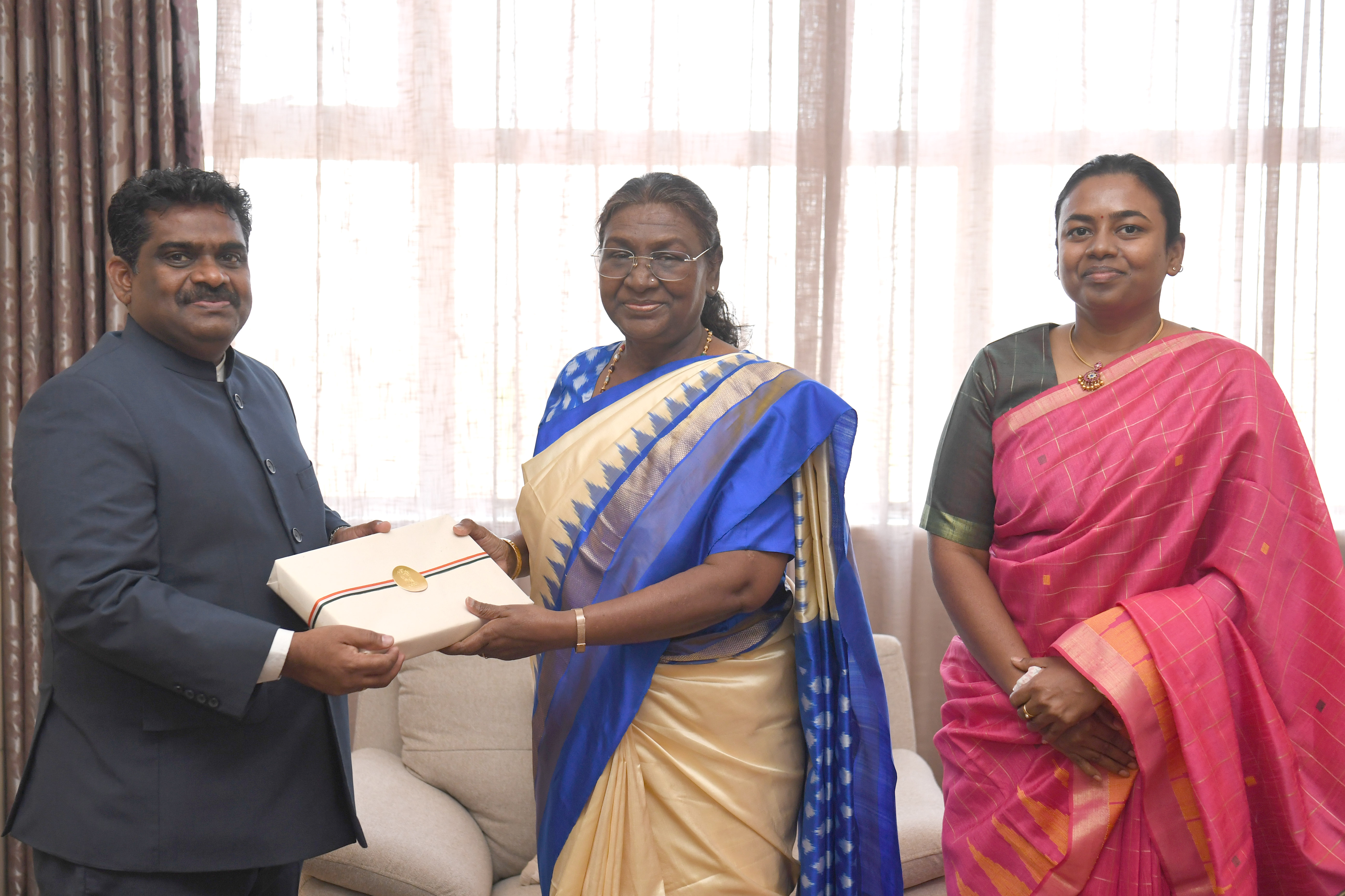 | Caption: | The President of India Smt. Droupadi Murmu Exchanged of Gifts with Indian Ambassador at Hotel President, Malawi on October 19, 2024. |