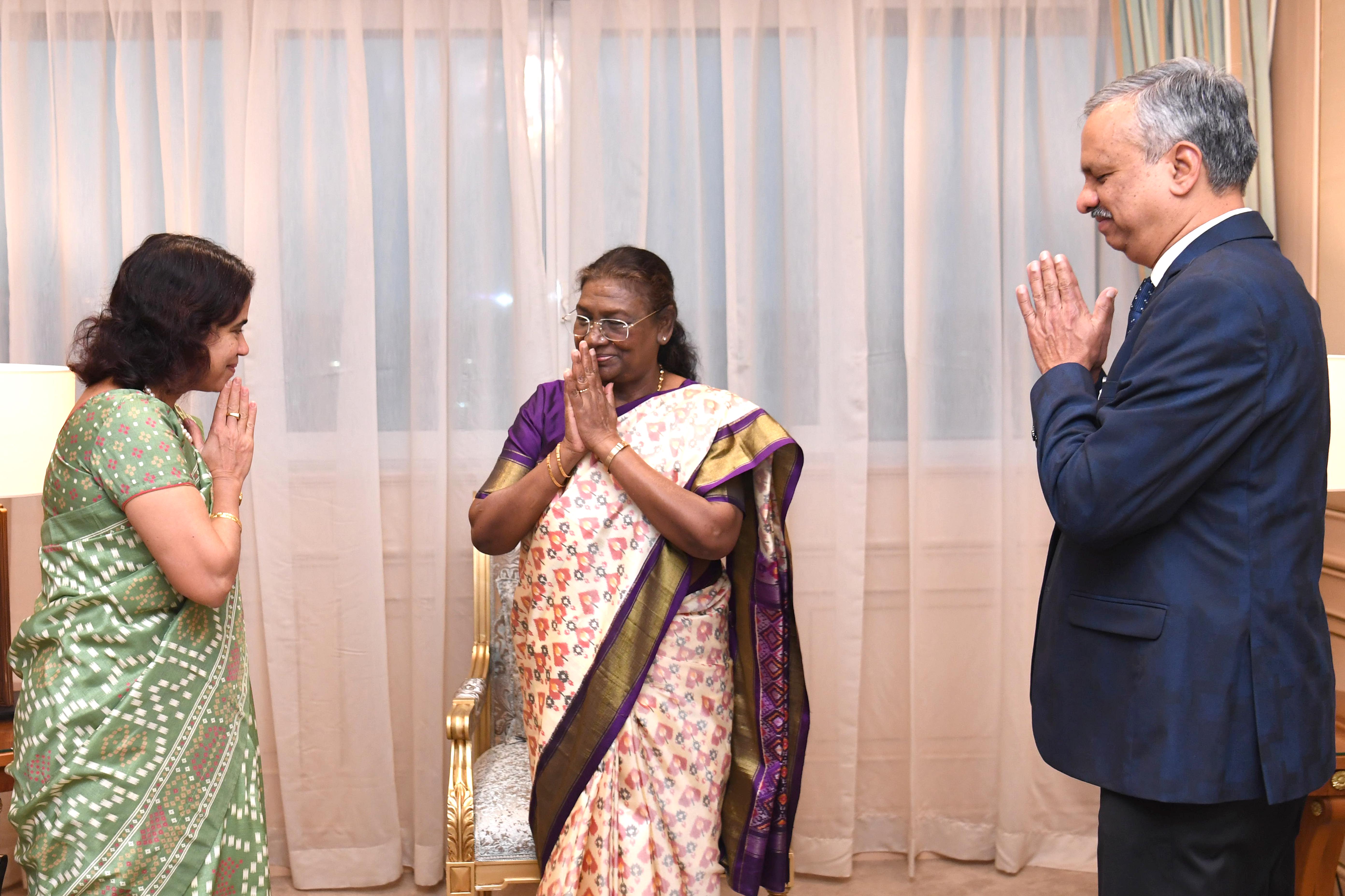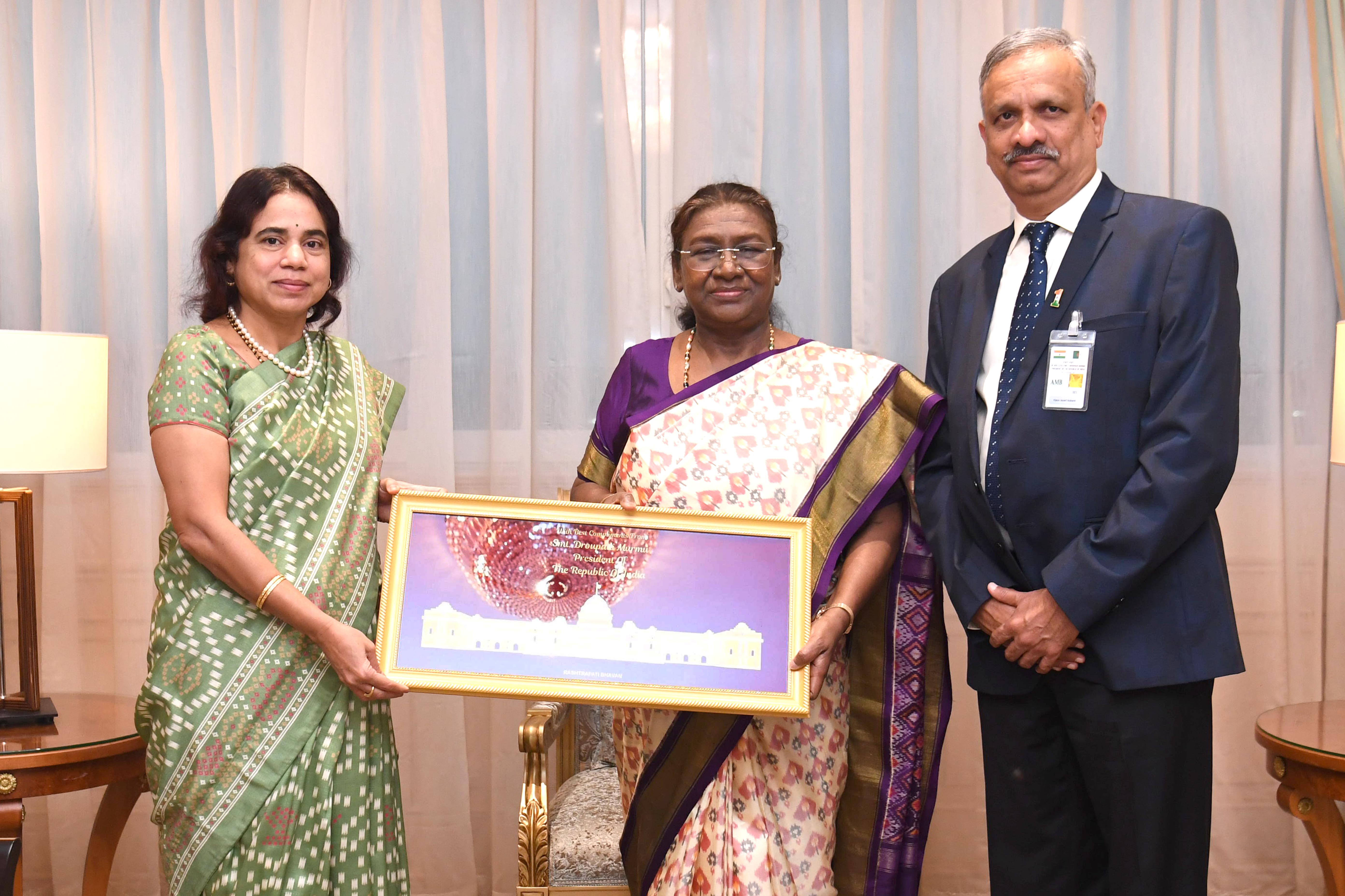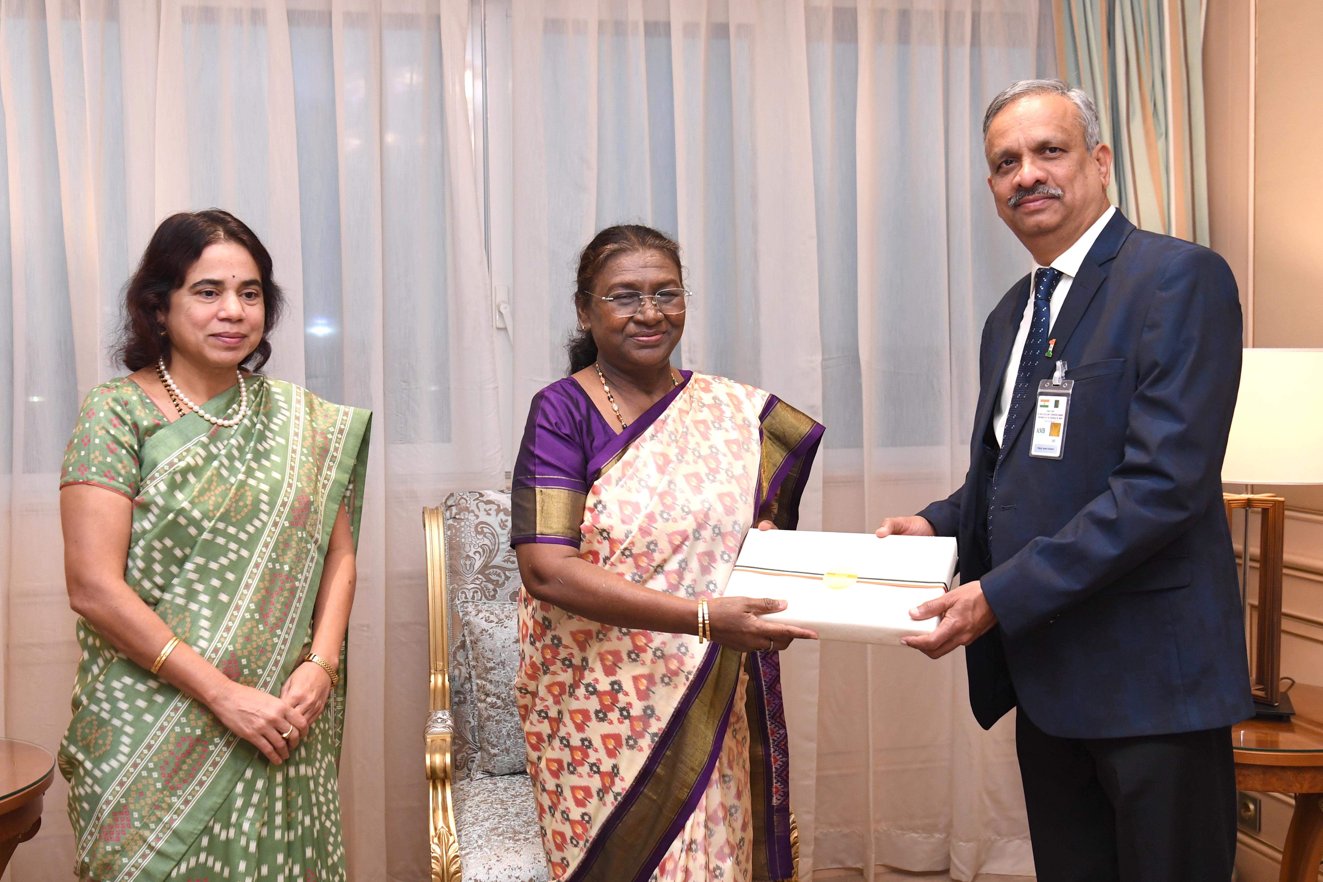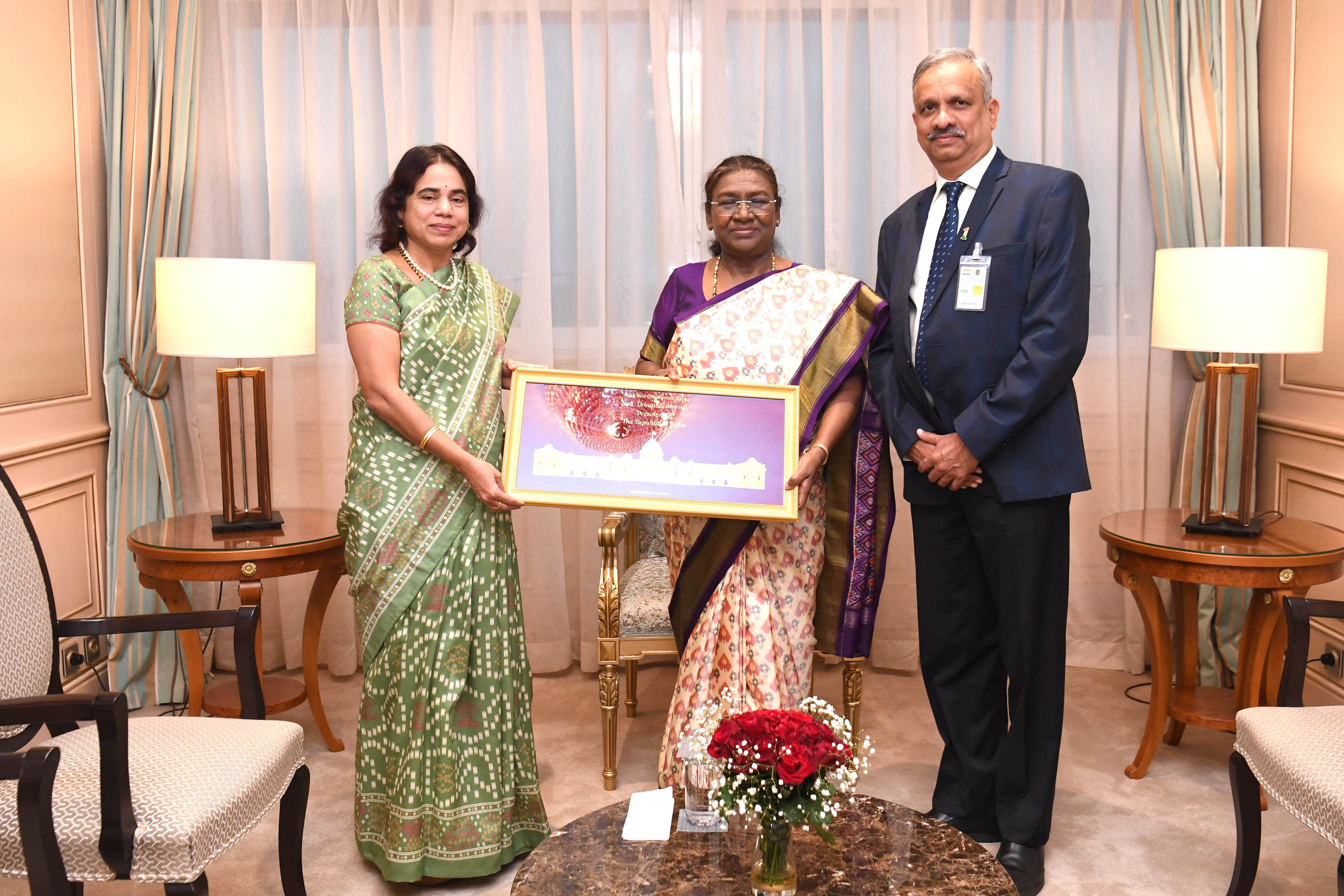 | Caption: | The President of India Smt. Droupadi Murmu Exchanged of Gifts with Indian Ambassador at Hotel Sheraton, Algeria on October 16, 2024. |